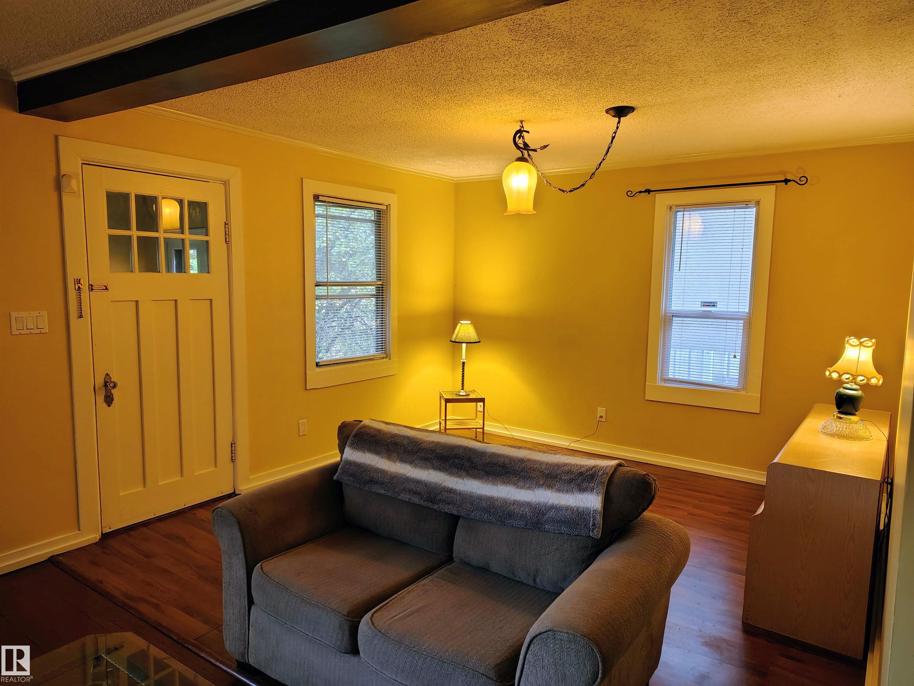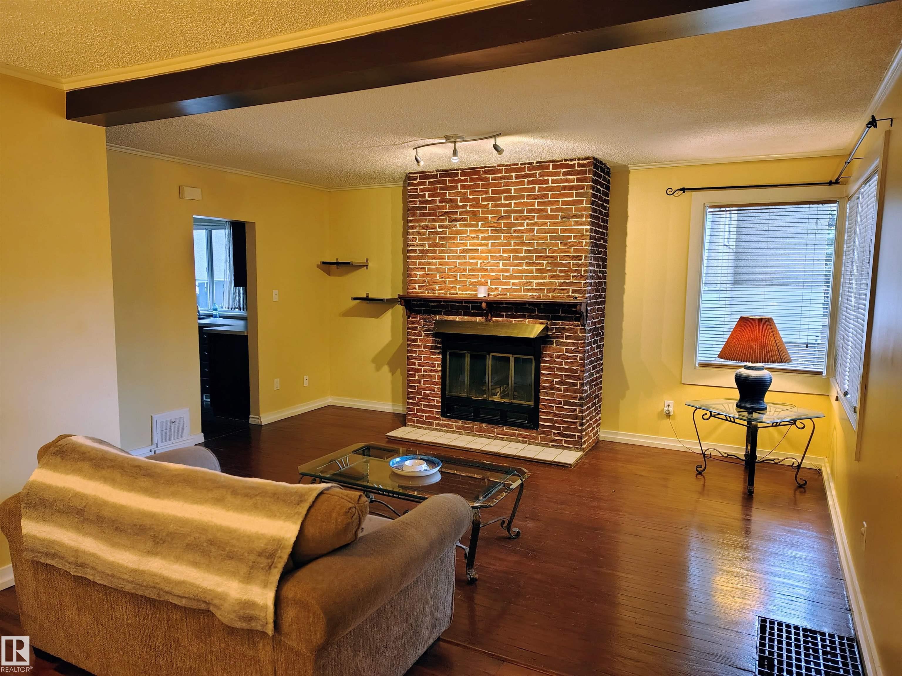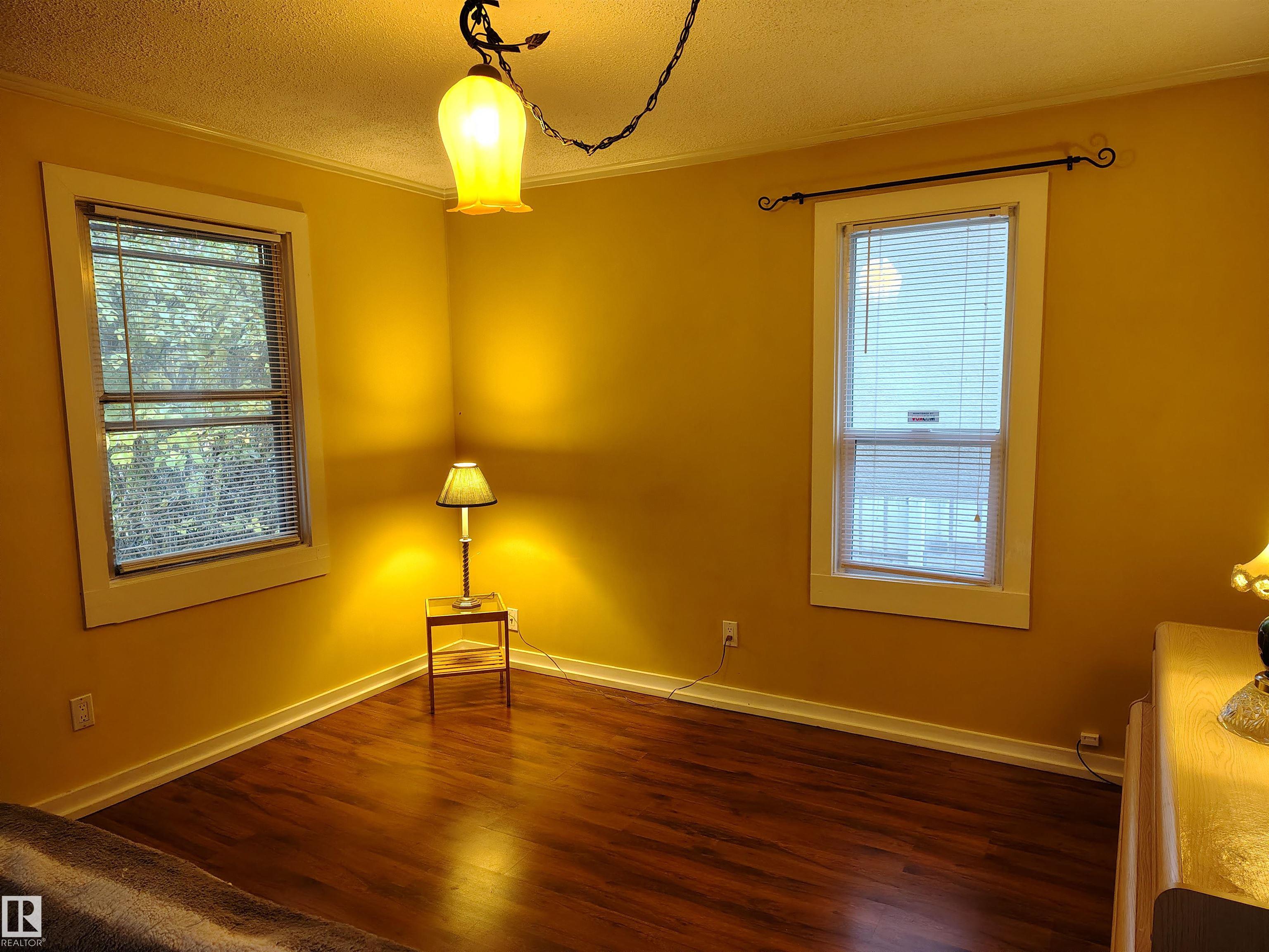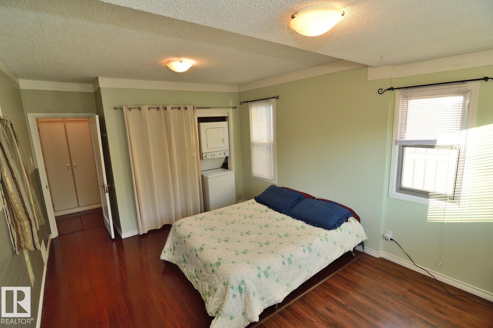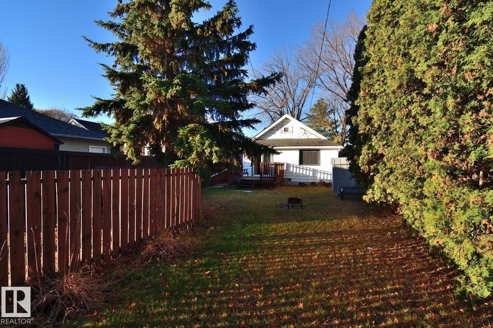 Charming two bedroom plus den character home on a peaceful Street in Bellevue/Highlands area. Major upgrades include shingles, insulation, electrical, plumbing, siding, and windows. Walk to the river valley, Concordia University, Eastglen Leisure Center Thistle Curling Club, Highlands library and groceries. Floor plan has large open concept living room and dining room, large kitchen with loads of cupboard space, huge master bedroom, laundry and four piece bathroom on main floor. Large back porch doubles as an office or a kitchen nook with sun coming in in the morning. Lots of windows make this home bright and cheerful. Wood burning fireplace and corner picture window provide a lovely feature wall in the west facing (sunny and cheerful in the afternoons) living room. Included are fridge, stove, washer and dryer. Basement finished with a second bedroom plus a den. The back deck overlooks a beautifully treed and fully fenced private yard. Good size lot with lots of room to build a garage.