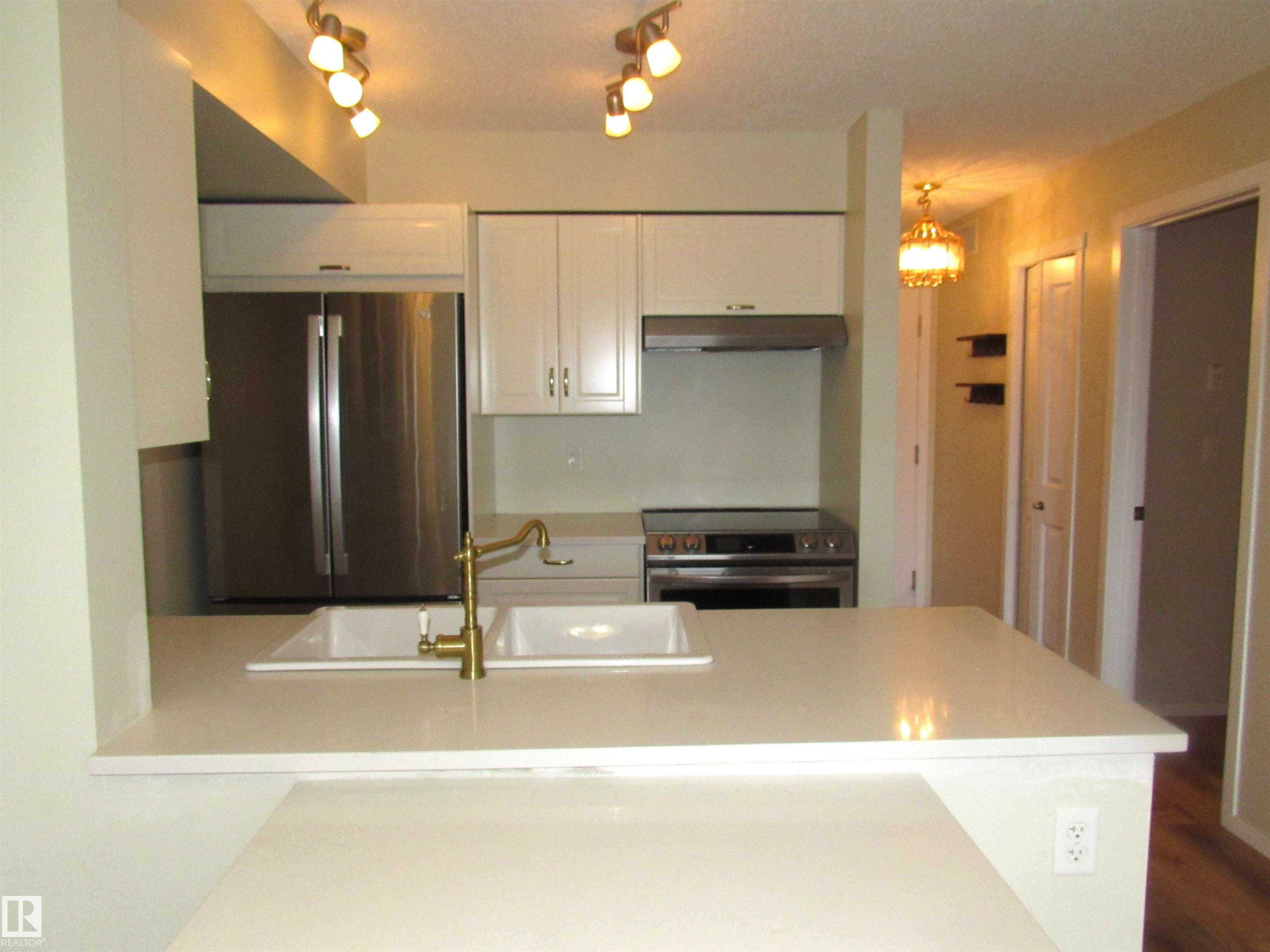 Stylish & Move-In Ready Condo with Two Parking Stalls! Welcome to this beautifully renovated 2-bedroom,1-bath condo perfectly situated on the 3rd floor in a convenient, well managed complex. This bright and modern home has been professionally cleaned and is ready for quick possession. Step inside to find newer laminated flooring thru out. a remodeled kitchen featuring sleek quartz countertops, built in quartz dining table, updated cabinets & S.S. appliances. The spacious living room is filled w/natural light from large windows and opens to a covered balcony, perfect for morning coffee or relaxing evenings. Additional highlights include in suite laundry w/newer washer & dryer, air conditioning and 2 parking stalls.(one titled & one assigned). Located close to schools, shopping and public transit, with easy access to 41 Ave, Anthony Henday Drive and QE11 Highway, this condo offers both comfort and convenience, A fantastic opportunity for first time buyers, downsizers, or investors-Move right in and enjoy!