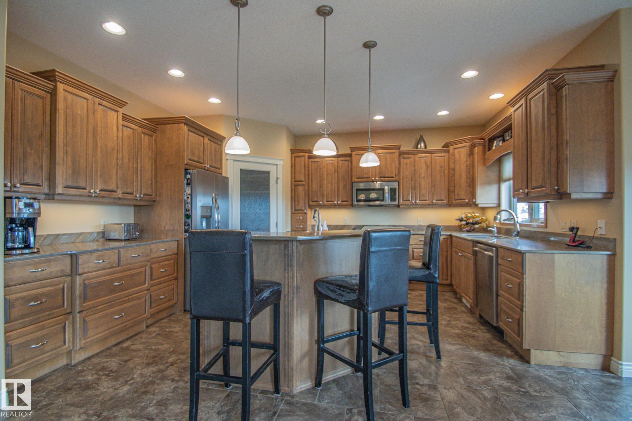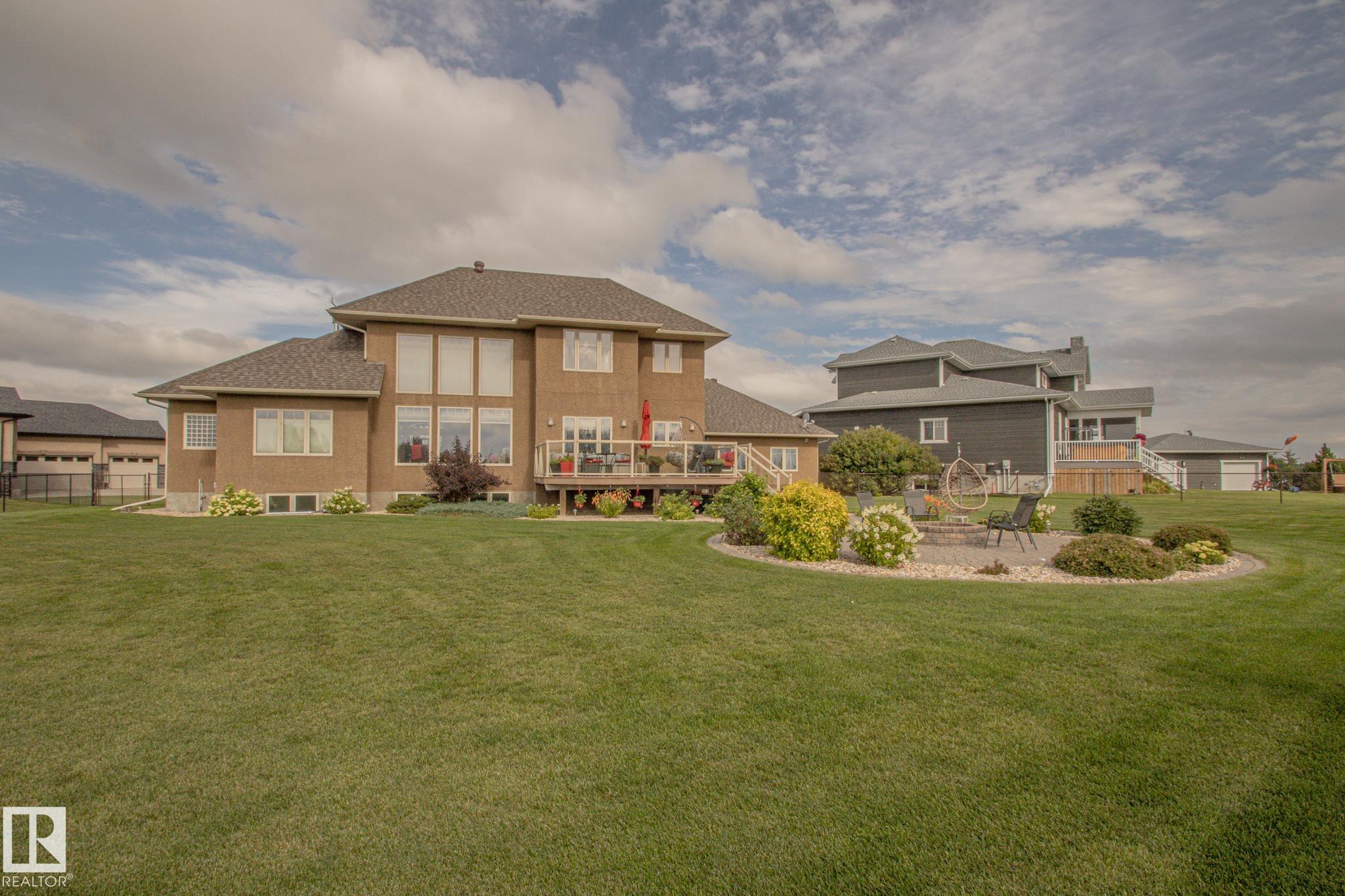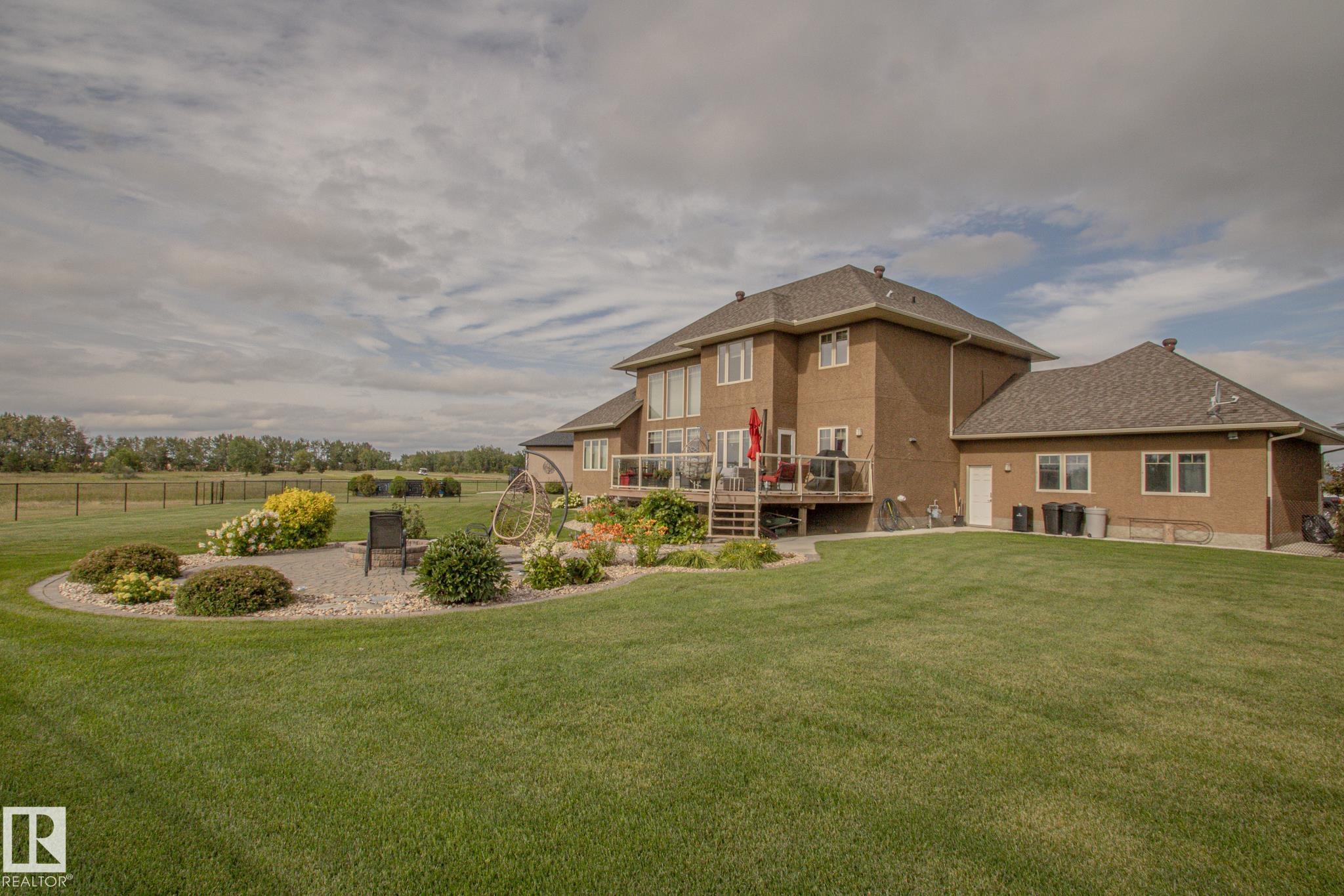 Executive 1.5-Story Home on Golf Course ? 5 Bed, 4 Bath Welcome to this stunning executive 1.5-story home, perfectly situated on a no-thru road backing the serene back 9 of the golf course. This beautifully designed 5-bedroom, 4-bathroom residence features high-end finishings throughout, with a striking stucco and rock exterior for timeless curb appeal. Inside, you'll find an amazing chef-inspired kitchen complete with stone countertops, ample cabinetry, and premium appliances?ideal for entertaining. The main floor boasts a spacious laundry room and a luxurious master suite with a spa-like ensuite and a generous walk-in closet. Step outside to your large, meticulously landscaped, fenced pie-shaped yard, complete with a fire pit and a spacious deck?perfect for relaxing or hosting while taking in panoramic golf course views.