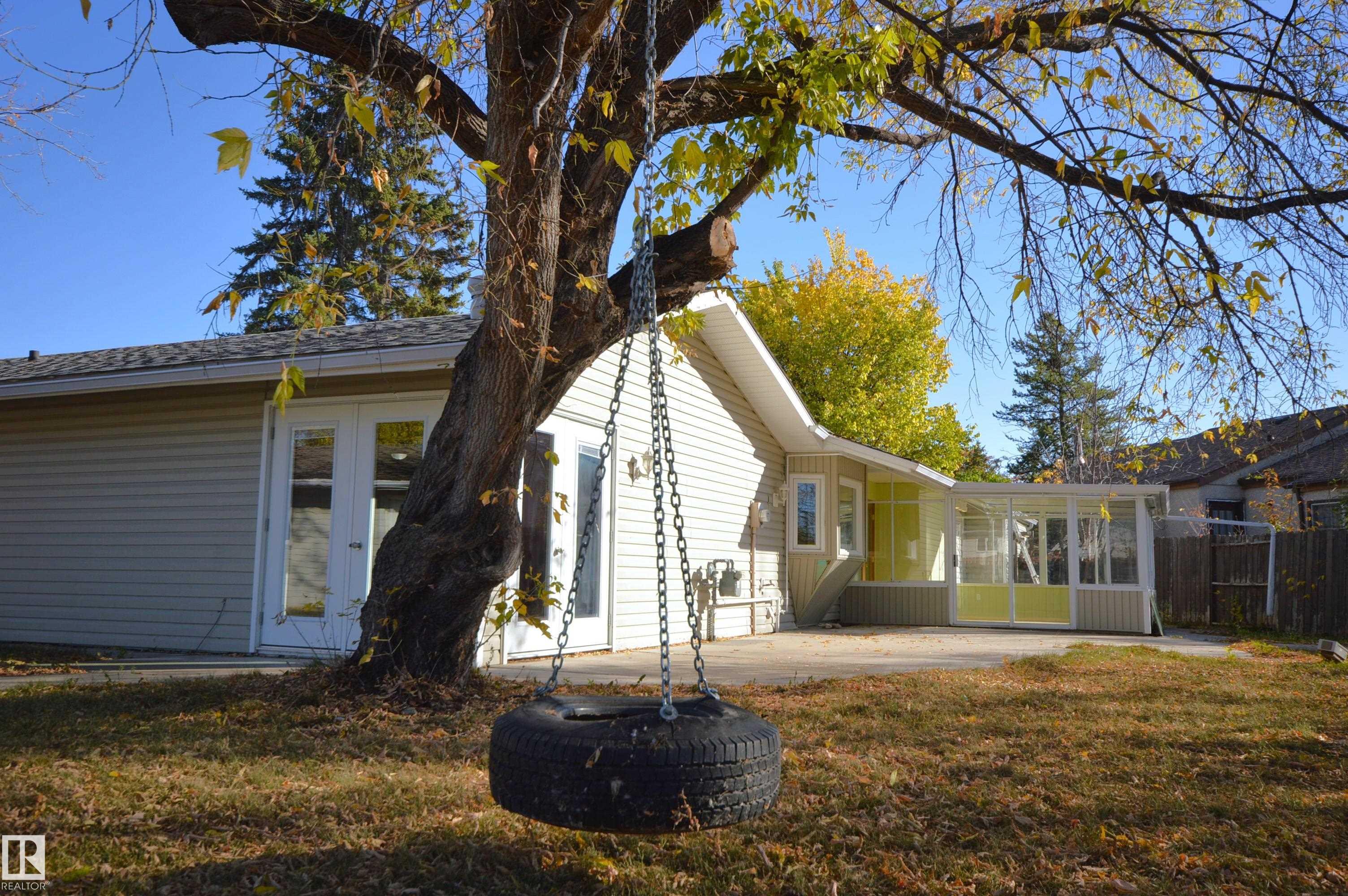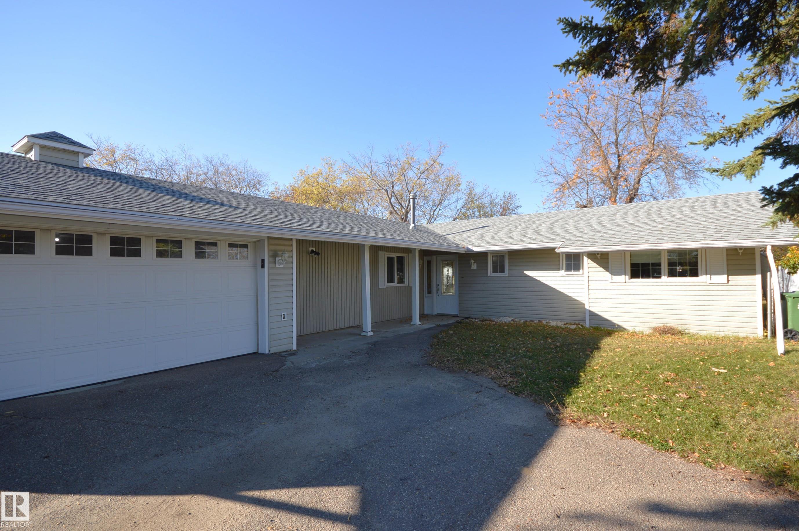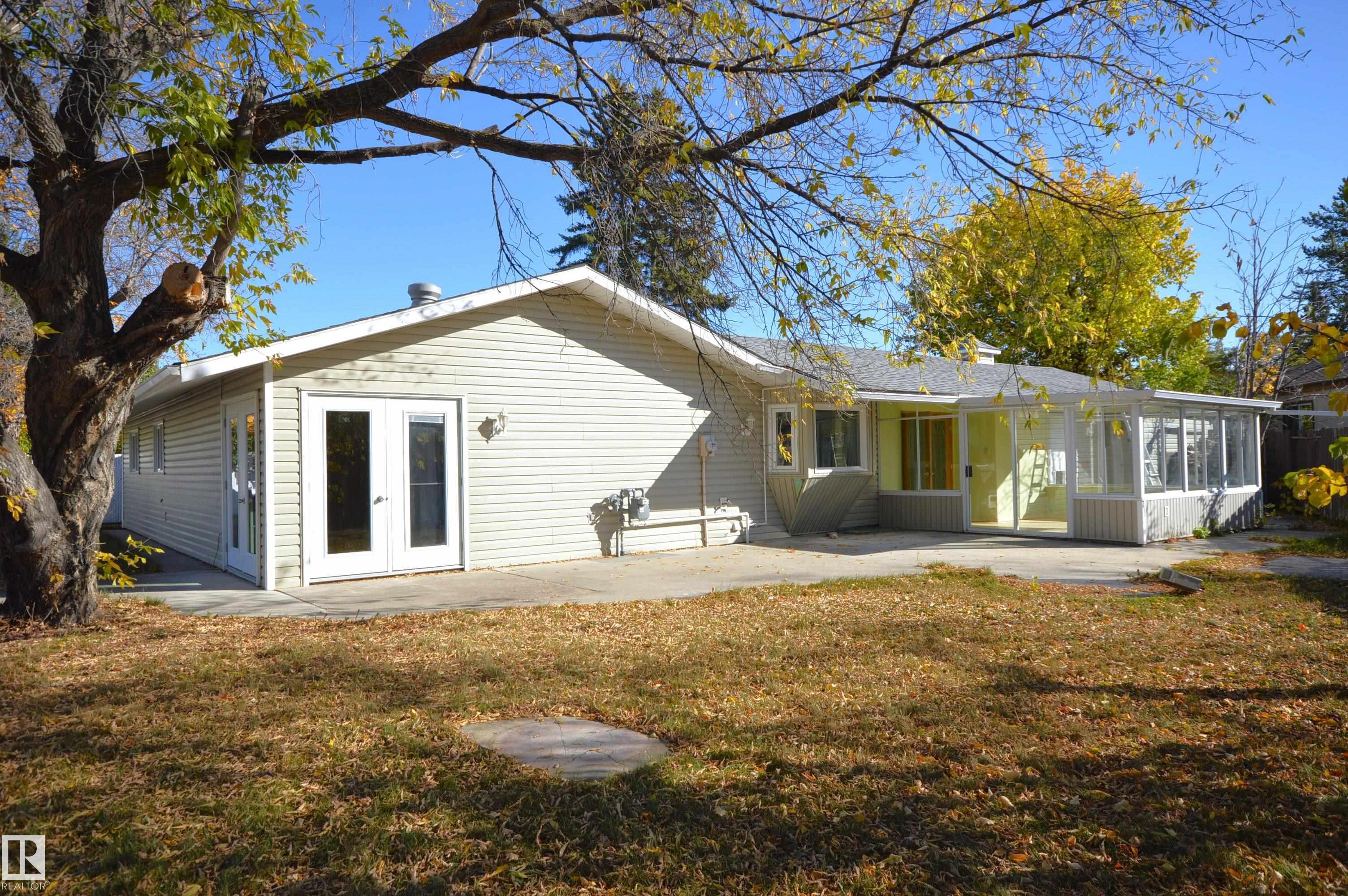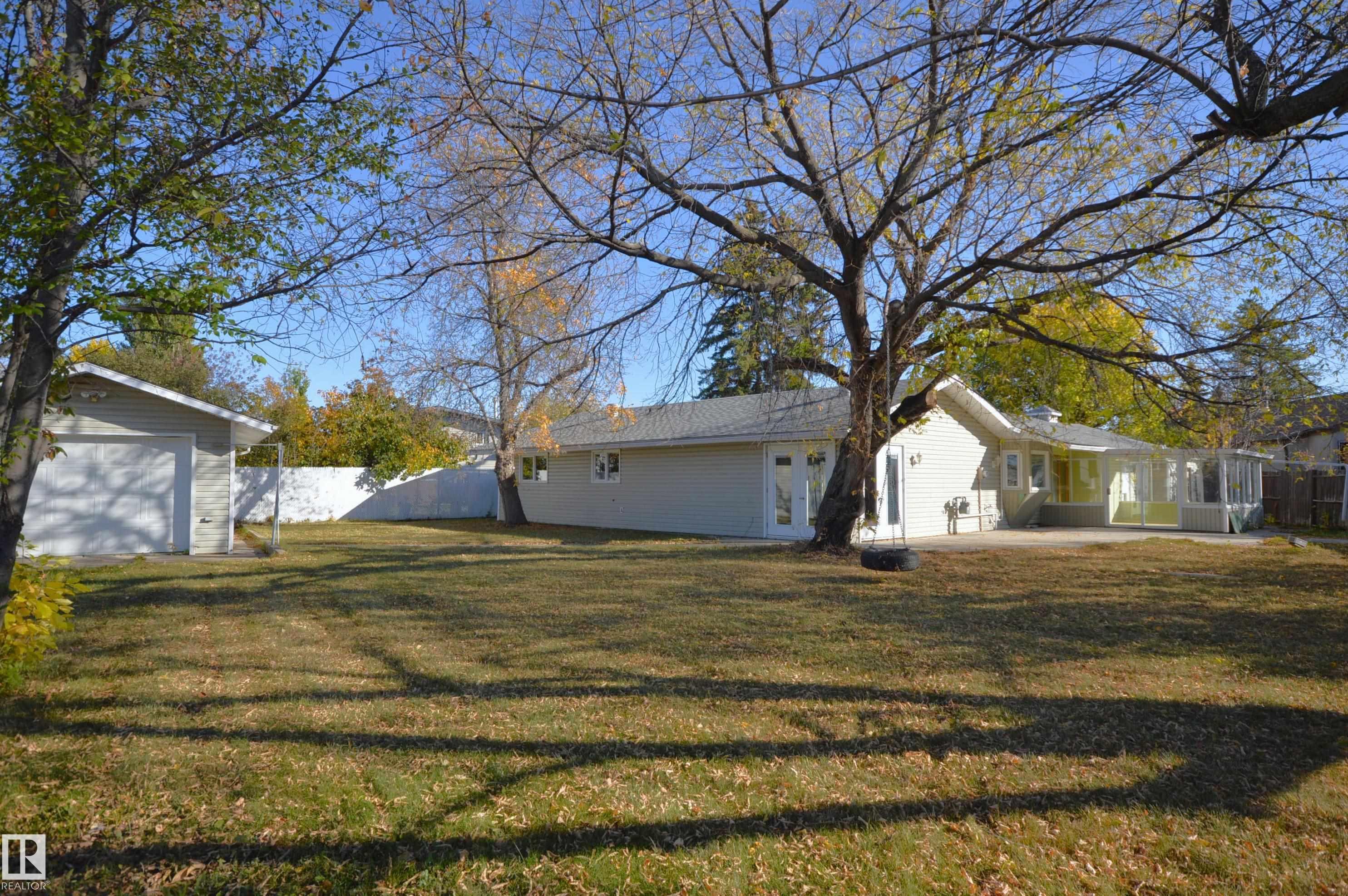 Zero carpet ? zero steps! This extensively updated 1978 bungalow, built on a slab with a partial basement offers an impressive main floor living area of roughly 1,400 square feet and 500 sq ft below. The home features vented slab heating and presents an open-concept layout, enhanced by a modern kitchen renovation completed in 2015 creating a flowing living space with patio French doors leading to the huge backyard. There is a double attached garage as well as a detached single garage situated within a large pie-shaped lot, providing ample parking , kids & pet play space and storage options. New shingles 2024, and upgrades throughout the years. Nice hardwood and tile flooring -all essential amenities are conveniently located on one level. 3 bedrooms, 2 bathrooms, including main floor laundry adjacent to a two-piece bathroom, and heated garage right there at the back entry, making this home accessible and practical for all lifestyles. Everybody loves a sunroom and back concrete pad has power run for hottub.