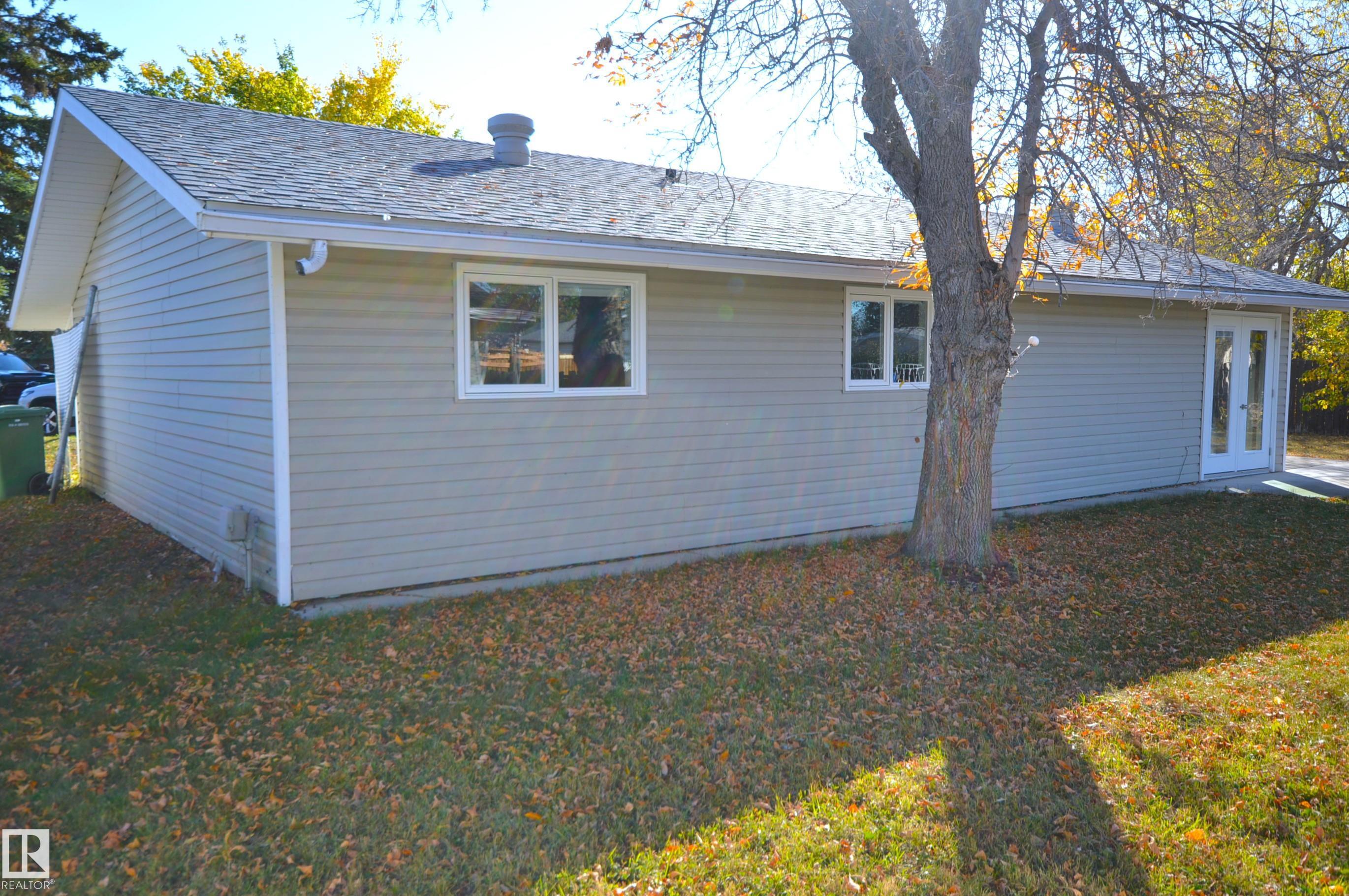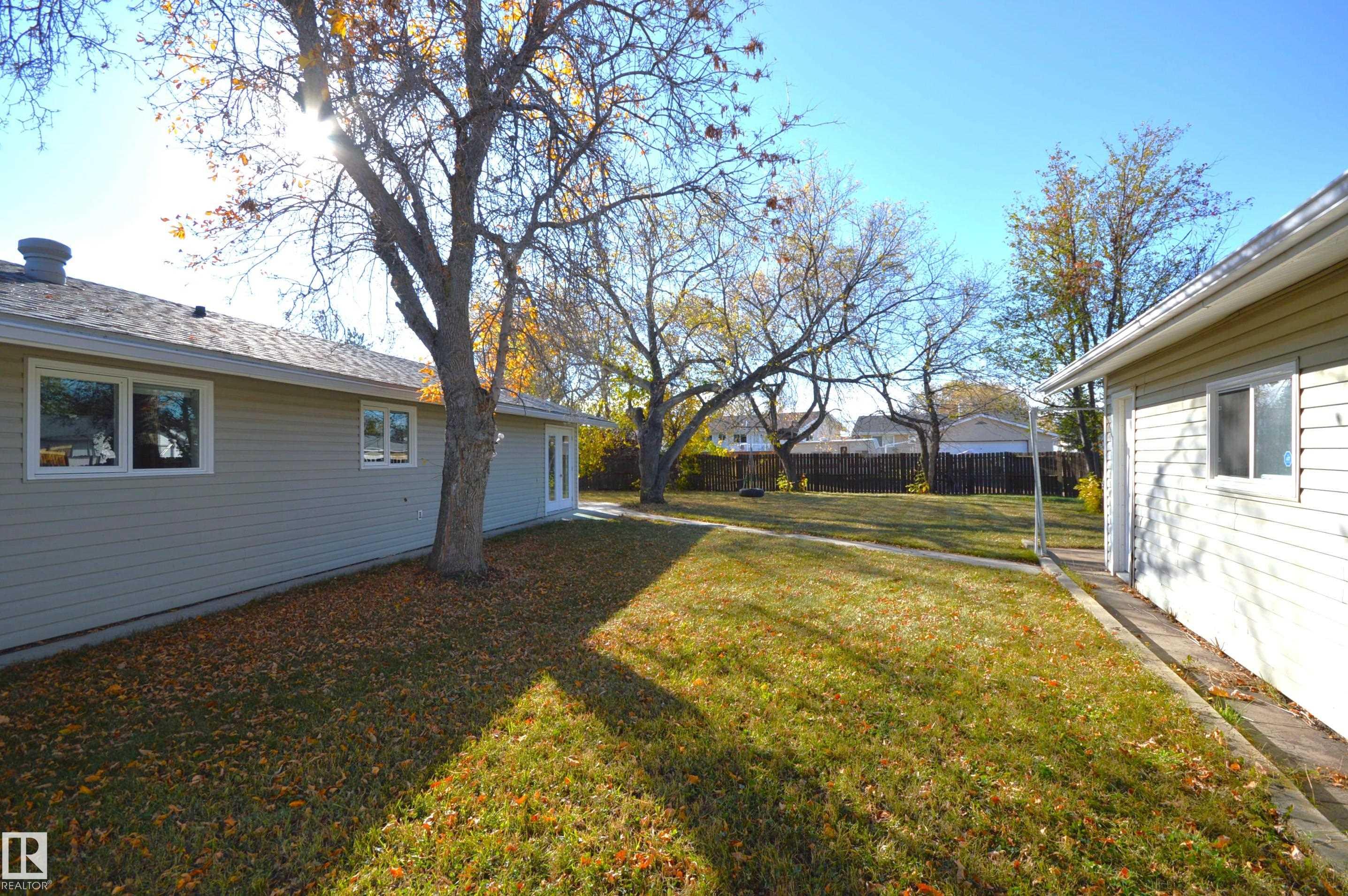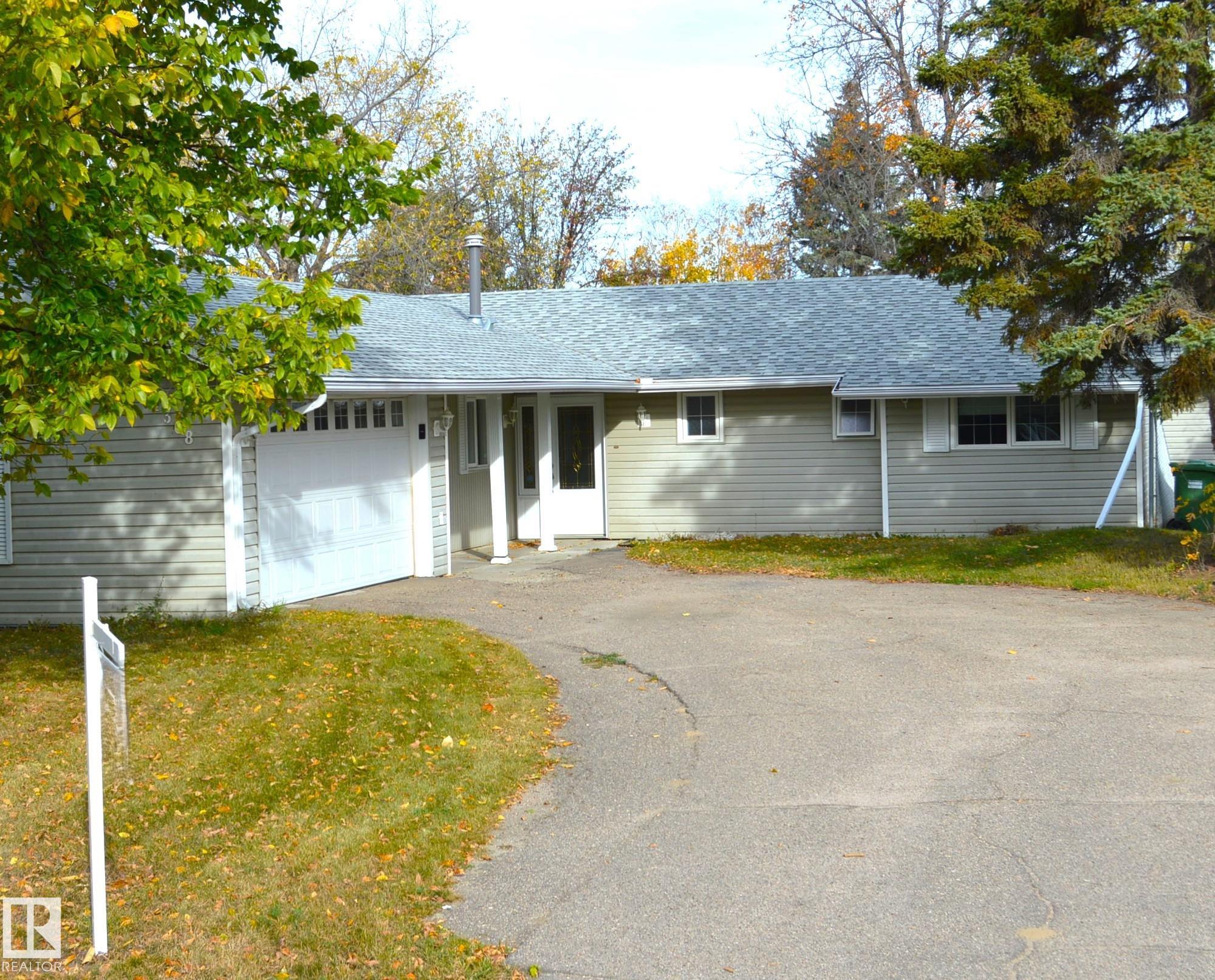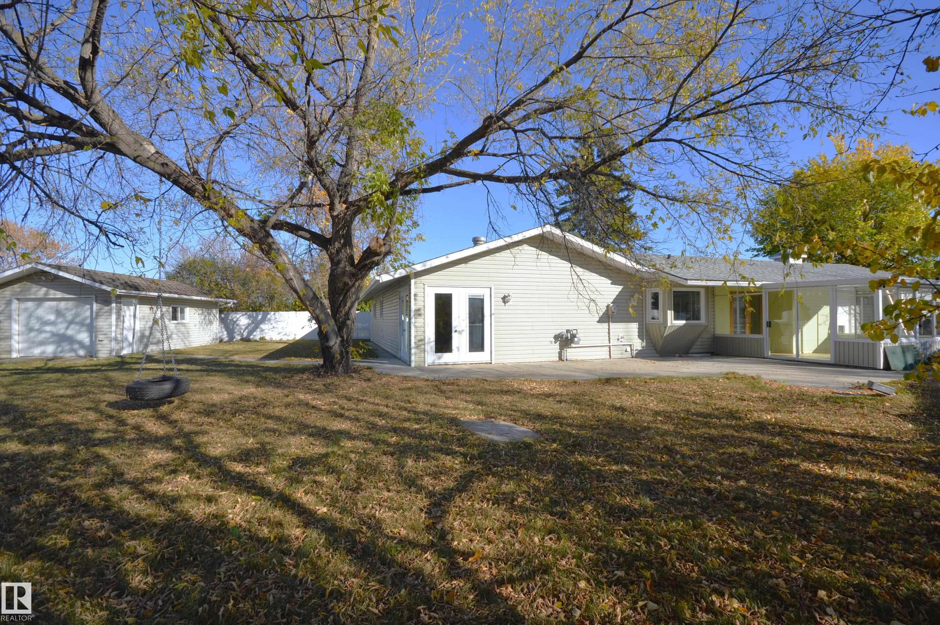 Zero carpet ? zero steps! This extensively updated 1978 bungalow, built on a slab with a partial basement offers an impressive main floor living area of roughly 1,400 square feet and 500 sq ft below. The home features vented slab heating and presents an open-concept layout, enhanced by a modern kitchen renovation completed in 2015 creating a flowing living space with patio French doors leading to the huge backyard. There is a double attached garage as well as a detached single garage situated within a large pie-shaped lot, providing ample parking , kids & pet play space and storage options. New shingles 2024, and upgrades throughout the years. Nice hardwood and tile flooring -all essential amenities are conveniently located on one level. 3 bedrooms, 2 bathrooms, including main floor laundry adjacent to a two-piece bathroom, and heated garage right there at the back entry, making this home accessible and practical for all lifestyles. Everybody loves a sunroom and back concrete pad has power run for hottub.