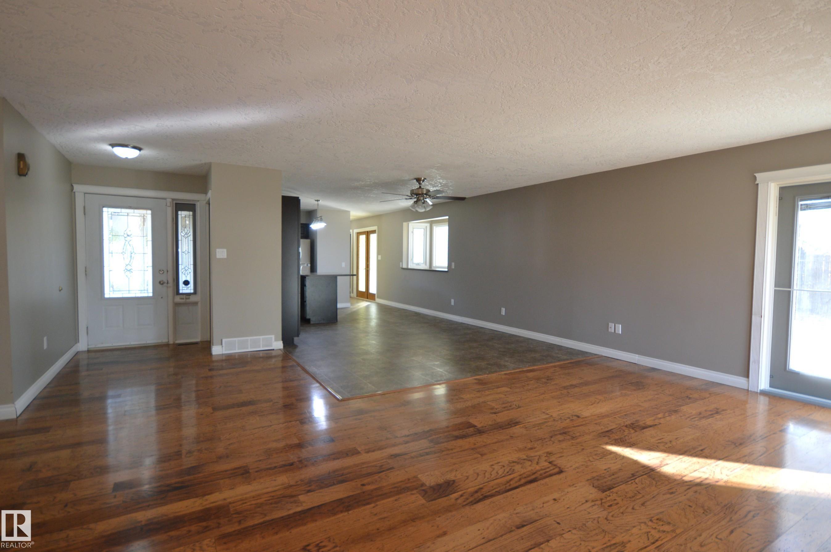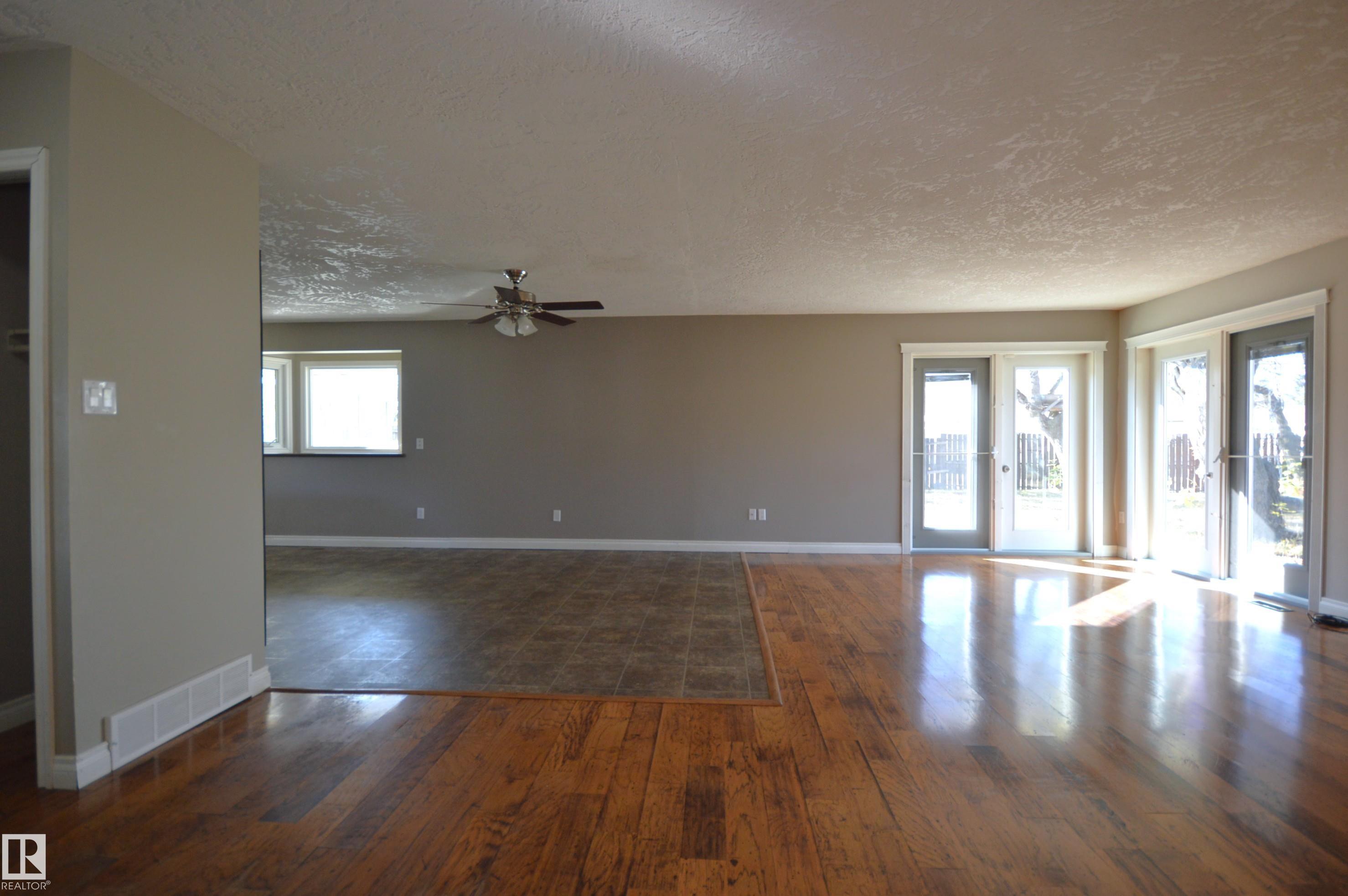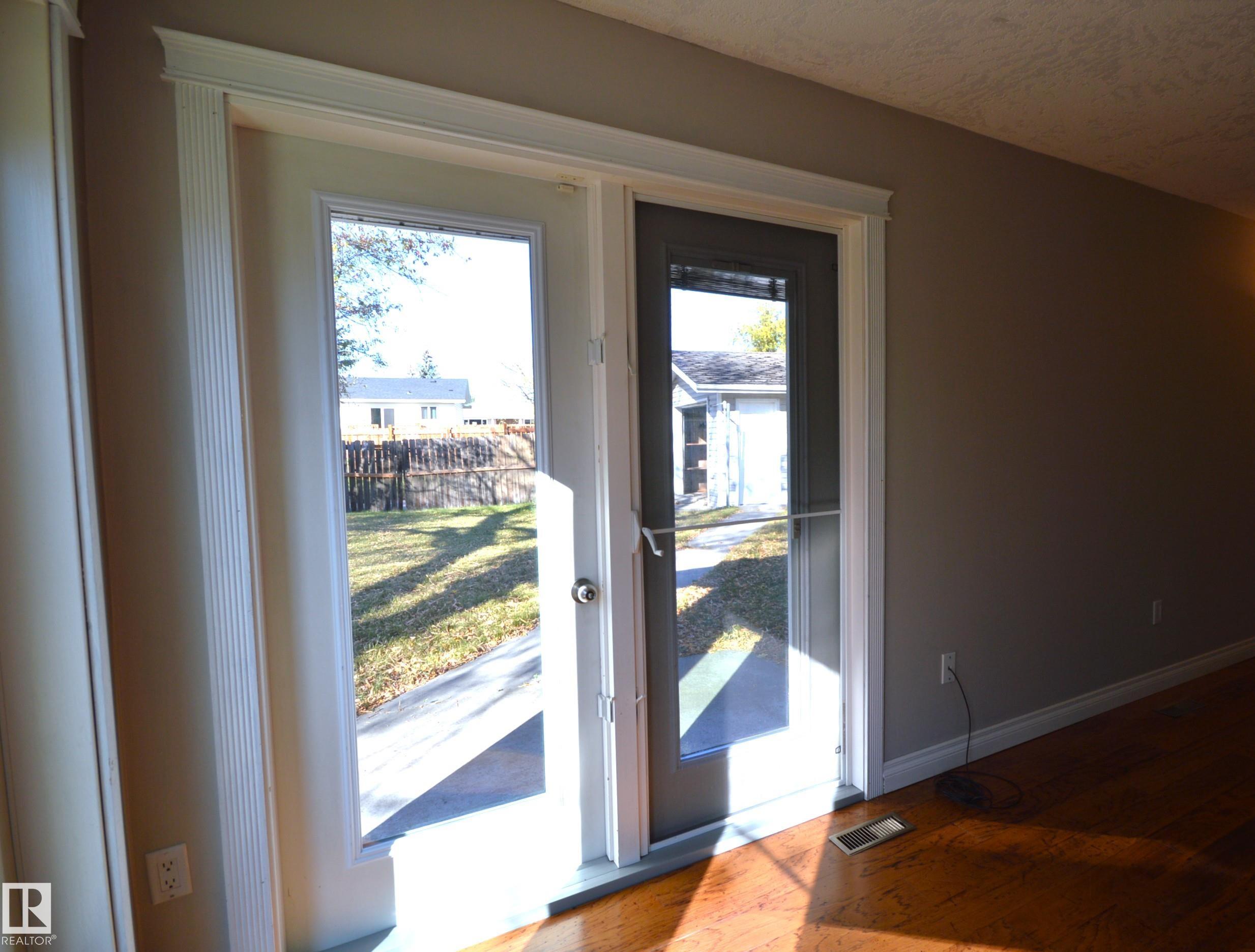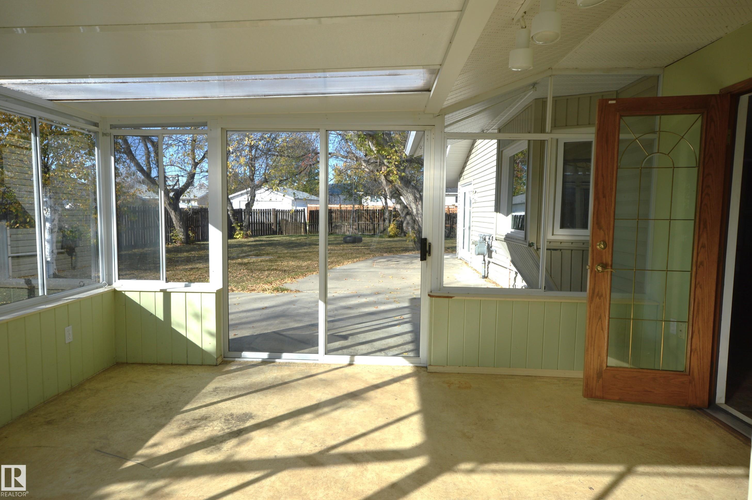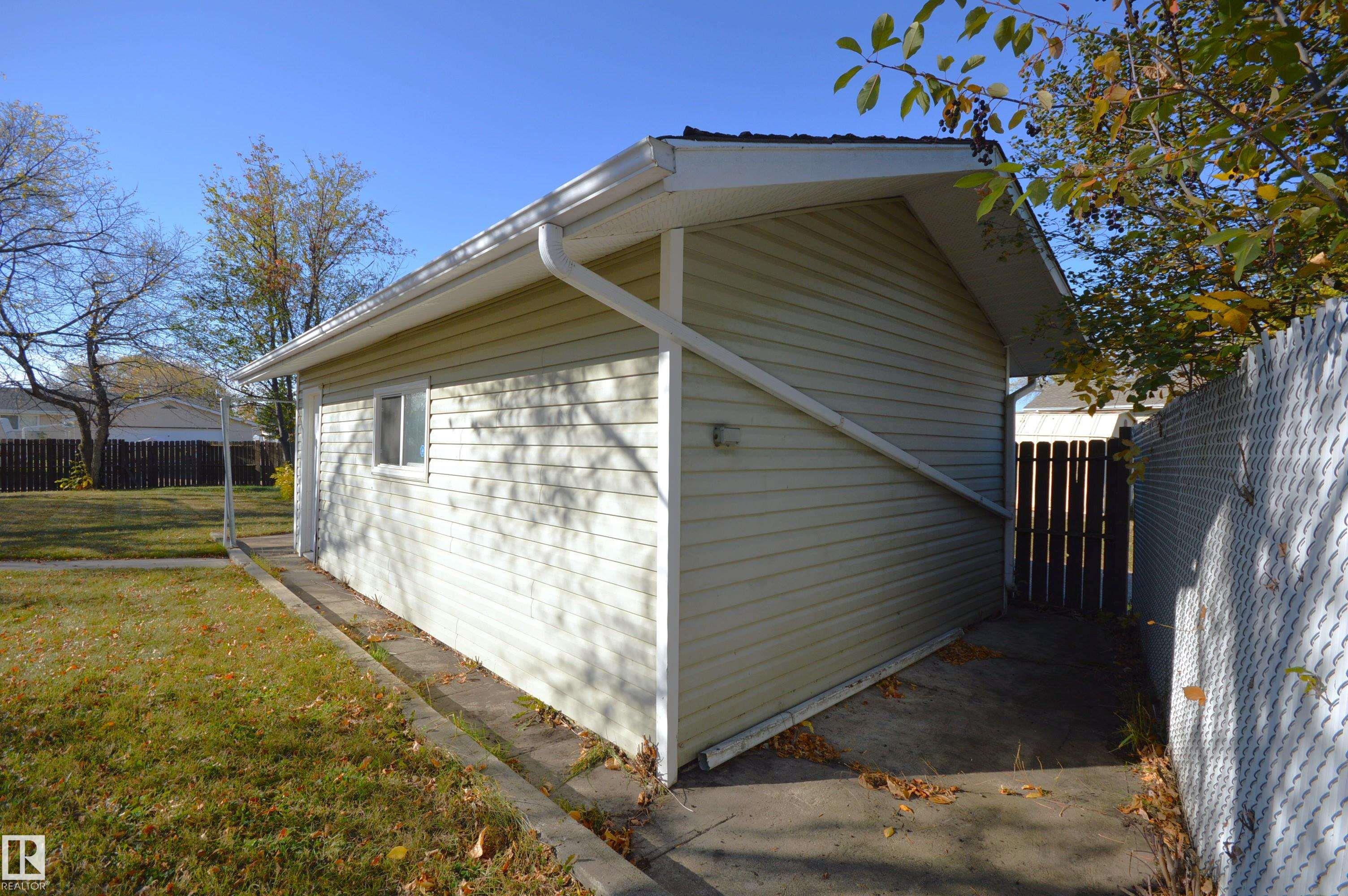Zero carpet ? zero steps! This extensively updated 1978 bungalow, built on a slab with a partial basement offers an impressive main floor living area of roughly 1,400 square feet and 500 sq ft below. The home features vented slab heating and presents an open-concept layout, enhanced by a modern kitchen renovation completed in 2015 creating a flowing living space with patio French doors leading to the huge backyard. There is a double attached garage as well as a detached single garage situated within a large pie-shaped lot, providing ample parking , kids & pet play space and storage options. New shingles 2024, and upgrades throughout the years. Nice hardwood and tile flooring -all essential amenities are conveniently located on one level. 3 bedrooms, 2 bathrooms, including main floor laundry adjacent to a two-piece bathroom, and heated garage right there at the back entry, making this home accessible and practical for all lifestyles. Everybody loves a sunroom and back concrete pad has power run for hottub.
