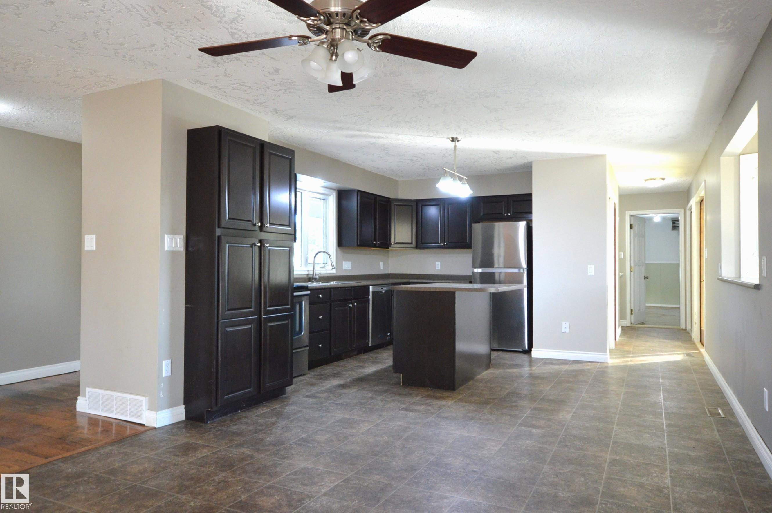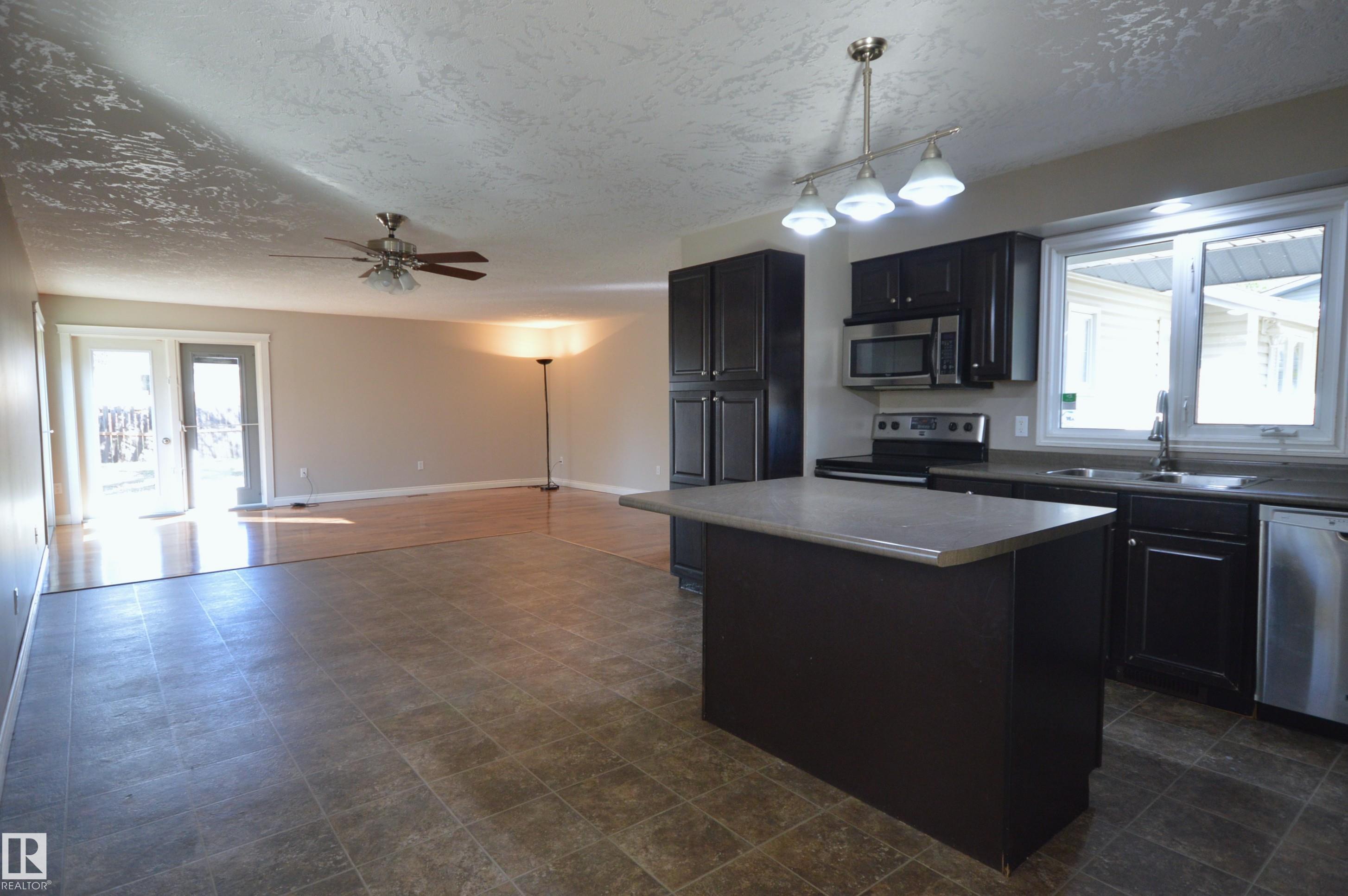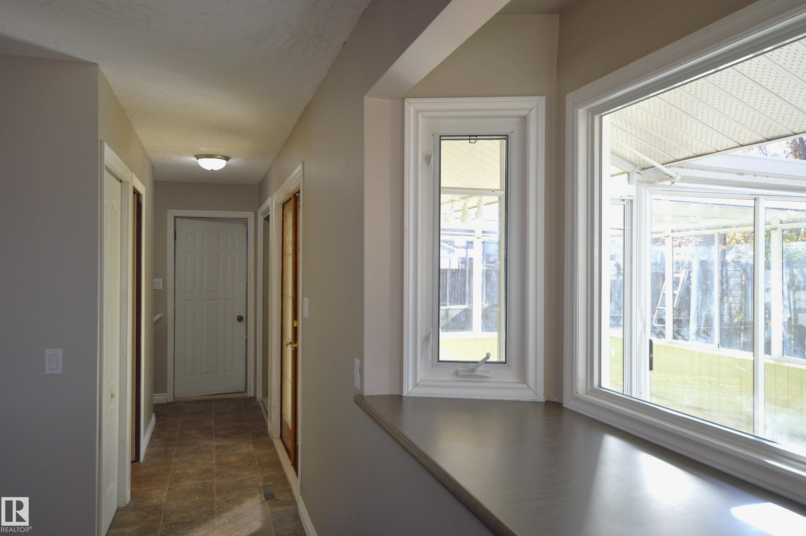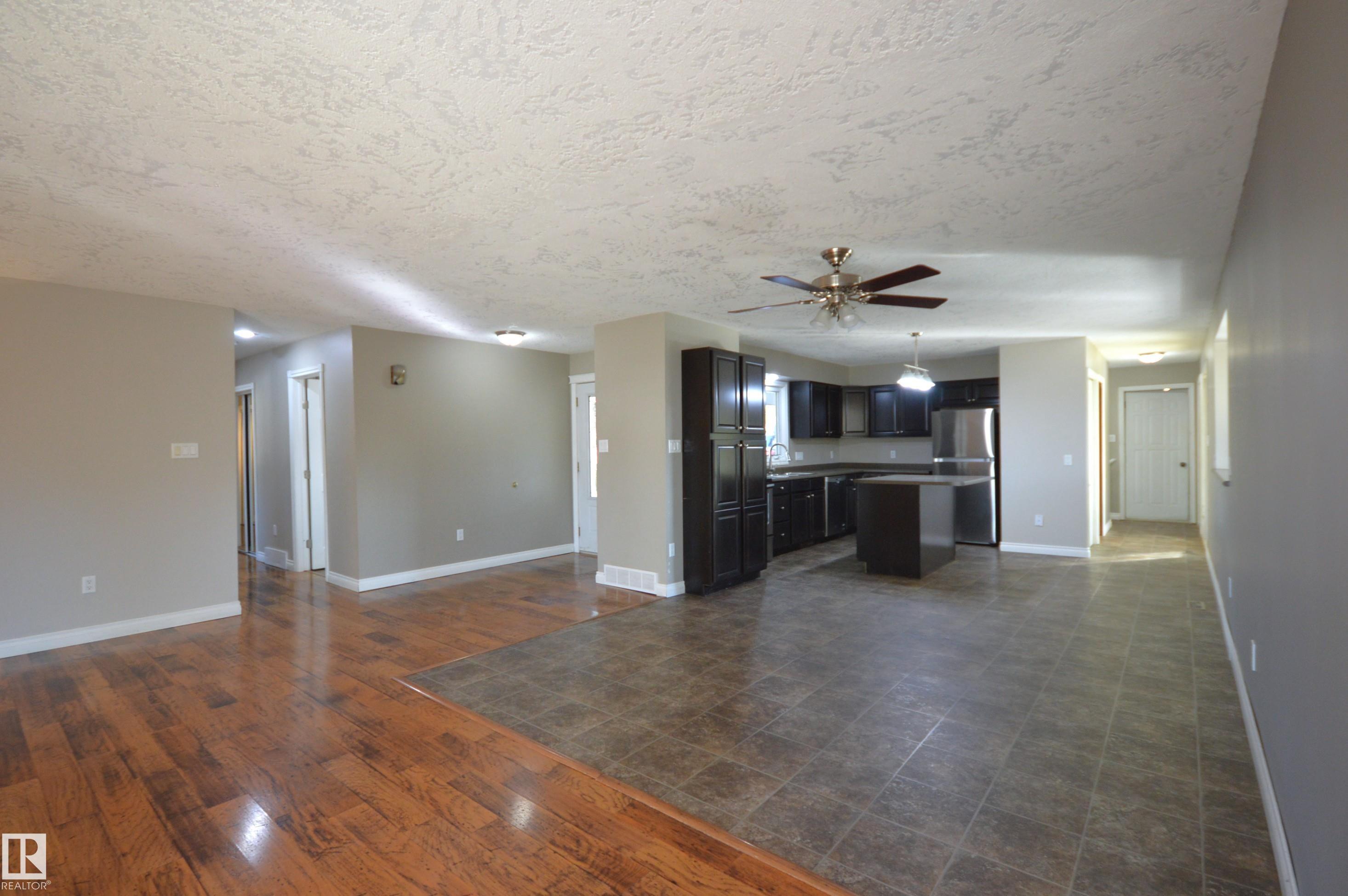 Zero carpet ? zero steps! This extensively updated 1978 bungalow, built on a slab with a partial basement offers an impressive main floor living area of roughly 1,400 square feet and 500 sq ft below. The home features vented slab heating and presents an open-concept layout, enhanced by a modern kitchen renovation completed in 2015 creating a flowing living space with patio French doors leading to the huge backyard. There is a double attached garage as well as a detached single garage situated within a large pie-shaped lot, providing ample parking , kids & pet play space and storage options. New shingles 2024, and upgrades throughout the years. Nice hardwood and tile flooring -all essential amenities are conveniently located on one level. 3 bedrooms, 2 bathrooms, including main floor laundry adjacent to a two-piece bathroom, and heated garage right there at the back entry, making this home accessible and practical for all lifestyles. Everybody loves a sunroom and back concrete pad has power run for hottub.