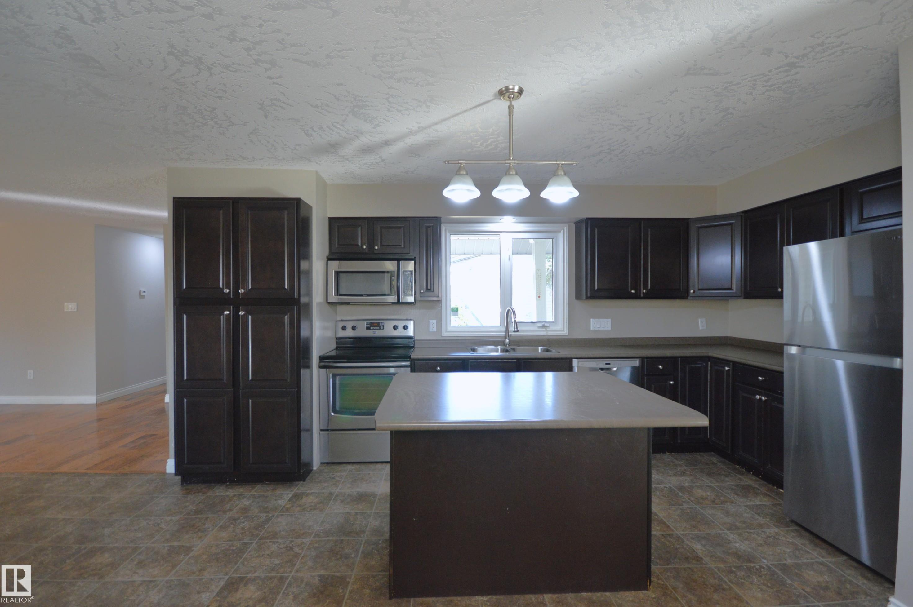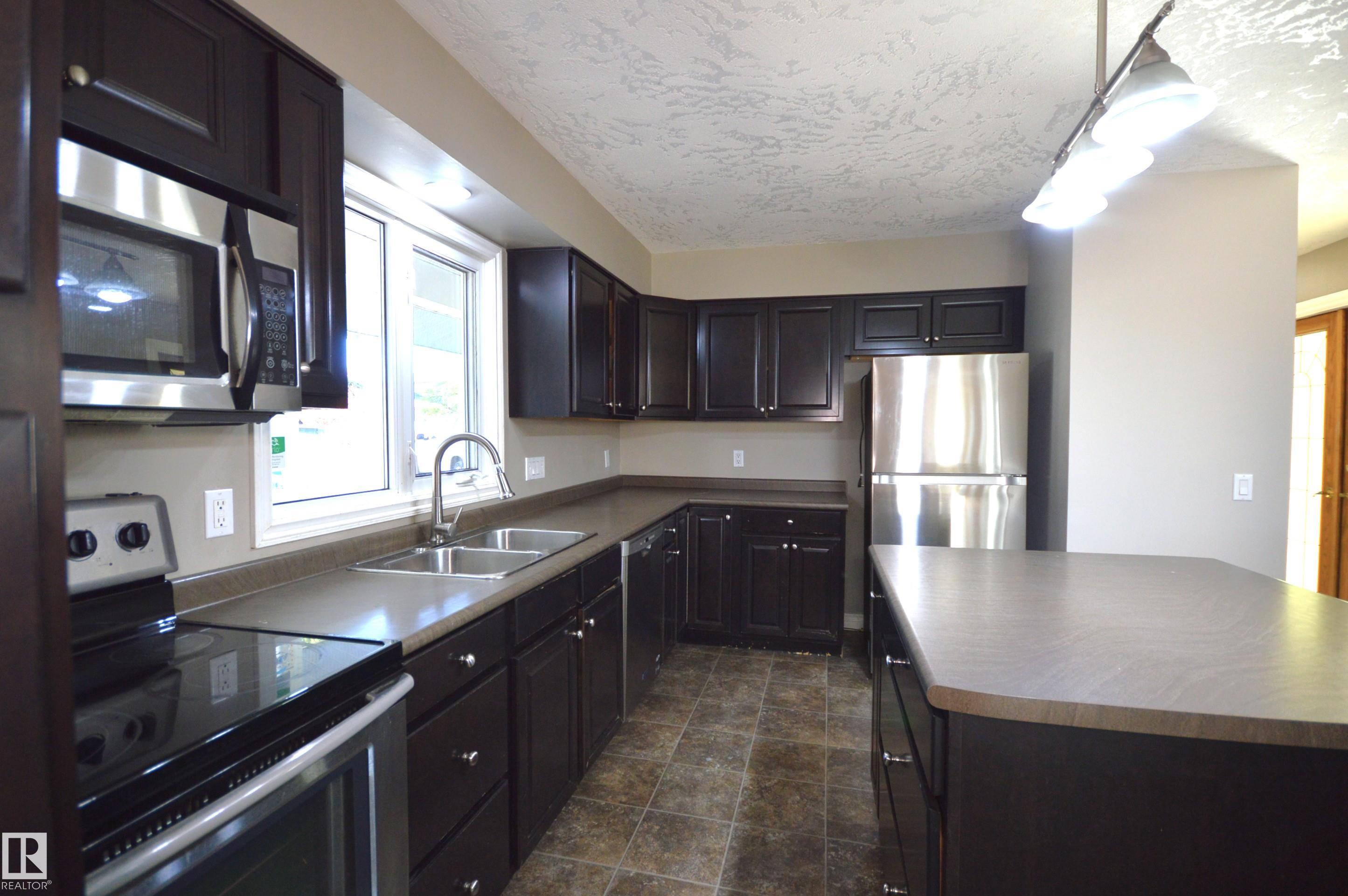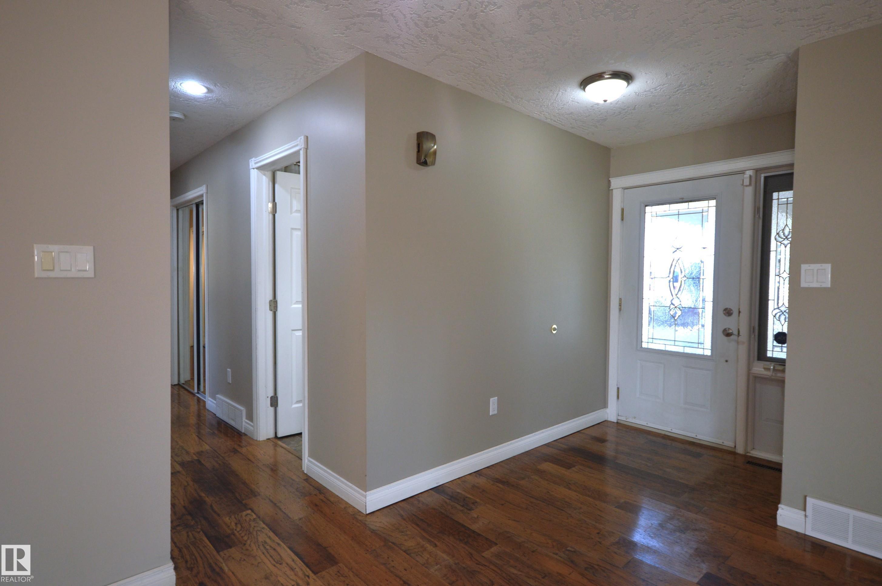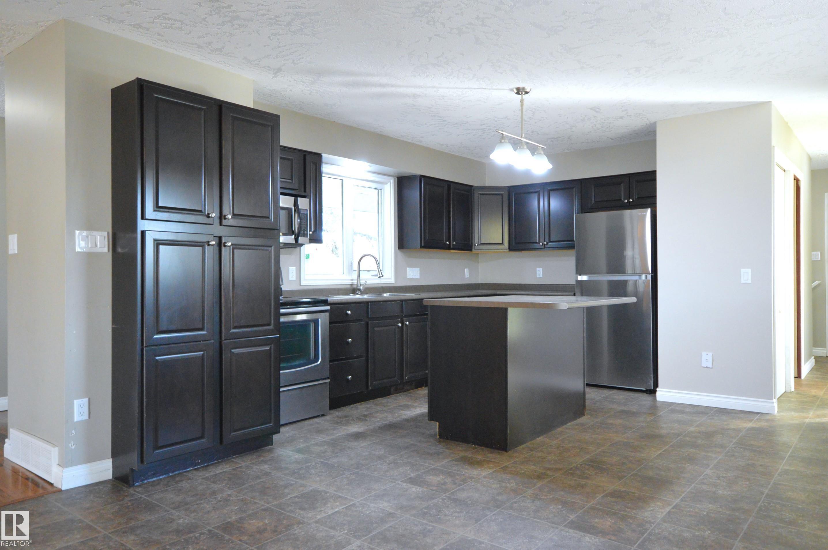 Zero carpet ? zero steps! This extensively updated 1978 bungalow, built on a slab with a partial basement offers an impressive main floor living area of roughly 1,400 square feet and 500 sq ft below. The home features vented slab heating and presents an open-concept layout, enhanced by a modern kitchen renovation completed in 2015 creating a flowing living space with patio French doors leading to the huge backyard. There is a double attached garage as well as a detached single garage situated within a large pie-shaped lot, providing ample parking , kids & pet play space and storage options. New shingles 2024, and upgrades throughout the years. Nice hardwood and tile flooring -all essential amenities are conveniently located on one level. 3 bedrooms, 2 bathrooms, including main floor laundry adjacent to a two-piece bathroom, and heated garage right there at the back entry, making this home accessible and practical for all lifestyles. Everybody loves a sunroom and back concrete pad has power run for hottub.
