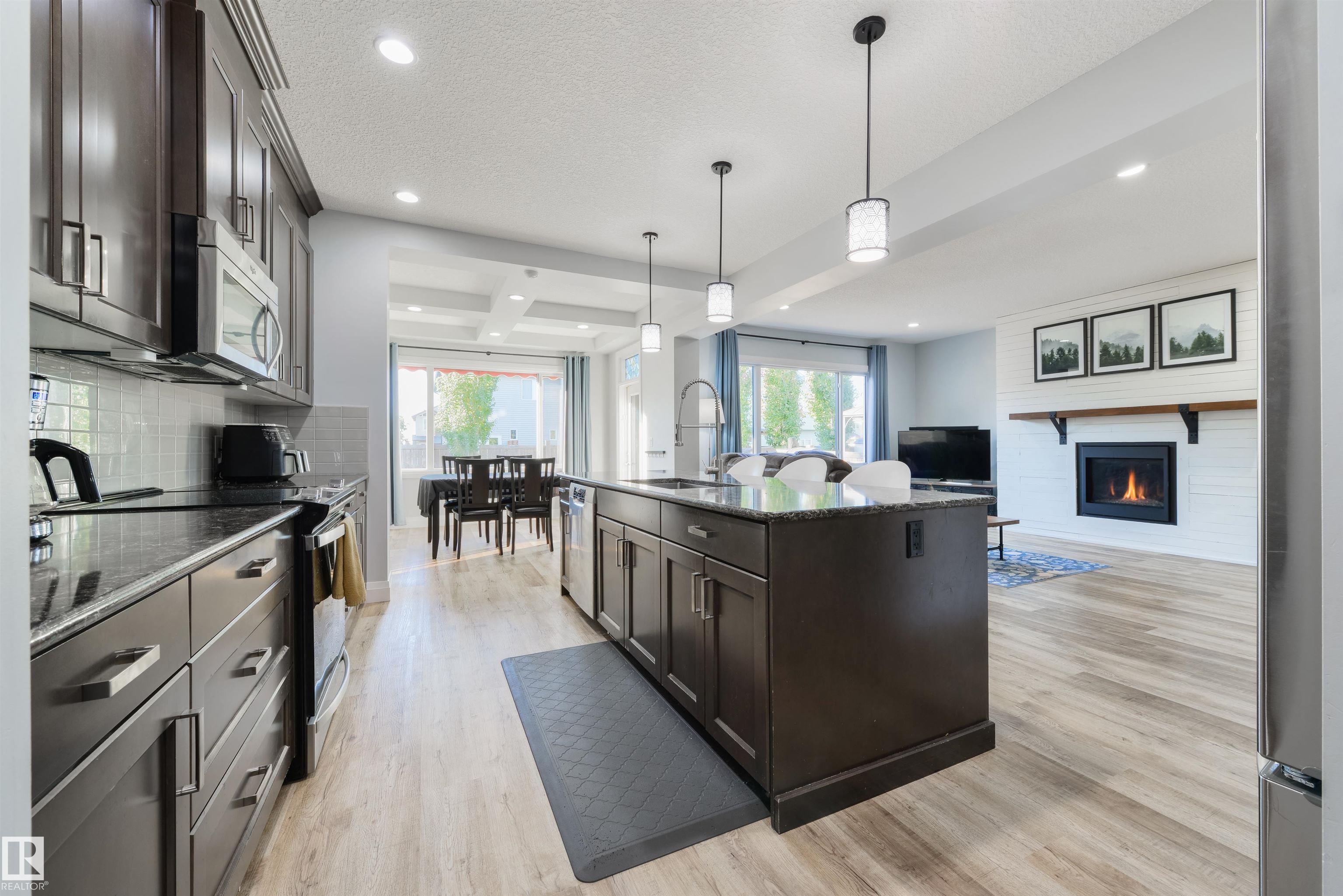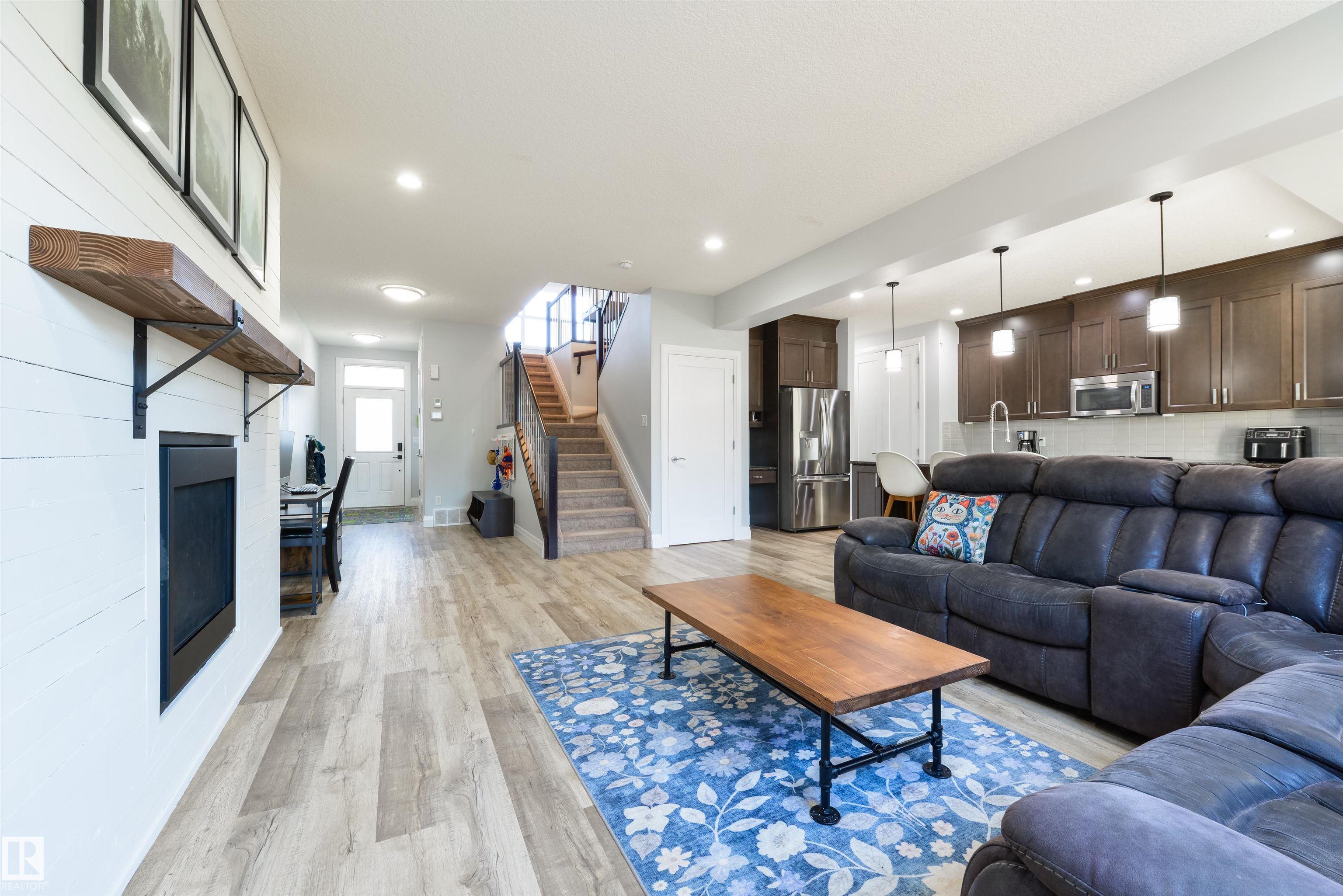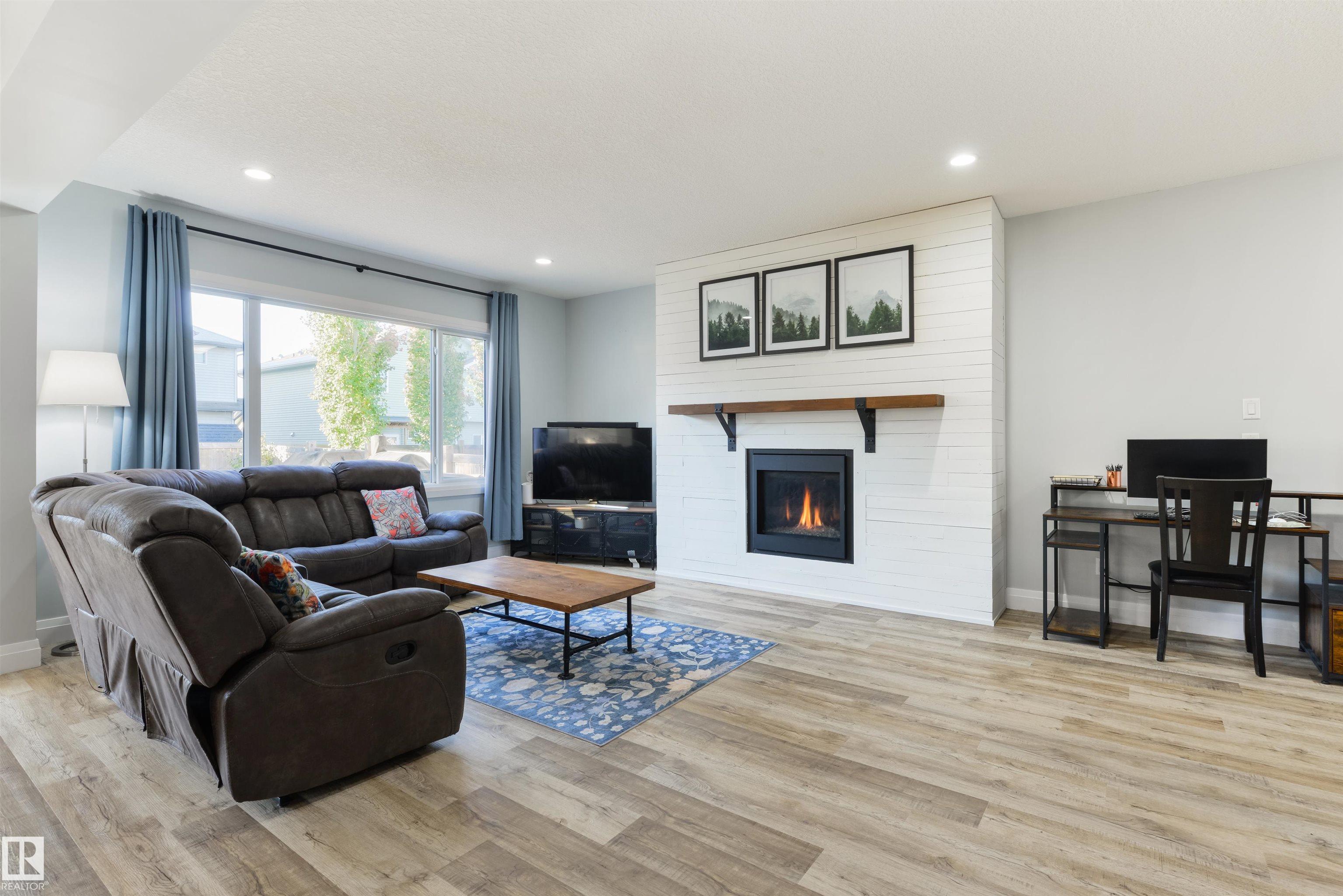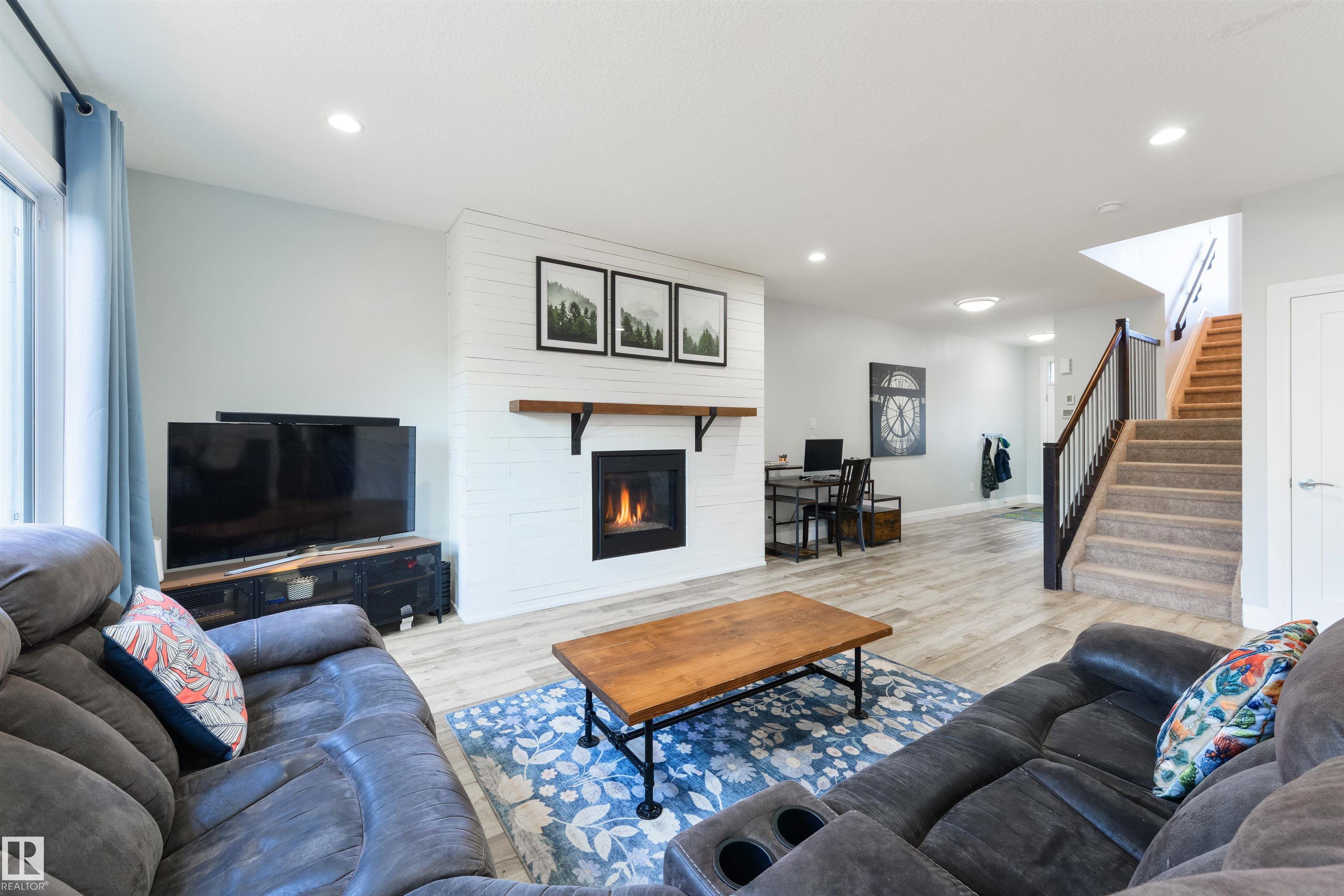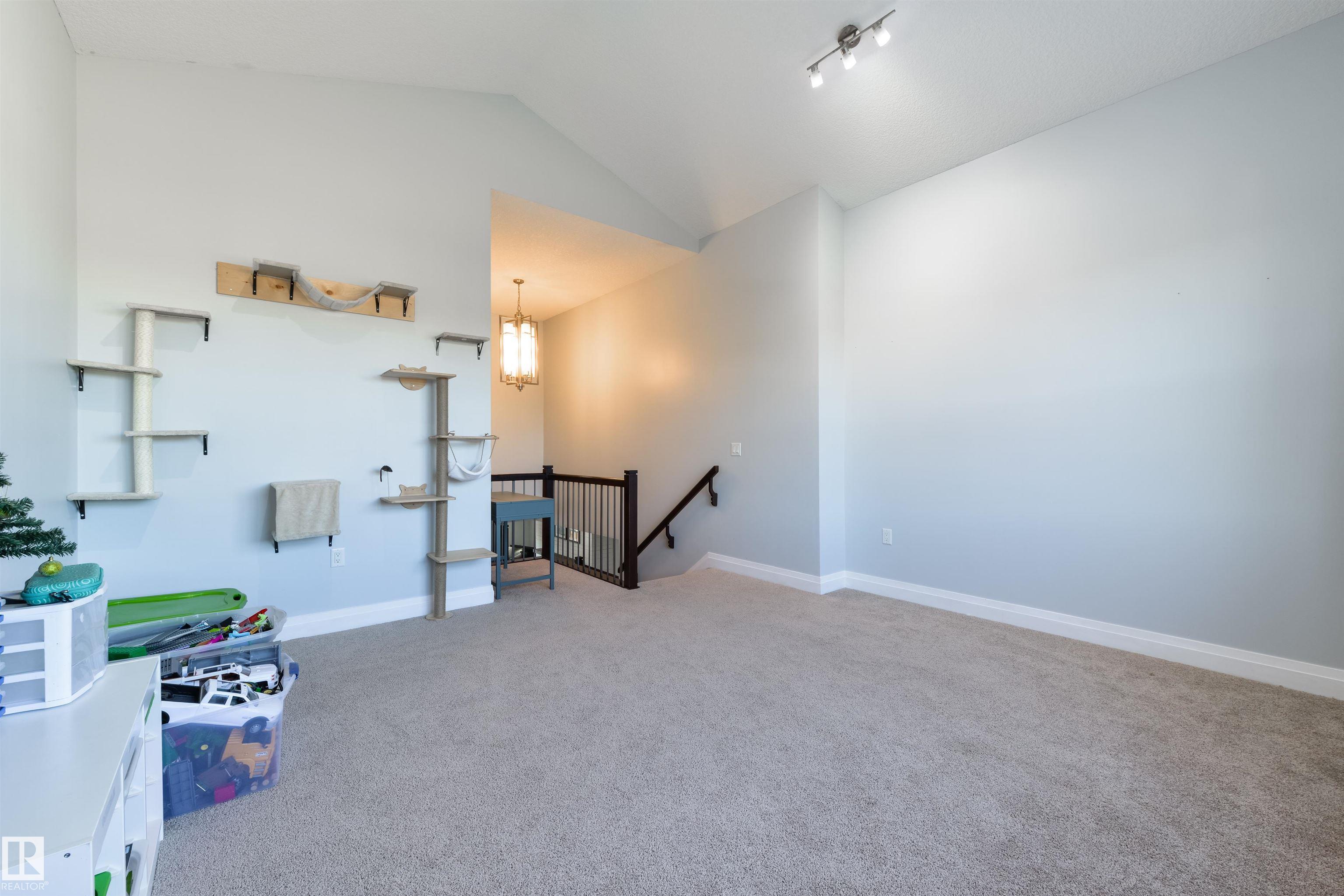Fully-finished with FIVE bedrooms & ready for your family! Featuring over 3,000 sqft of finished space, this 2-storey home showcases central A/C, an open-concept layout, 9? ceilings, luxury vinyl plank flooring, a large entryway to welcome your guests, a great living room with cozy gas fireplace, gorgeous kitchen with full-height soft-close cabinetry, stainless steel appliances, QUARTZ countertops, center island, & separate dining area, top floor bonus room with vaulted ceilings, upstairs laundry, 5pc guest bath, 5 total bedrooms including a king-sized owner?s suite with generous walk-in closet and adjoining 5pc ensuite, and a fully-finished basement. Complete with an exterior deck, SOUTH-FACING backyard, and a HEATED double-attached garage, this home is close to schools, walking trails, shopping, and The Stony Plain Golf Course, and has quick & easy highway access.