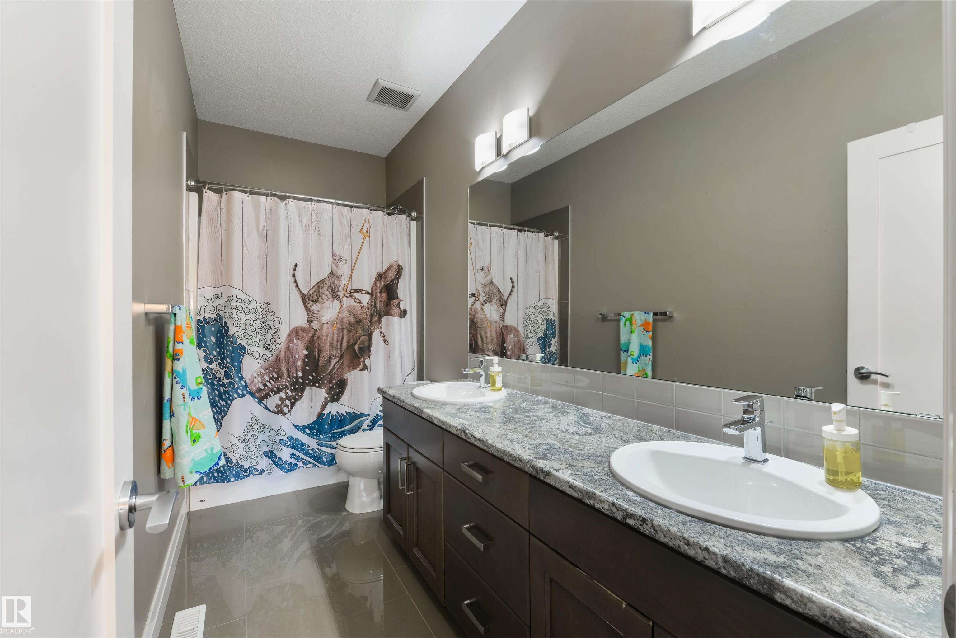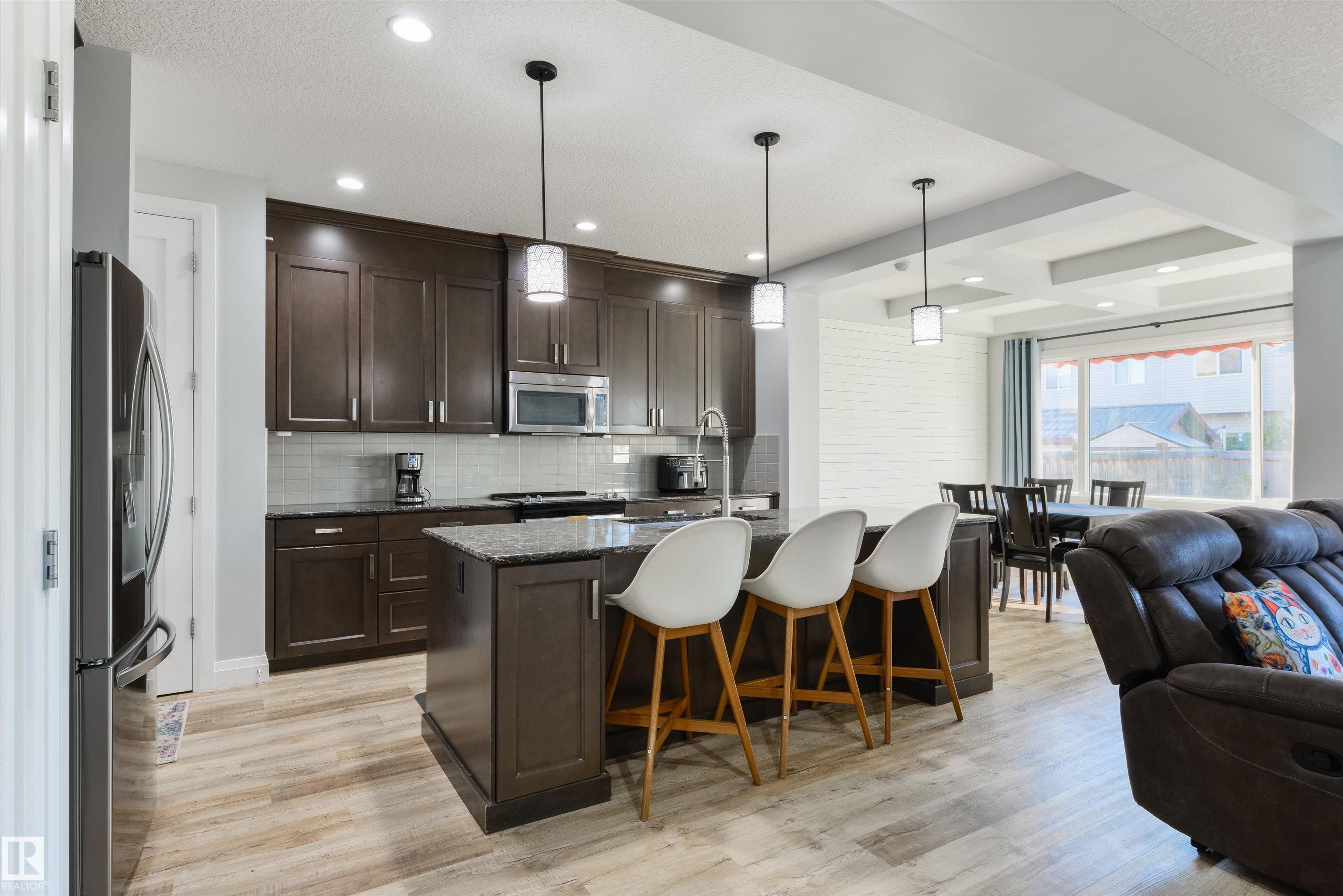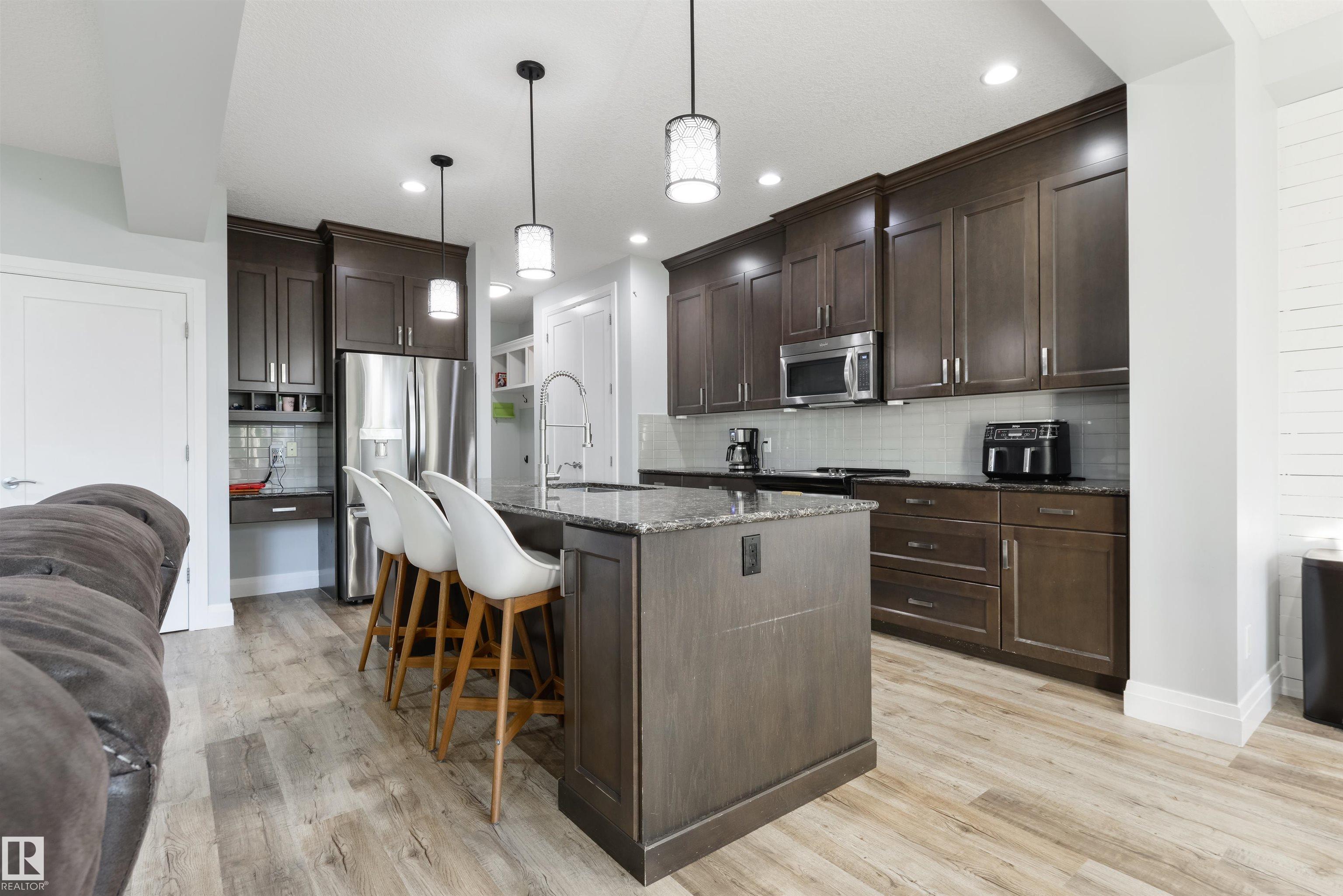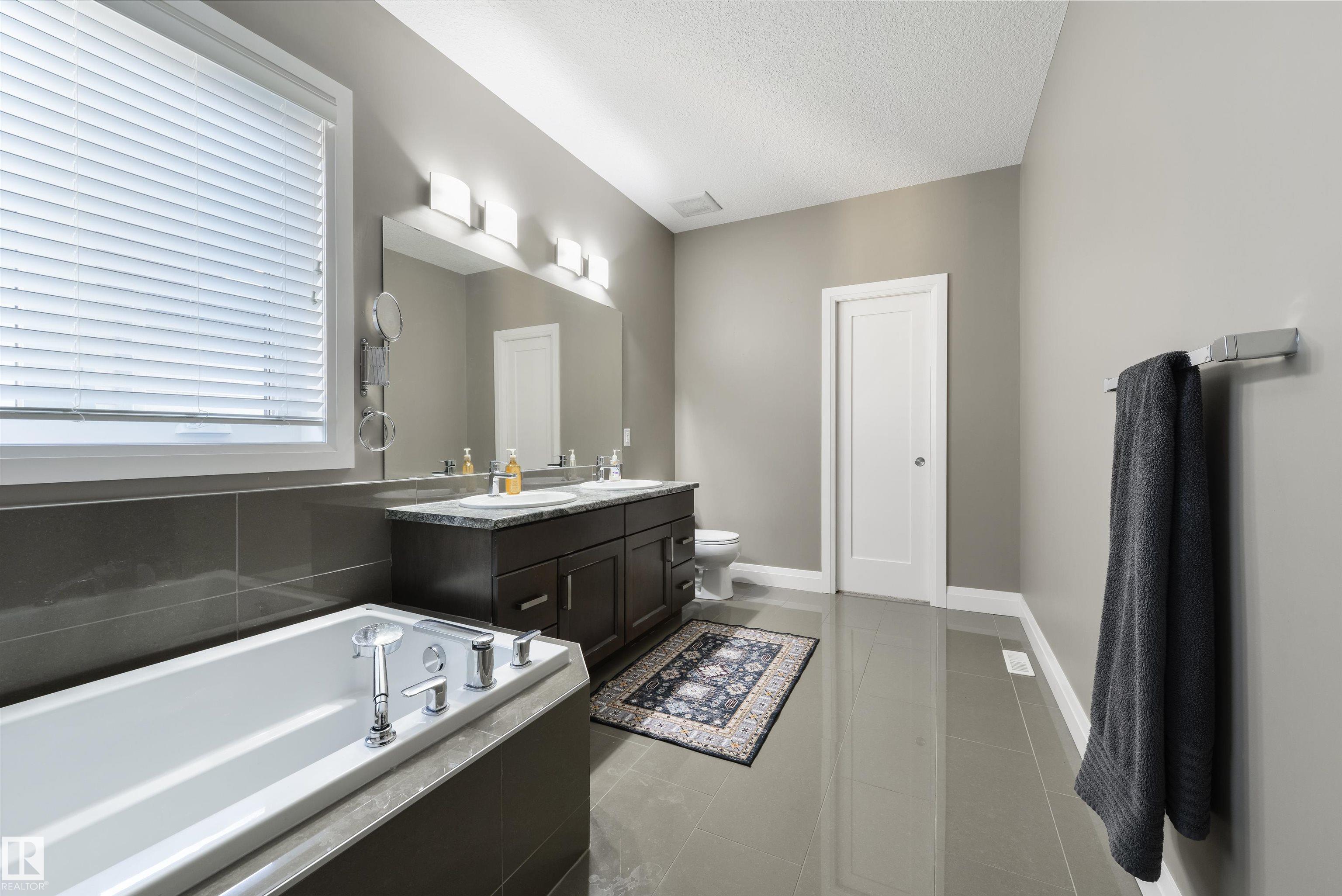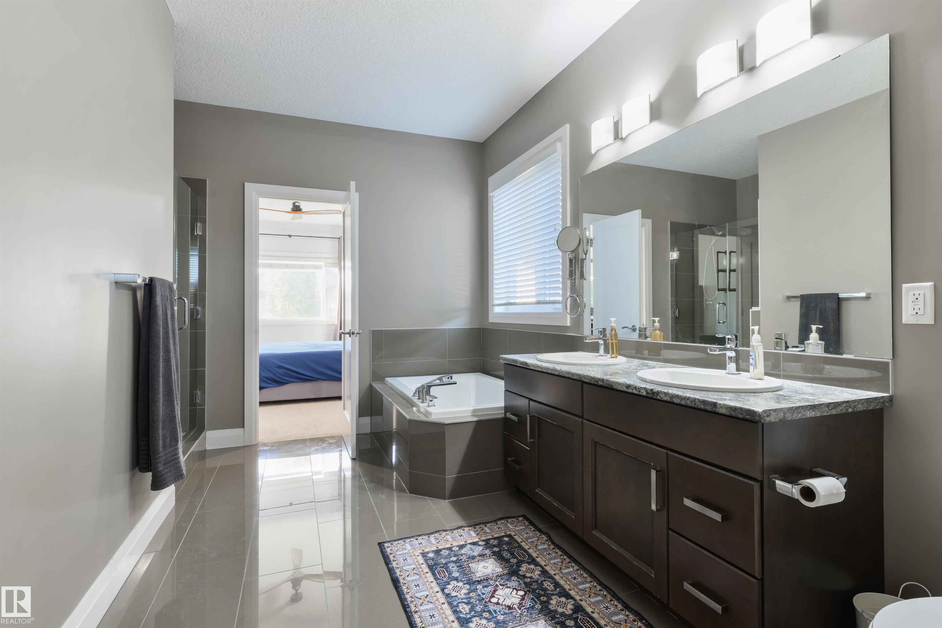 Fully-finished with FIVE bedrooms & ready for your family! Featuring over 3,000 sqft of finished space, this 2-storey home showcases central A/C, an open-concept layout, 9? ceilings, luxury vinyl plank flooring, a large entryway to welcome your guests, a great living room with cozy gas fireplace, gorgeous kitchen with full-height soft-close cabinetry, stainless steel appliances, QUARTZ countertops, center island, & separate dining area, top floor bonus room with vaulted ceilings, upstairs laundry, 5pc guest bath, 5 total bedrooms including a king-sized owner?s suite with generous walk-in closet and adjoining 5pc ensuite, and a fully-finished basement. Complete with an exterior deck, SOUTH-FACING backyard, and a HEATED double-attached garage, this home is close to schools, walking trails, shopping, and The Stony Plain Golf Course, and has quick & easy highway access.