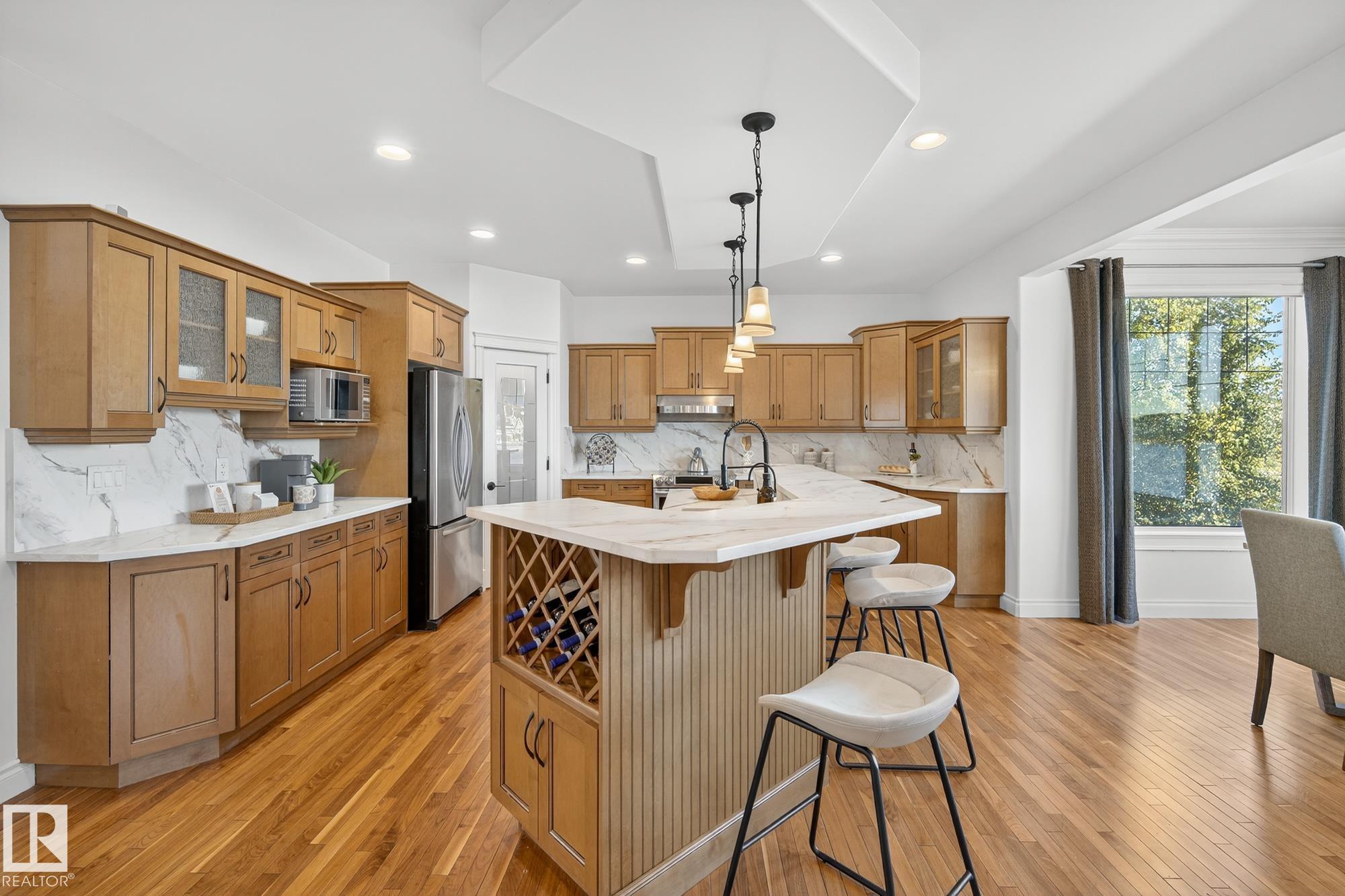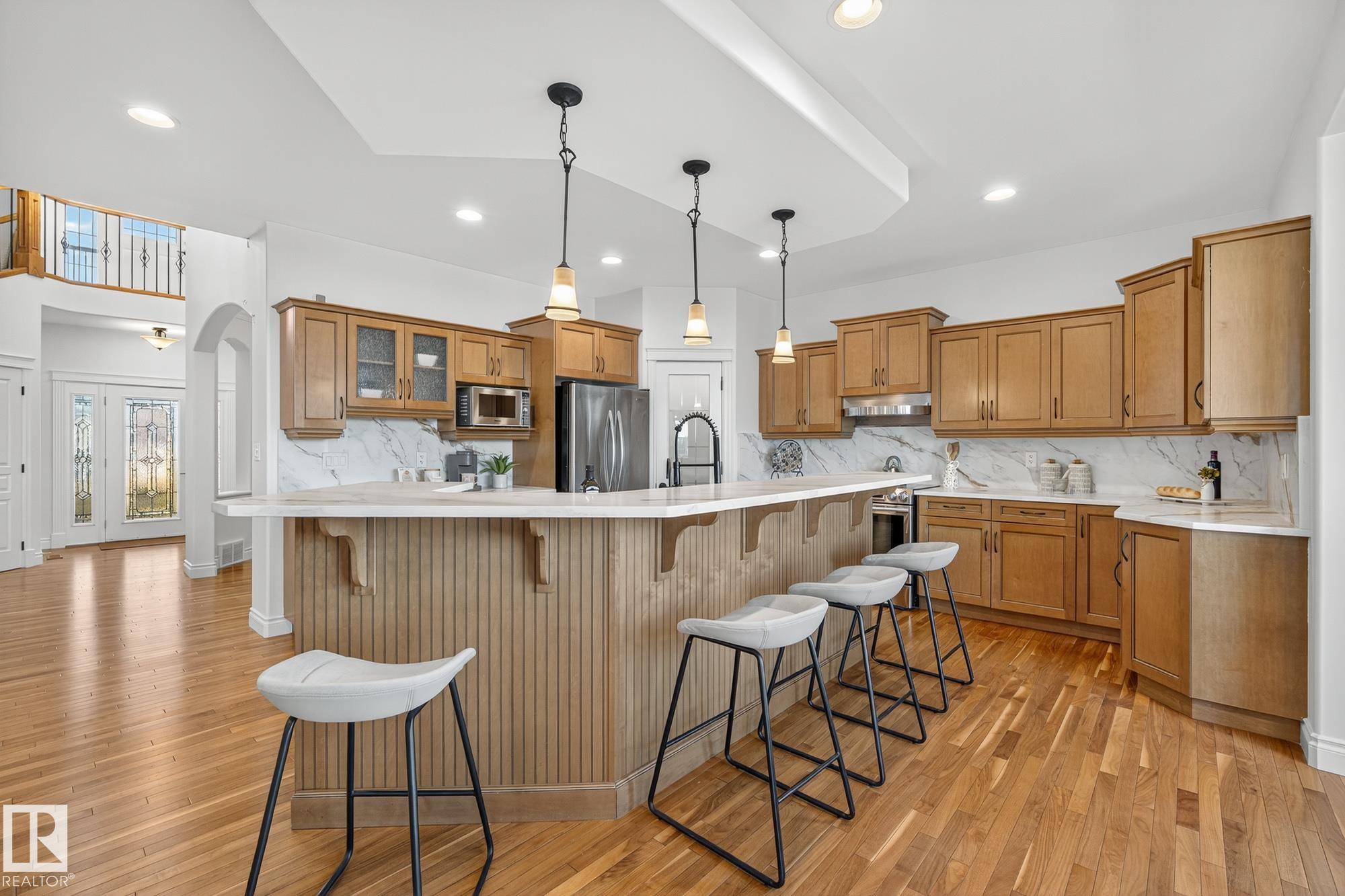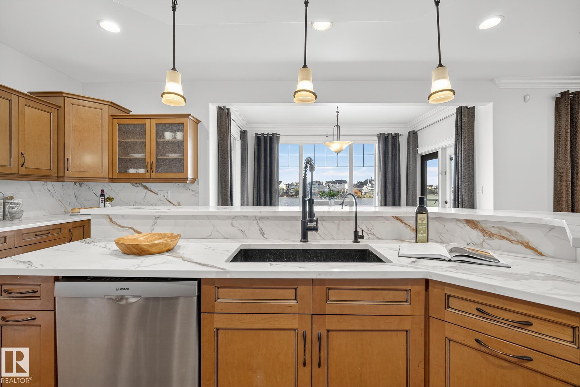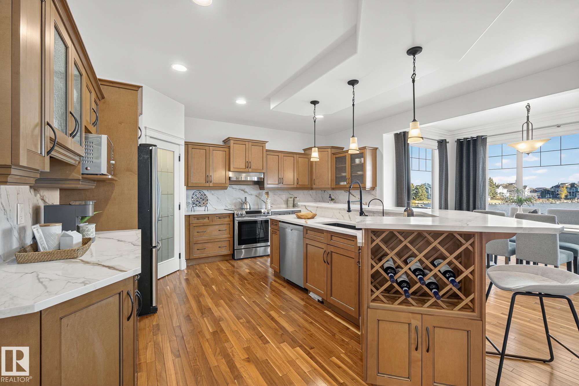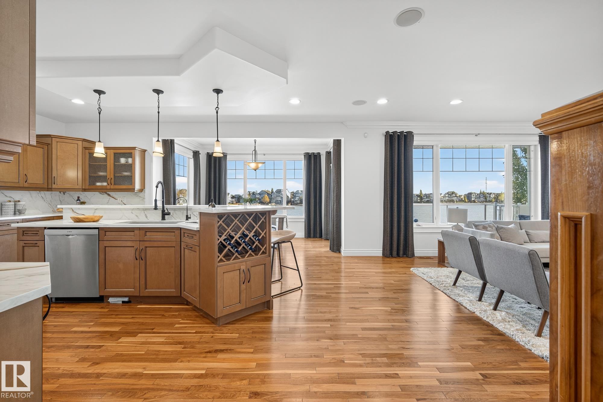 Lakefront Luxury in Summerside on a quiet cul-de-sac! This 4-bedroom up & 1 in fully developed walk out basement offers privacy and wide exposure to Summerside Lake and park views. Wake up to breathtaking sunrises shimmering on the water and unwind as moonlight dances across the lake. Enjoy water activities from your private dock, or simply take in the panoramic views from the sun-filled living spaces. The open-to-above foyer, formal dining room, and kitchen with seamless updated countertops, raised island bar, and breakfast nook create an inviting flow leading, perfect for hosting, the upper deck with spiral stairs to patio below. Upstairs, a bright bonus room captures sunlight all day, and the primary suite features a spa-inspired ensuite with Jacuzzi. The walk-out basement includes wet bar, heated floors and full lake views. Complete with air conditioning, in ground sprinklers, soothing rock pond, speakers throughout home, 3-car garage, and close proximity to major highways.
