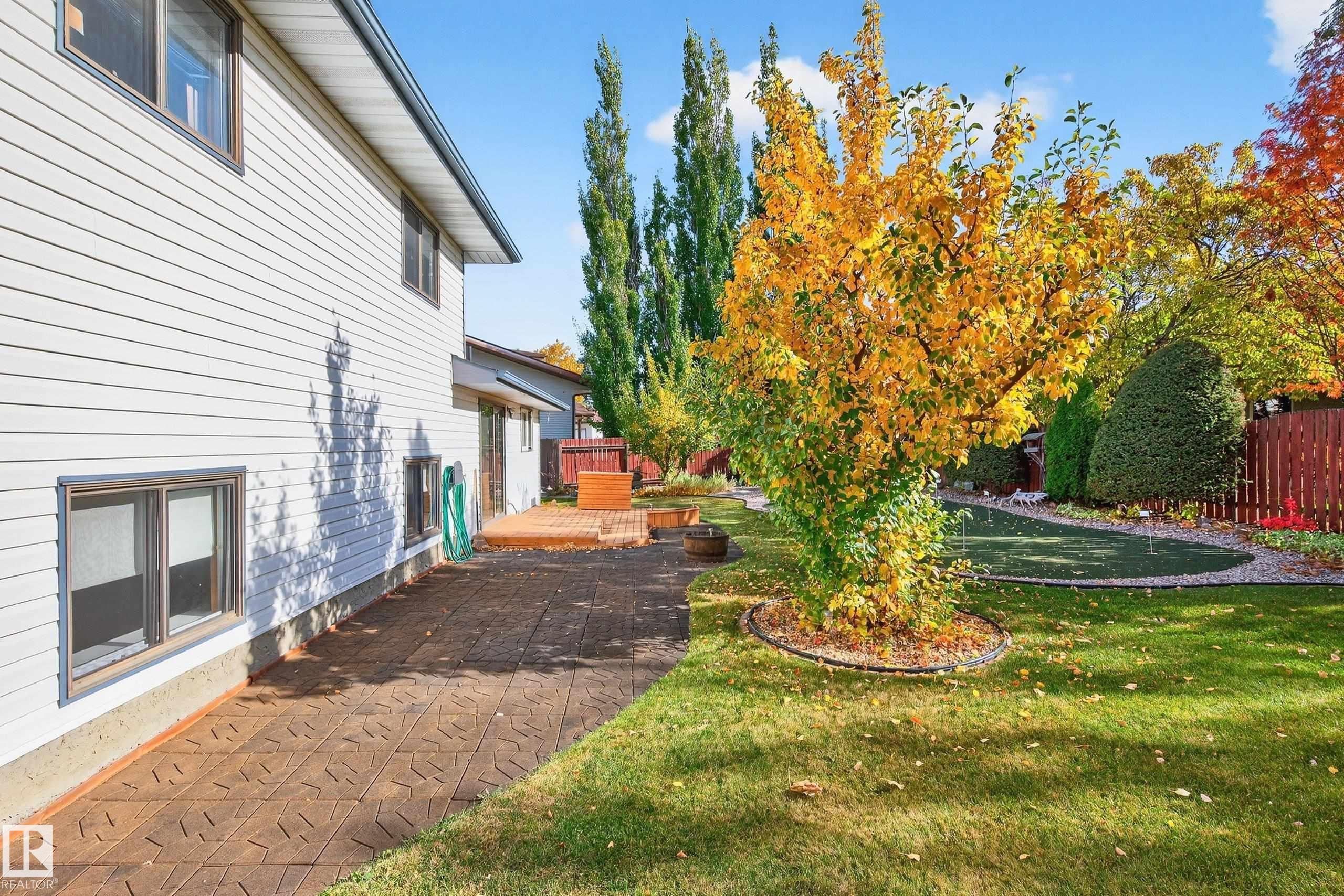 5 minutes to the Edmonton International Airport AND with your own Putting Green!!! This ORIGINAL OWNER Leduc, Single Family Masterpiece is nestled in a quiet, mature neighborhood; located across the Street from Adolph Community Park and walking distance to the Leduc Recreation Centre. You will be pleasantly blown away, but the curb appeal of the unique Home, expertly laid out on a huge, private, pie-shaped Lot. Both the front and back, have been meticulously landscaped, to offer maximum privacy and use of space. Move-in ready, this fully finished Home boasts 4 large Bedrooms and an oversized Double Attached Garage. The Dream Basement is sprawling in size; there is a Rec Room, a Bonus Room, a Bedroom, a 3 piece Ensuite AND a Bar!! Located in a quiet cul-de-sac; this spotless and inviting Home is a dream find in Leduc.
