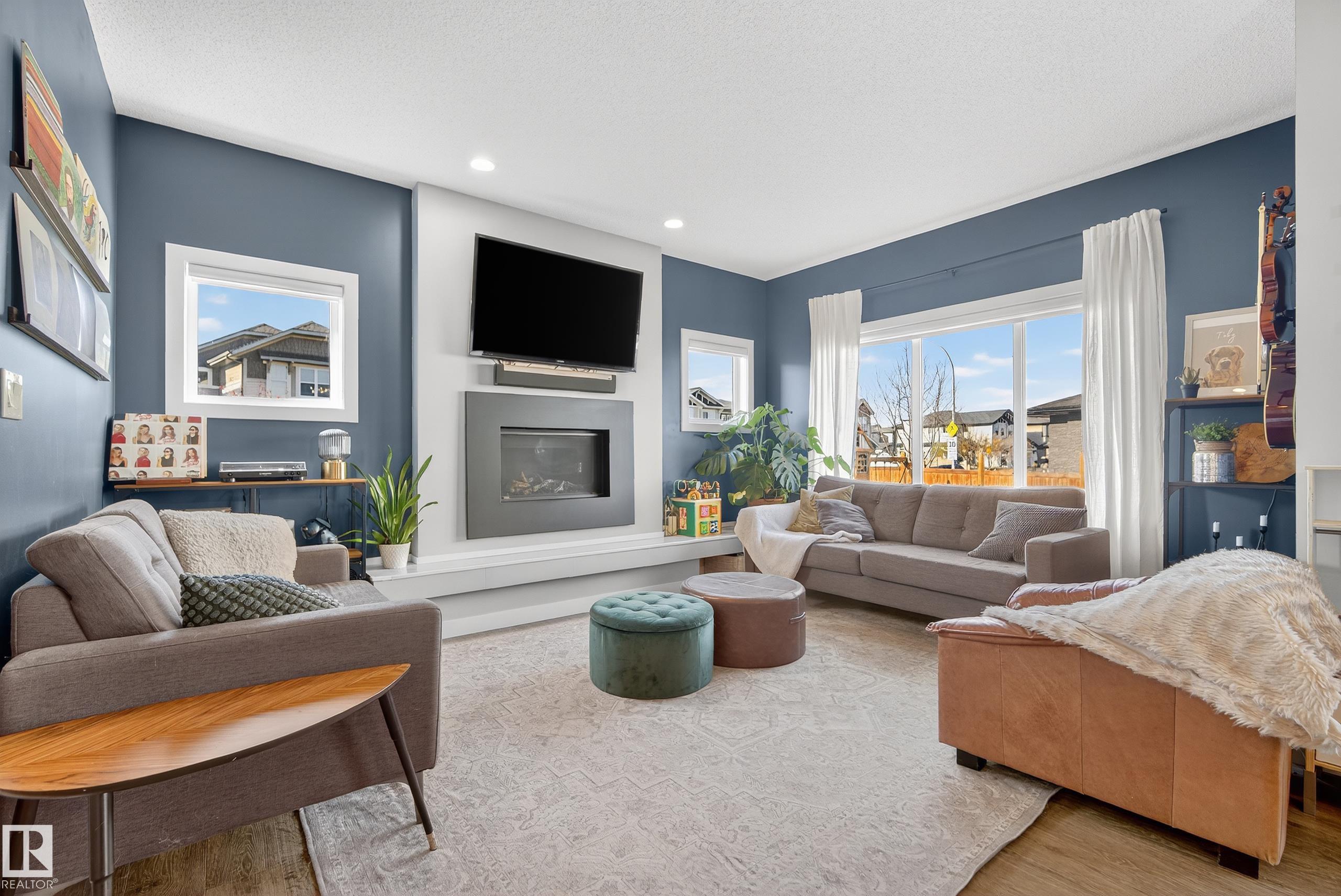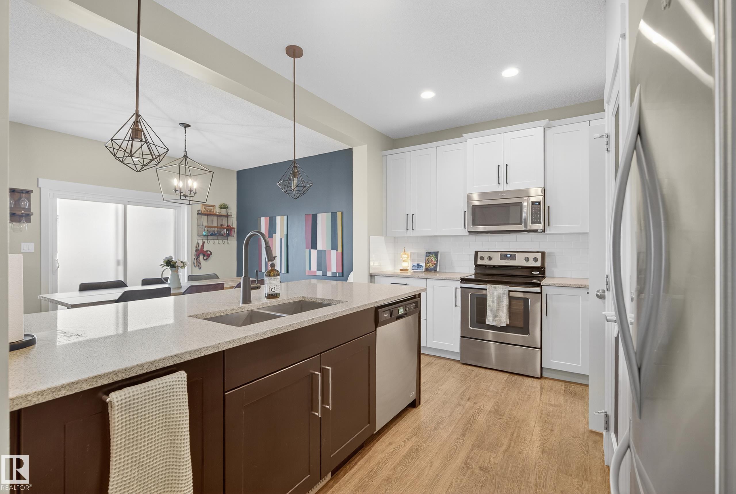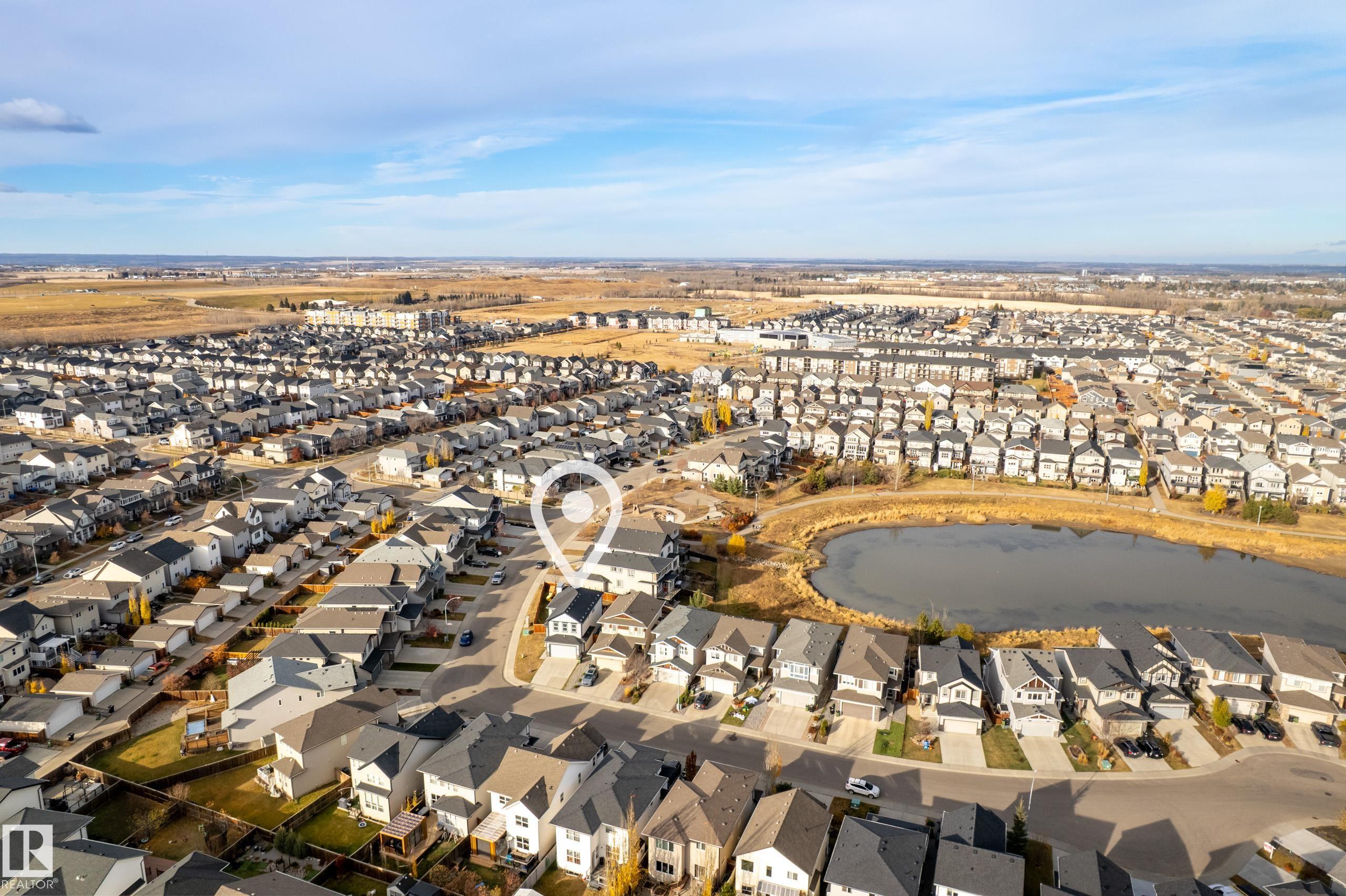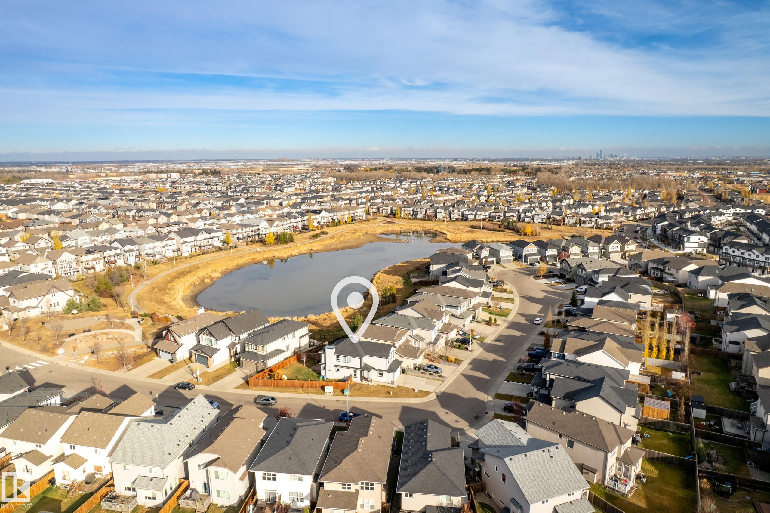 This fully finished two-storey home offers nearly 3,000 sq. ft. of elegant living space in a prime location, steps from man made pond, scenic trails, picnic areas, and a small park. The main floor features an open-concept design with a spacious kitchen, living room, and dining area. The kitchen boasts abundant cabinetry, quartz countertops, and stainless steel appliances, with a convenient walk-through mudroom connecting directly to the double attached, insulated garage. The living room includes a cozy gas fireplace, while the dining area opens onto a deck overlooking the large, fully fenced yard and tranquil pond views. Upstairs, the colossal primary suite is a true retreat, featuring double walk-in his-and-hers closets and a luxurious 6-piece ensuite. Two additional bedrooms, a 4-piece bathroom, a bonus room, and upper-level laundry add comfort and convenience for the whole family. Basement level is fully finished and has 4th bedroom with walk in closet, 4 pce bath and leisure/ family room.