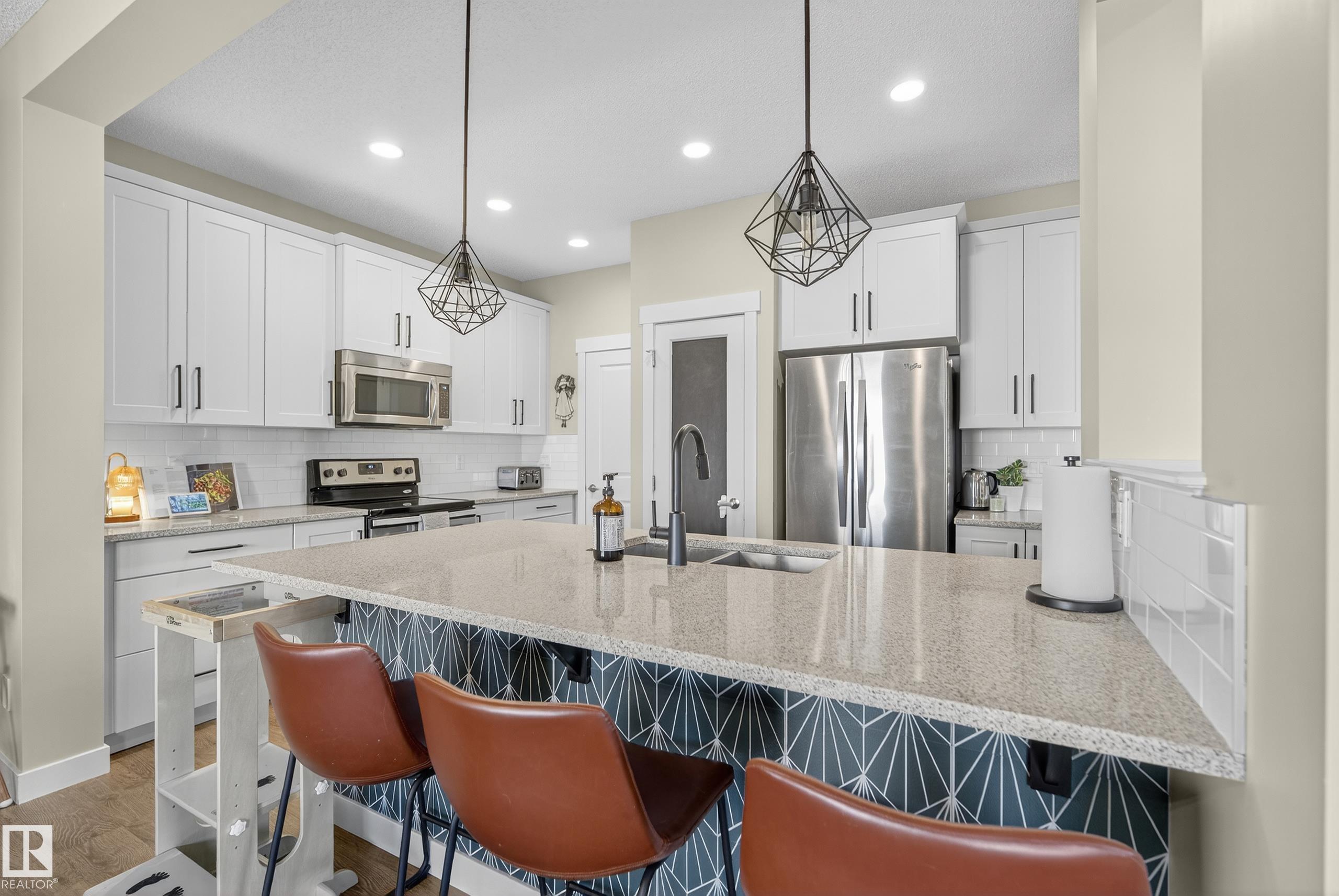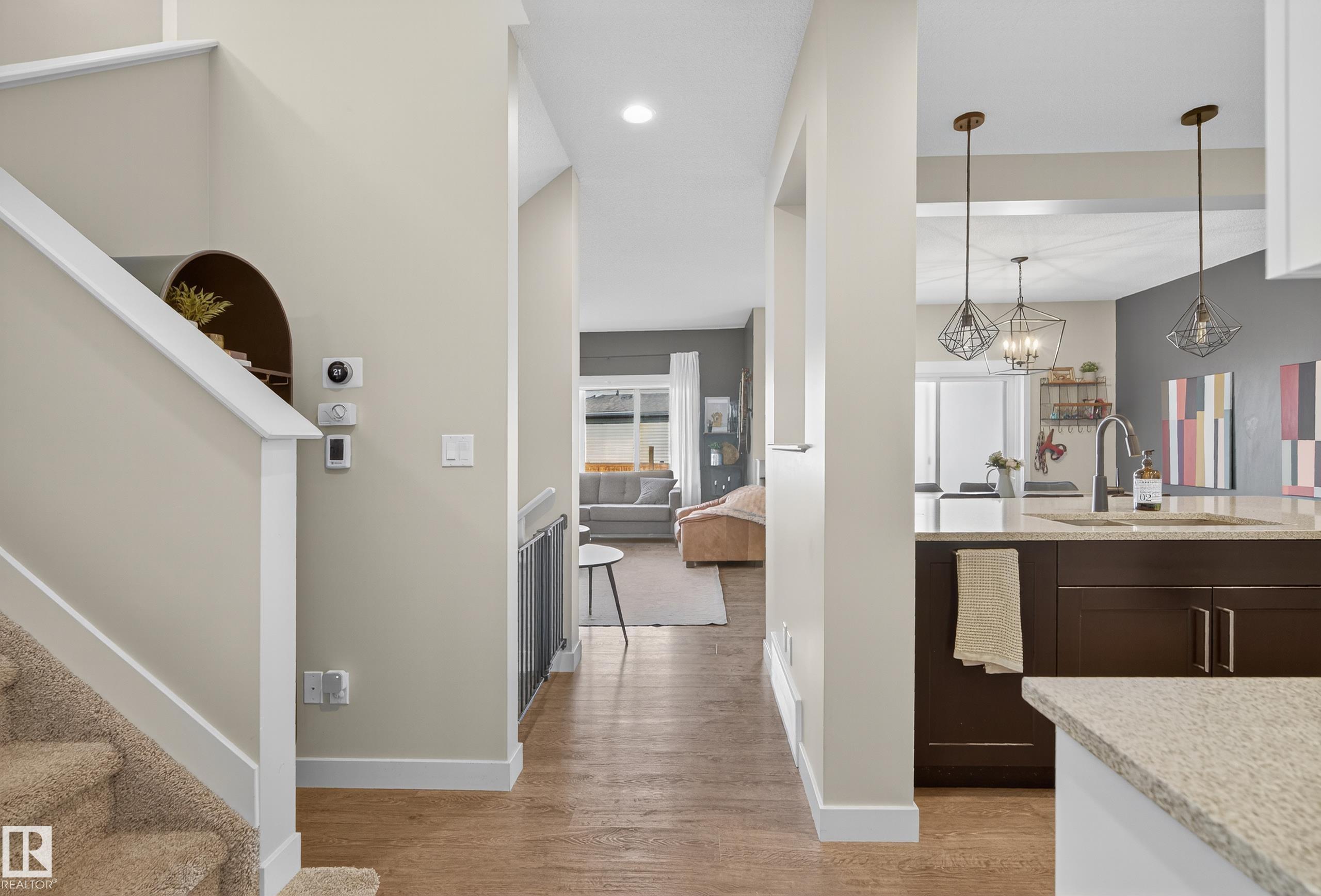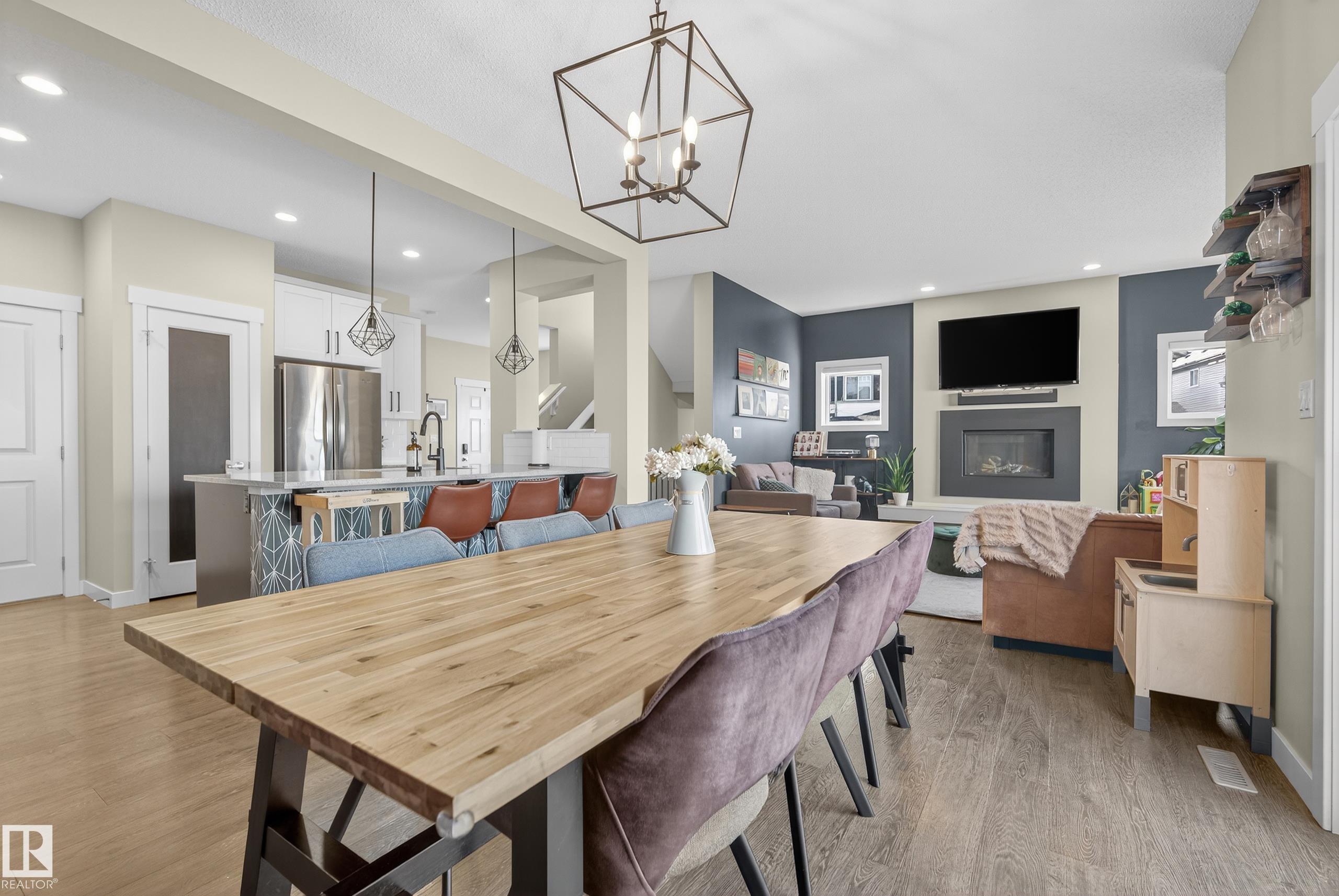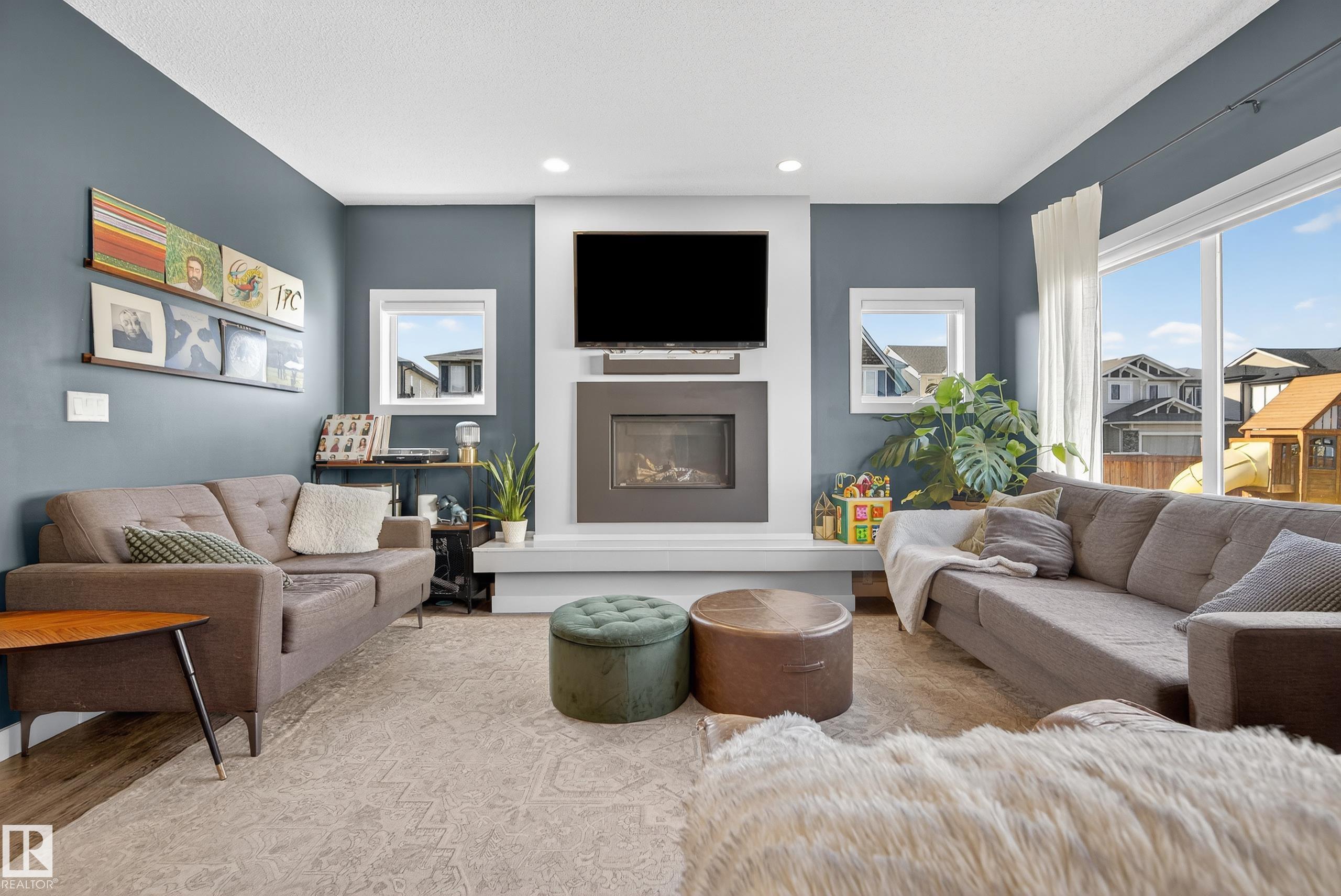 This fully finished two-storey home offers nearly 3,000 sq. ft. of elegant living space in a prime location, steps from man made pond, scenic trails, picnic areas, and a small park. The main floor features an open-concept design with a spacious kitchen, living room, and dining area. The kitchen boasts abundant cabinetry, quartz countertops, and stainless steel appliances, with a convenient walk-through mudroom connecting directly to the double attached, insulated garage. The living room includes a cozy gas fireplace, while the dining area opens onto a deck overlooking the large, fully fenced yard and tranquil pond views. Upstairs, the colossal primary suite is a true retreat, featuring double walk-in his-and-hers closets and a luxurious 6-piece ensuite. Two additional bedrooms, a 4-piece bathroom, a bonus room, and upper-level laundry add comfort and convenience for the whole family. Basement level is fully finished and has 4th bedroom with walk in closet, 4 pce bath and leisure/ family room.