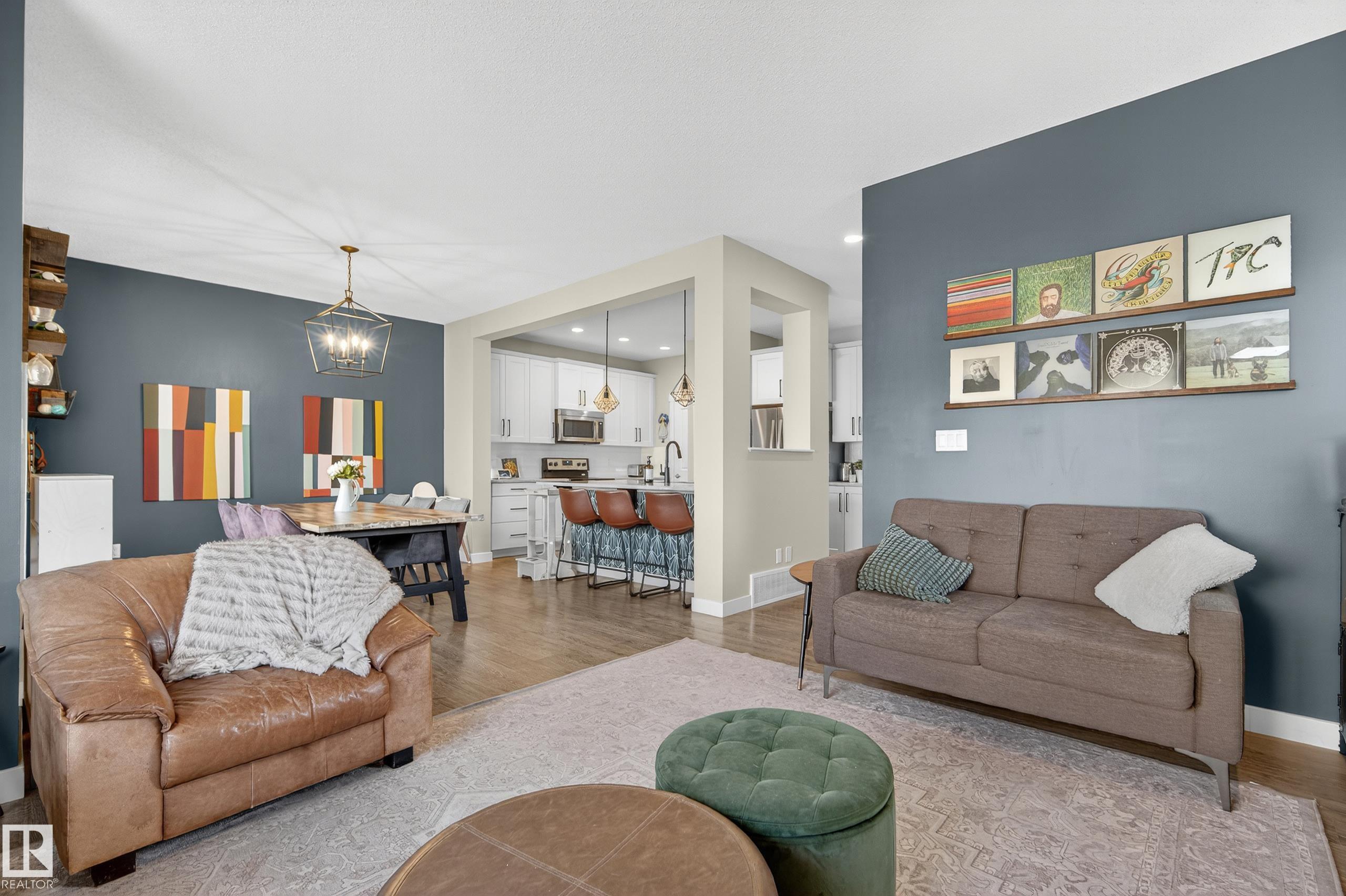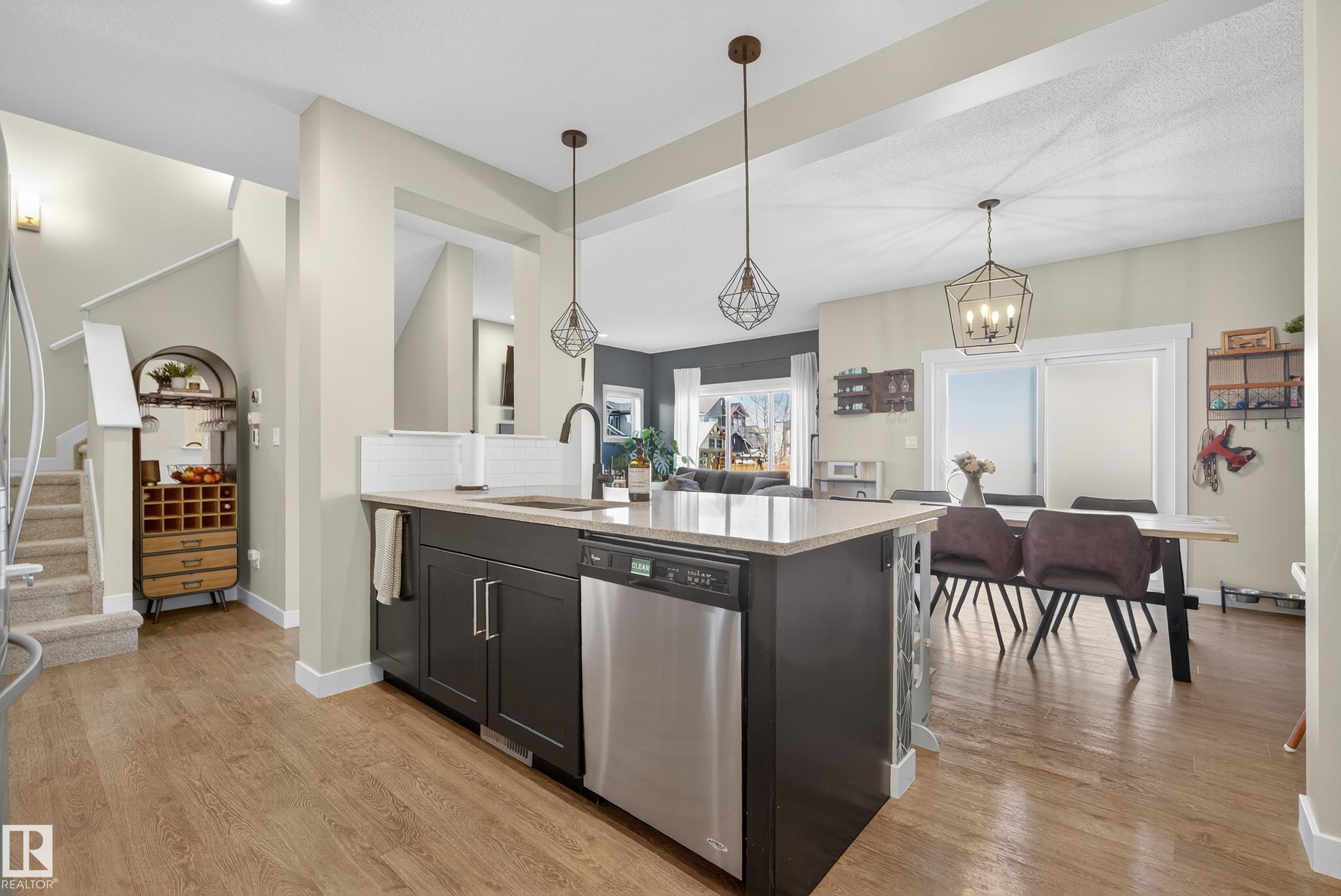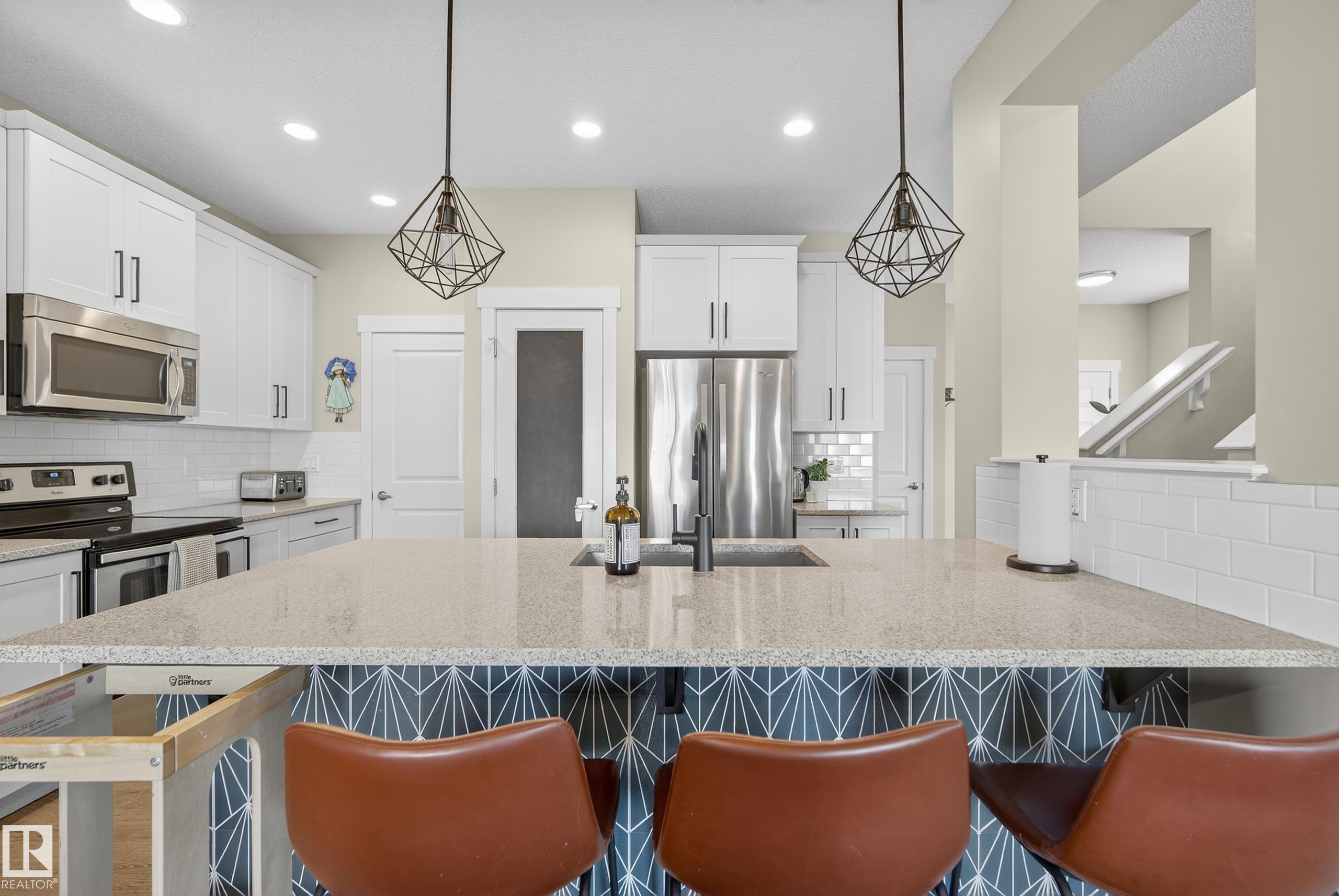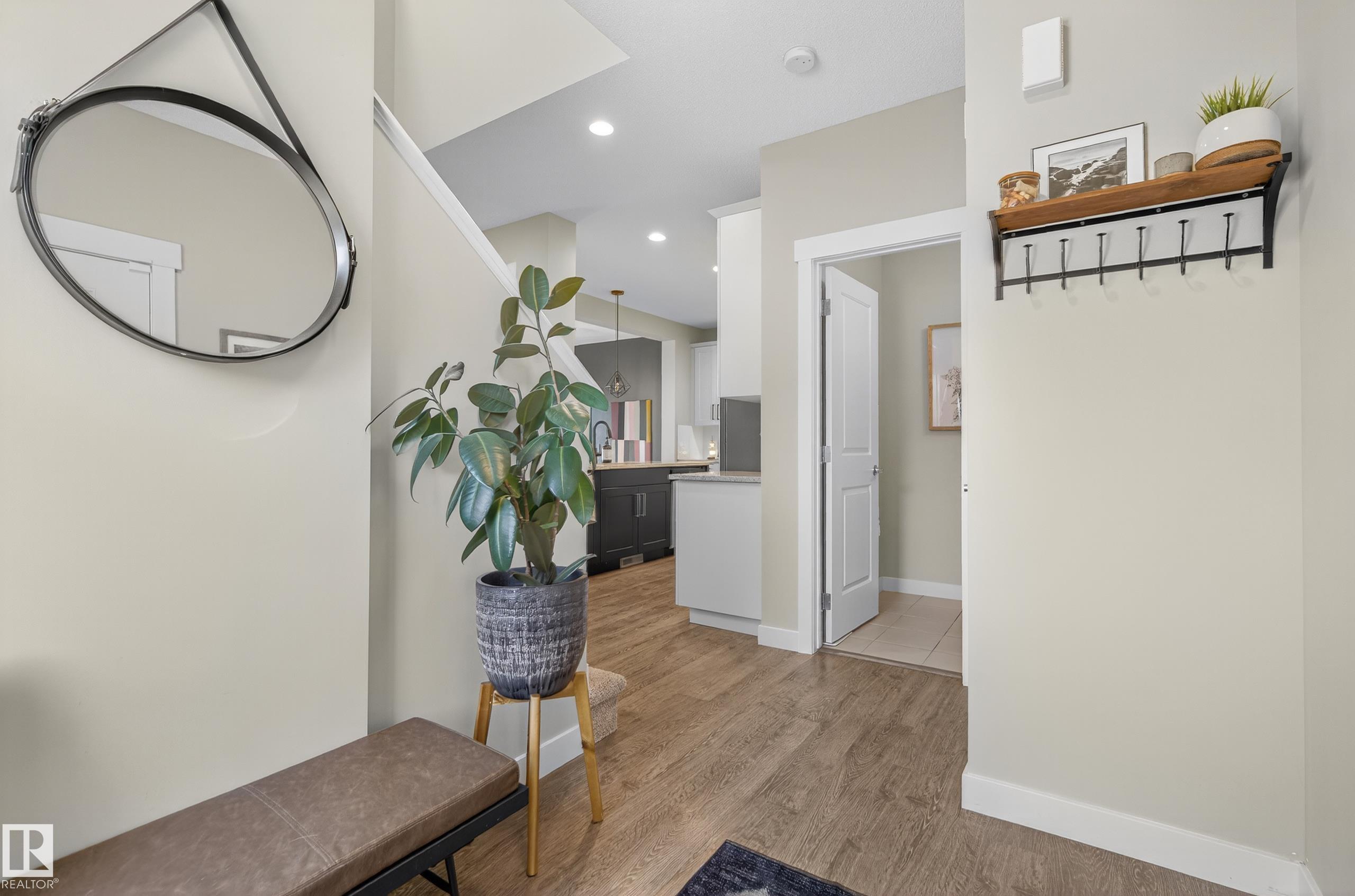 This fully finished two-storey home offers nearly 3,000 sq. ft. of elegant living space in a prime location, steps from man made pond, scenic trails, picnic areas, and a small park. The main floor features an open-concept design with a spacious kitchen, living room, and dining area. The kitchen boasts abundant cabinetry, quartz countertops, and stainless steel appliances, with a convenient walk-through mudroom connecting directly to the double attached, insulated garage. The living room includes a cozy gas fireplace, while the dining area opens onto a deck overlooking the large, fully fenced yard and tranquil pond views. Upstairs, the colossal primary suite is a true retreat, featuring double walk-in his-and-hers closets and a luxurious 6-piece ensuite. Two additional bedrooms, a 4-piece bathroom, a bonus room, and upper-level laundry add comfort and convenience for the whole family. Basement level is fully finished and has 4th bedroom with walk in closet, 4 pce bath and leisure/ family room.