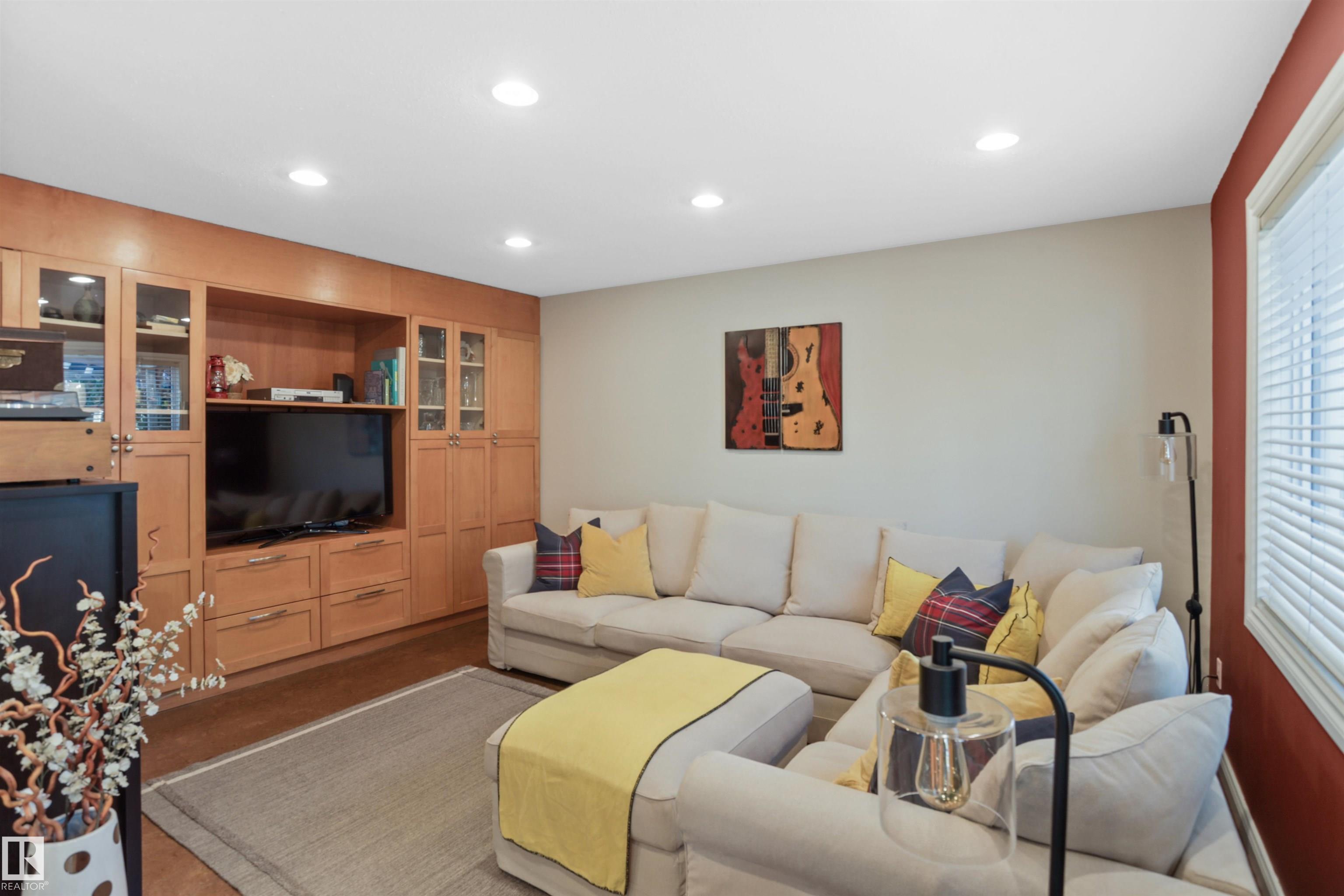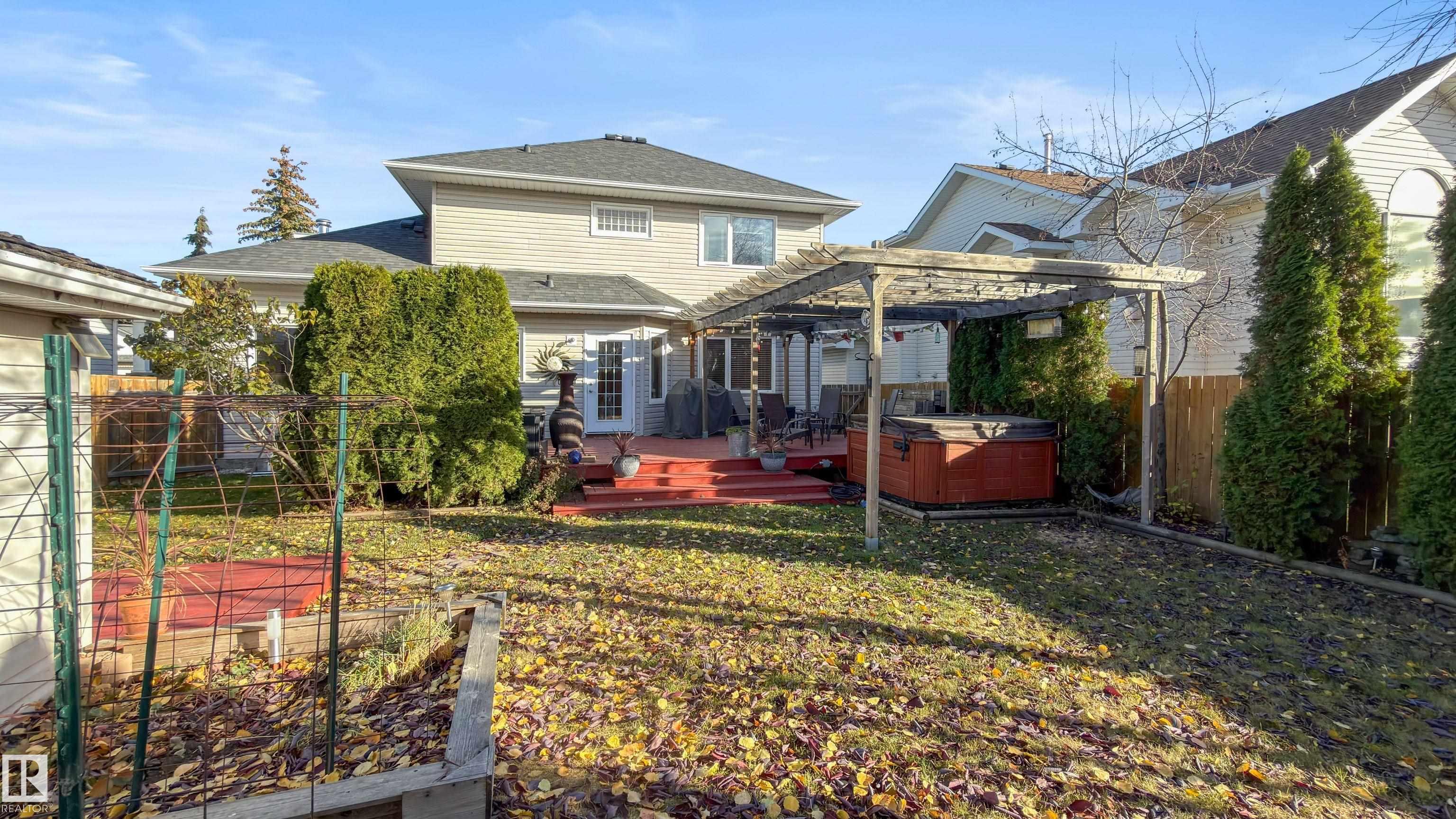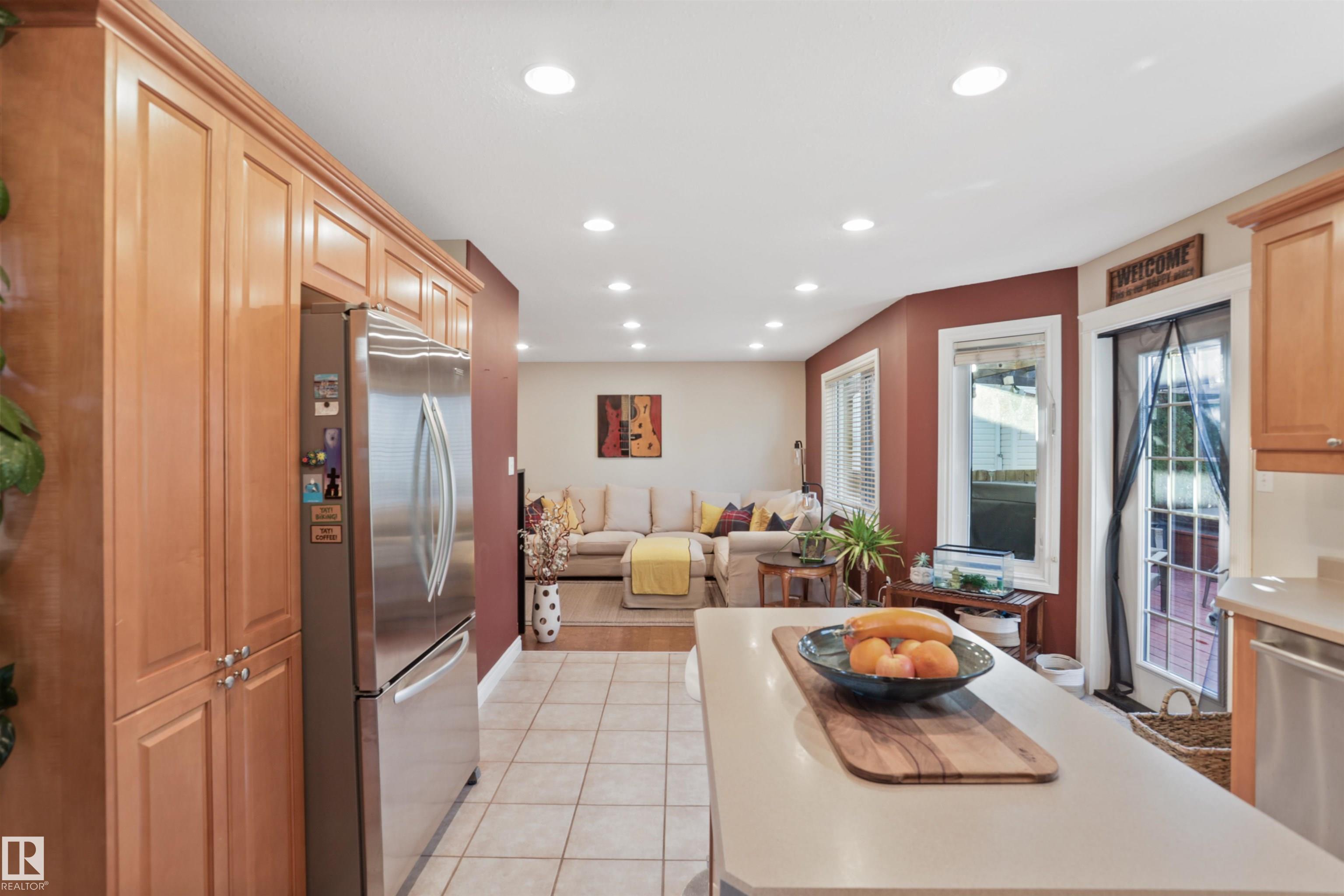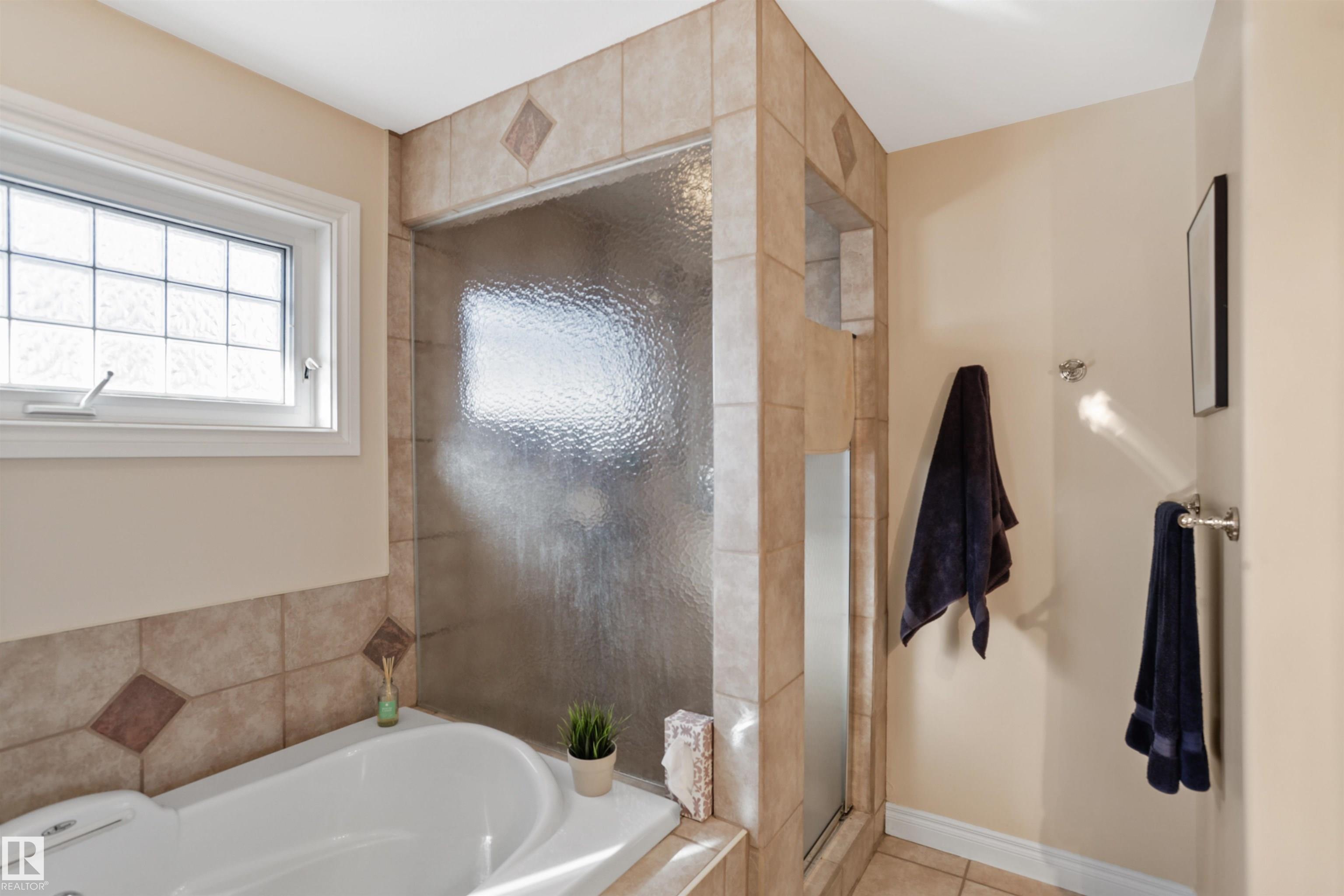 Impressive home featuring beautiful maple and tile flooring on the main level, with maple cabinets and a built-in entertainment centre. The living room offers a stunning floor-to-ceiling stone, wood-burning Heatilator fireplace. Formal dining room plus back entry from the kitchen leading to a 30' x 14' cedar deck with a hot tub and gas outlet. The spacious primary suite includes a walk-in closet and a luxurious ensuite with in-floor tile heating, ?waterfall? soaker tub, and large tiled shower. The basement is finished (bathroom roughed in). Large windows throughout provide an abundance of natural light. Yard is fenced and nicely landscaped with mature trees. Garage is insulated and drywalled. A bright, warm, and inviting home inside and out!