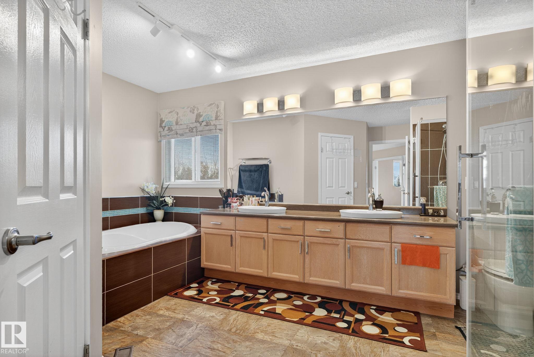 Quiet neighborhood of Larkspur around 2800 sq ft 2 storey, 4 bedrooms+3.5 bath home located in the quiet street .Spacious living room welcomes you leading to the large spacious kitchen with soft close doors cabinets and under cabinet lights, granite countertops, tile backsplash and stainless steel appliances. Family room with gas fireplace adjacent to laundry room that is big enough to convert into an MAIN FLOOR OFFICE.Upstairs primary bedroom has a huge 5-piece ensuite completed with dual soaker tub and a separate glass shower. Professionally developed basement with full bath, rec. room and a bedroom with a triple closet. Basement rec. room has 2nd fireplace with floor to ceiling fieldstone. Double garage is insulated and drywalled with built in storage. Backyard you will find a massive deck along with a storage shed. Roof,bathroom tiles,water heater(2023),AC,Blinds are updated in last 5-10 years.Easy access to 17 & 34 St,Whitemud dr,schools and shopping ctr