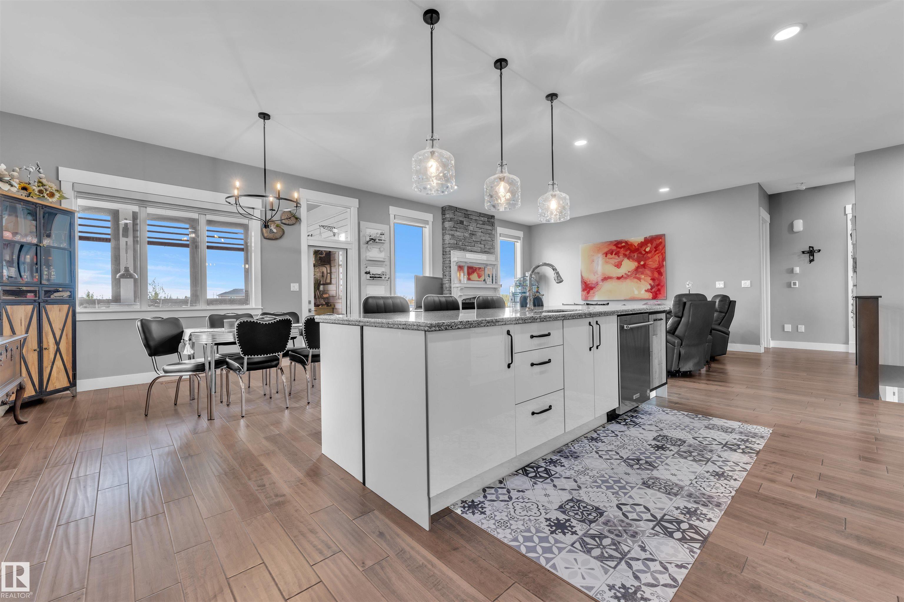 Custom built walk out bungalow on a prime cul-de-sac lot in Spring Meadow Estates. 10 feet ceiling on main floor. Great open floor plan with a modern finishes, center island, Granite counter, large double fridge/freezer opening , walk through pantry, Dining area with garden door to covered deck, living room with gas fireplace , Hardwood floors and high flat finished ceilings. Master bedroom with 5 piece ensuite and a walk in closet. 2 additional bedrooms, mudroom / Laundry room off garage entrance. Fully developed walkout basement with a huge family room, 2 bedrooms , 4 pc bath and a large storage/Furnace room. Home is finished with top quality throughout including hardwood, full Led lighting package, vinyl plank in basement, Concrete , Hardie plank and stone exterior. Concrete patio at the back & Heated triple garage. 8 minutes to Edmonton & Spruce Grove.