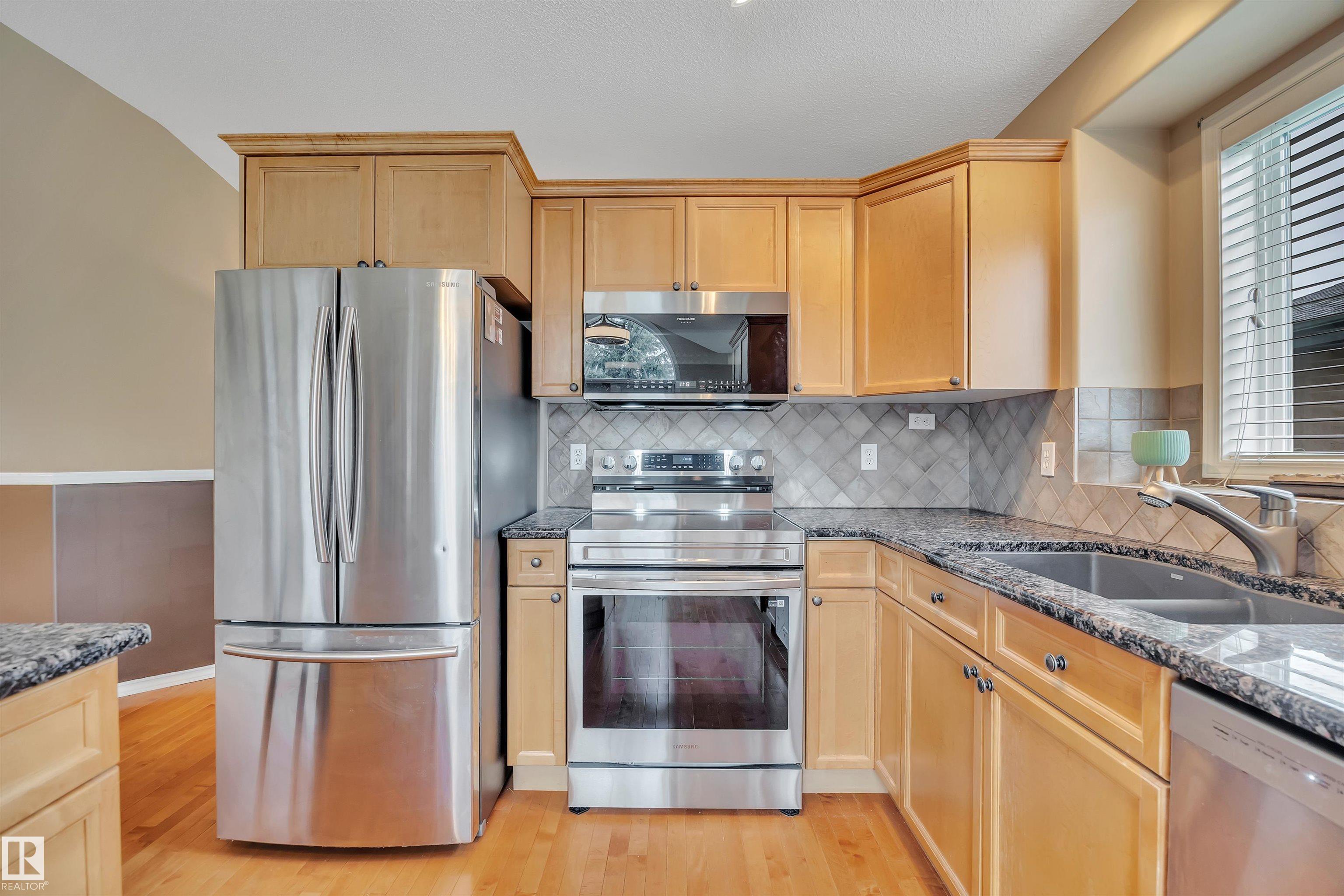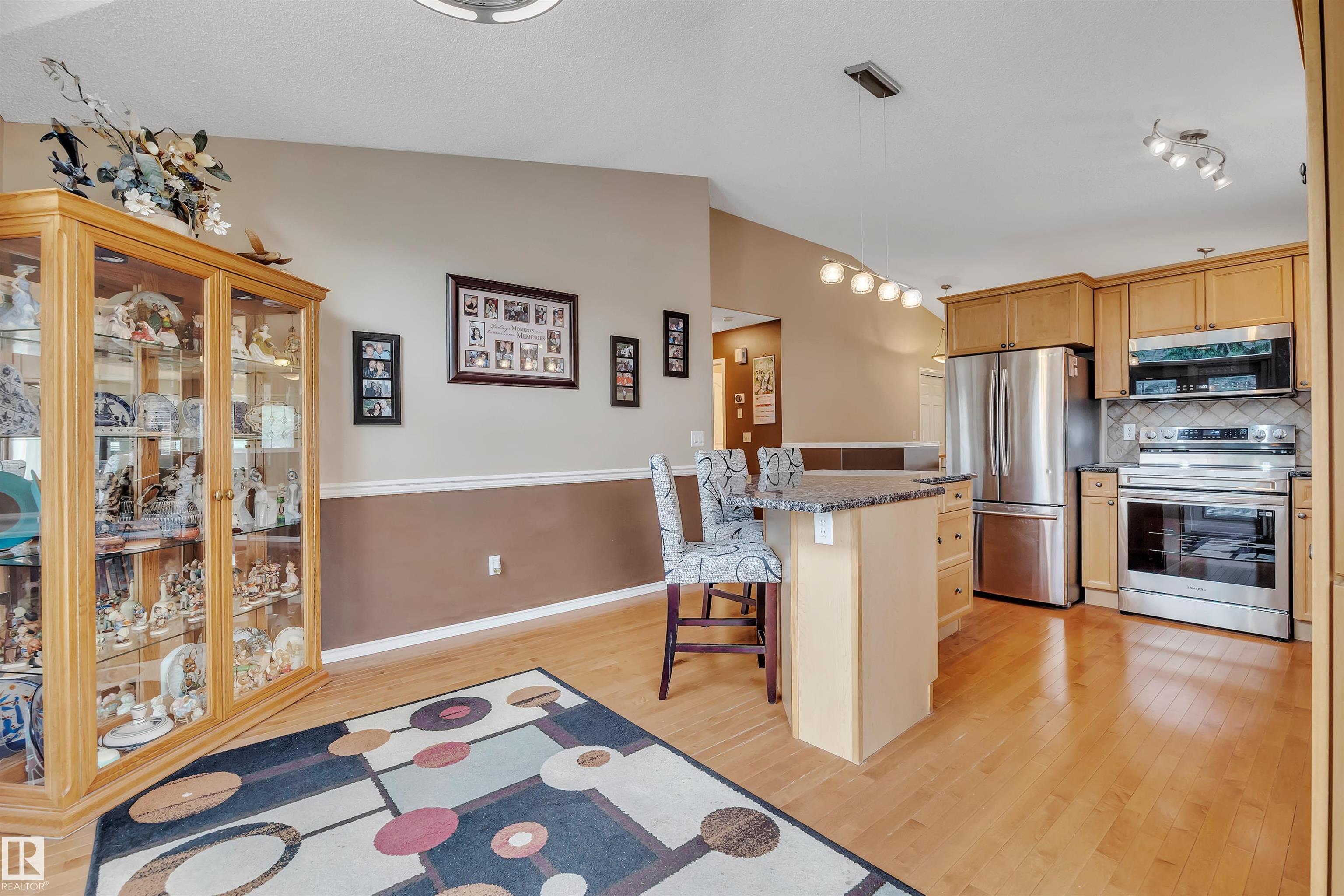 Welcome to The Springs at Bridgeport. This 55+ community home is a spacious bungalow filled with natural light, featuring granite countertops and hardwood floors throughout. The kitchen offers ample cabinetry, an oversized island, and stainless steel appliances. A garden-door leads from the breakfast nook to the backyard deck, a private oasis. The dining area shines with extra windows for radiant entertaining. The primary bedroom includes a walk-through closet and a 3-piece ensuite. A second main-floor bedroom serves as a guest room or office. The finished basement adds a 3rd bedroom, a large recreation room with a gas fireplace and wall unit/Murphy bed, a 4-piece bath, and a laundry area with upscale washer/dryer and extra storage. Central A/C and vacuum. The back deck features a smoker and fire pit for evening gatherings. Heated, finished double garage. Pride of ownership.