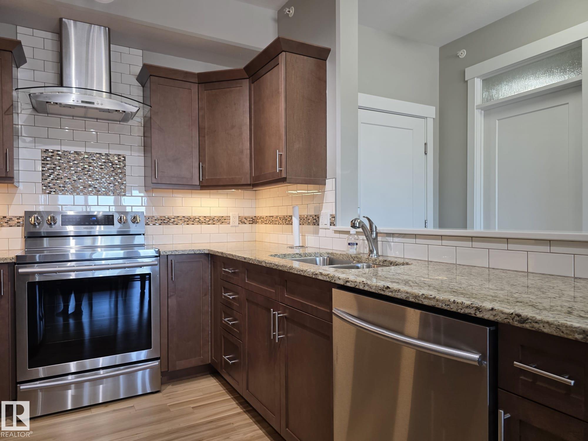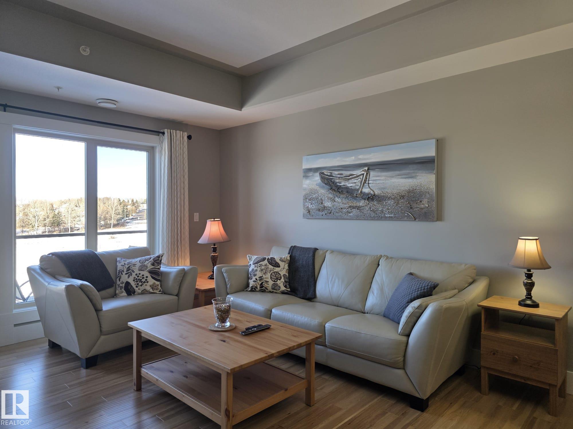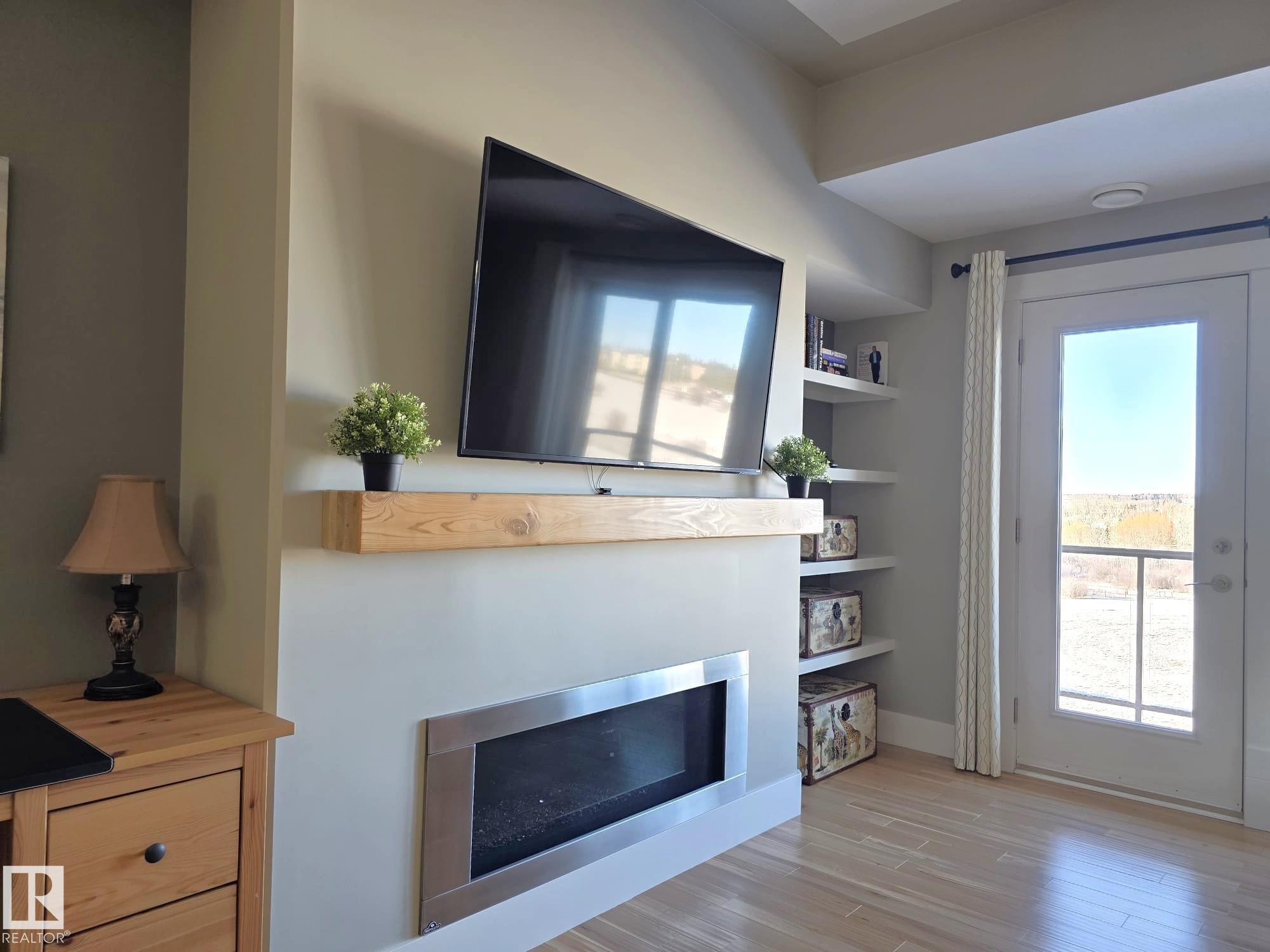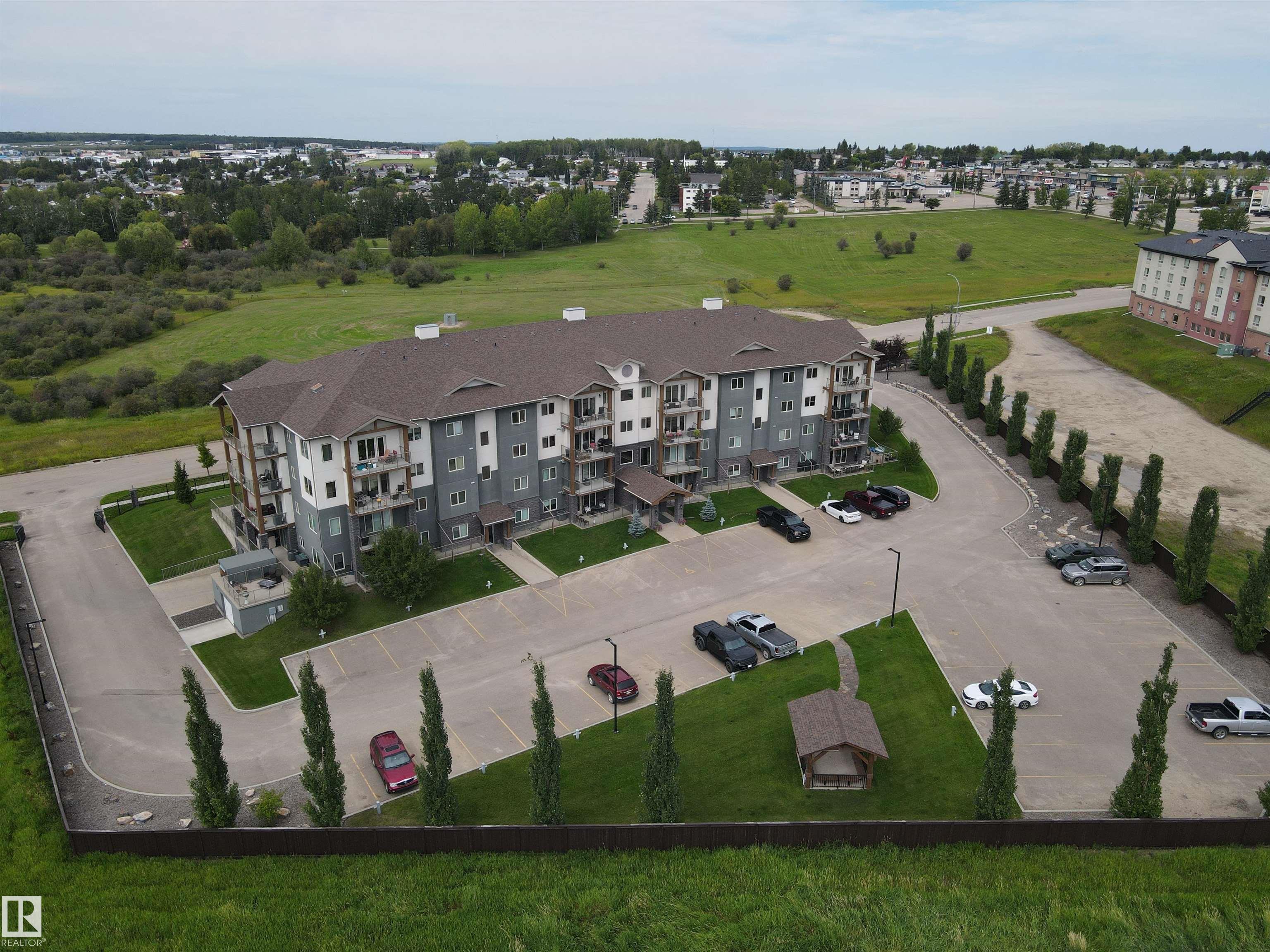 Ironwood Gates brings unmatched luxury, style & elegance to condo living in Drayton Valley! This 2 bed, 2 bath suite is 1141sqft with an open concept main living area that leads to the balcony overlooking open field and trees. The living room boasts a cozy gas fireplace! The kitchen is beautiful maple cabinetry, granite countertop and tile backsplash with wall mount canopy range hood. The primary bedroom is large with a walk-through closet and 4-piece bath featuring frameless glass shower w/ dual body massage! The second bedroom is also large with a walk-in closet situated right across from the main 4-piece bath. The unit has central A/C and 9 ft ceilings throughout! The building is secure with electronic security gates and perimeter fencing. Unit includes 2 parking stalls, 1 underground and 1 powered spot outside. Condo Fee includes heat, water/sewer, reserve fund, ext. maintenance janitorial. This condominium also has location going for it! Located at the end of a dead end street and close to shopping!