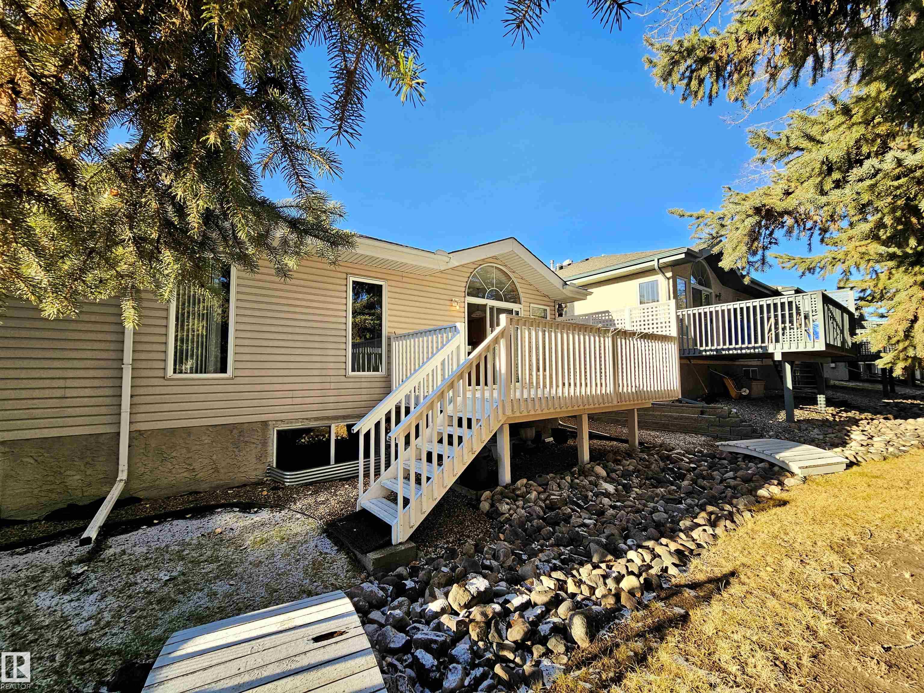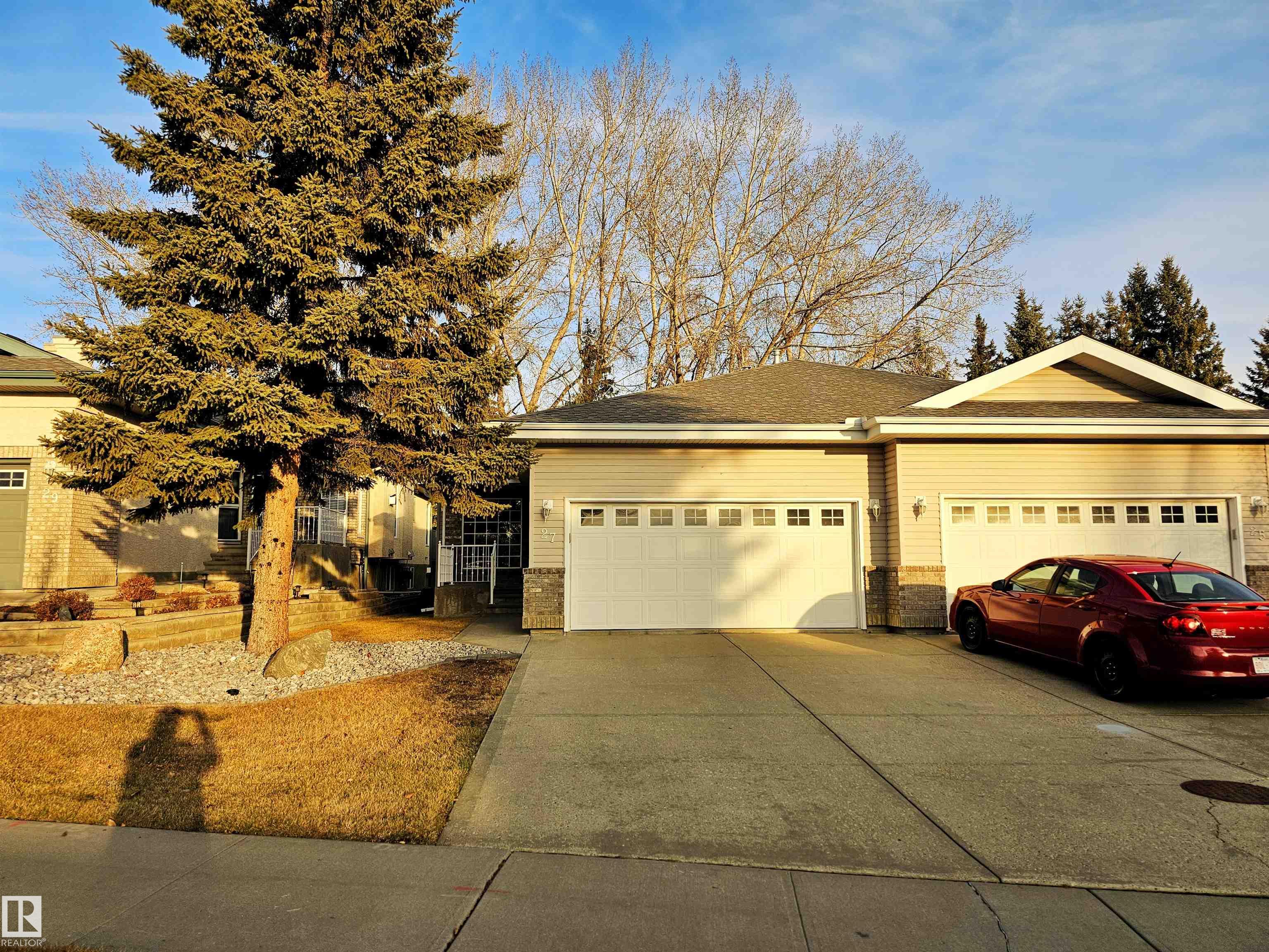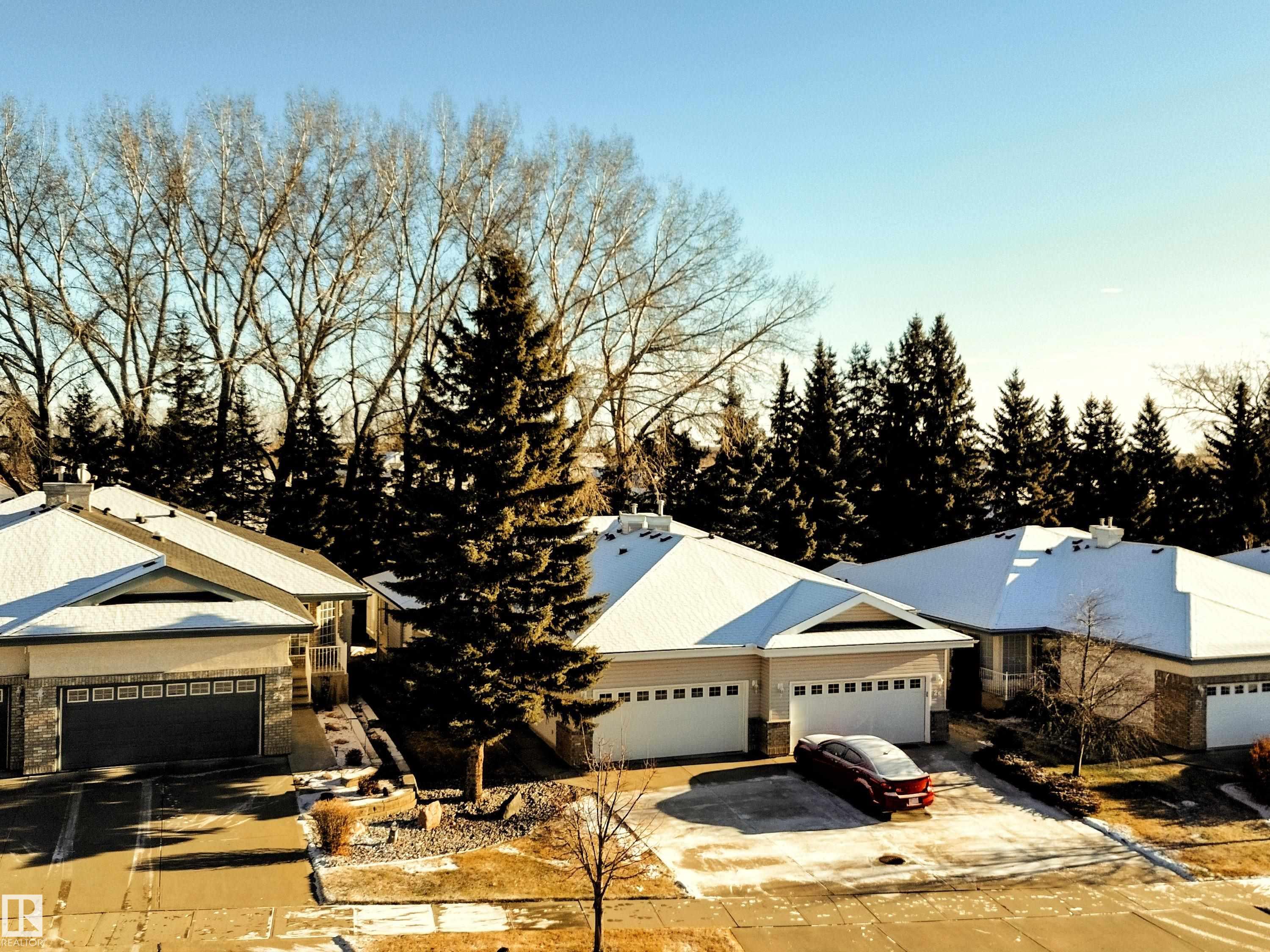 Rare 55+ 3 bedroom/2.5 bathroom adult half duplex bungalow BACKING TREES in the heart of Erin Ridge. Here, maintenance-free living awaits with a $140/month HOA tending to grass and snow, letting you spend more time enjoying the setting. Vaulted ceilings, warm oak hardwood, and soft natural light shape the inviting 1,210+ sq ft layout, where a sun-kissed great room and charming front office with solar tube set a gentle tone. The oversized primary offers double closets and a private 4 pc ensuite, while the u-shaped kitchen at the back of the home features oak cabinetry, granite counters, and a peninsula overlooking a bright breakfast nook with access to the peaceful patio. The FF basement extends the comfort with a generous family room, 4 pc bath, spacious 2nd and 3rd bedrooms, and a large mechanical/storage room. An extended driveway, NEWER ROOF (2022), oversized double garage, and A/C complete this serene retreat.