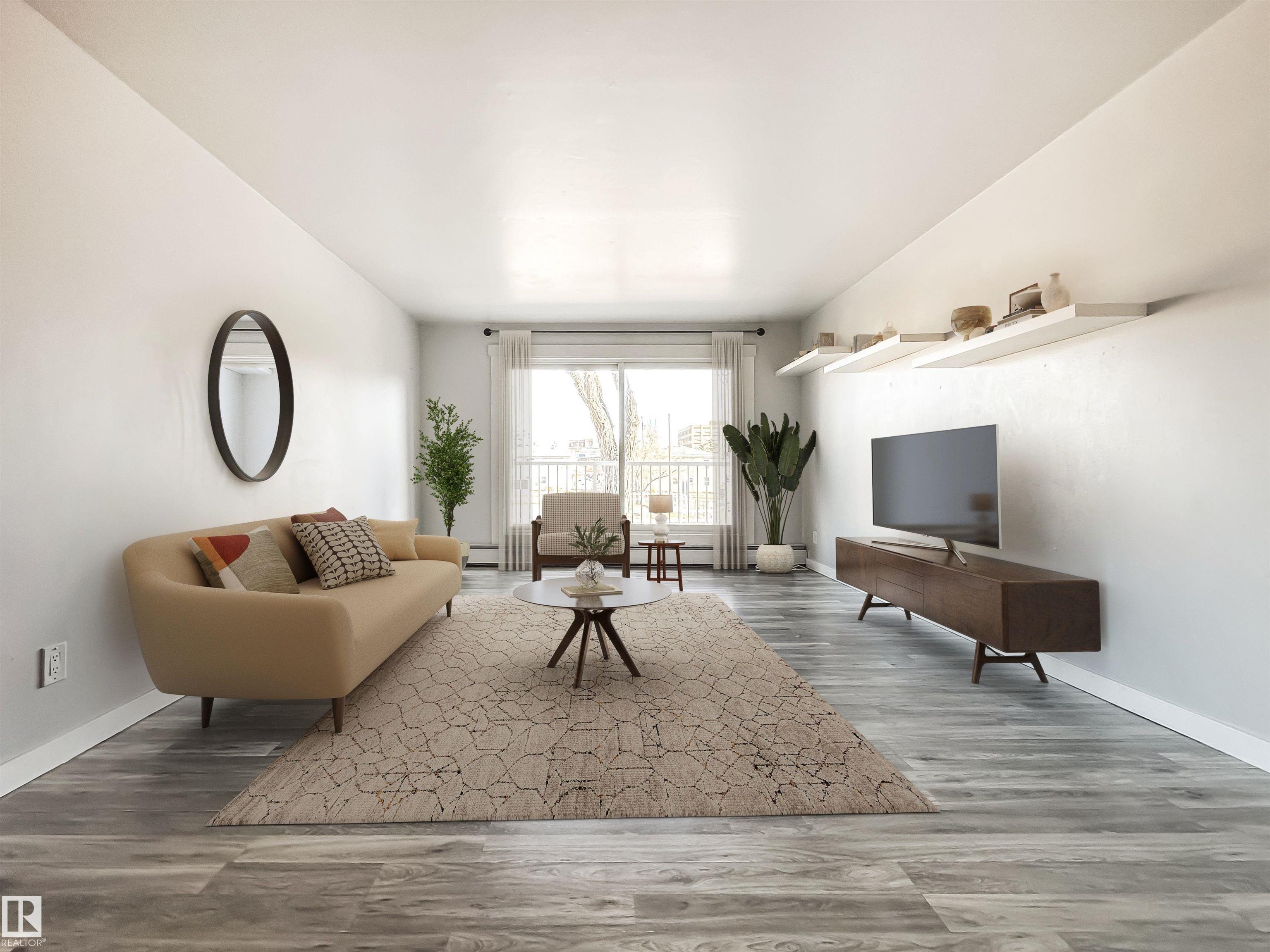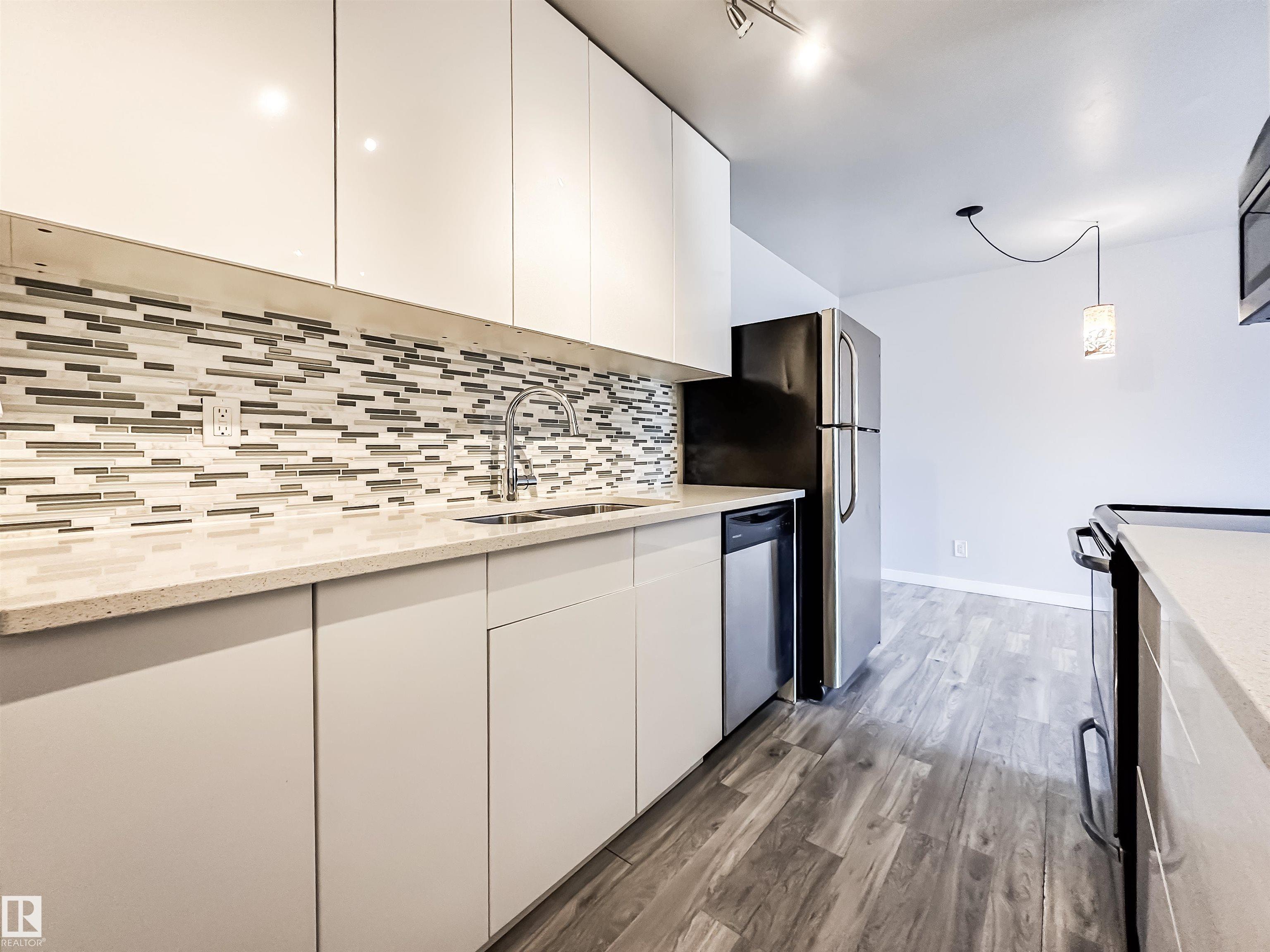 RENOVATED WESTMOUNT CONDO | WALKABLE LOCATION Steps from downtown and the Brewery District, this updated 2-bedroom, 1-bath condo blends style, comfort, and unbeatable convenience. The east-facing living room is perfect for morning coffee or relaxing evenings on the balcony. Inside, enjoy no-carpet living with laminate flooring throughout, a welcoming living area, dining nook, and modern kitchen with updated cabinets, counters, appliances and great storage. Two generous bedrooms and a renovated 3-piece bath complete the suite. The building has several updates. Added value: covered parking, extra in-suite storage, and convenient laundry just down the hall. Ideally located between Oliver and Westmount, steps to groceries, cafés, restaurants, shopping, transit, and minutes to downtown, the river valley, and MacEwan University. A fantastic opportunity for first-time buyers or investors wanting affordability and walkability. Welcome home!