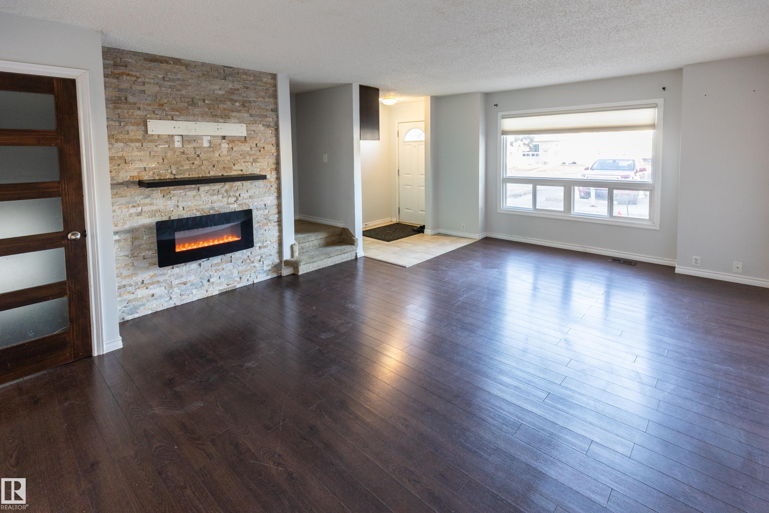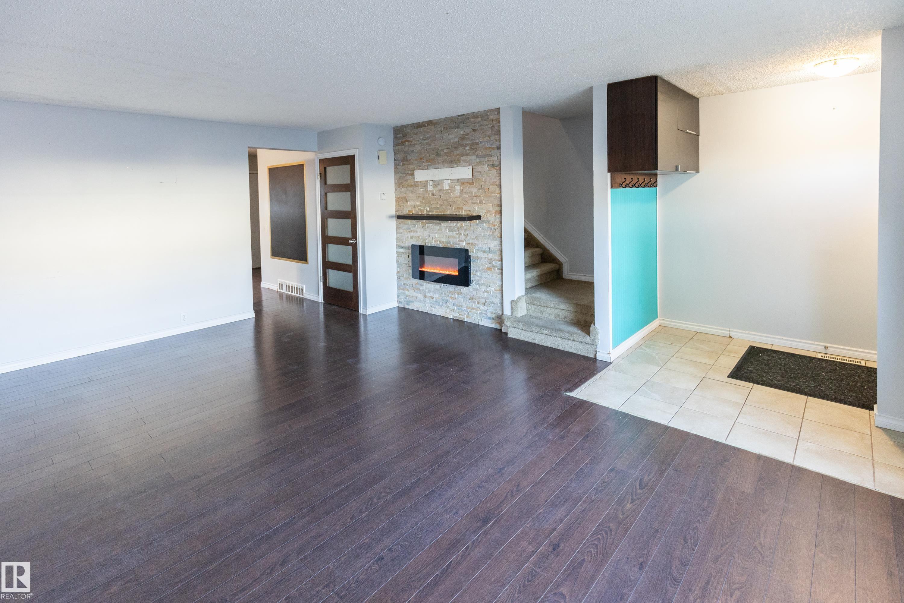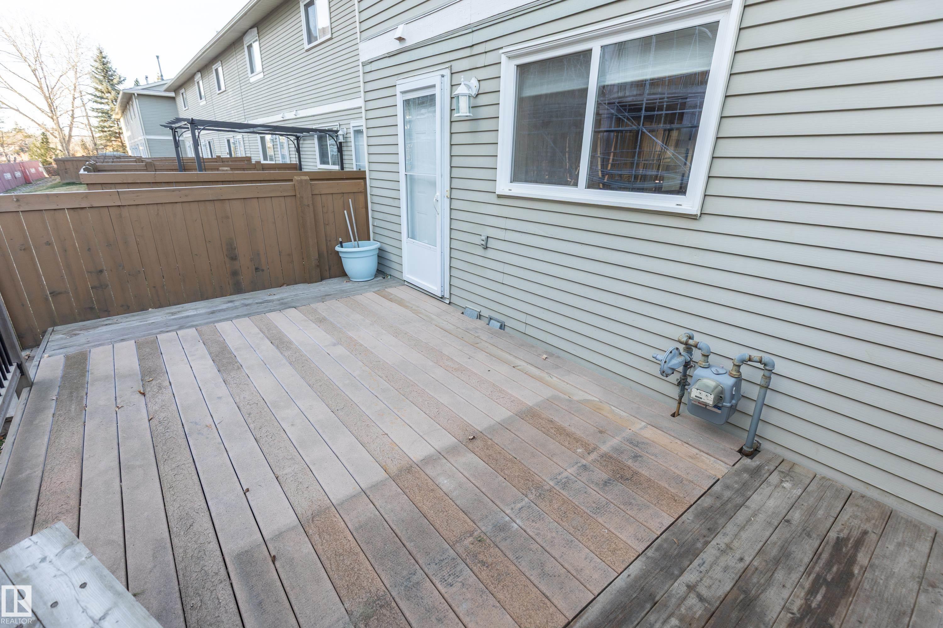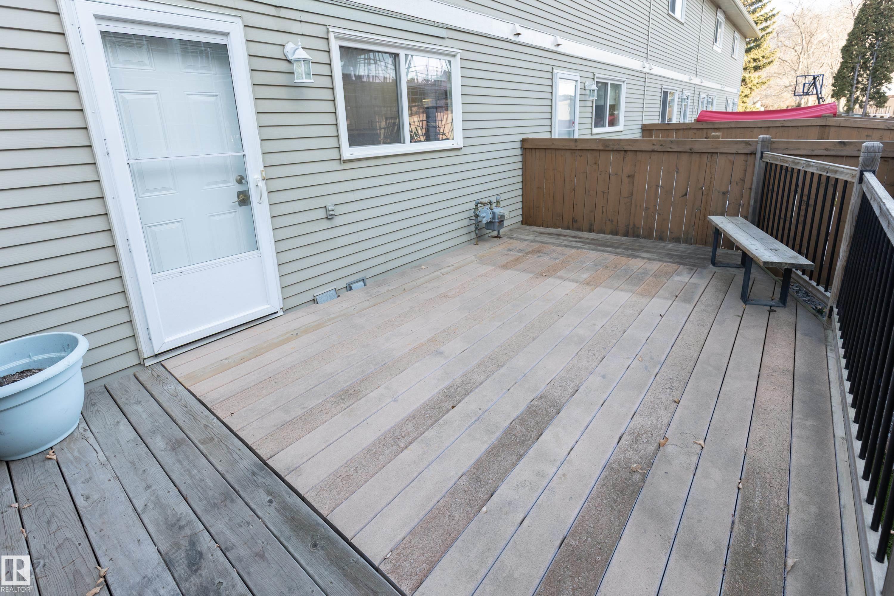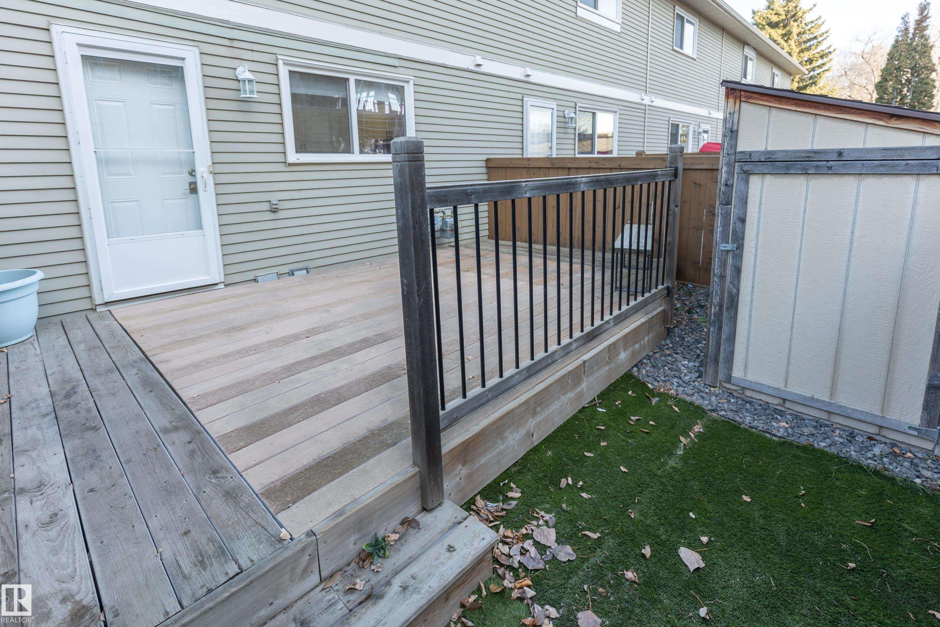 Welcome to Broadmoor Lake - an unbeatable location in Sherwood Park. This bright, clean end unit is just steps from Broadmoor Park, the lake & walking distance to Festival Place, Kinsmen Leisure Centre, the Sherwood Park Library, schools & more. A perfect starter home or investment property! The updated kitchen features newer stainless steel appliances, countertops, backsplash & taps. Laminate flooring flows through the main floor, which also includes a convenient 2pc bath. The living room offers a feature stone wall with an electric fireplace & the back door leads to a newer deck with walkway access plus a storage shed. Upstairs you?ll find a large primary bedroom with generous closet space, 2 additional bedrooms & a refreshed 4pc bath with newer cabinetry & tub liner. Completing the home is a partially finished basement with a newer electrical panel & pre-wiring for completion & 2 parking stalls located right out front. The complex has newer windows & roof, is pet-friendly & professionally managed.