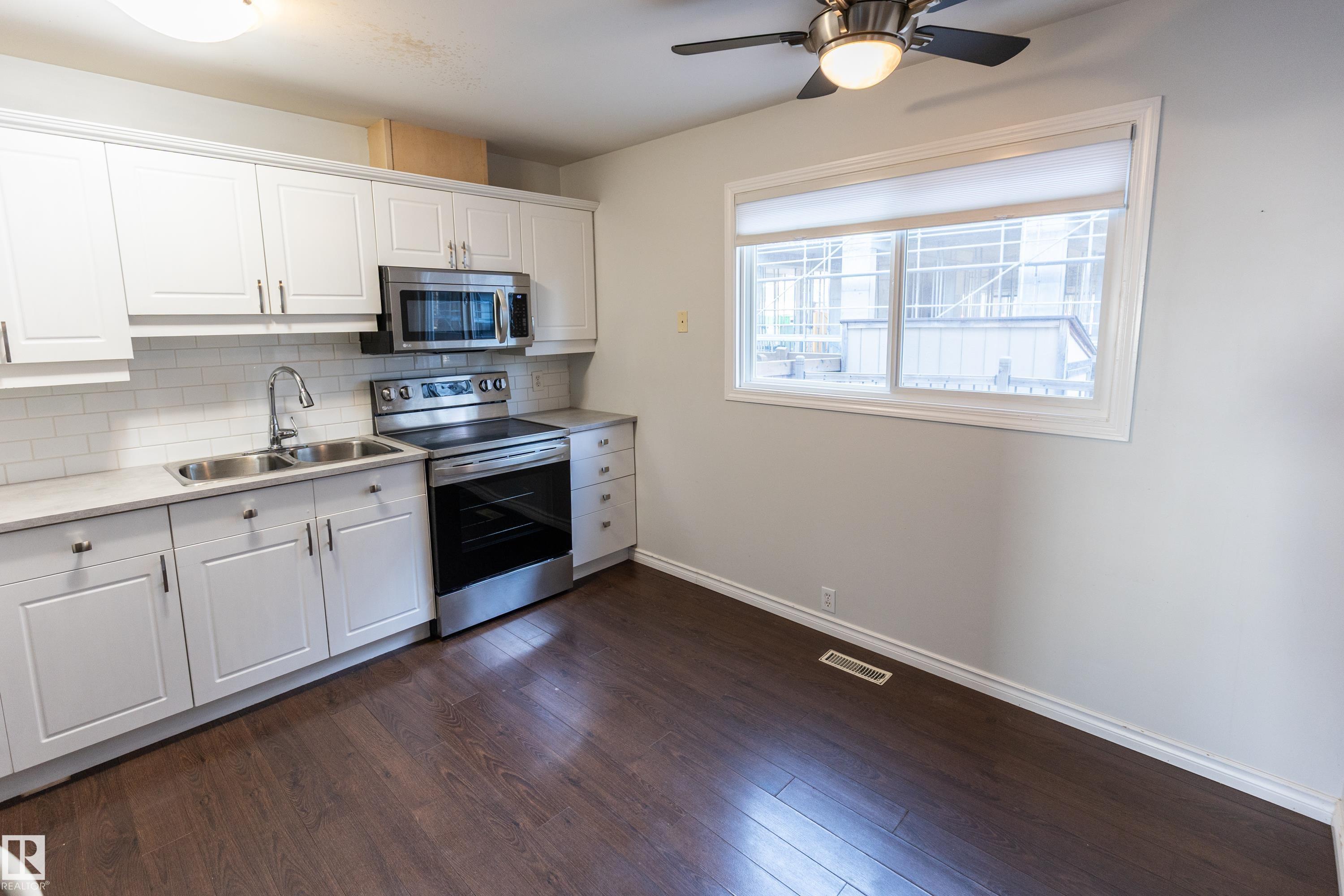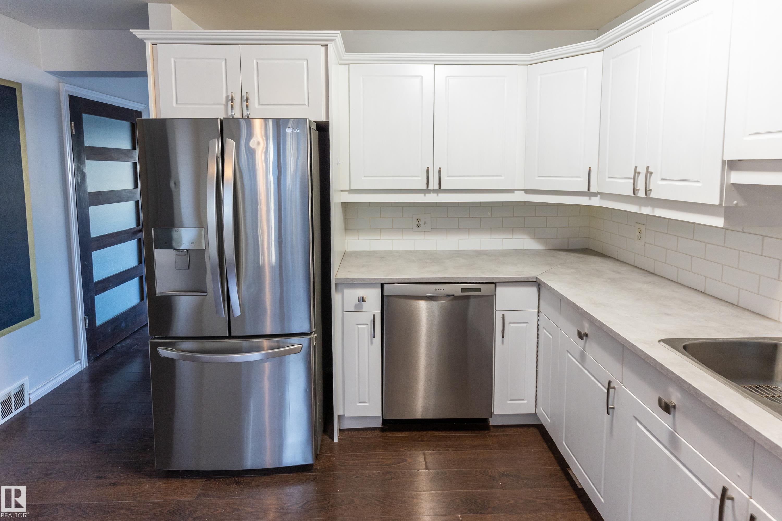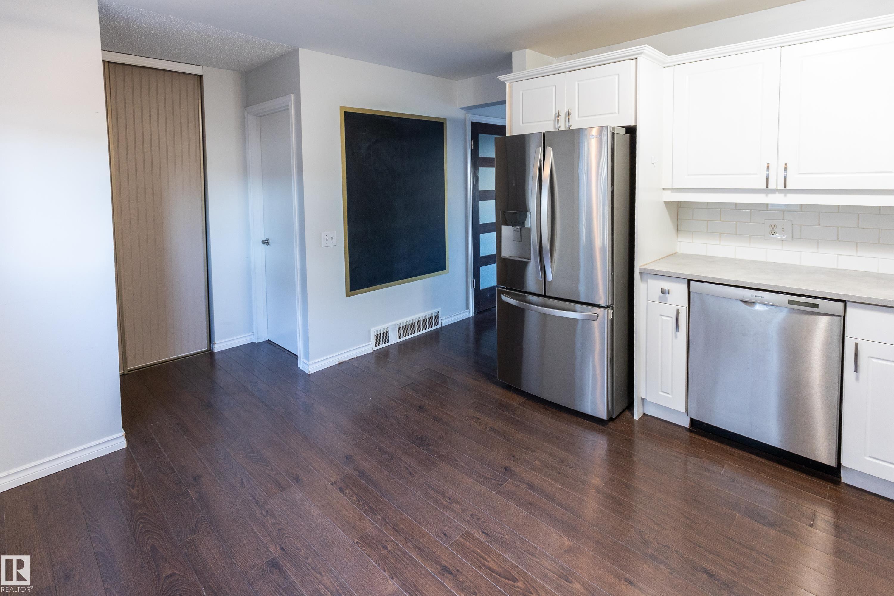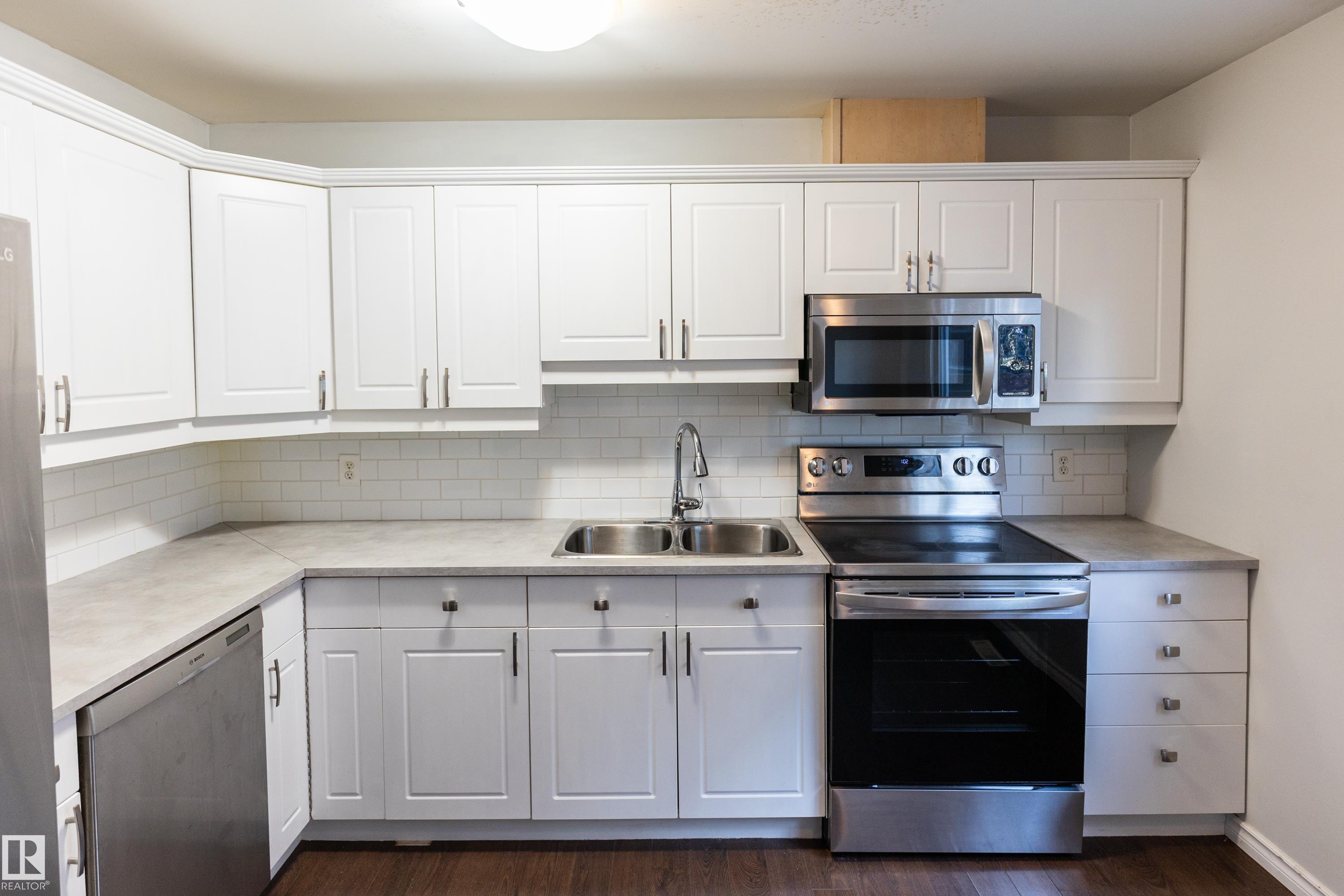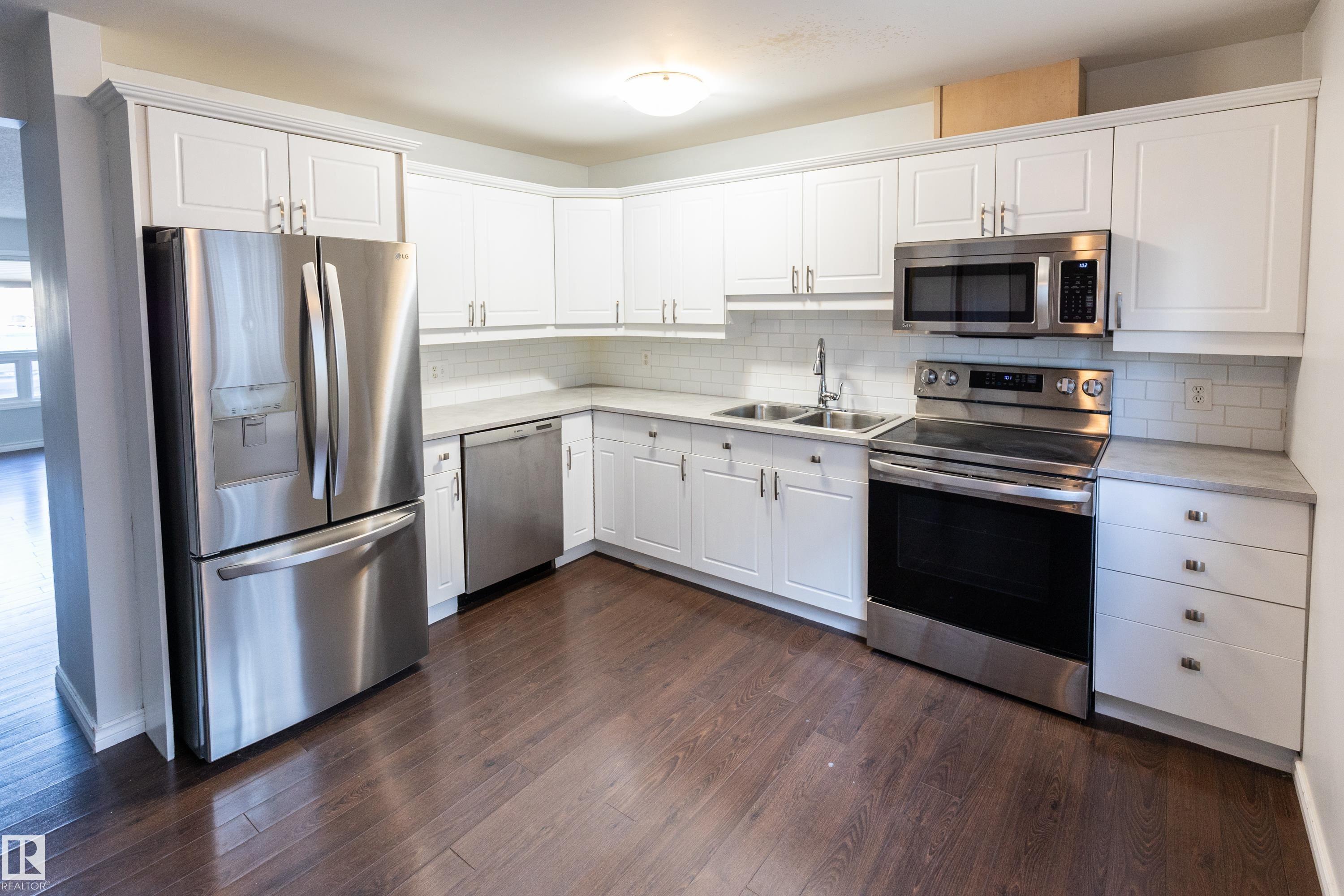 Welcome to Broadmoor Lake - an unbeatable location in Sherwood Park. This bright, clean end unit is just steps from Broadmoor Park, the lake & walking distance to Festival Place, Kinsmen Leisure Centre, the Sherwood Park Library, schools & more. A perfect starter home or investment property! The updated kitchen features newer stainless steel appliances, countertops, backsplash & taps. Laminate flooring flows through the main floor, which also includes a convenient 2pc bath. The living room offers a feature stone wall with an electric fireplace & the back door leads to a newer deck with walkway access plus a storage shed. Upstairs you?ll find a large primary bedroom with generous closet space, 2 additional bedrooms & a refreshed 4pc bath with newer cabinetry & tub liner. Completing the home is a partially finished basement with a newer electrical panel & pre-wiring for completion & 2 parking stalls located right out front. The complex has newer windows & roof, is pet-friendly & professionally managed.