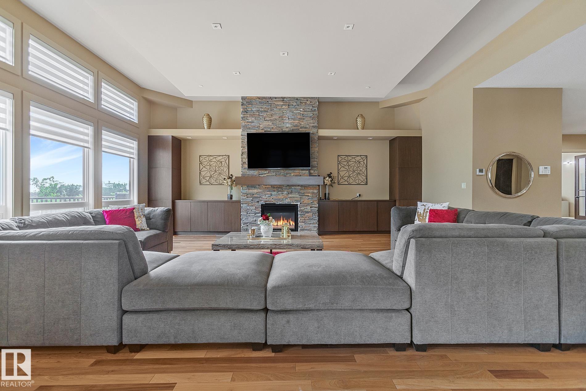 Located in the Gated community of West Bear Haven & Backing onto the Northern Bear Golf Course, this one-of-a-kind 6,990 SqFt 2-Storey (10,739 SqFt total) is absolutely breath-taking. As are the views from the massive Deck & 2 Balconies! Fit for any family & perfect for entertaining inside & outside, there are NINE Bedrms; SEVEN Ensuites; an Elevator; 4 Fireplaces; a Walk-Out Basement (In-Floor Heat) & a Heated Quad Garage. Municipal Sewer & Water. The 9' Main floor greets you with an abundance of windows in the Open-to-below Living Rm. An aquarium separates the Dining Rm & Kitchen - a gourmet chef's dream. Plenty of Cabinets & Granite Countertops; 2 Ovens; separate Pantry & 2nd Dining area. On the other side of the Family Rm is a Primary Bedrm & a Den. The Upper floor has a Great Rm; Raised Bonus Rm; Library & 4 Bedrms. The Bsmt features a Wet Bar in the Family Rm that leads to the Patio; Media Rm; Gym & 4 Bedrms. Beautifully landscaped w. mature trees; water feature- your own oasis w. no expense spared