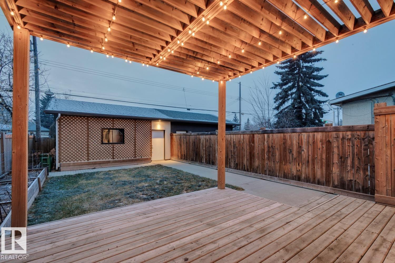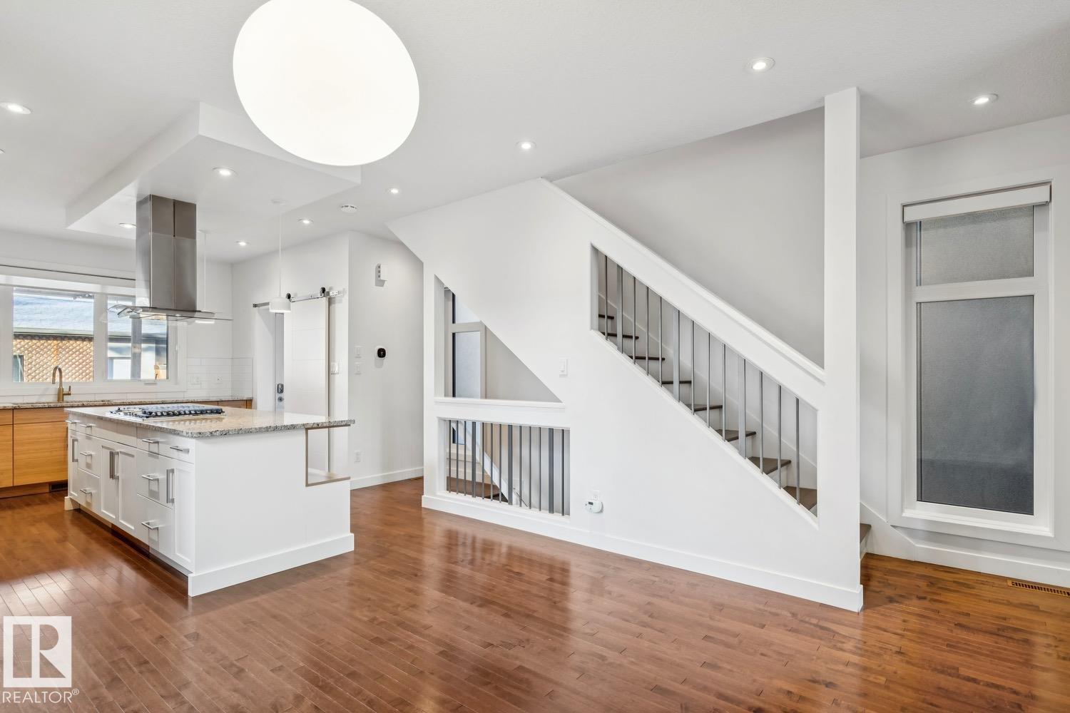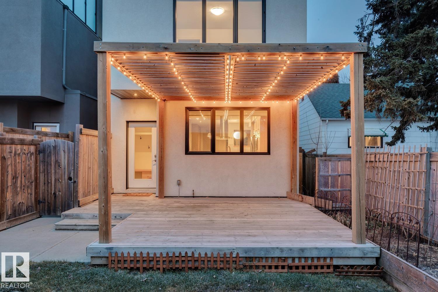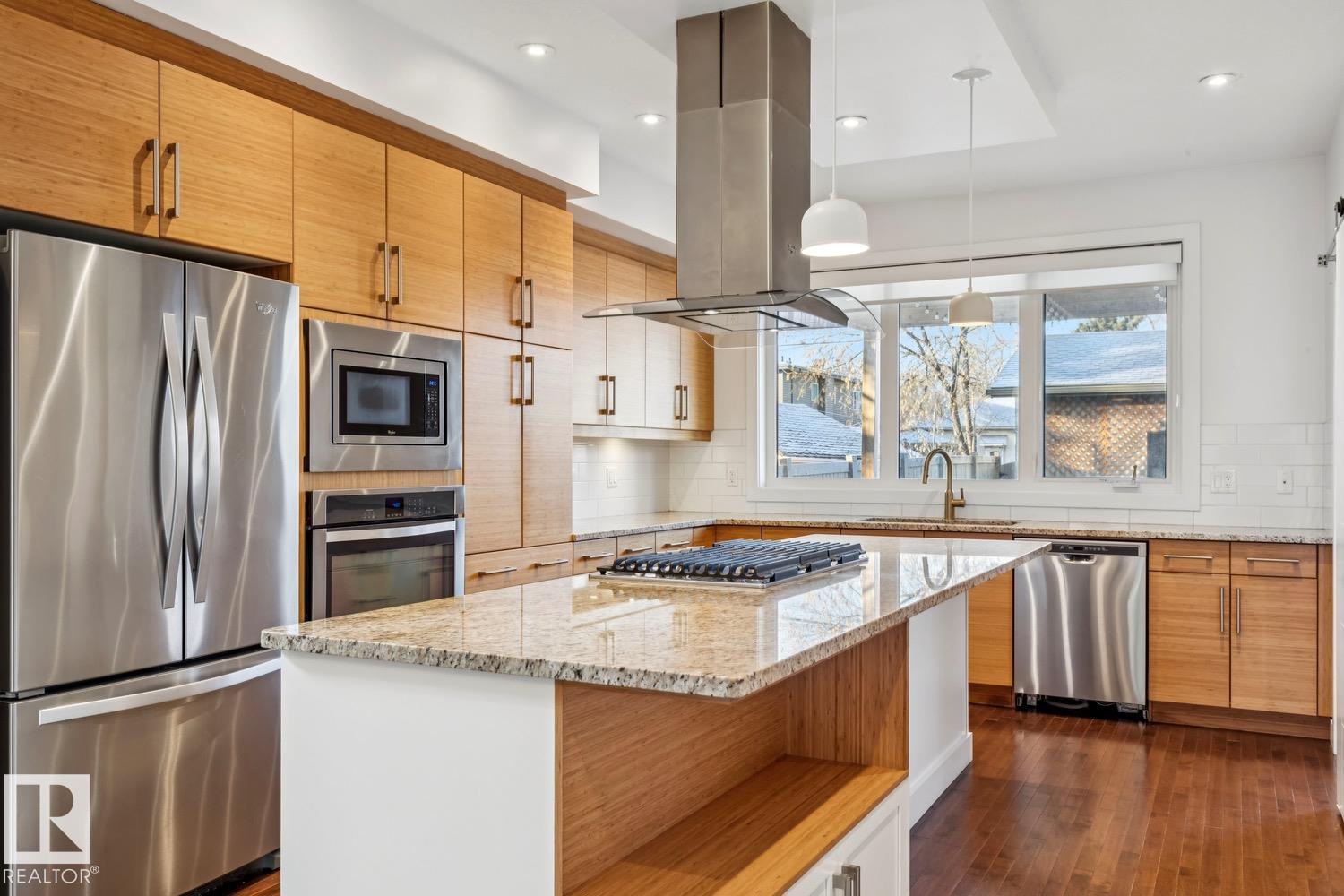 This custom-built, exquisitely designed 1,800 ft² home is packed with thoughtful upgrades, including a stunning rooftop patio with city vistas, 10' ceilings, an ICF insulated concrete foundation, a fully finished basement, central A/C, and a double oversized heated and insulated garage. At the heart of the home is a true chef?s kitchen. Wrapped in built-in bamboo cabinetry, it features a gas range on the island, granite countertops, and premium appliances. Oversized windows throughout welcome beautiful natural light, complementing the modern fixtures curated from Edmonton?s renowned Dwell Lighting. Inside, Canadian hardwood flows from room to room, while the exterior showcases waterproof acrylic stucco, metal siding, and cultured stone. The private backyard features a dreamy pergola, perfect for entertaining. Located on a tree lined street in Westmount, this property is within walking distance to local shops, cafes, and trails. Welcome home!