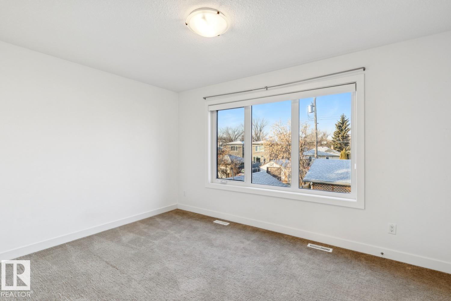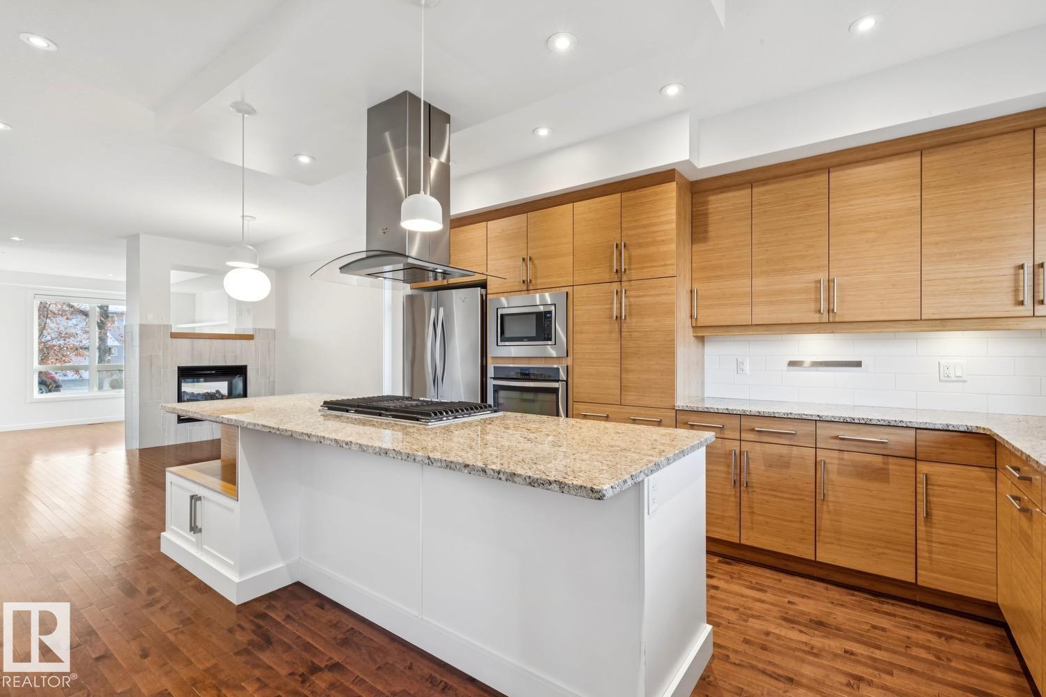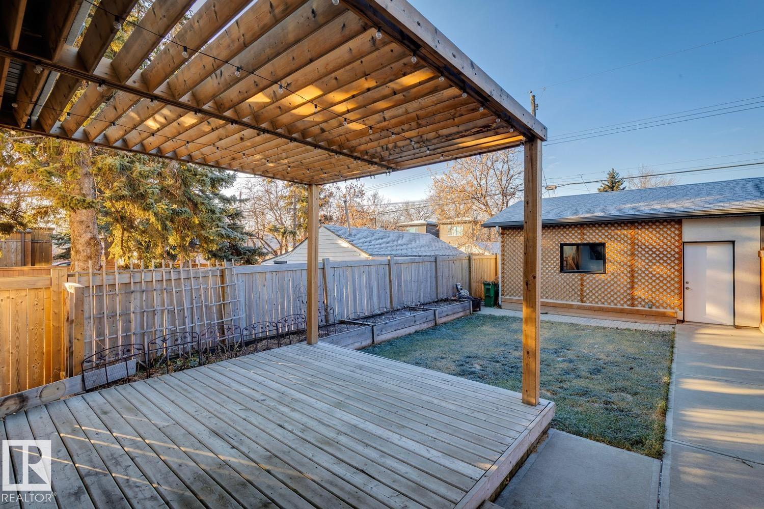 This custom-built, exquisitely designed 1,800 ft² home is packed with thoughtful upgrades, including a stunning rooftop patio with city vistas, 10' ceilings, an ICF insulated concrete foundation, a fully finished basement, central A/C, and a double oversized heated and insulated garage. At the heart of the home is a true chef?s kitchen. Wrapped in built-in bamboo cabinetry, it features a gas range on the island, granite countertops, and premium appliances. Oversized windows throughout welcome beautiful natural light, complementing the modern fixtures curated from Edmonton?s renowned Dwell Lighting. Inside, Canadian hardwood flows from room to room, while the exterior showcases waterproof acrylic stucco, metal siding, and cultured stone. The private backyard features a dreamy pergola, perfect for entertaining. Located on a tree lined street in Westmount, this property is within walking distance to local shops, cafes, and trails. Welcome home!