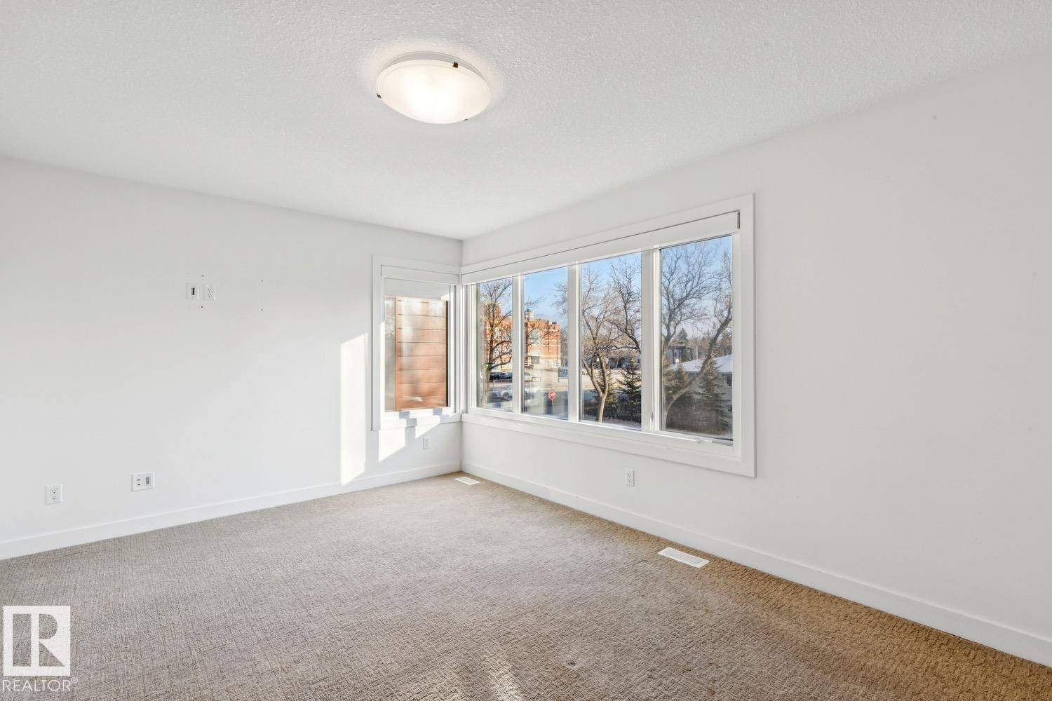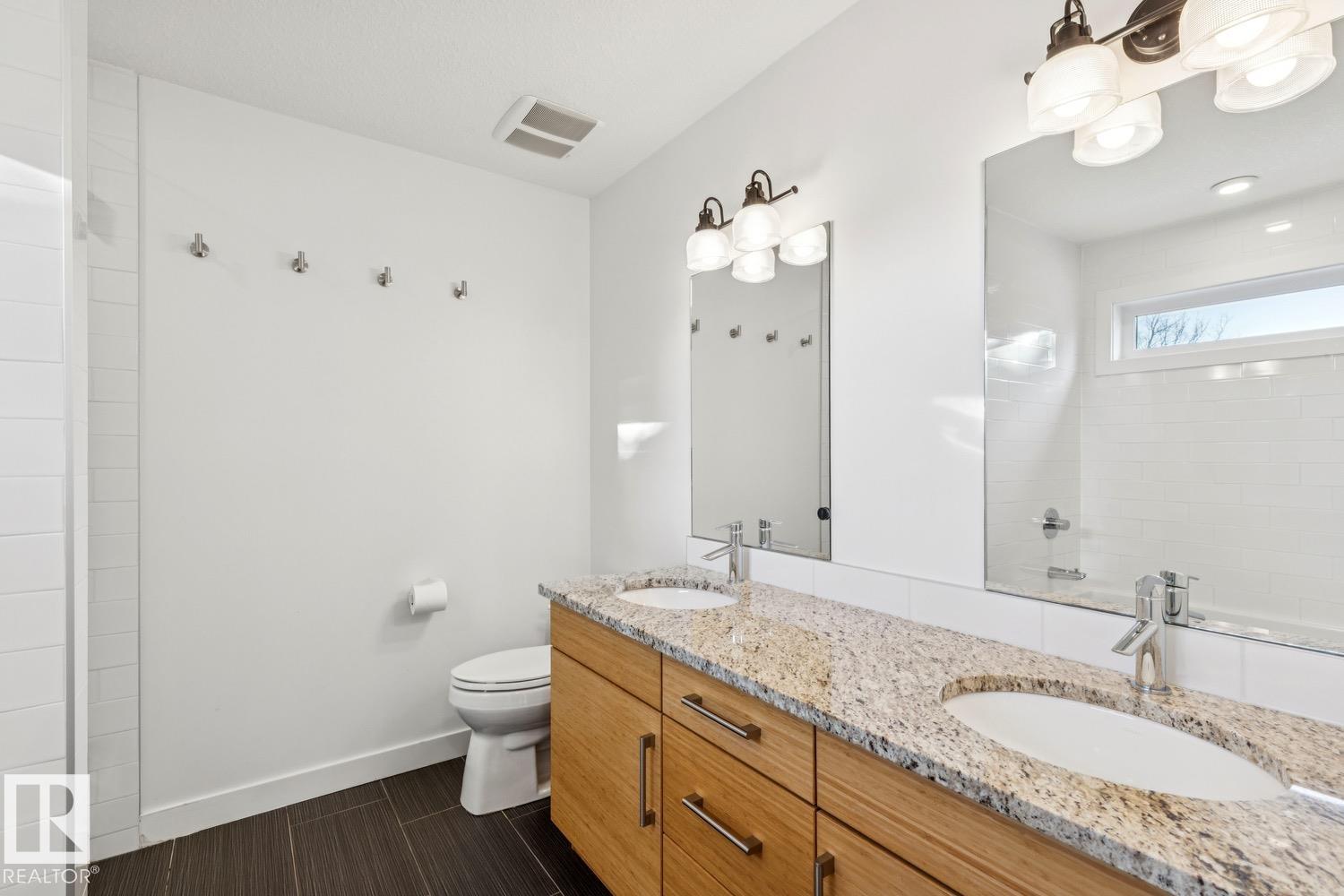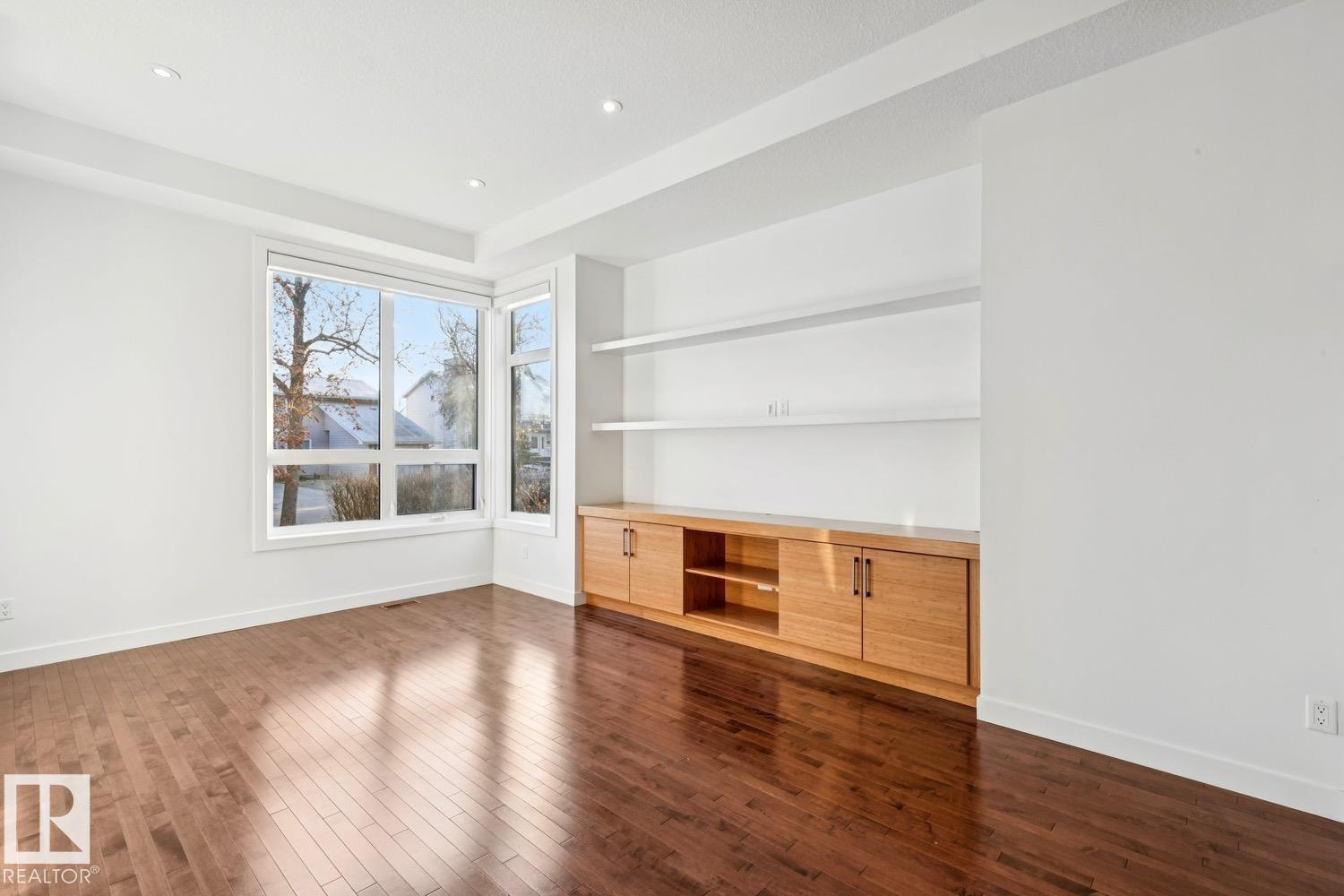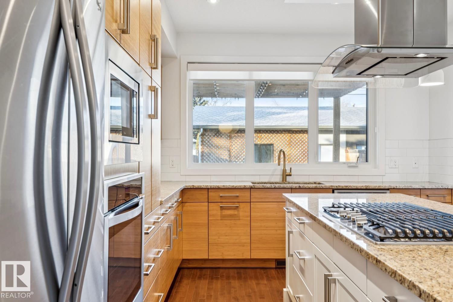 This custom-built, exquisitely designed 1,800 ft² home is packed with thoughtful upgrades, including a stunning rooftop patio with city vistas, 10' ceilings, an ICF insulated concrete foundation, a fully finished basement, central A/C, and a double oversized heated and insulated garage. At the heart of the home is a true chef?s kitchen. Wrapped in built-in bamboo cabinetry, it features a gas range on the island, granite countertops, and premium appliances. Oversized windows throughout welcome beautiful natural light, complementing the modern fixtures curated from Edmonton?s renowned Dwell Lighting. Inside, Canadian hardwood flows from room to room, while the exterior showcases waterproof acrylic stucco, metal siding, and cultured stone. The private backyard features a dreamy pergola, perfect for entertaining. Located on a tree lined street in Westmount, this property is within walking distance to local shops, cafes, and trails. Welcome home!
