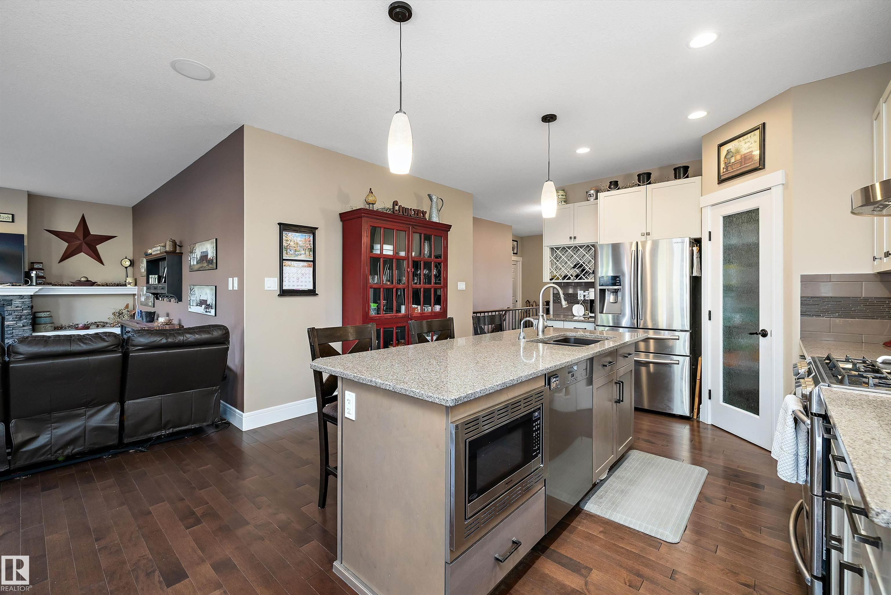 Rare bungalow opportunity built by Coventry Homes in sought-after Walker! The spacious main floor offers a large den, laundry, and a luxurious primary suite with a soaker tub, separate shower, and walk-in closet. The chef?s kitchen features granite counters, a gas stove, and corner pantry, flowing seamlessly into the living room with a cozy stone faced gas fireplace. The finished basement impresses with 9? ceilings, a family room with a second fireplace, two large bedrooms with full-length closets, and a 4-piece bath. Enjoy outdoor living on the huge 32?x14? two-tier deck, with a hot tub pad and wiring, 8?x10? matching shed with workbench, and a gorgeous landscaped yard with poured curbing, backing onto a walking trail. Extras include central A/C, tankless hot water tank, high-efficiency furnace, central vac, built in speakers, and double attached garage. Fantastic location just minutes to shopping, groceries, and EIA, on a quiet local traffic only street.