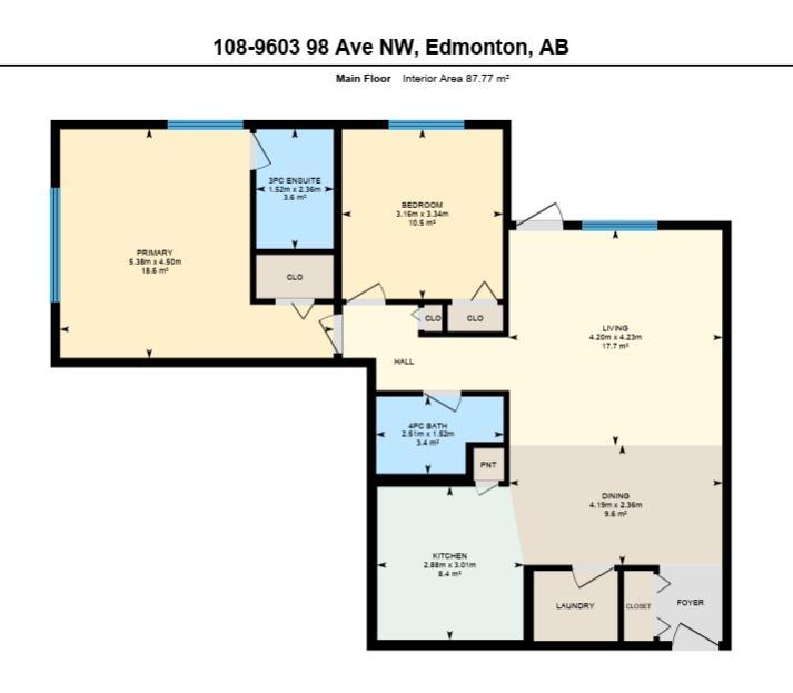 Welcome home to this beautifully appointed 2 bedroom, 2 bathroom main-floor suite, ideally located just minutes from downtown Edmonton and only steps to the River Valley trail system?perfect for anyone who loves to walk, bike, or enjoy the outdoors. Commuting is effortless with quick access to the Valley Line LRT, major bus routes, and central roadways. Inside, the home features a stylish kitchen with granite countertops, stainless steel appliances, and plenty of cabinet space. The open-concept layout offers a bright living area, in-suite laundry, and two spacious bedrooms?including a primary suite with its own ensuite bathroom. Stay comfortable year-round with central air conditioning. This unit also offers its own private ground-level entrance, ideal for convenience and ease of access. Parking is exceptional with a heated underground tandem stall, plus a secure storage locker located directly in front of the space.