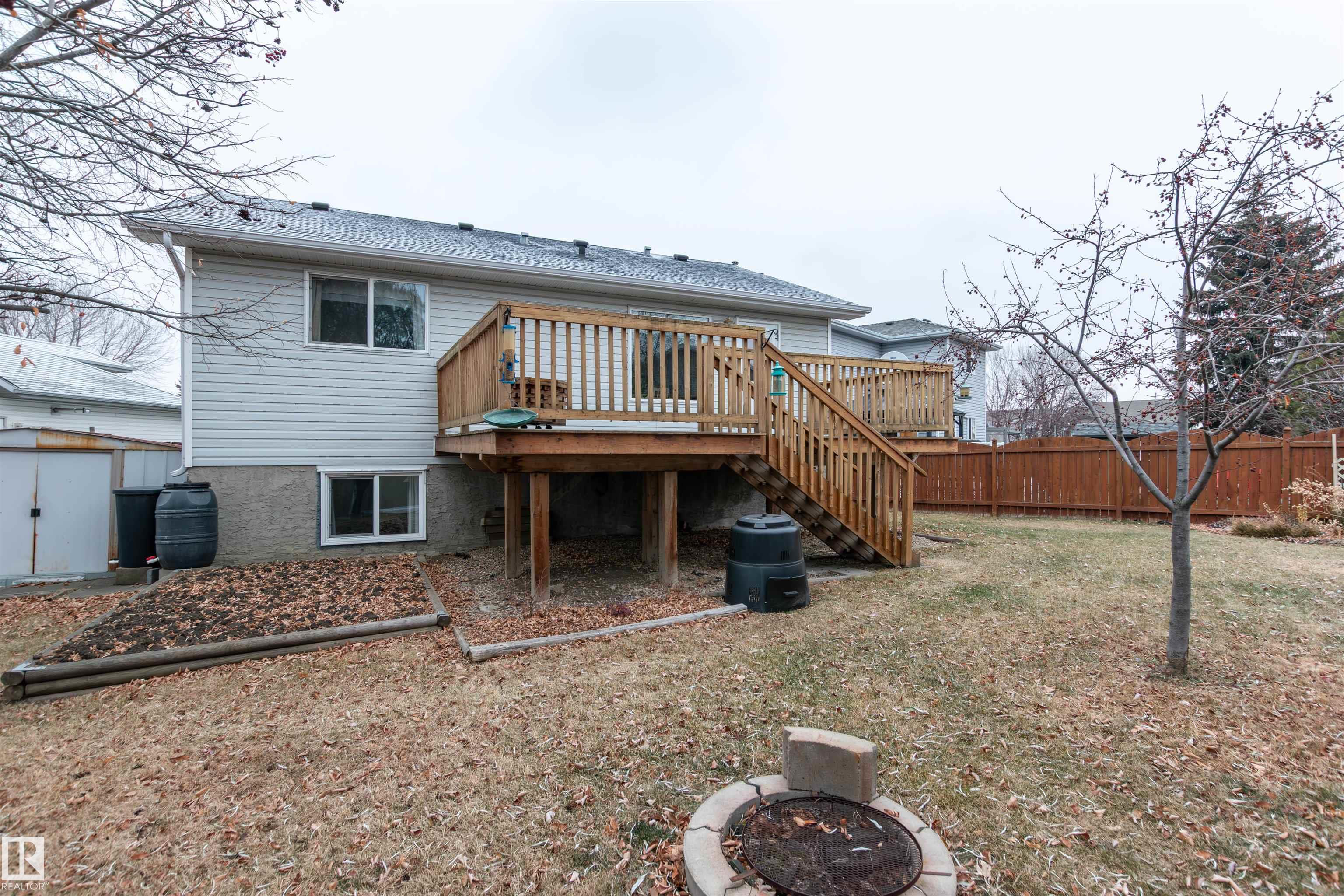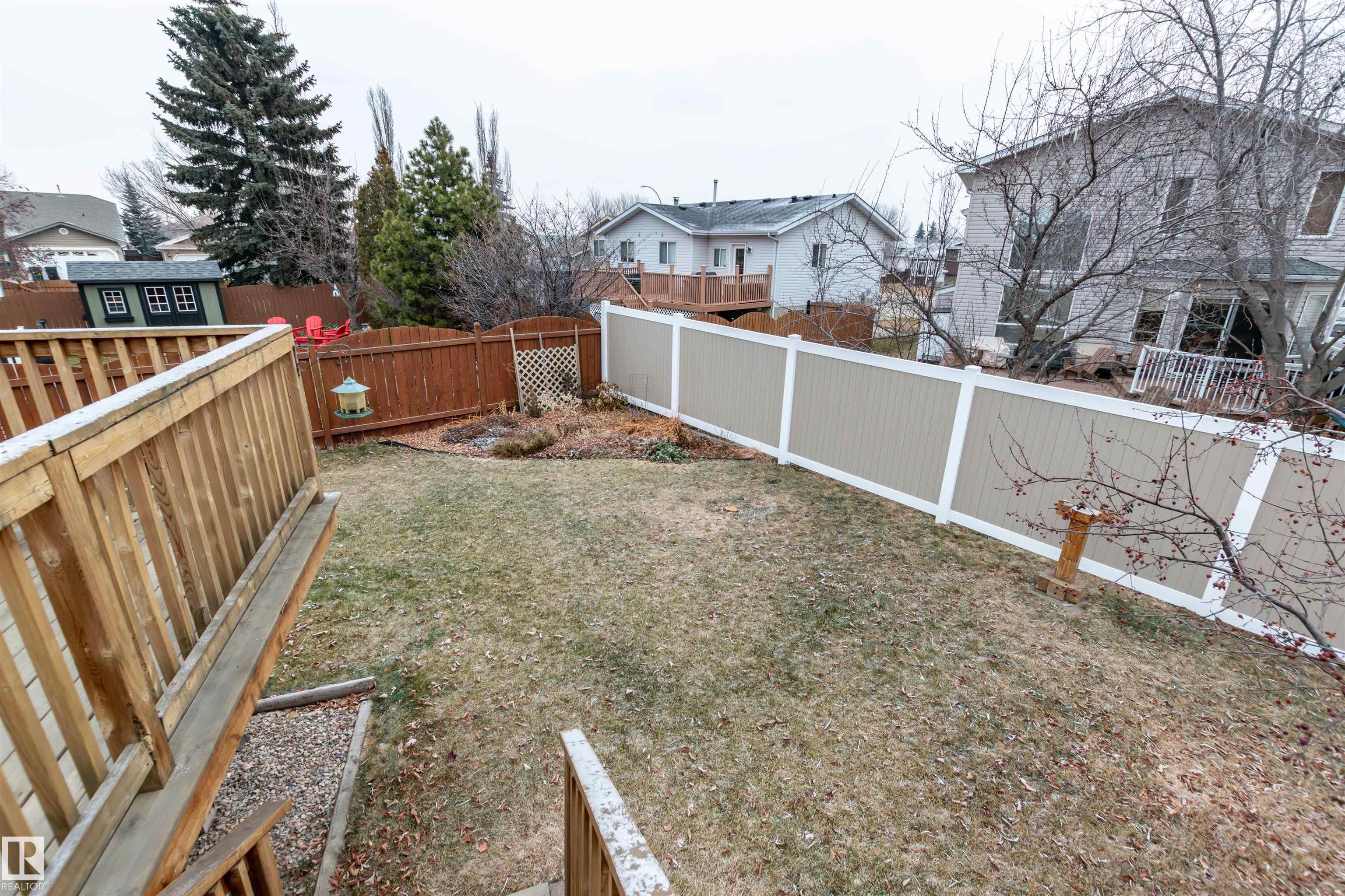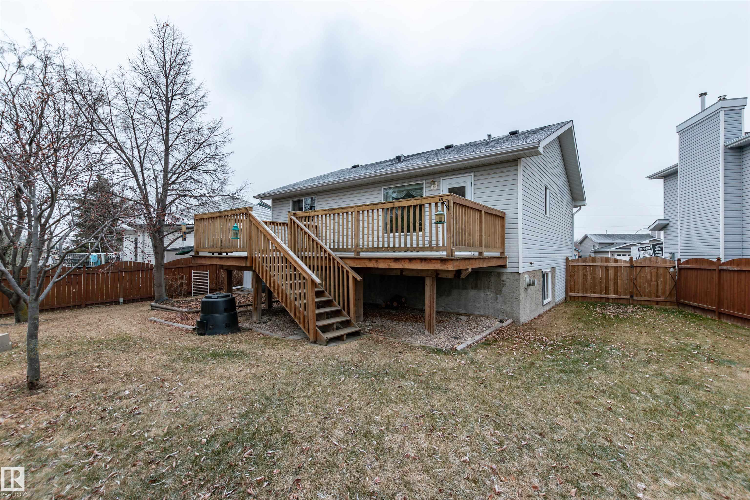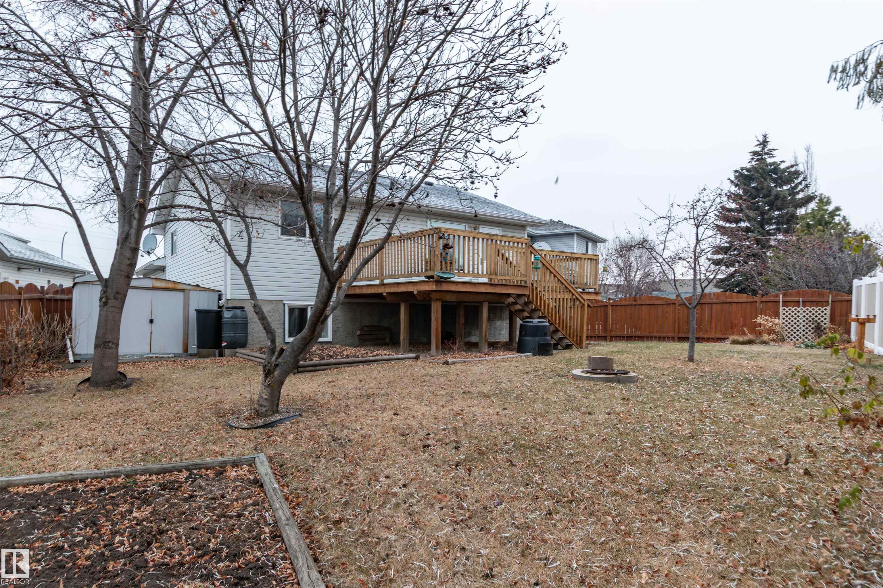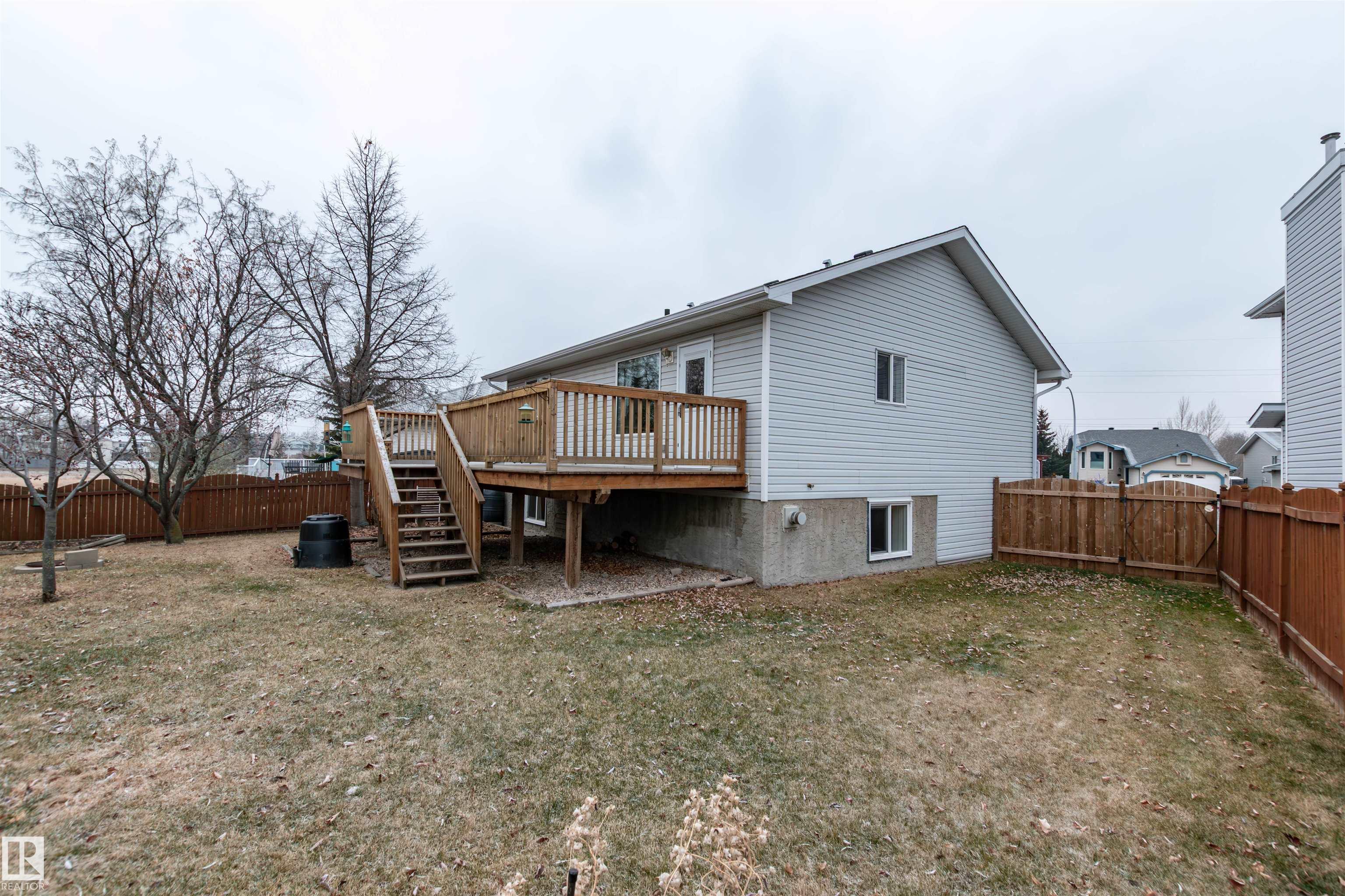 Well maintained 2 + 1 bedroom bi-level home with a large yard and a view of a nearby park. This home features a cozy living room, an upgraded eat in kitchen with a patio door leading to a large deck. A good sized master bedroom and second bedroom and the 4 piece main bathroom complete the mainfloor. Downstairs is fully developed with a large family room with a gas fireplace, the 3rd bedroom, a second full bathroom and ample storage area. Upgrades over the years include furnace and hotwater tank, doors and windows in 2008, roof in 2014, a new stove, deck replaced in 2018, a kitchen reno in 2022 and a new garage door and opener. A great place to call home!