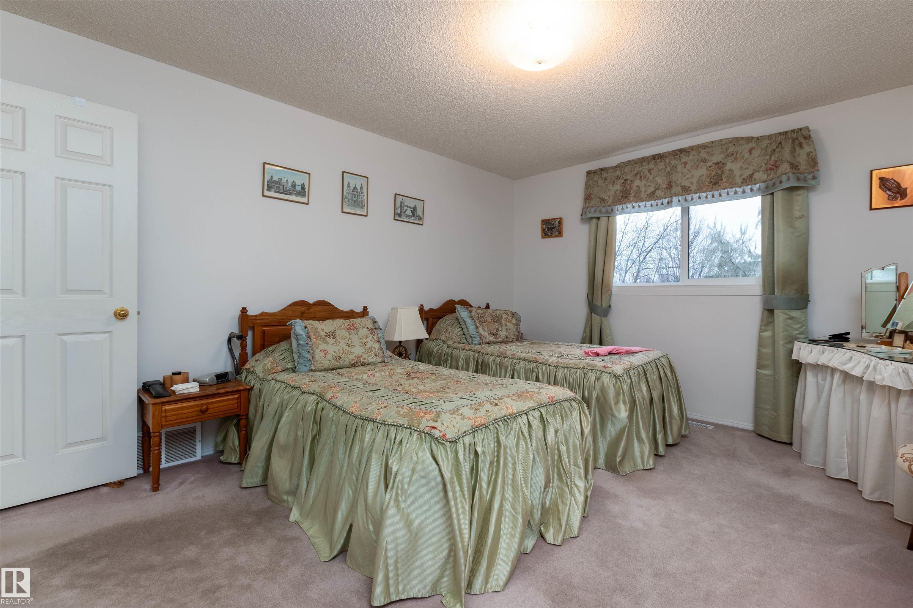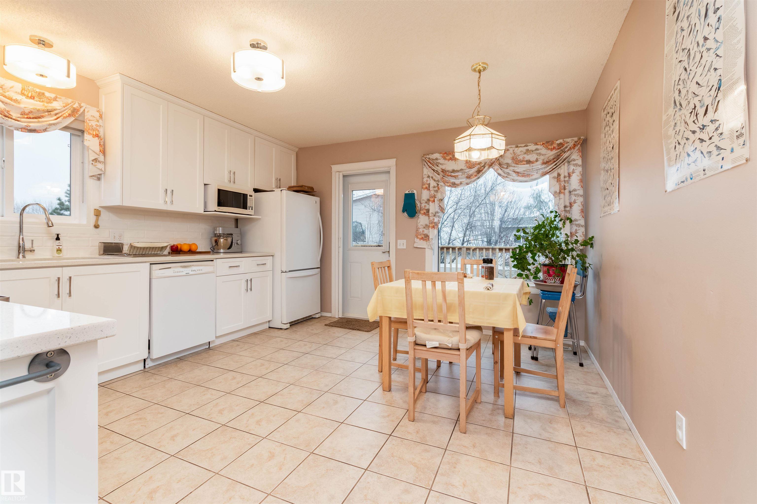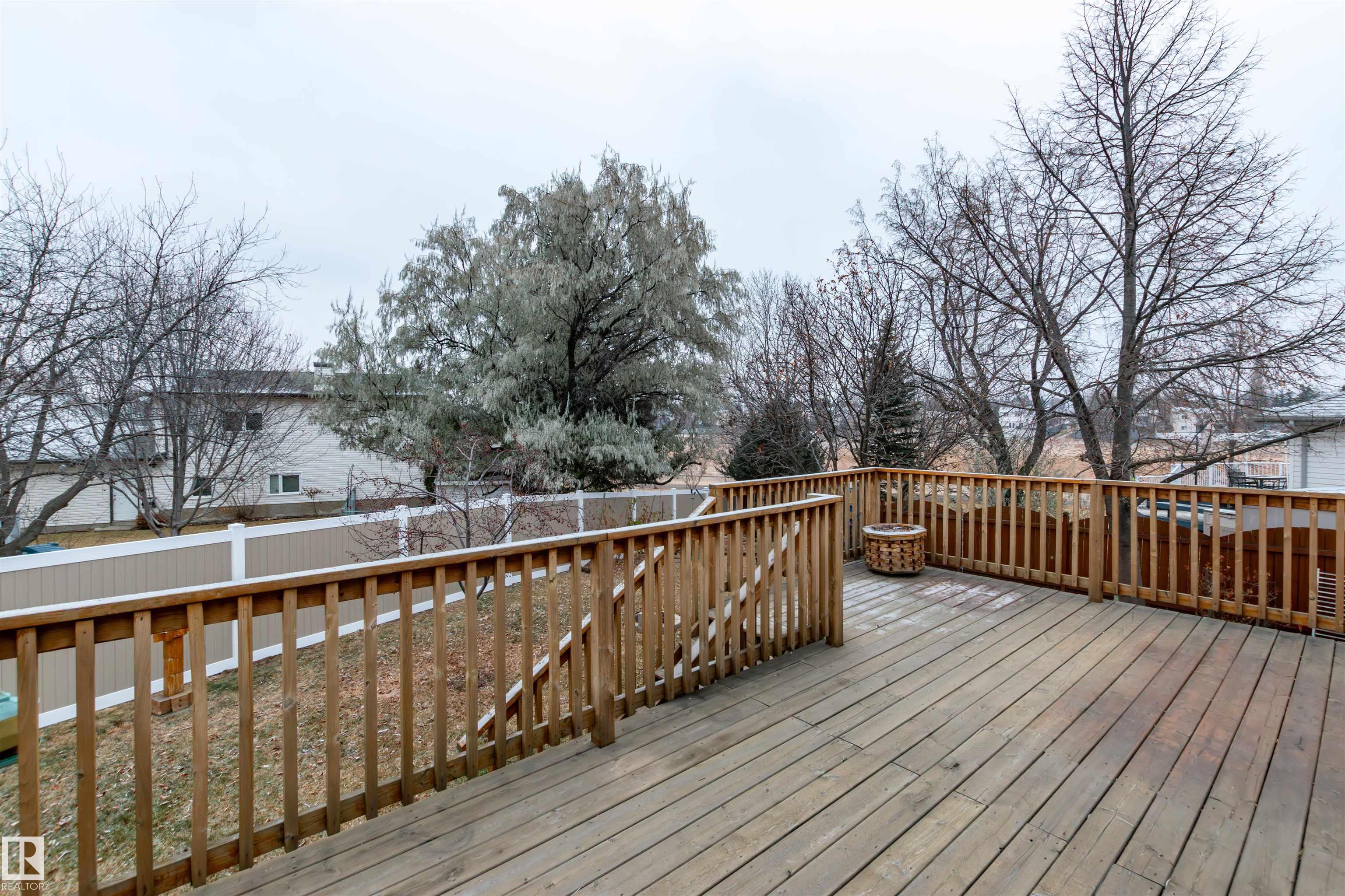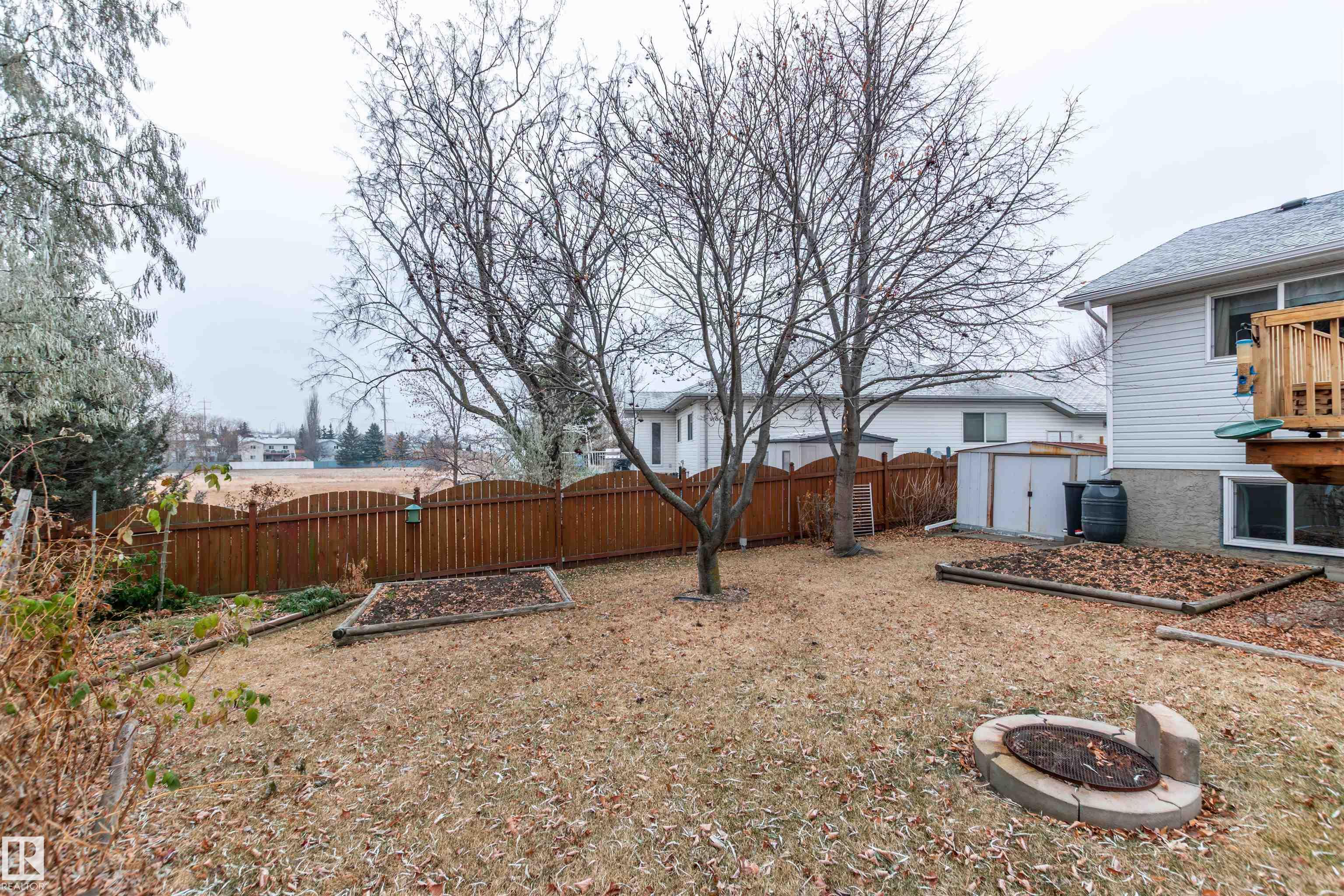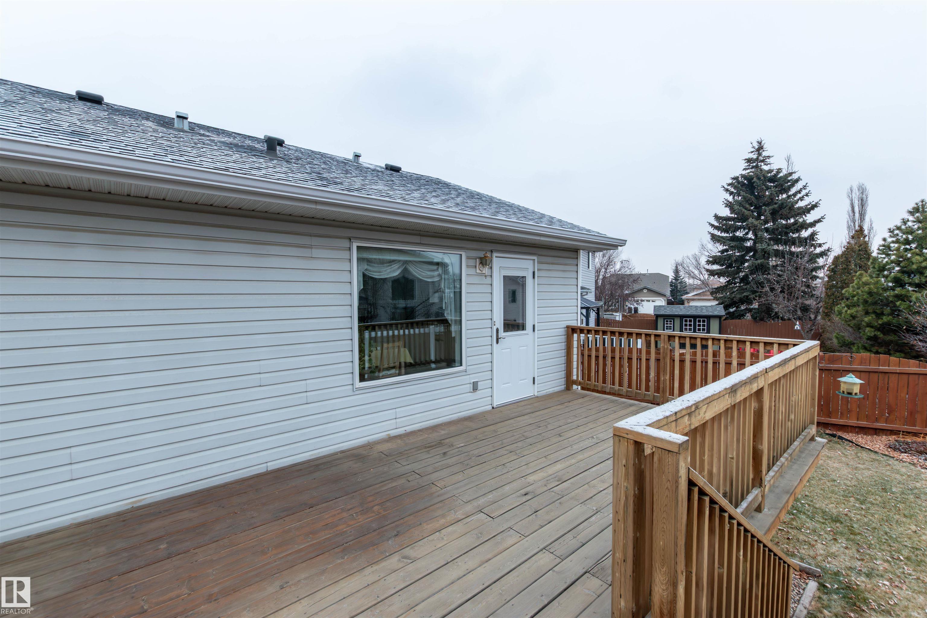 Well maintained 2 + 1 bedroom bi-level home with a large yard and a view of a nearby park. This home features a cozy living room, an upgraded eat in kitchen with a patio door leading to a large deck. A good sized master bedroom and second bedroom and the 4 piece main bathroom complete the mainfloor. Downstairs is fully developed with a large family room with a gas fireplace, the 3rd bedroom, a second full bathroom and ample storage area. Upgrades over the years include furnace and hotwater tank, doors and windows in 2008, roof in 2014, a new stove, deck replaced in 2018, a kitchen reno in 2022 and a new garage door and opener. A great place to call home!