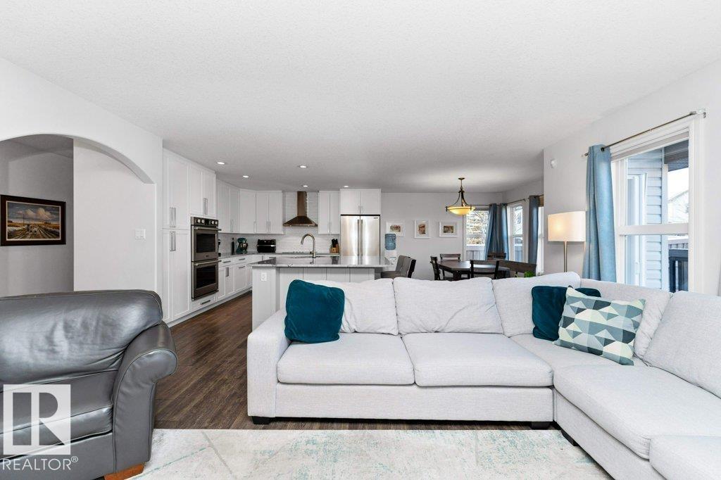 Over 2230 sq ft in this 2-storey home located in a quiet cul-de-sac and features a fully renovated kitchen with newer appliances (2021) extensive cabinetry, pantry, double ovens, induction cooktop, a massive island, and a bright dining nook. The open-concept layout connects the kitchen to the living room, highlighted by a gas fireplace and a wall of windows that fill the space with natural light and overlook the deck and patio. The generous primary suite includes an updated ensuite and walk-in closet, while two additional bedrooms, a spacious bonus room, an updated bathroom, and two linen closets complete the upper floor. The partially finished basement offers a 4th room, full bathroom, workout area, and ample storage. Additional features include air conditioning and a heated double attached garage, newer washer/dryer (2023). Conveniently located within walking distance to parks, spray park, all amenities, and just minutes from the Anthony Henday and the MacTaggart Sanctuary.