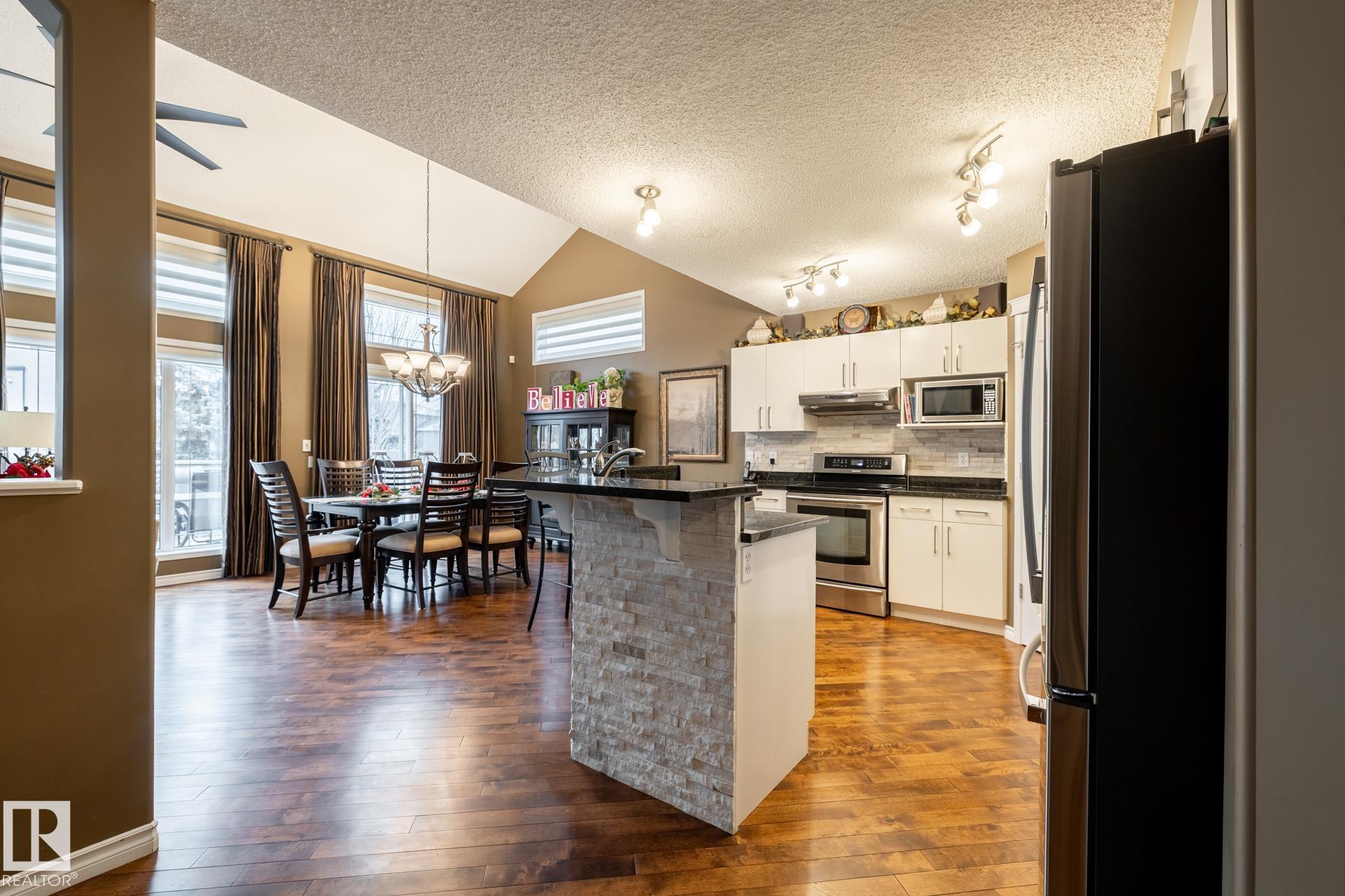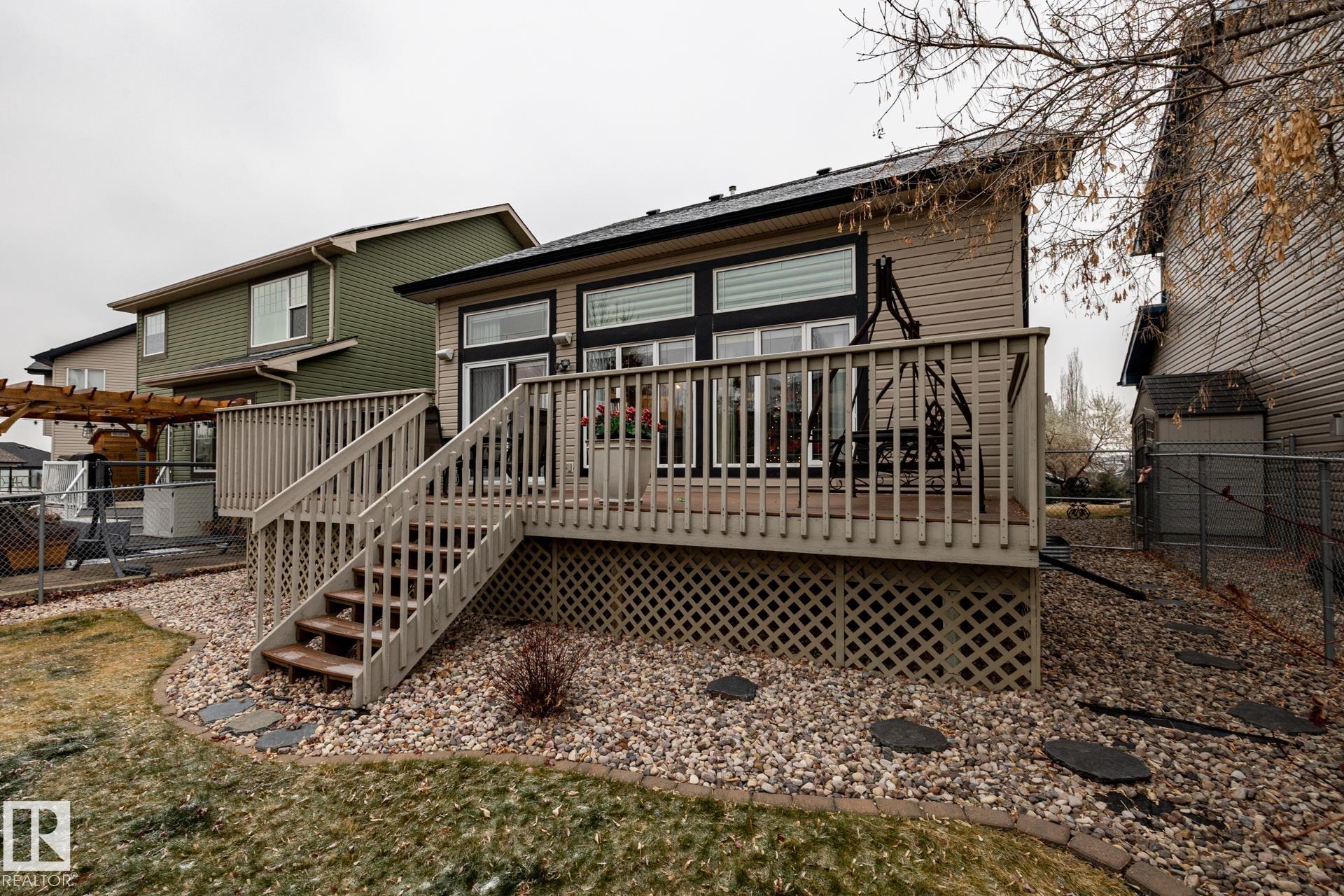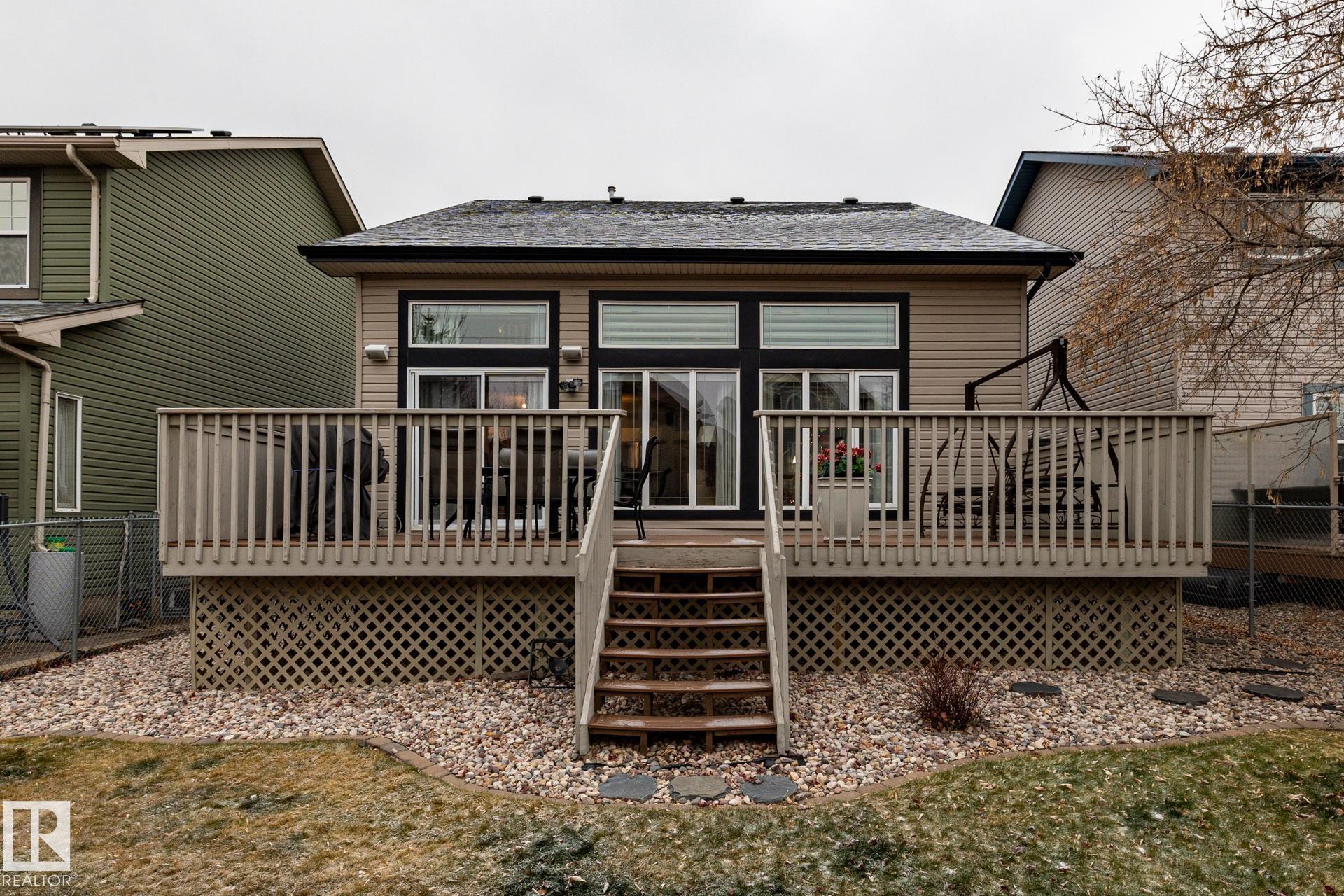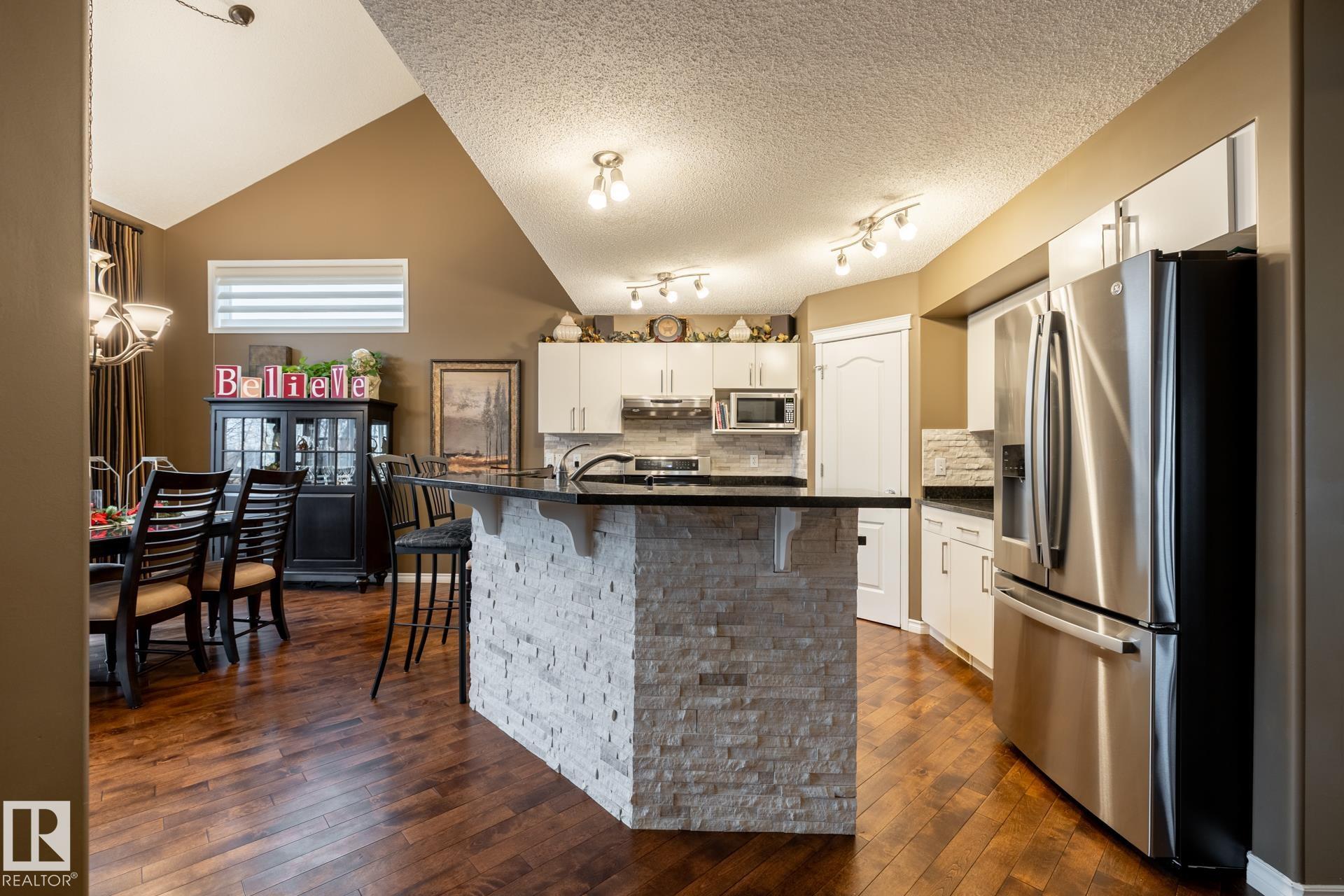 Nestled in Lakeland Ridge, this beautifully upgraded family-friendly CUL-DE-SAC home offers a prime location with walking trails and green space right behind it. Spanning 1796 square feet, this home boasts gleaming hardwood floors throughout, two bedrooms and loft upstairs that could easily be converted into a bedroom. The large primary bedroom features a four-piece ensuite with a large soaker tub and walk in closet.The main floor you?ll find a refinished white kitchen featuring brand new stainless steel appliances with a slate gas fireplace, dining room, a laundry room, and a flex room. Maintenance free deck off the back features a gas BBQ hookup and overlooks walking paths and green space. The fully finished basement includes a large rec room with a built-in home theatre, a bedroom, and a three-piece bathroom with heated floors. Additional features include a newer hot water tank, NEW shingles, CENTRAL A/C, and a HEATED GARAGE! Don?t miss this chance to own this stunning home in the ideal location!