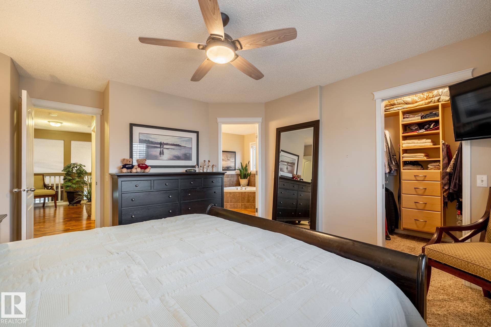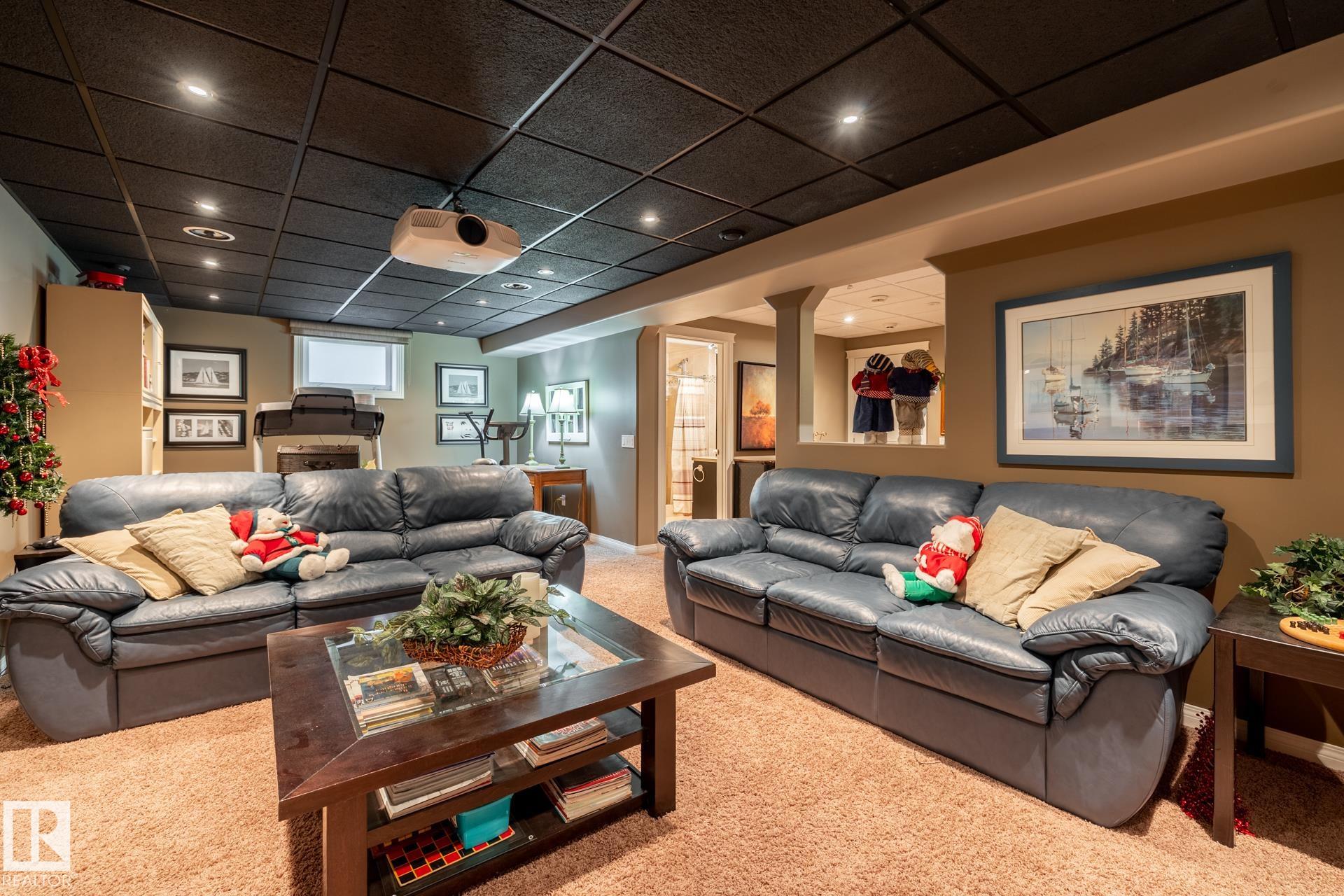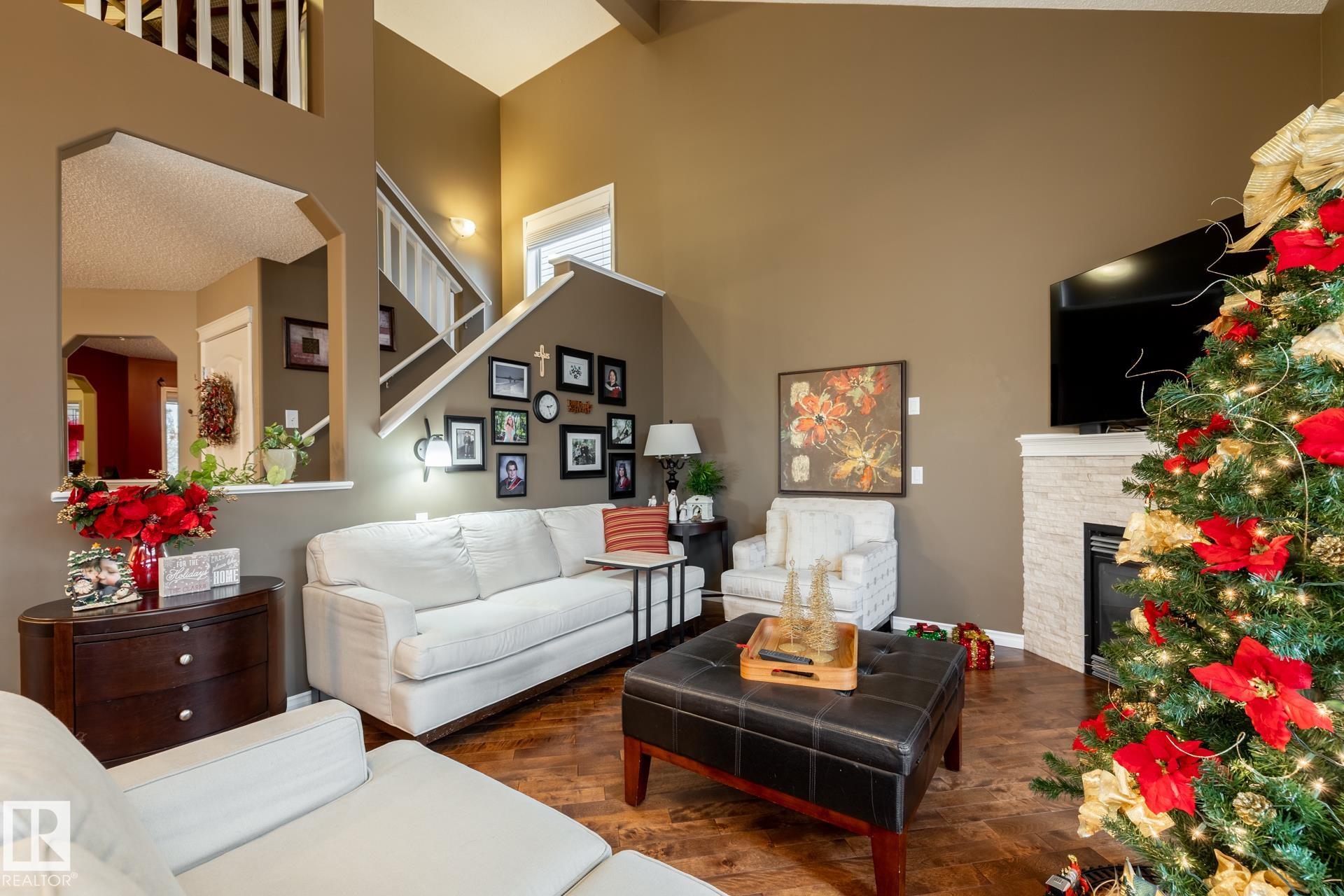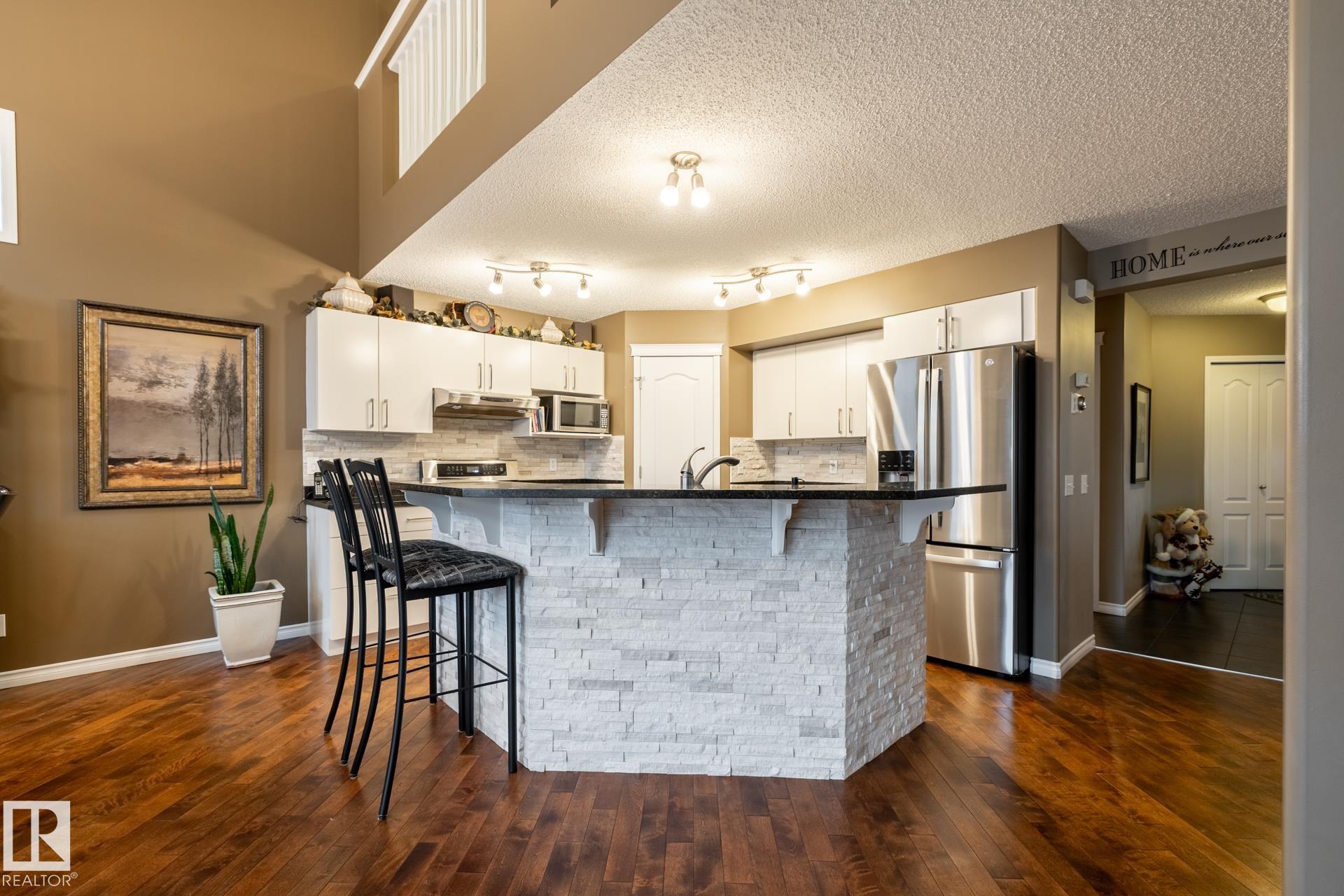Nestled in Lakeland Ridge, this beautifully upgraded family-friendly CUL-DE-SAC home offers a prime location with walking trails and green space right behind it. Spanning 1796 square feet, this home boasts gleaming hardwood floors throughout, two bedrooms and loft upstairs that could easily be converted into a bedroom. The large primary bedroom features a four-piece ensuite with a large soaker tub and walk in closet.The main floor you?ll find a refinished white kitchen featuring brand new stainless steel appliances with a slate gas fireplace, dining room, a laundry room, and a flex room. Maintenance free deck off the back features a gas BBQ hookup and overlooks walking paths and green space. The fully finished basement includes a large rec room with a built-in home theatre, a bedroom, and a three-piece bathroom with heated floors. Additional features include a newer hot water tank, NEW shingles, CENTRAL A/C, and a HEATED GARAGE! Don?t miss this chance to own this stunning home in the ideal location!