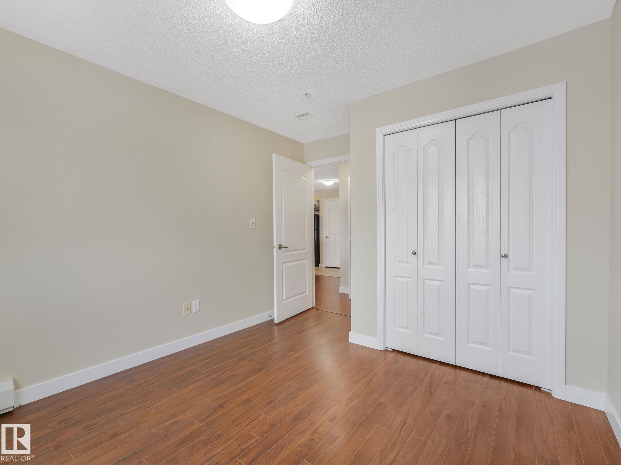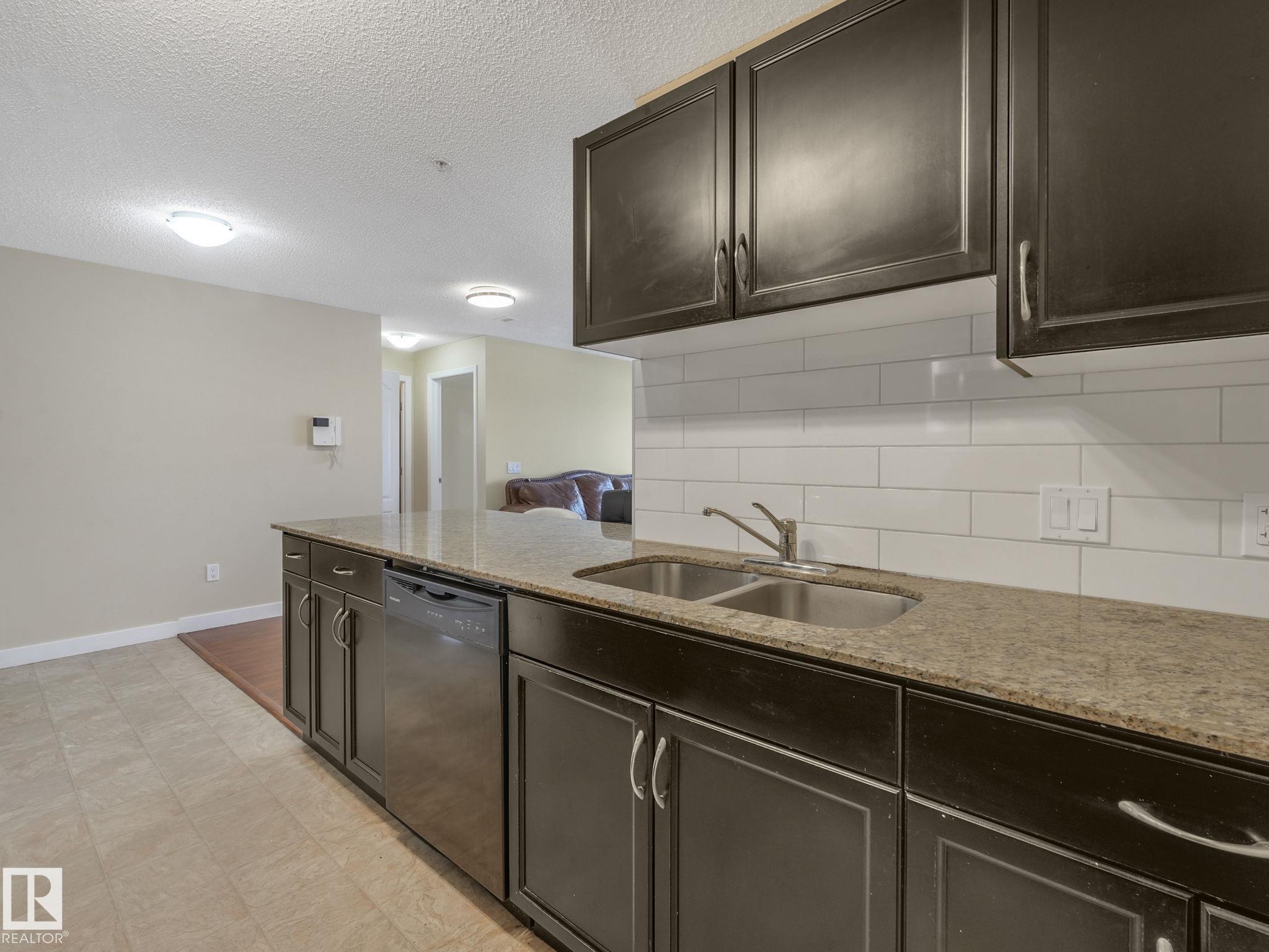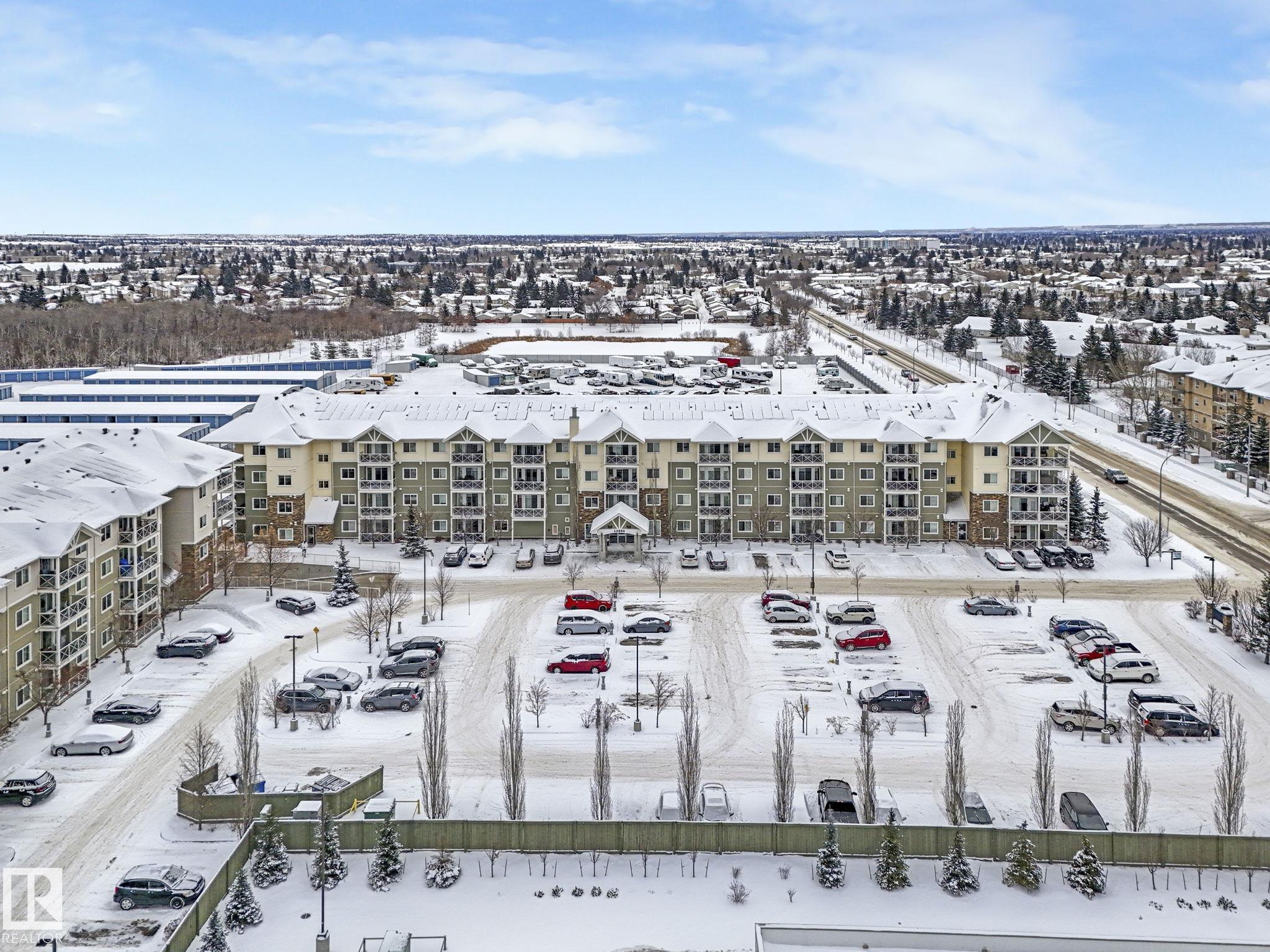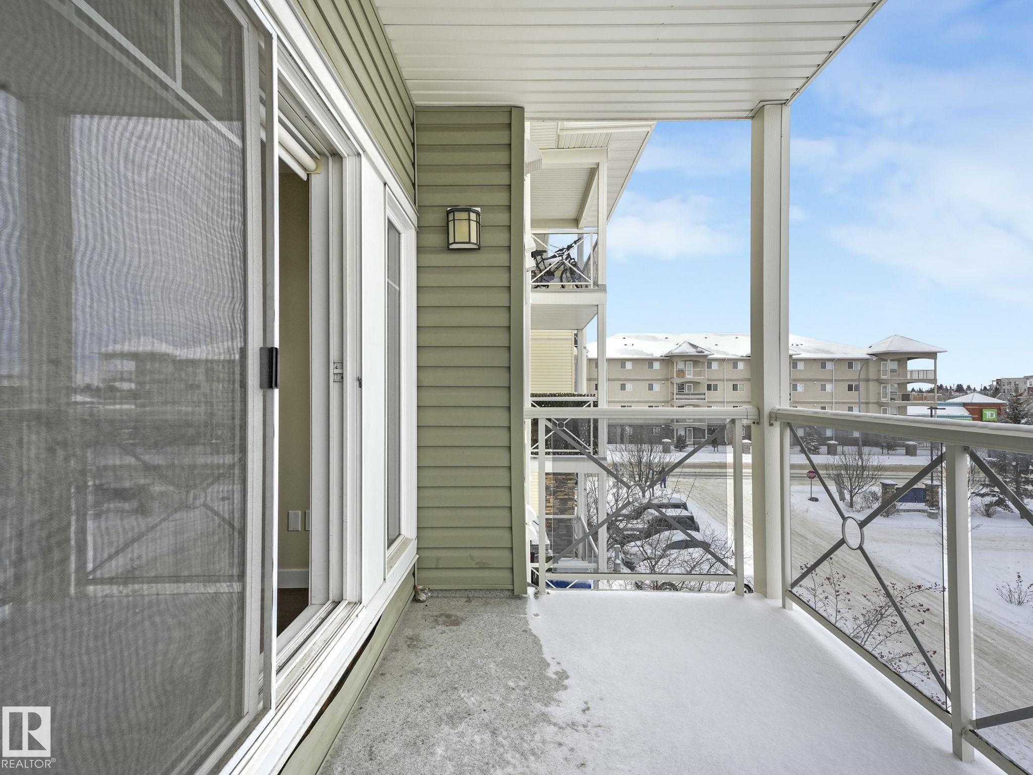 Pride of ownership with this immaculate 2014 built 2-bedroom, 2-bathroom plus Den, 3rd floor condo in Edmonton's North West Community of Baranow. Steps to everything you need such as shopping, transit and amenities. The entryway is welcoming, with a large closet and open layout which showcases the west facing windows full of natural light. The bedrooms are on opposite sides for privacy. The master suite has a walk-in closet and a 3-piece ensuite with a large glass door shower. The second bedroom has a 4-piece bath next to it. The kitchen is upgraded with granite counter-tops, a full-height tile backsplash, and quality cabinets. There?s also in-suite laundry. Large west facing balcony is an ideal spot for relaxing in the evenings. Solara provides an onsite gym. Titled energized parking stall is included with this property. This condo is designed for comfort and style. Don?t miss your chance to own a home in the Solara At Skyview! Low condo fee $410.36 which includes all utilities except for electricity.