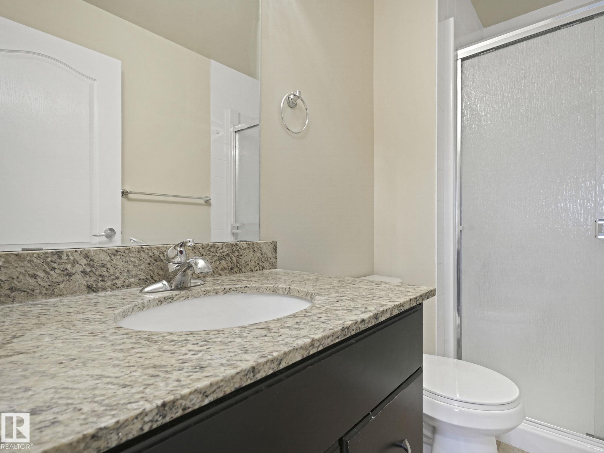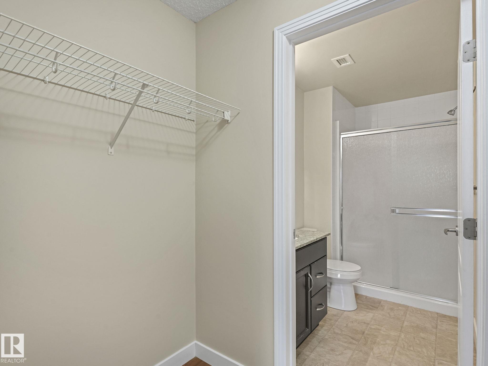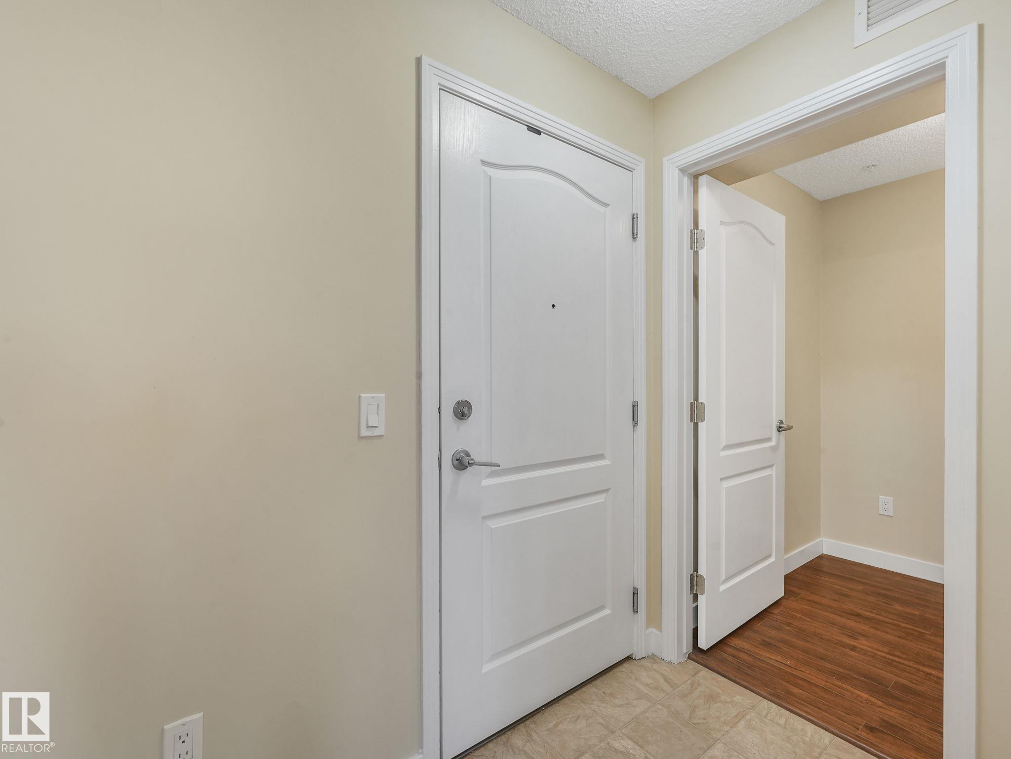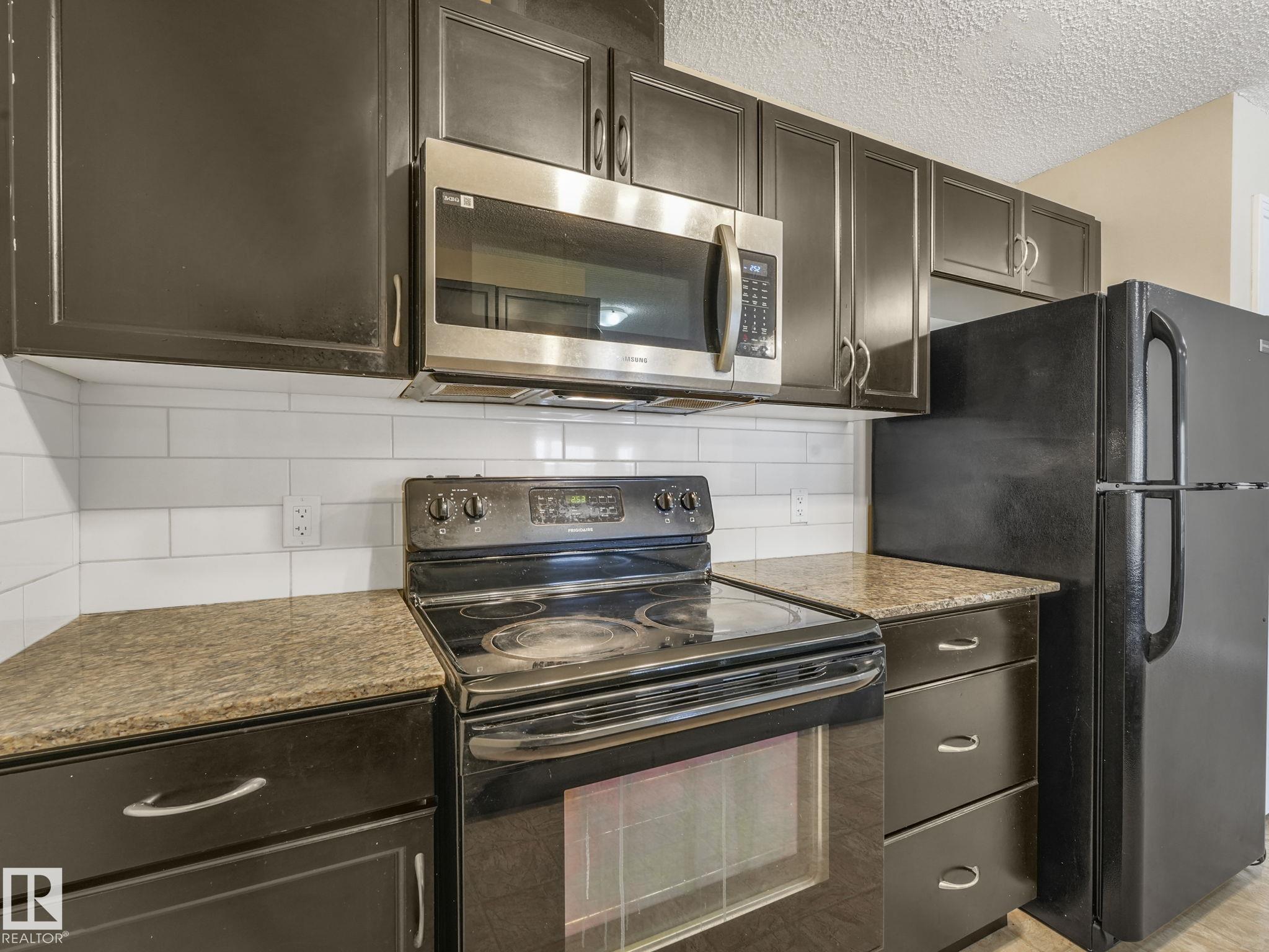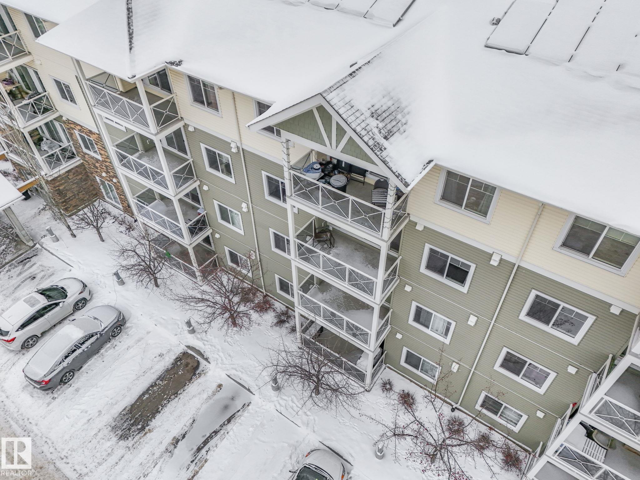 Pride of ownership with this immaculate 2014 built 2-bedroom, 2-bathroom plus Den, 3rd floor condo in Edmonton's North West Community of Baranow. Steps to everything you need such as shopping, transit and amenities. The entryway is welcoming, with a large closet and open layout which showcases the west facing windows full of natural light. The bedrooms are on opposite sides for privacy. The master suite has a walk-in closet and a 3-piece ensuite with a large glass door shower. The second bedroom has a 4-piece bath next to it. The kitchen is upgraded with granite counter-tops, a full-height tile backsplash, and quality cabinets. There?s also in-suite laundry. Large west facing balcony is an ideal spot for relaxing in the evenings. Solara provides an onsite gym. Titled energized parking stall is included with this property. This condo is designed for comfort and style. Don?t miss your chance to own a home in the Solara At Skyview! Low condo fee $410.36 which includes all utilities except for electricity.