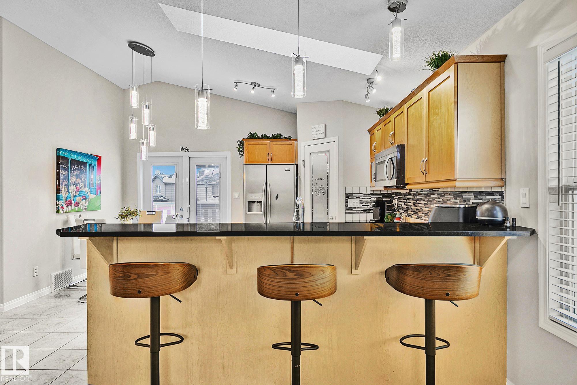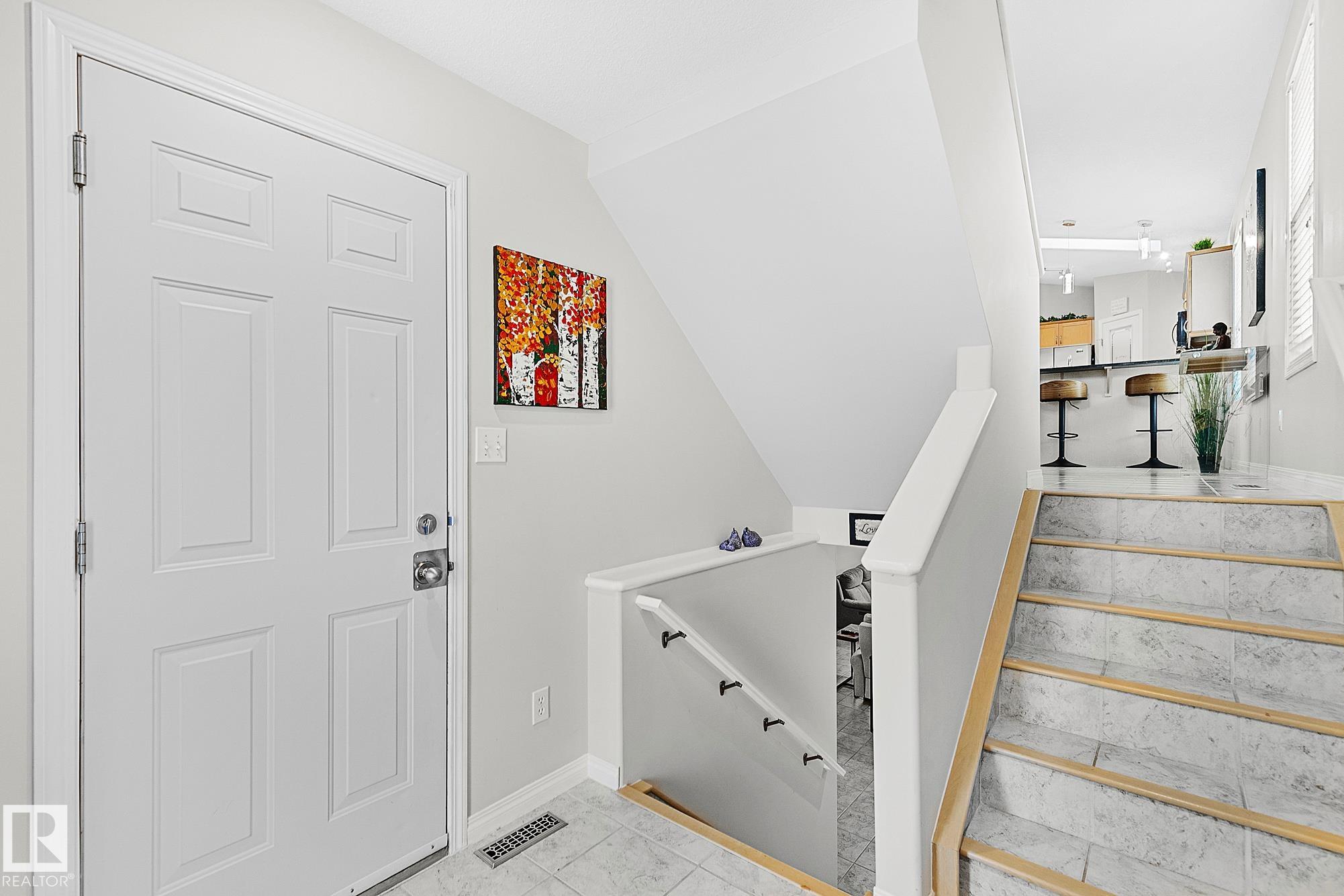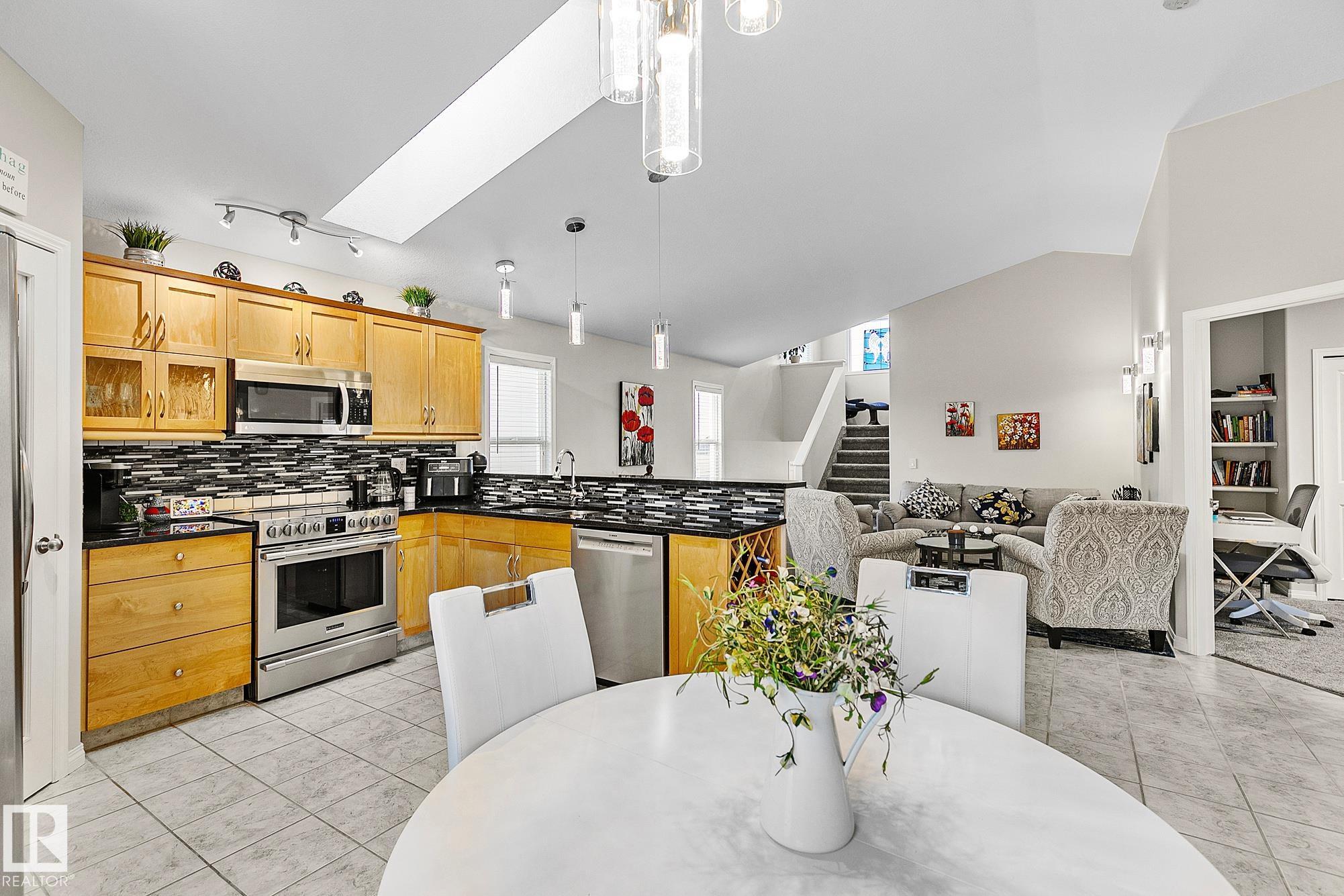 Beautifully appointed, meticulously maintained home located in a friendly neighbourhood with easy access to schools, shopping, and the Henday. Featuring an open concept center, with an abundance of cabinets, gorgeous granite countertops throughout, stainless appliances, and a corner pantry. Garden doors open to the massive pie-shaped oasis, perfect for entertaining! Main floor features two bedrooms/office/den/flex, full 4-piece bath. The primary bedroom crowns the home on the 3rd level, with an upgraded, gorgeous spa-ensuite and walk-in closet. A perfectly positioned reading nook completes the upper floor. The basement features a massive family room, workout area, full 4-piece bathroom, and an oversized bedroom. The double garage is insulated and drywalled, with a man door to the yard. Many recent upgrades this year include: new shingles, all kitchen light fixtures replaced, all new carpeting, energy-efficient furnace, dishwasher, microwave, gazebo on a professionally installed stone patio & flowerbeds.