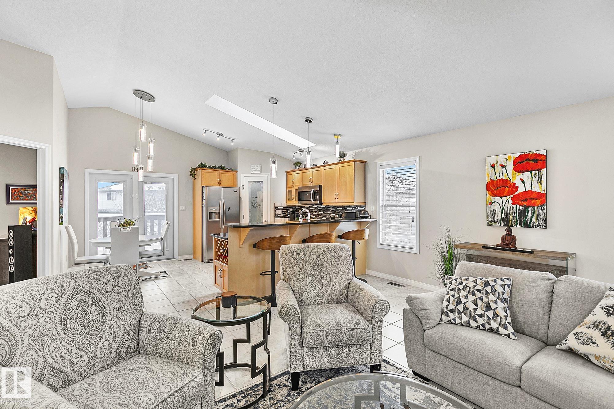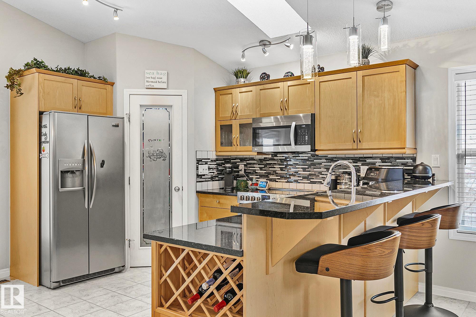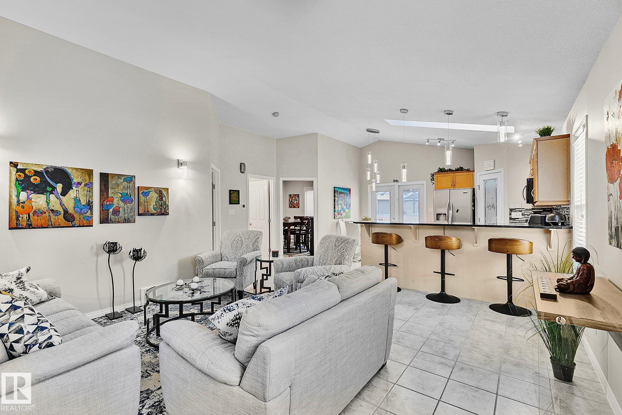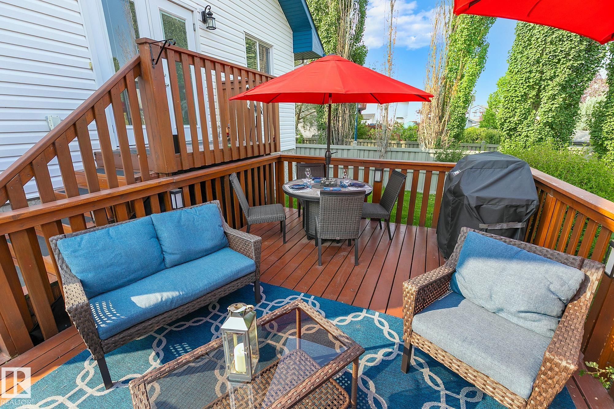 Beautifully appointed, meticulously maintained home located in a friendly neighbourhood with easy access to schools, shopping, and the Henday. Featuring an open concept center, with an abundance of cabinets, gorgeous granite countertops throughout, stainless appliances, and a corner pantry. Garden doors open to the massive pie-shaped oasis, perfect for entertaining! Main floor features two bedrooms/office/den/flex, full 4-piece bath. The primary bedroom crowns the home on the 3rd level, with an upgraded, gorgeous spa-ensuite and walk-in closet. A perfectly positioned reading nook completes the upper floor. The basement features a massive family room, workout area, full 4-piece bathroom, and an oversized bedroom. The double garage is insulated and drywalled, with a man door to the yard. Many recent upgrades this year include: new shingles, all kitchen light fixtures replaced, all new carpeting, energy-efficient furnace, dishwasher, microwave, gazebo on a professionally installed stone patio & flowerbeds.
