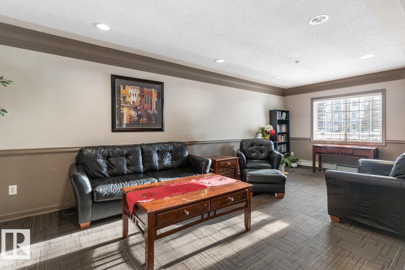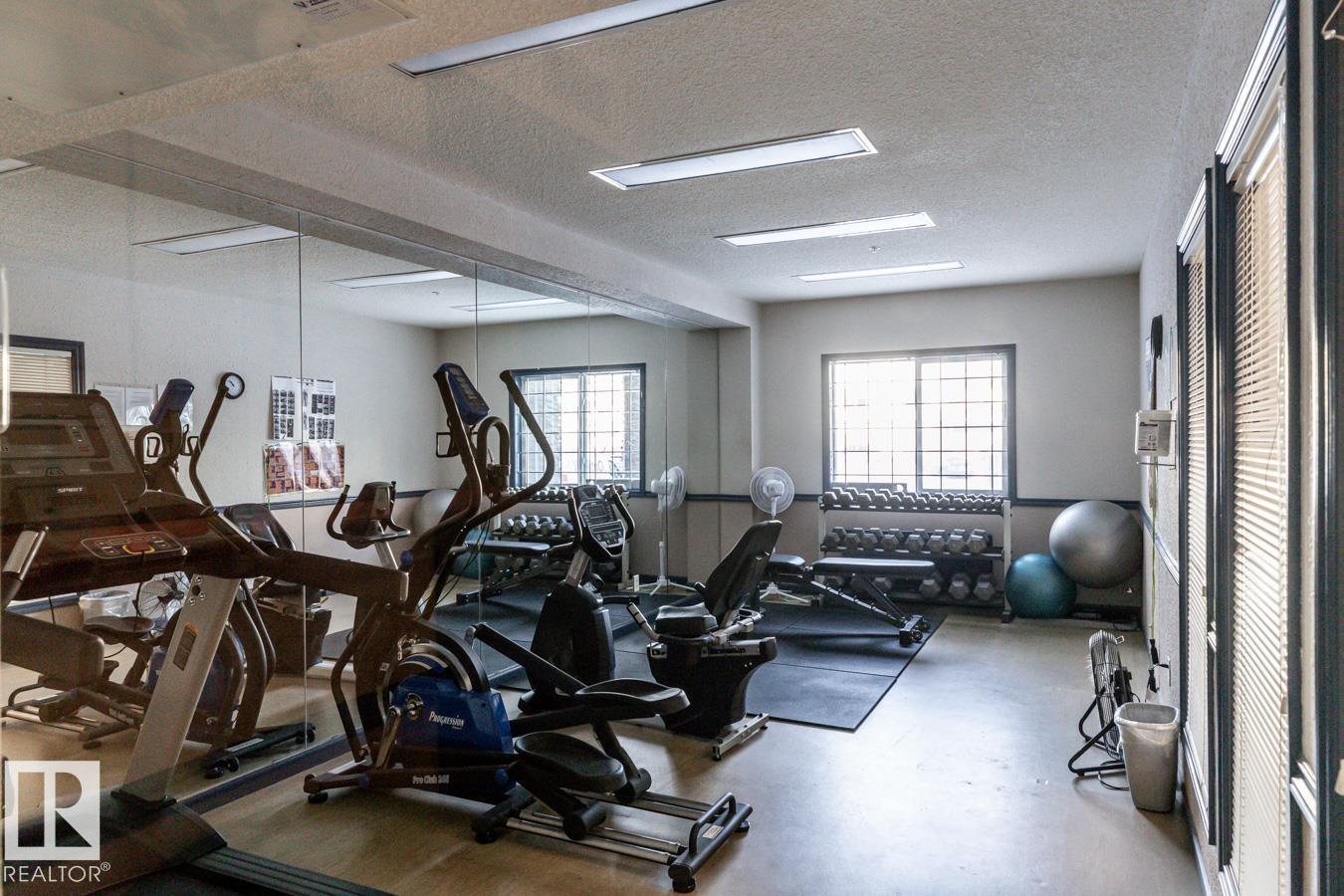 Top-floor living with unbeatable value! This bright and spacious 1-bedroom unit in Promenade Eaux Claires offers an open-concept layout with great natural light and a sunny south-facing covered balcony. The kitchen features plenty of cabinetry, a walk-around island, and flows effortlessly into the large living area, complete with a cozy corner gas fireplace and balcony access. The oversized laundry/storage room adds convenience and flexibility, while the 4-piece bathroom and generous bedroom complete the suite. Enjoy in-suite laundry, central air conditioning, and one titled above-ground parking stall visible from the unit. The building offers fantastic amenities including a fitness centre, social room with games and lounge areas. Condo fees include heat and water. All this in a prime location close to shopping, public transit, Anthony Henday, and every convenience. A great opportunity to own or invest in this well-managed north Edmonton community.