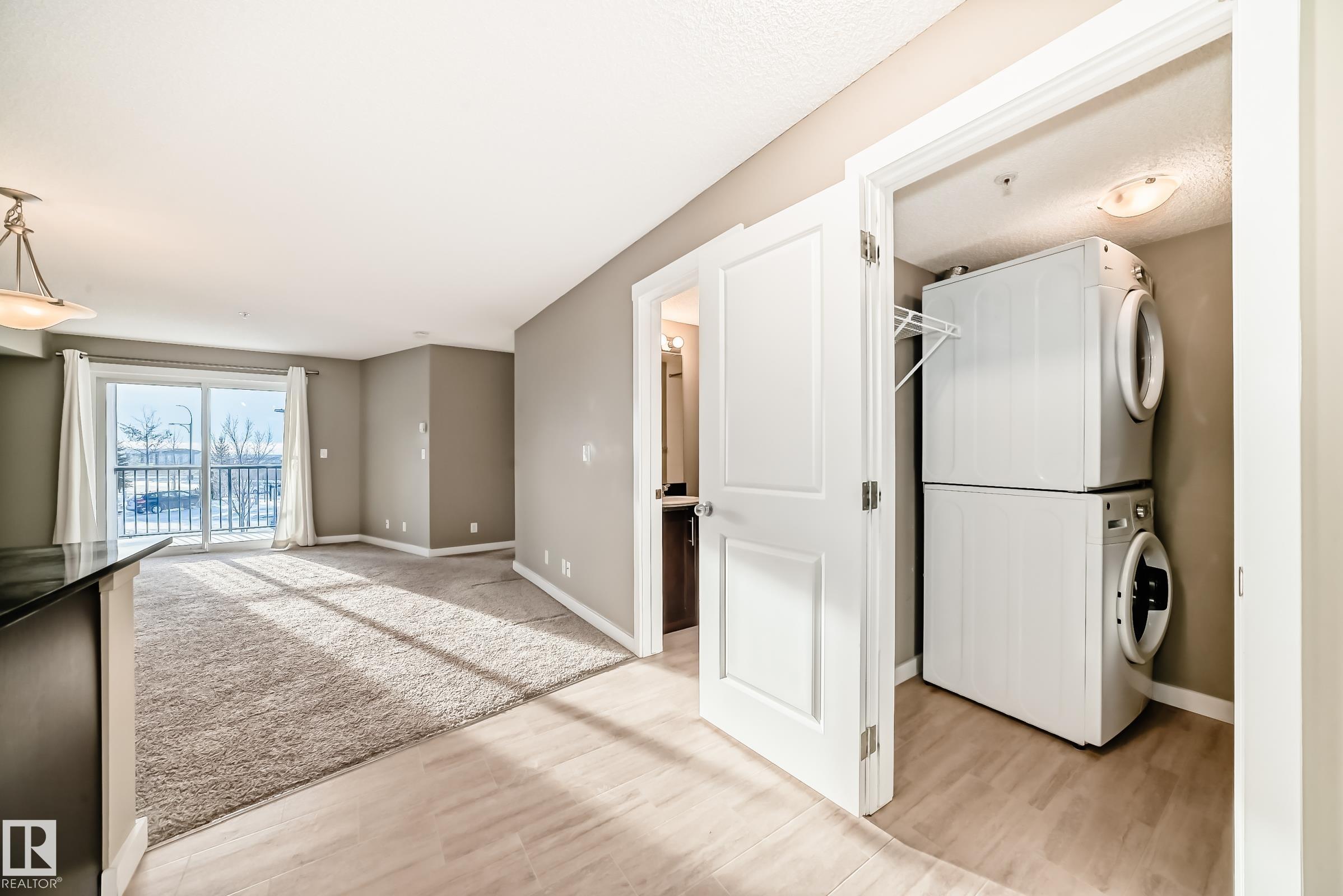 Your best life begins with a home that inspires you & this one certainly will. This stunning second floor 2 Bed, 2 Bath Condo unit stands out with the convenience of in-suite laundry & titled, HEATED UNDERGROUND PARKING with a private secure STORAGE UNIT. The sought-after METRO floor plan offers a bright, open-concept layout with modern design touches throughout. The chef-inspired kitchen boasts sleek stainless steel appliances, granite countertops, & plenty of workspace. Enjoy abundant natural light from this south-facing home, creating a warm & inviting atmosphere. The spacious primary suite features a generous walk-in area & a private 4-piece ensuite. A large balcony equipped with a rough-in for air conditioning is perfect for summer BBQs or morning coffee. This safe, quiet condo has been meticulously maintained & feels like new. Low condo fees. Perfect for first-time buyers, downsizers, families, or investors! Conveniently located with quick access to Anthony Henday, 50 Street, and Ellerslie Road.