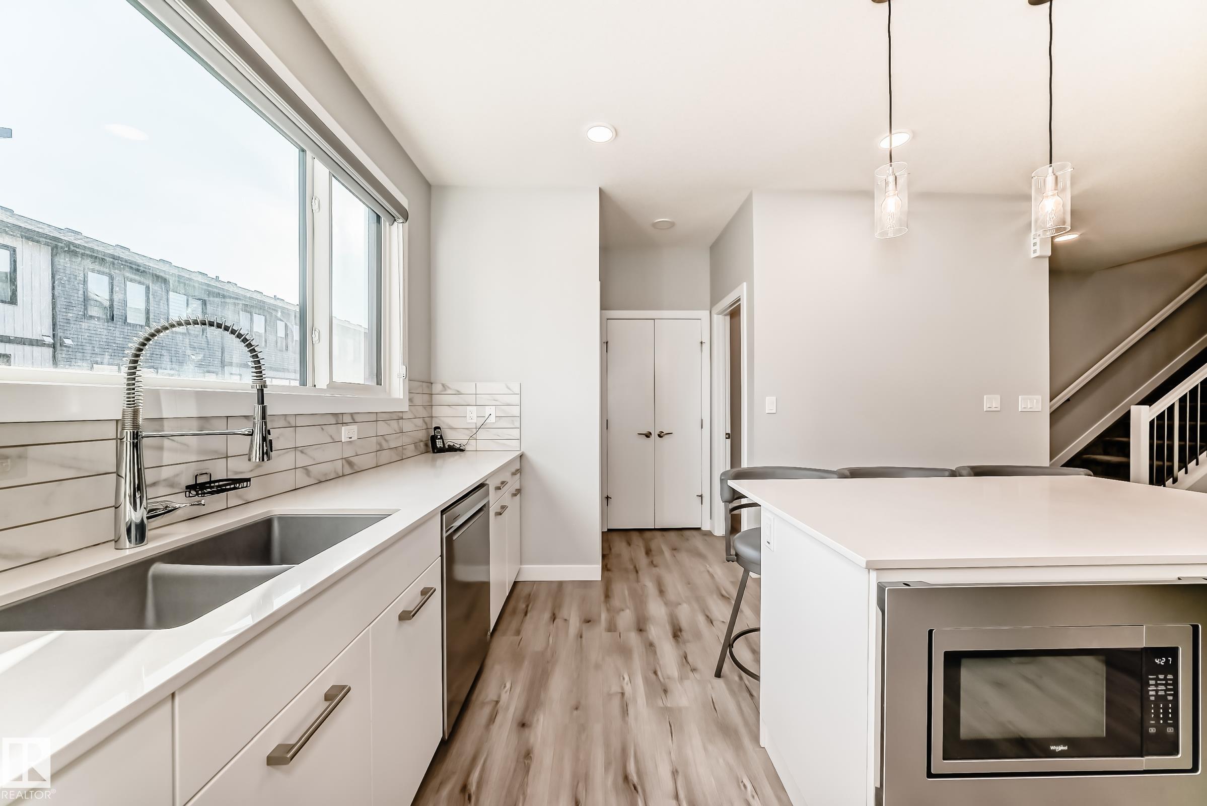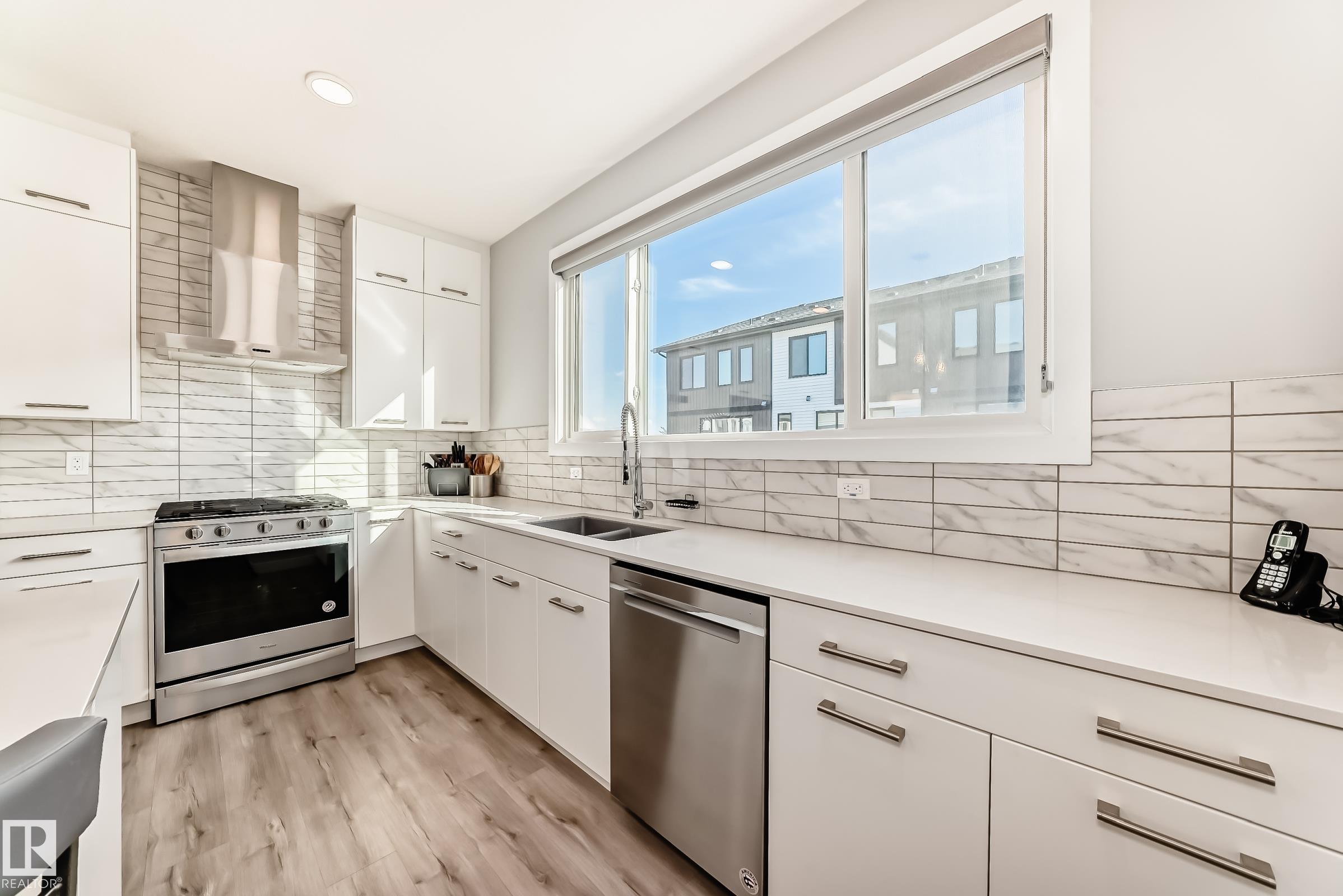 Extremely well-maintained 2-storey home in sought-after Emerald Hills, just steps from all amenities! This Paris II model by Cantiro Homes offers charming curb appeal with a front veranda and BBQ gas line. Inside, the welcoming foyer opens to a stunning living room with soaring vaulted ceilings, highlighted by an electric fireplace with a floor to ceiling tile surround. The bright kitchen overlooks the living room and features stainless steel appliances, a central island, and quartz countertops. Upstairs, the spacious primary suite boasts a walk-in closet and 4 piece ensuite. Two additional bedrooms and the convenience of upper-level laundry complete the Upstairs. The basement provides a large flex space perfect for a home office, gym, or extra storage along with direct access to the double attached garage.