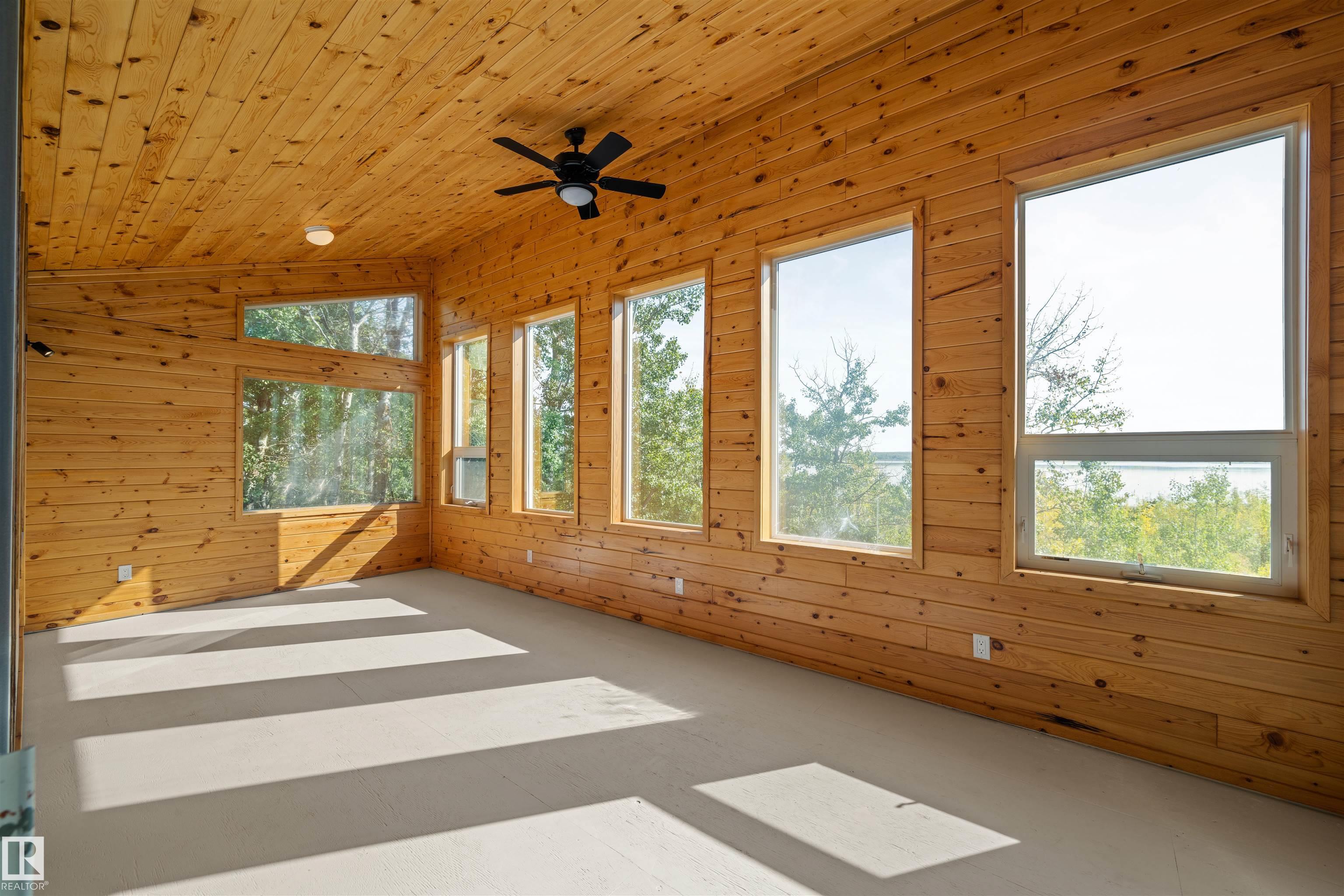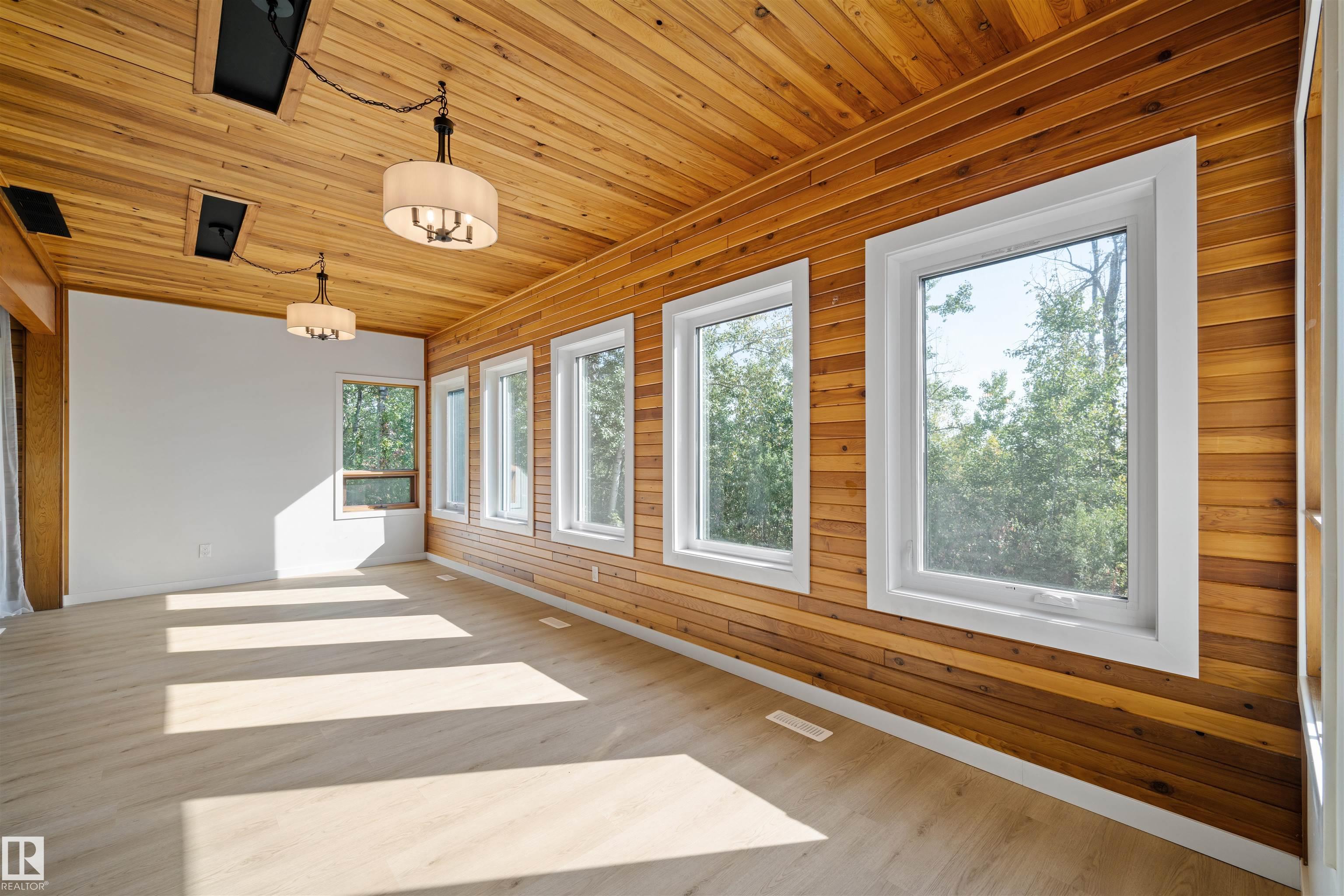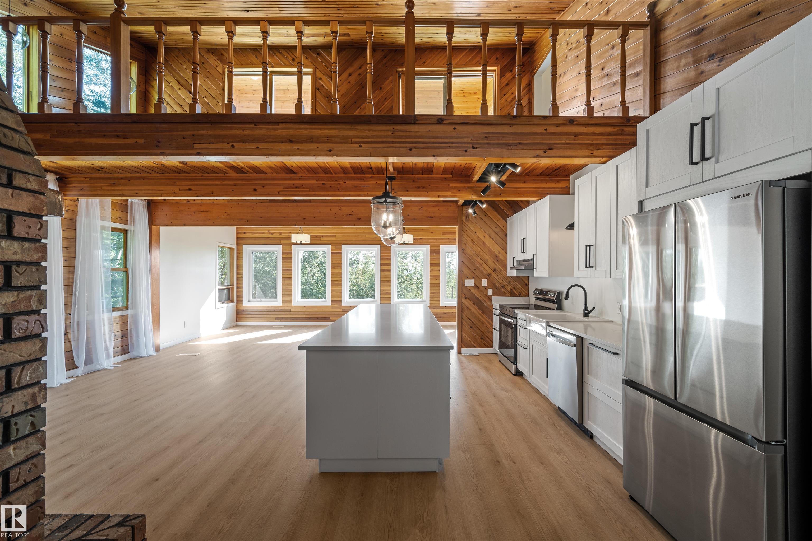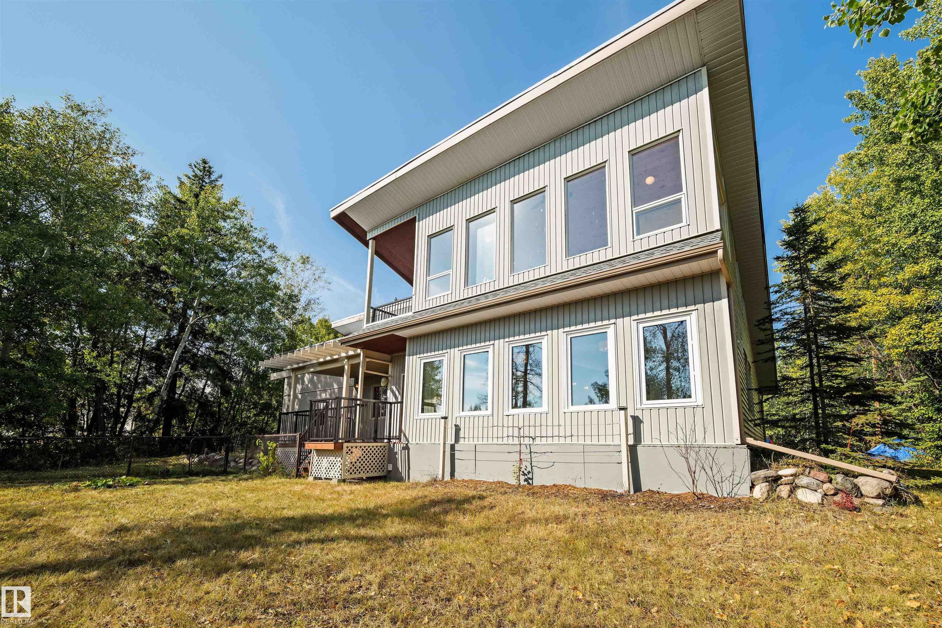 Lakefront Living at Hastings Lake! Just 20 mins east of Sherwood Park, this 4-bedroom, 2,000+ sq. ft. home blends a peaceful cabin feel with modern upgrades. Enjoy lake views from nearly every room and a 2nd-floor sunroom retreat. Updates include: new lake-side entry deck stairs/platform, handrails, fresh paint to deck/cover and new eavestroughs, Inside: new vinyl flooring throughout, remodeled kitchen with updated cabinet fronts, granite counters, new fridge/range/dishwasher & washer/dryer, plus new light fixtures, ceiling fans, switches, outlets, hardware, baseboards & trims. Fully renovated bathroom with new vanity, toilet, tub/tile, fixtures & fan. New water treatment system with powered anode, freshly cleaned furnace/ducting, and fresh paint throughout (incl. 3-season sunroom floor). Sitting on just under an acre, this property offers natural light, tranquility, and year-round lakefront living!