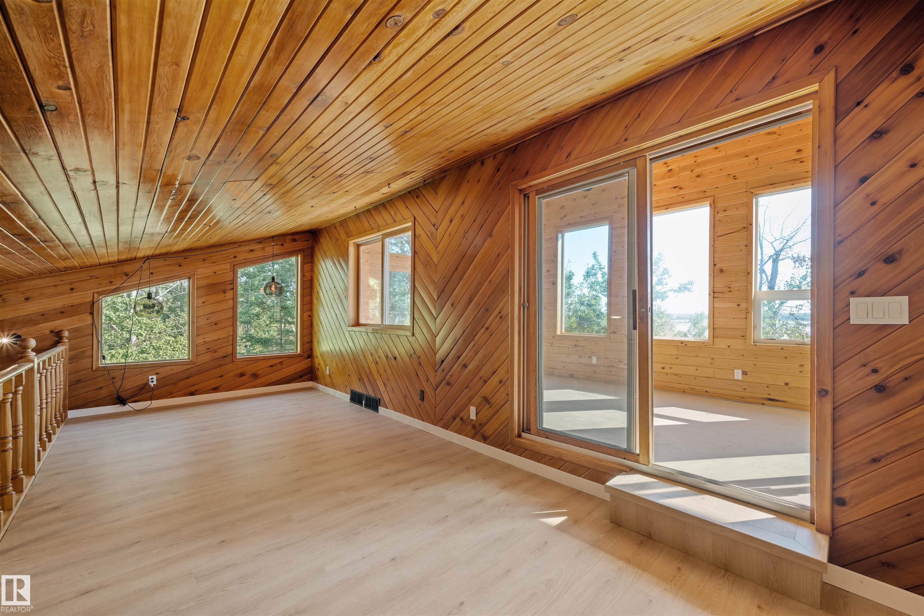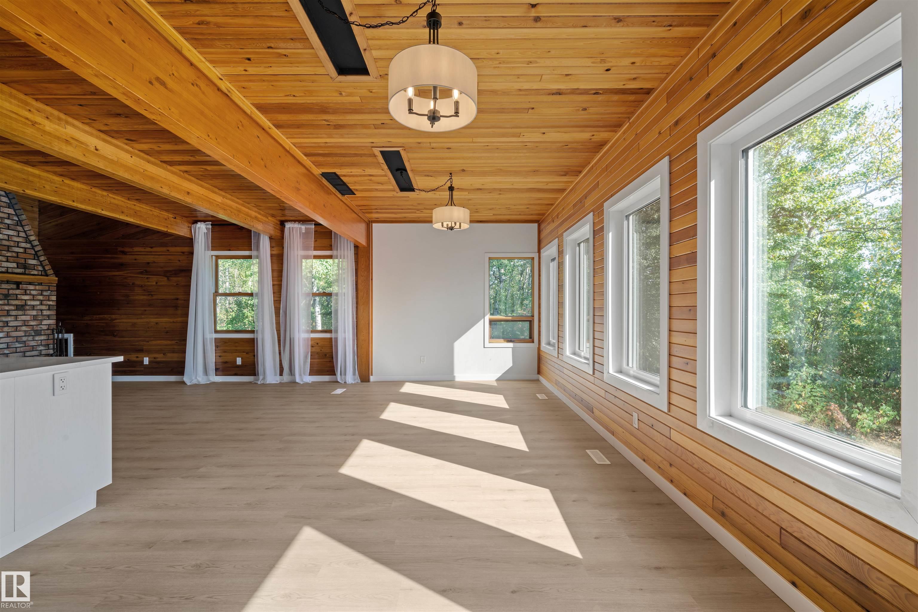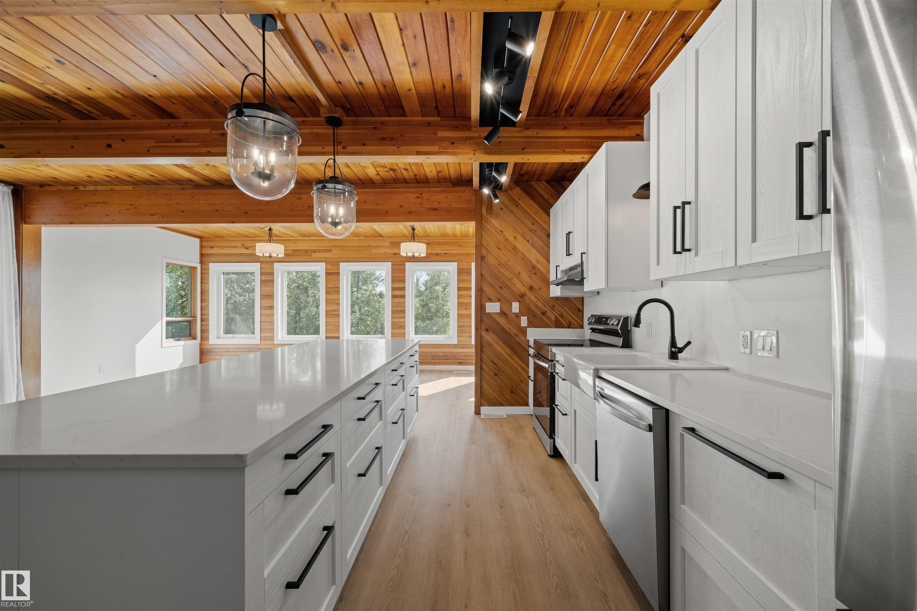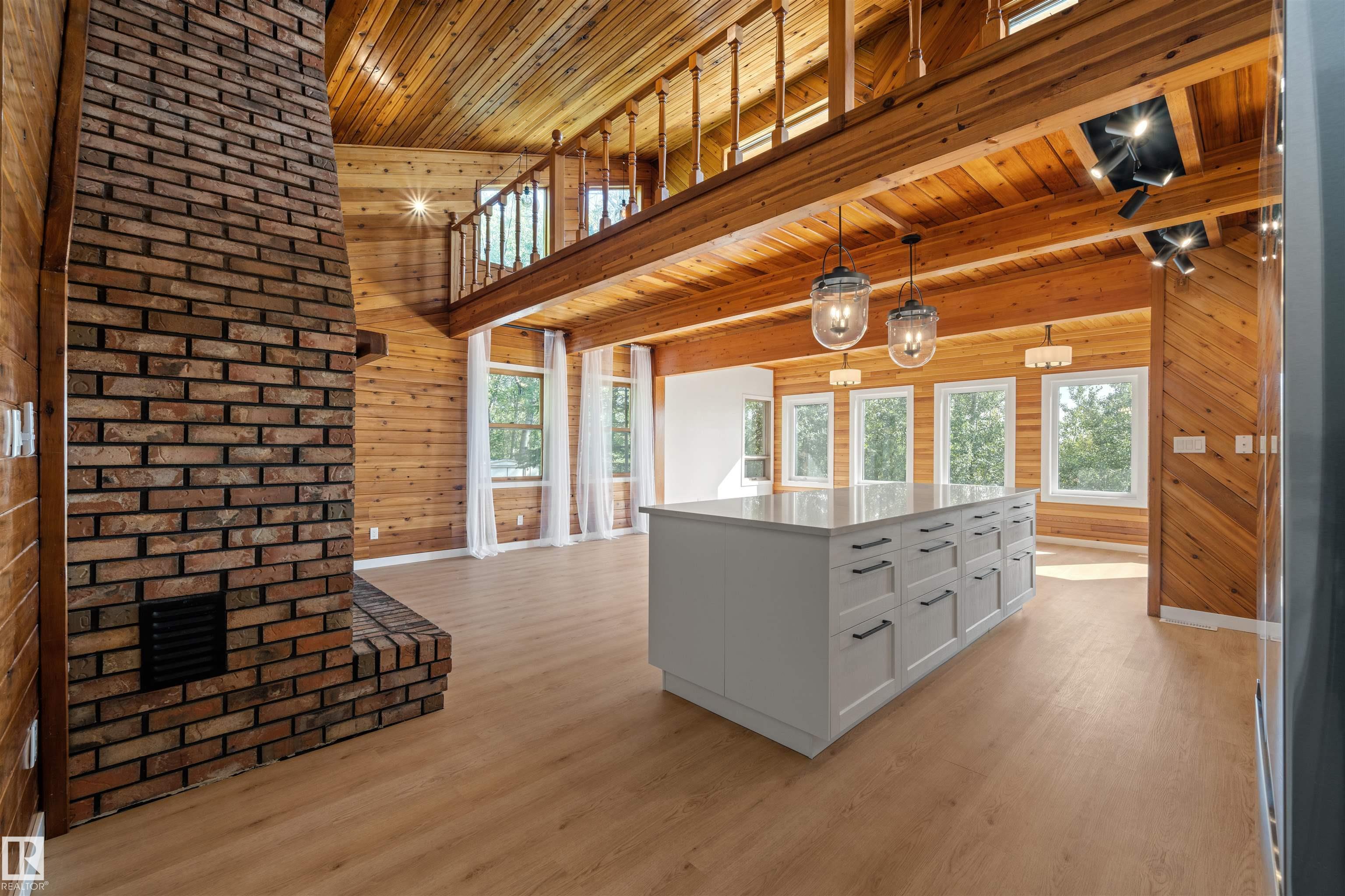 Lakefront Living at Hastings Lake! Just 20 mins east of Sherwood Park, this 4-bedroom, 2,000+ sq. ft. home blends a peaceful cabin feel with modern upgrades. Enjoy lake views from nearly every room and a 2nd-floor sunroom retreat. Updates include: new lake-side entry deck stairs/platform, handrails, fresh paint to deck/cover and new eavestroughs, Inside: new vinyl flooring throughout, remodeled kitchen with updated cabinet fronts, granite counters, new fridge/range/dishwasher & washer/dryer, plus new light fixtures, ceiling fans, switches, outlets, hardware, baseboards & trims. Fully renovated bathroom with new vanity, toilet, tub/tile, fixtures & fan. New water treatment system with powered anode, freshly cleaned furnace/ducting, and fresh paint throughout (incl. 3-season sunroom floor). Sitting on just under an acre, this property offers natural light, tranquility, and year-round lakefront living!