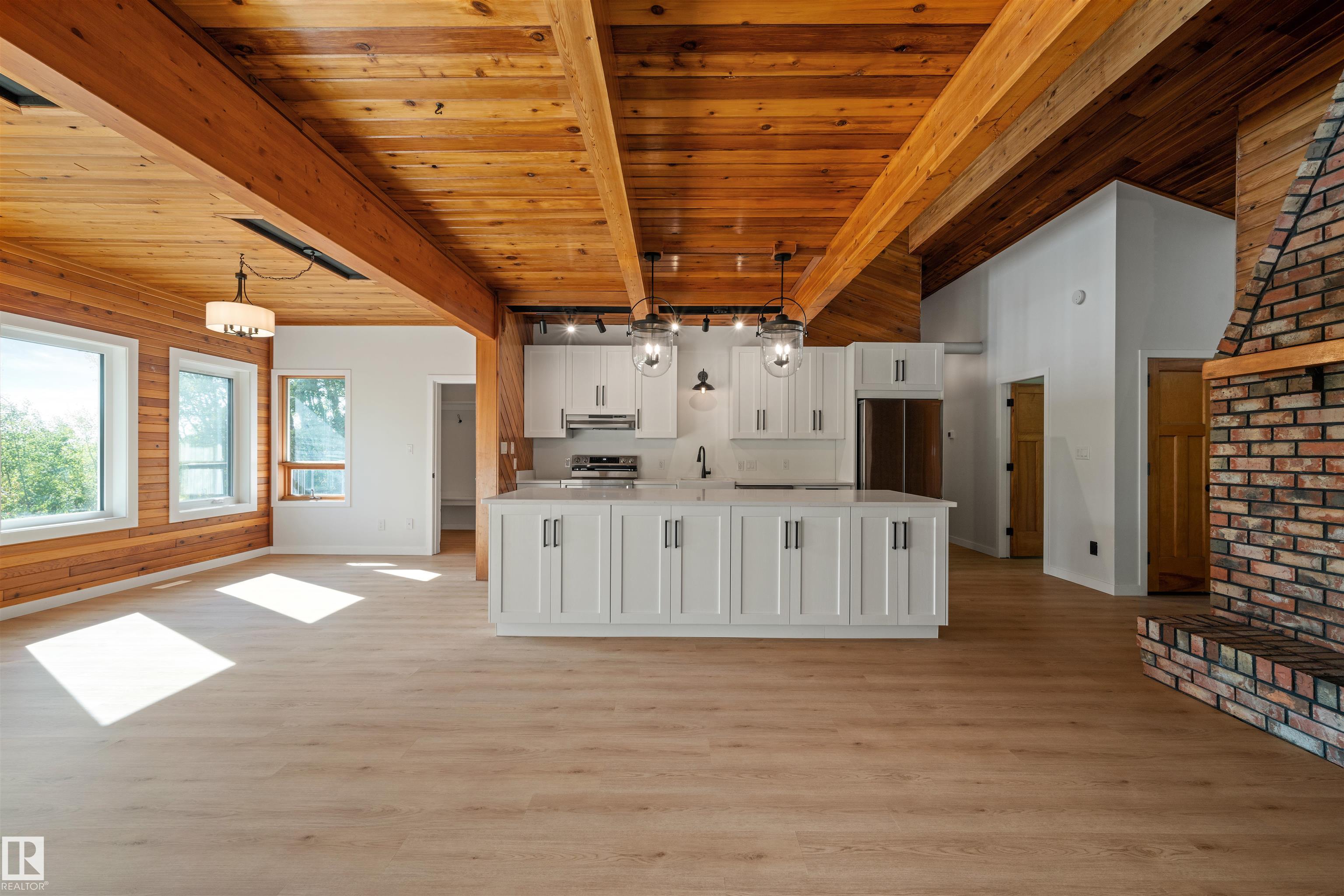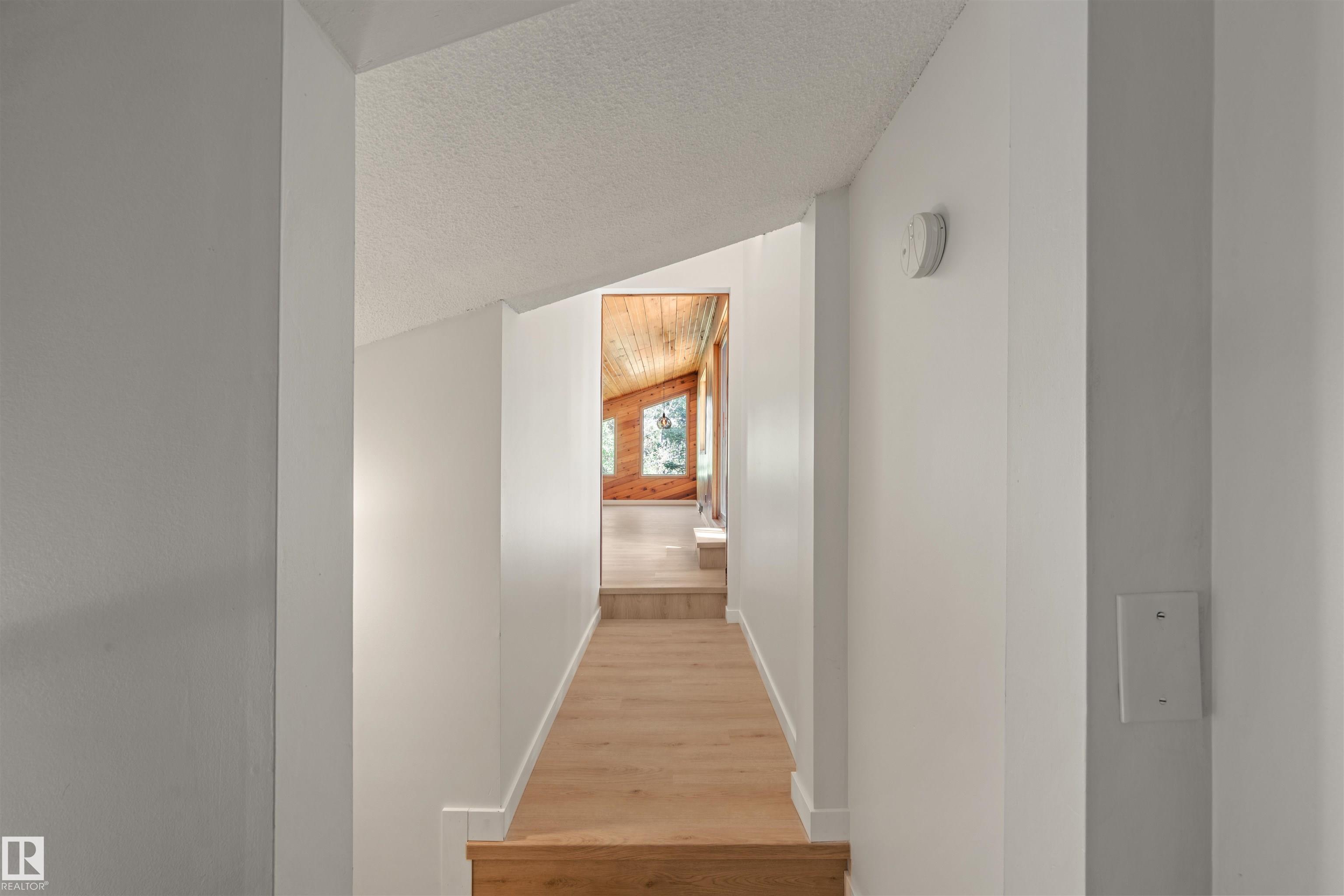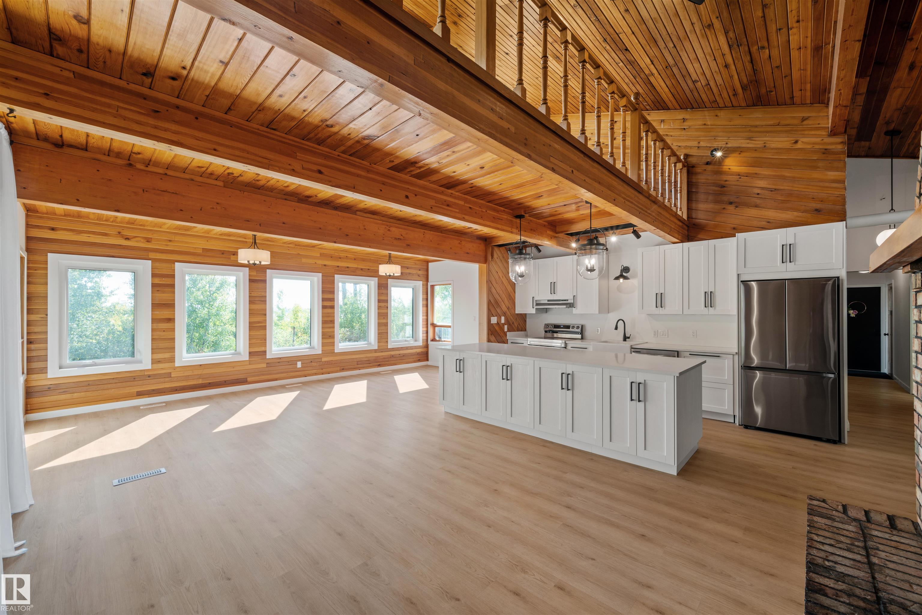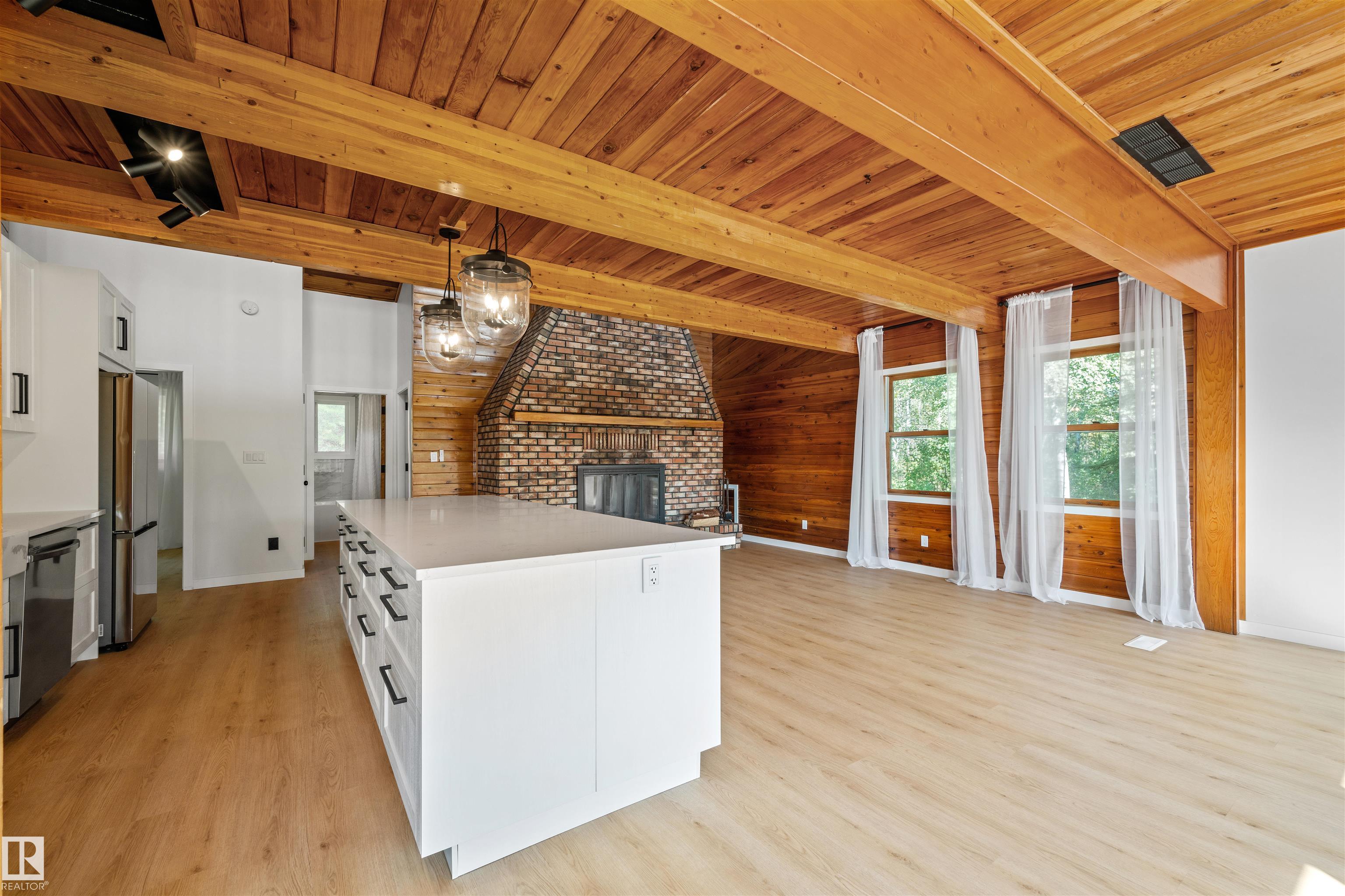 Lakefront Living at Hastings Lake! Just 20 mins east of Sherwood Park, this 4-bedroom, 2,000+ sq. ft. home blends a peaceful cabin feel with modern upgrades. Enjoy lake views from nearly every room and a 2nd-floor sunroom retreat. Updates include: new lake-side entry deck stairs/platform, handrails, fresh paint to deck/cover and new eavestroughs, Inside: new vinyl flooring throughout, remodeled kitchen with updated cabinet fronts, granite counters, new fridge/range/dishwasher & washer/dryer, plus new light fixtures, ceiling fans, switches, outlets, hardware, baseboards & trims. Fully renovated bathroom with new vanity, toilet, tub/tile, fixtures & fan. New water treatment system with powered anode, freshly cleaned furnace/ducting, and fresh paint throughout (incl. 3-season sunroom floor). Sitting on just under an acre, this property offers natural light, tranquility, and year-round lakefront living!