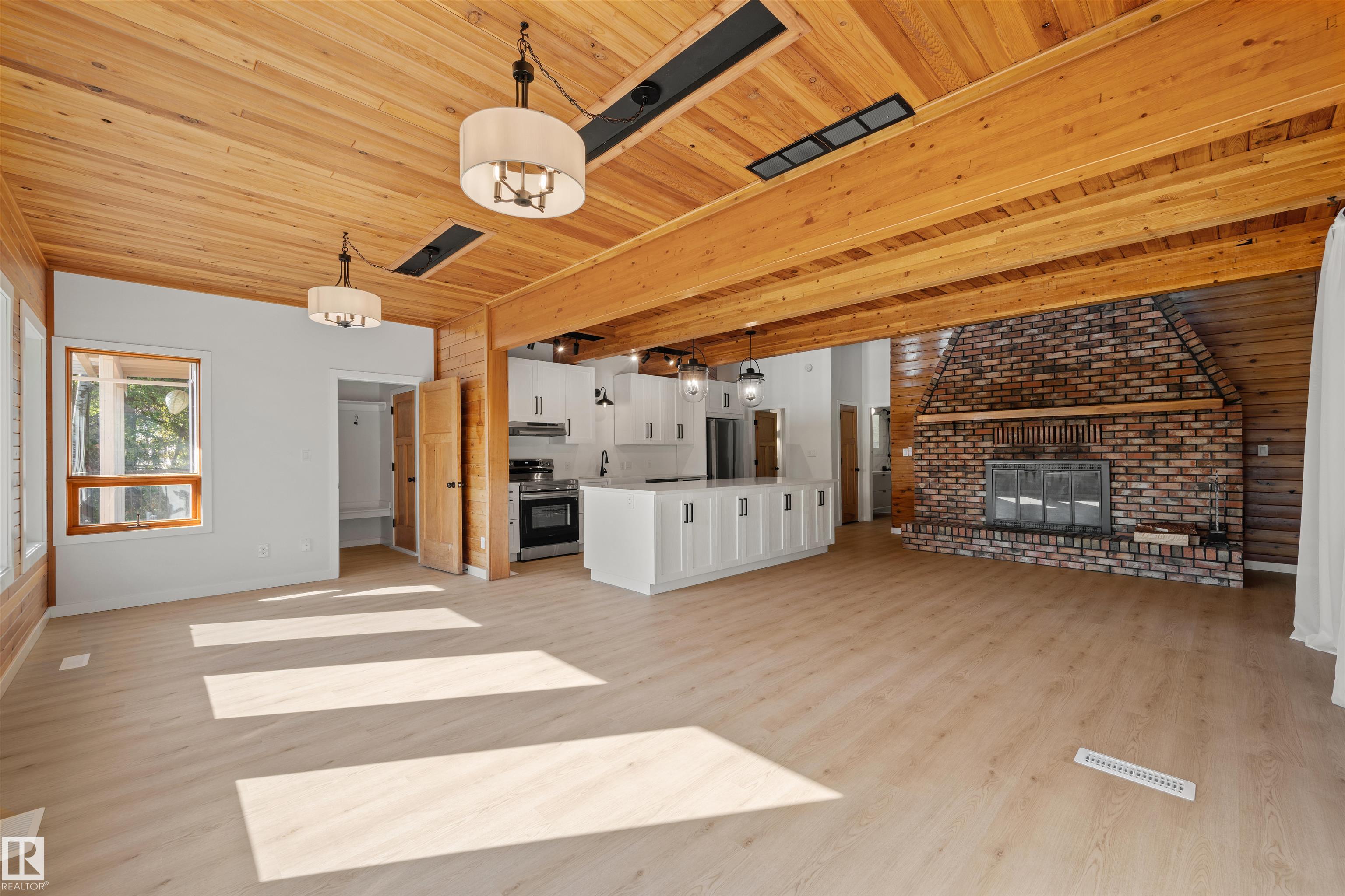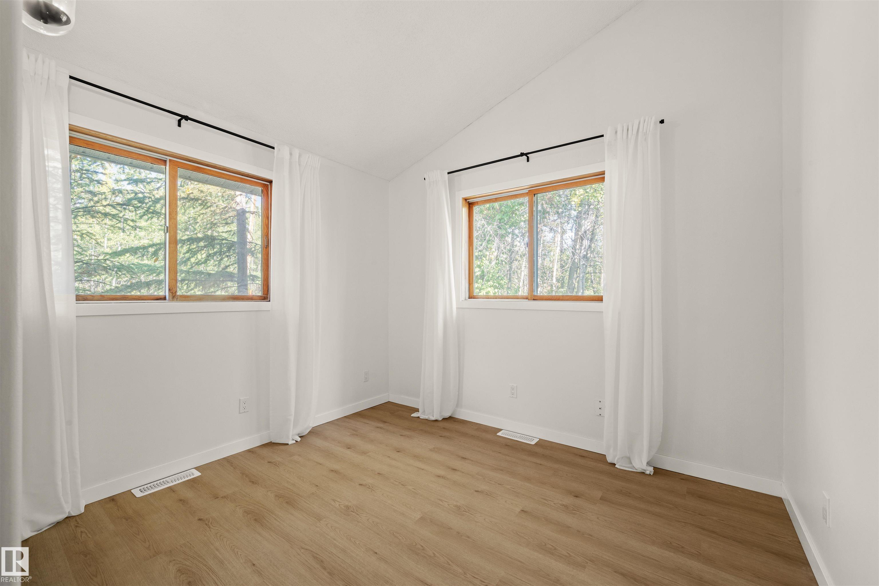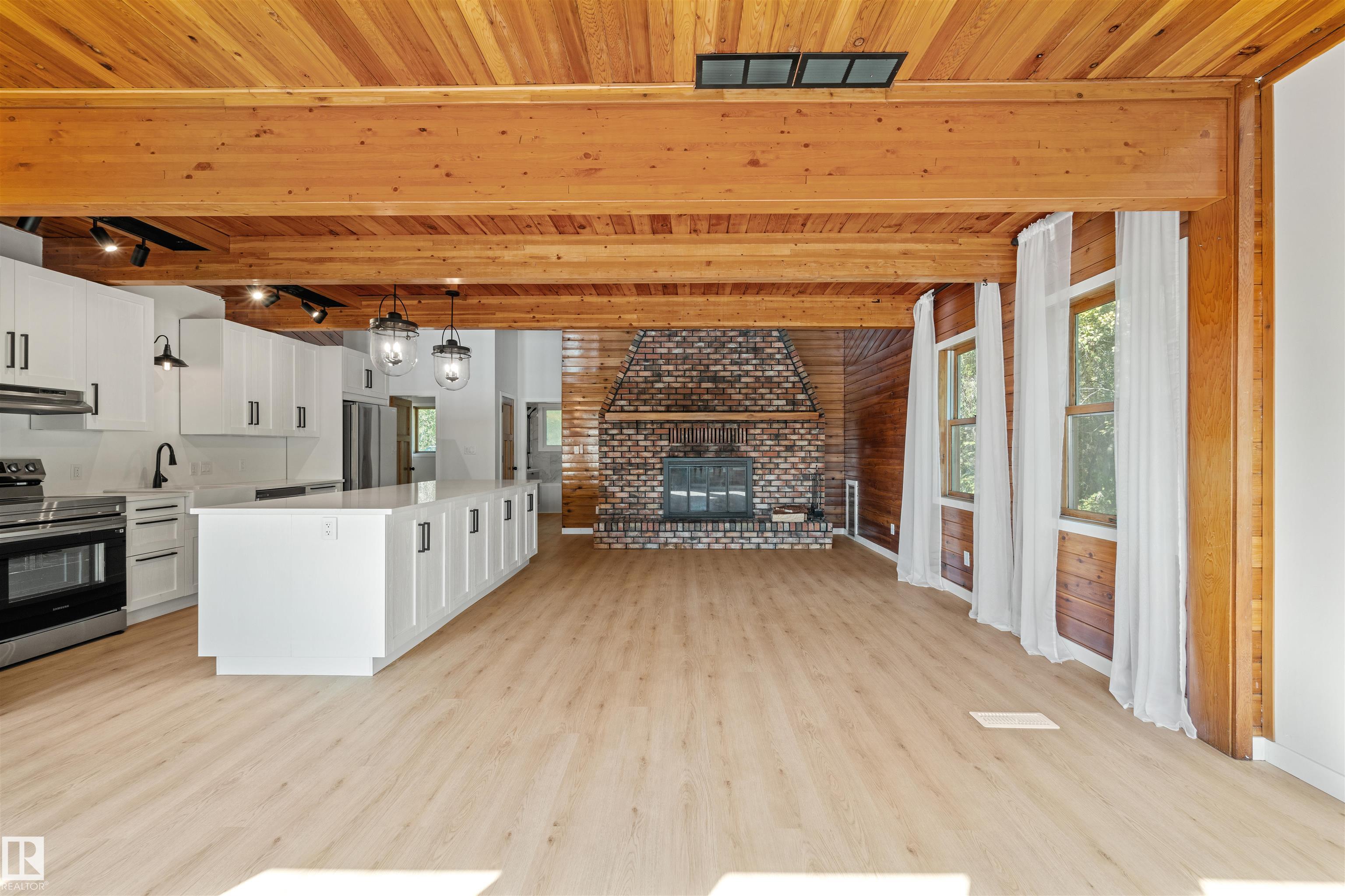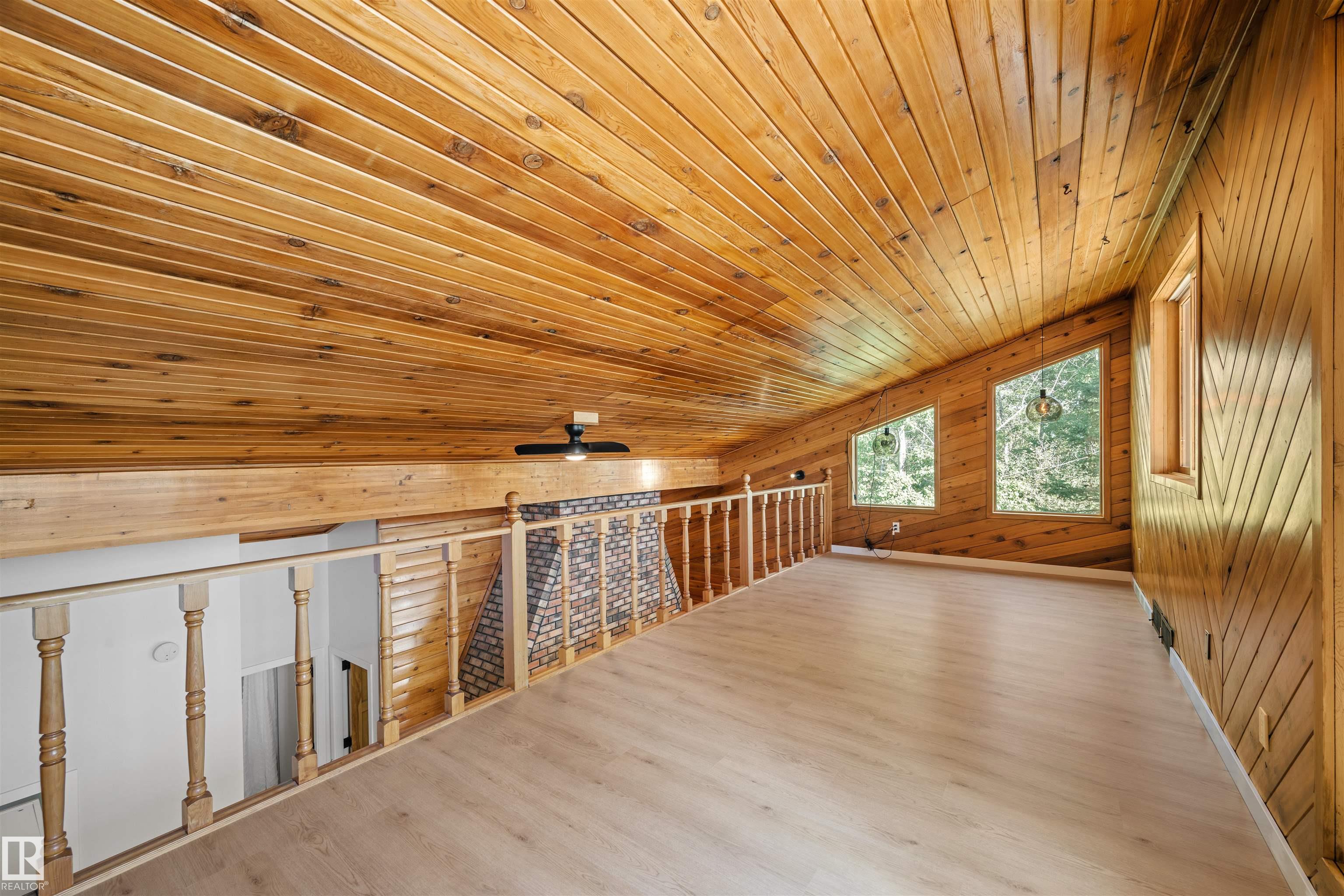Lakefront Living at Hastings Lake! Just 20 mins east of Sherwood Park, this 4-bedroom, 2,000+ sq. ft. home blends a peaceful cabin feel with modern upgrades. Enjoy lake views from nearly every room and a 2nd-floor sunroom retreat. Updates include: new lake-side entry deck stairs/platform, handrails, fresh paint to deck/cover and new eavestroughs, Inside: new vinyl flooring throughout, remodeled kitchen with updated cabinet fronts, granite counters, new fridge/range/dishwasher & washer/dryer, plus new light fixtures, ceiling fans, switches, outlets, hardware, baseboards & trims. Fully renovated bathroom with new vanity, toilet, tub/tile, fixtures & fan. New water treatment system with powered anode, freshly cleaned furnace/ducting, and fresh paint throughout (incl. 3-season sunroom floor). Sitting on just under an acre, this property offers natural light, tranquility, and year-round lakefront living!