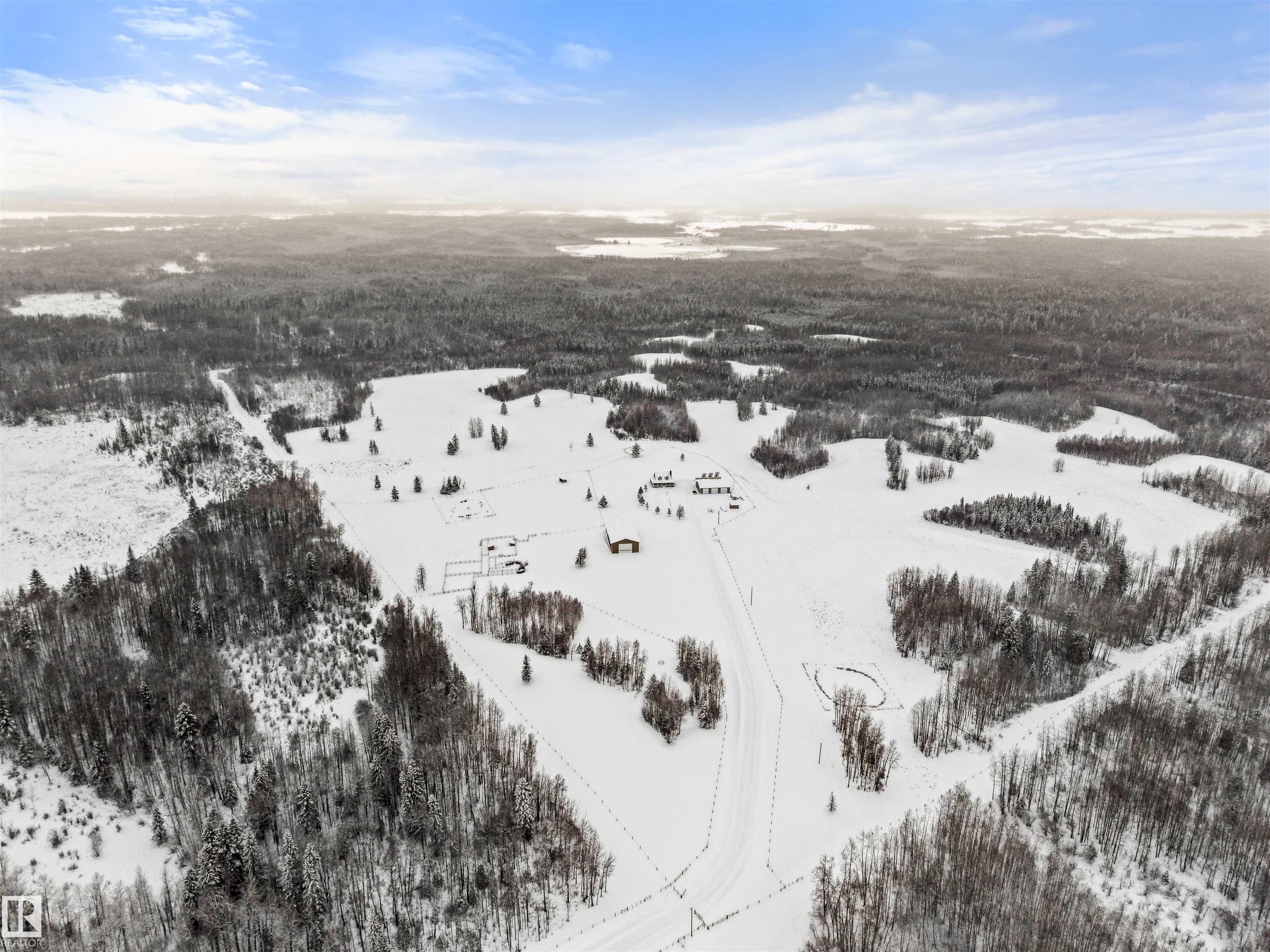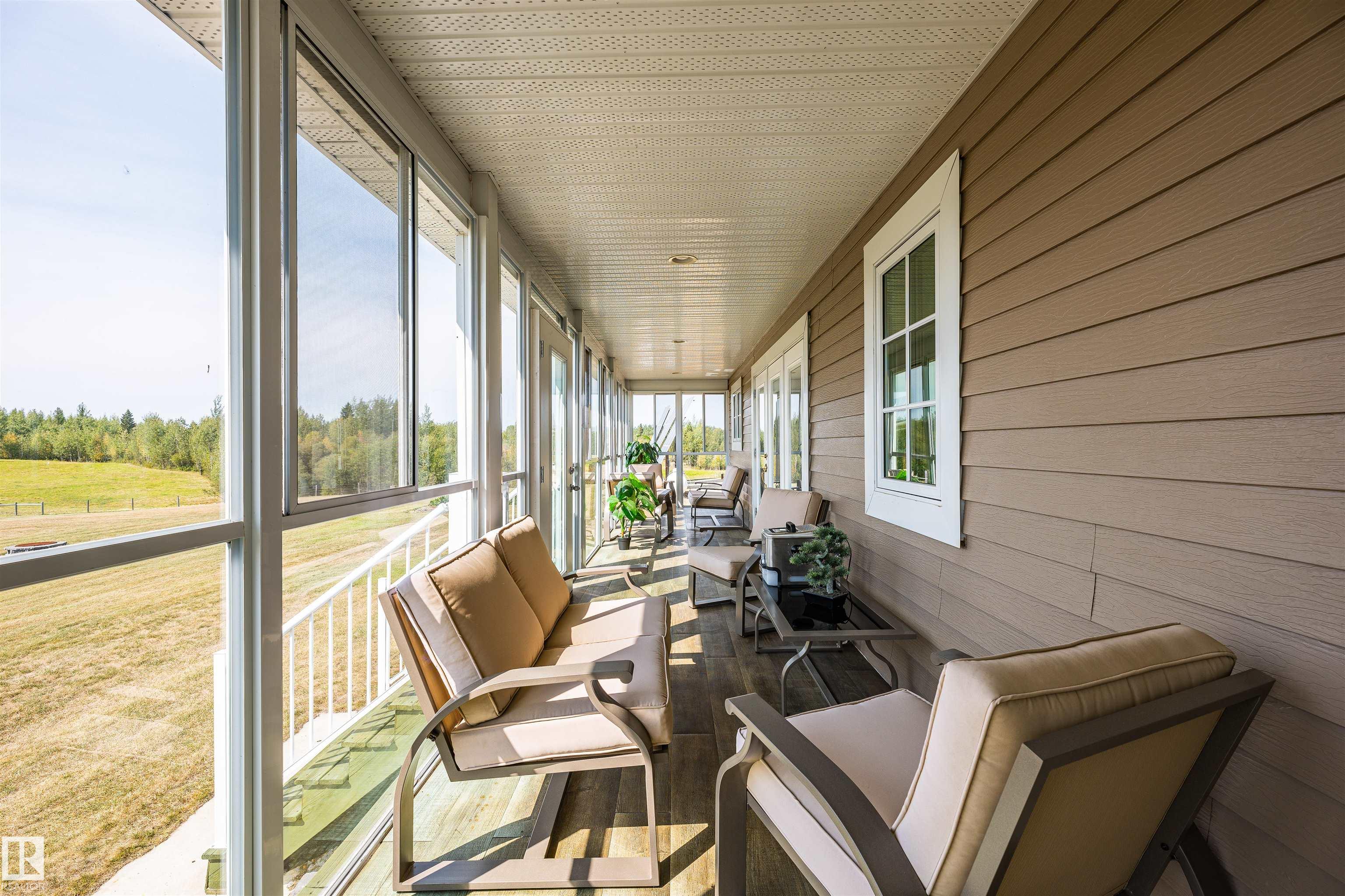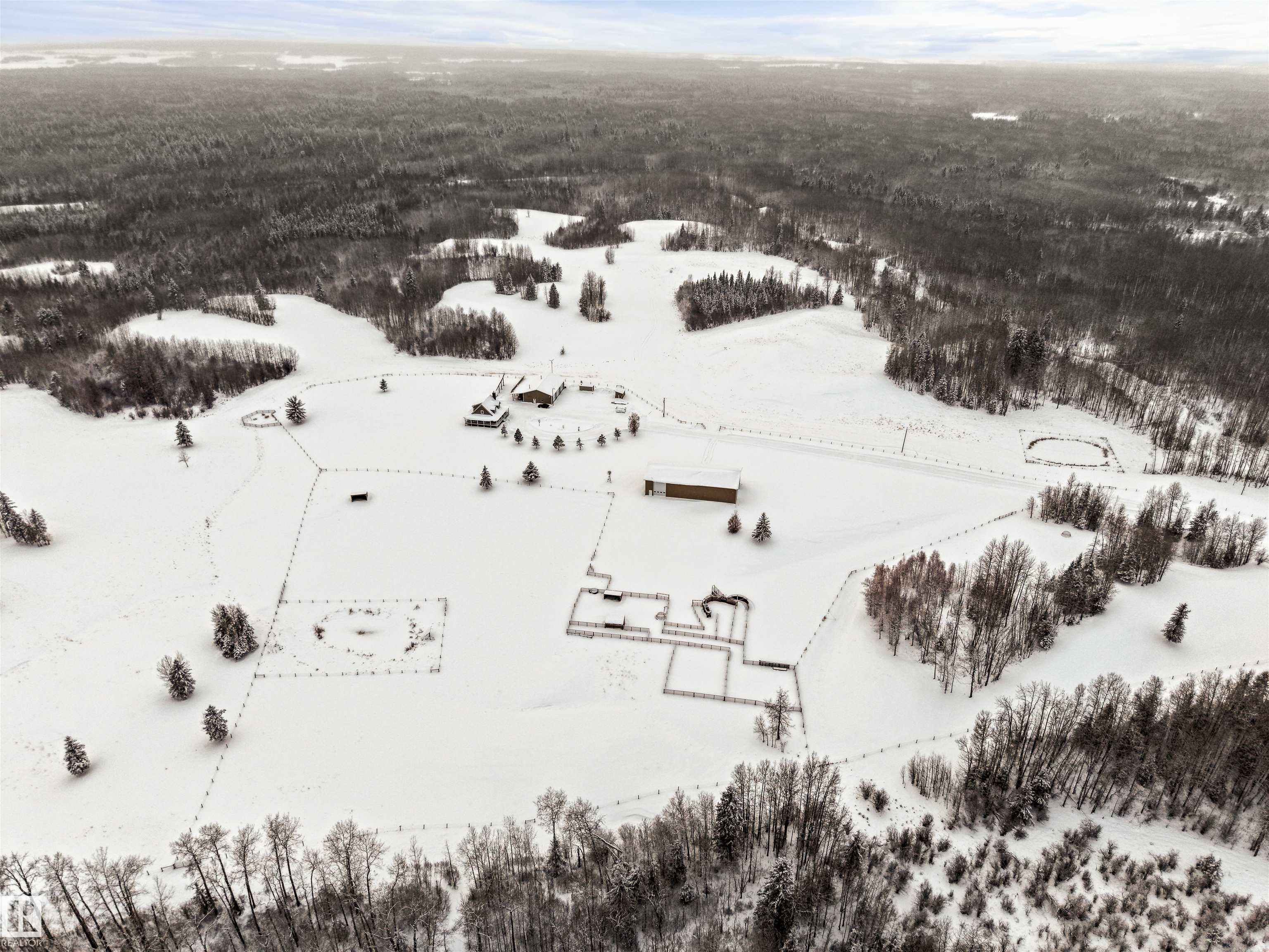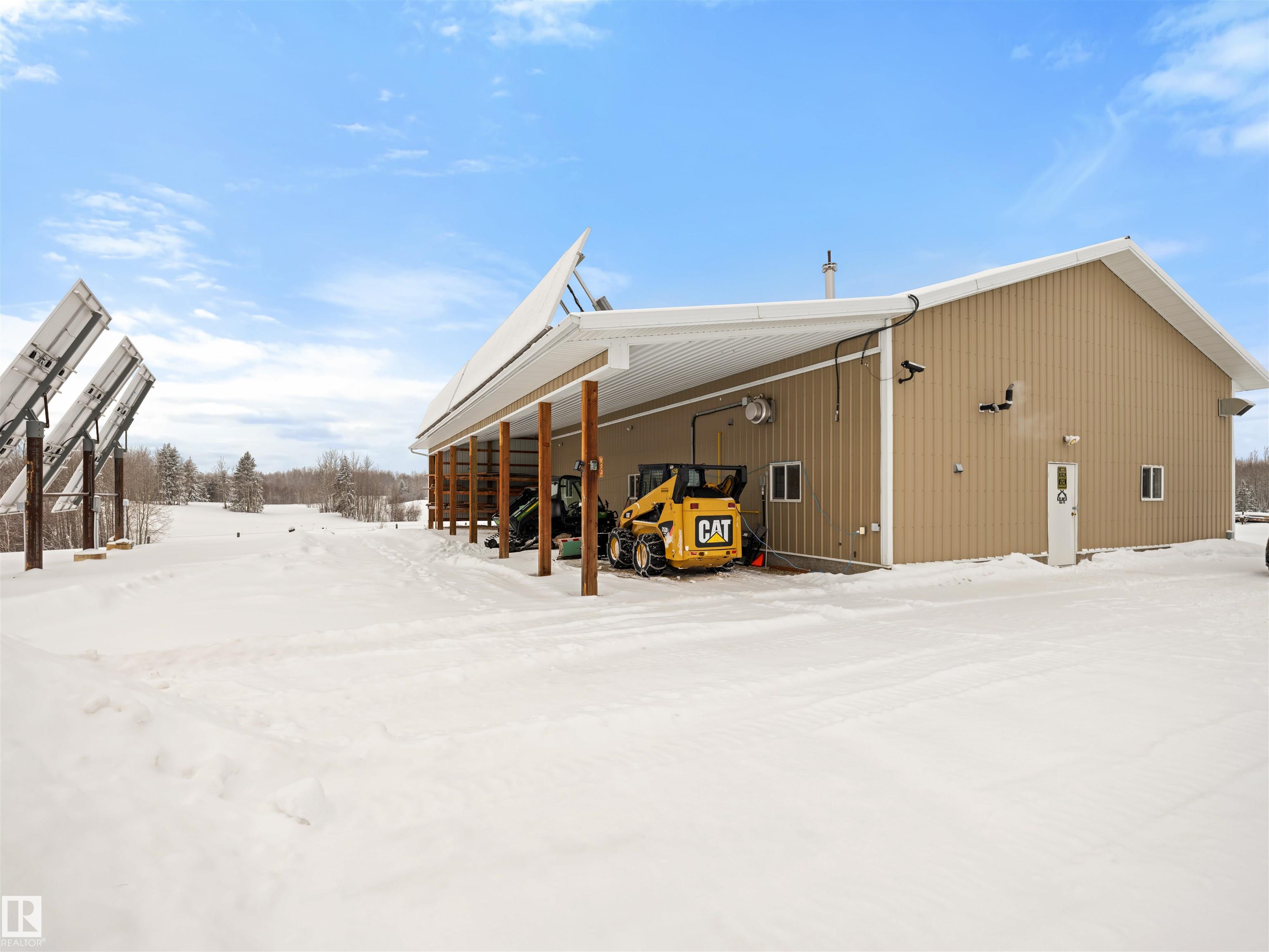 A true trophy property on a quarter section, built for independence, resilience, and land that truly works. Home and buildings are engineered all conditions, relying primarily on on-site power generation?off-grid capable without sacrificing comfort. Cape Cod?inspired home features real hardwood floors, in-floor heat, vaulted ceiling living room with wood-burning fireplace, and a full wraparound balcony to enjoy every view and follow the sun from sunrise to sunsetas the landscape shifts around you. EnerGuide 88/100 with a 9kW solar system. Heated workshop with new epoxy floors and in-floor heat for year-round projects. Insulated equipment shop doubles as a riding arena, calving barn, or ag workspace, supported by integrated solar and wind systems. Each acre is carefully manicured?pasture and woods in balance?a clear testament to stewardship. Ideal for cattle or horses, with hunting and wilderness recreation within your own property. A truly rare offering that must be seen to be fully appreciated.