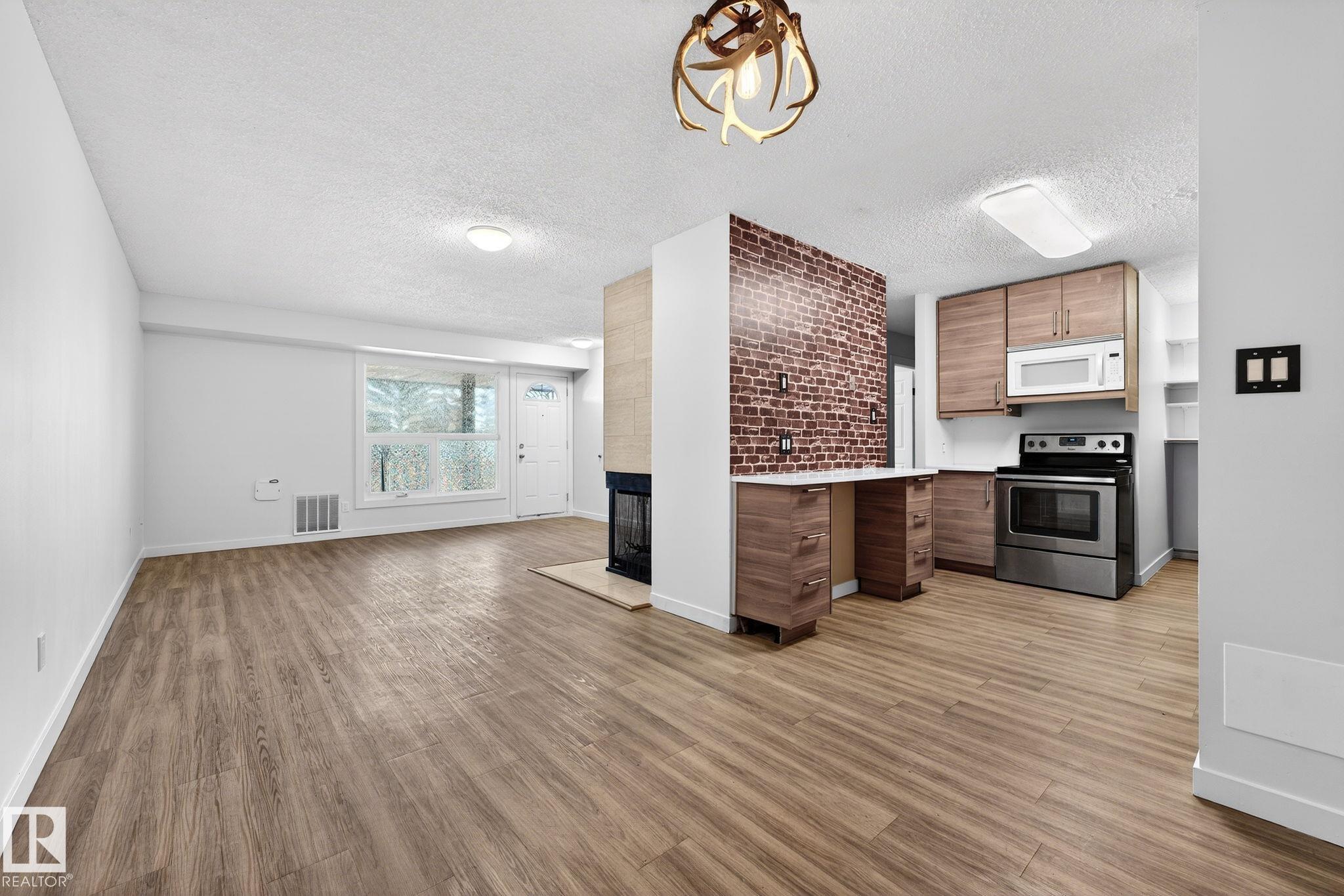 Welcome to this beautifully refreshed townhouse offering comfort, style, and an unbeatable location. FRESHLY PAINTED throughout and featuring a LARGE BALCONY, brand new interior doors, in-suite laundry and a cozy wood-burning fireplace perfect for relaxing evenings at home. Furthermore this this well-maintained home is truly move-in ready and ideal for first-time buyers, investors, or those looking to downsize with modern vinyl plank flooring that flows throughout the main living spaces, complementing the updated kitchen cabinets and QUARTZ countertops along with the refreshed bathroom vanity. One of the standout features of this home is the added comfort of having no one living above you. Major upgrades provide added peace of mind, including a NEWER FURNACE and HWT (2021). Ideally located directly across from Lois Hole Library and the Jamie Platz YMCA, with quick and easy access to Whitemud Drive and Anthony Henday.