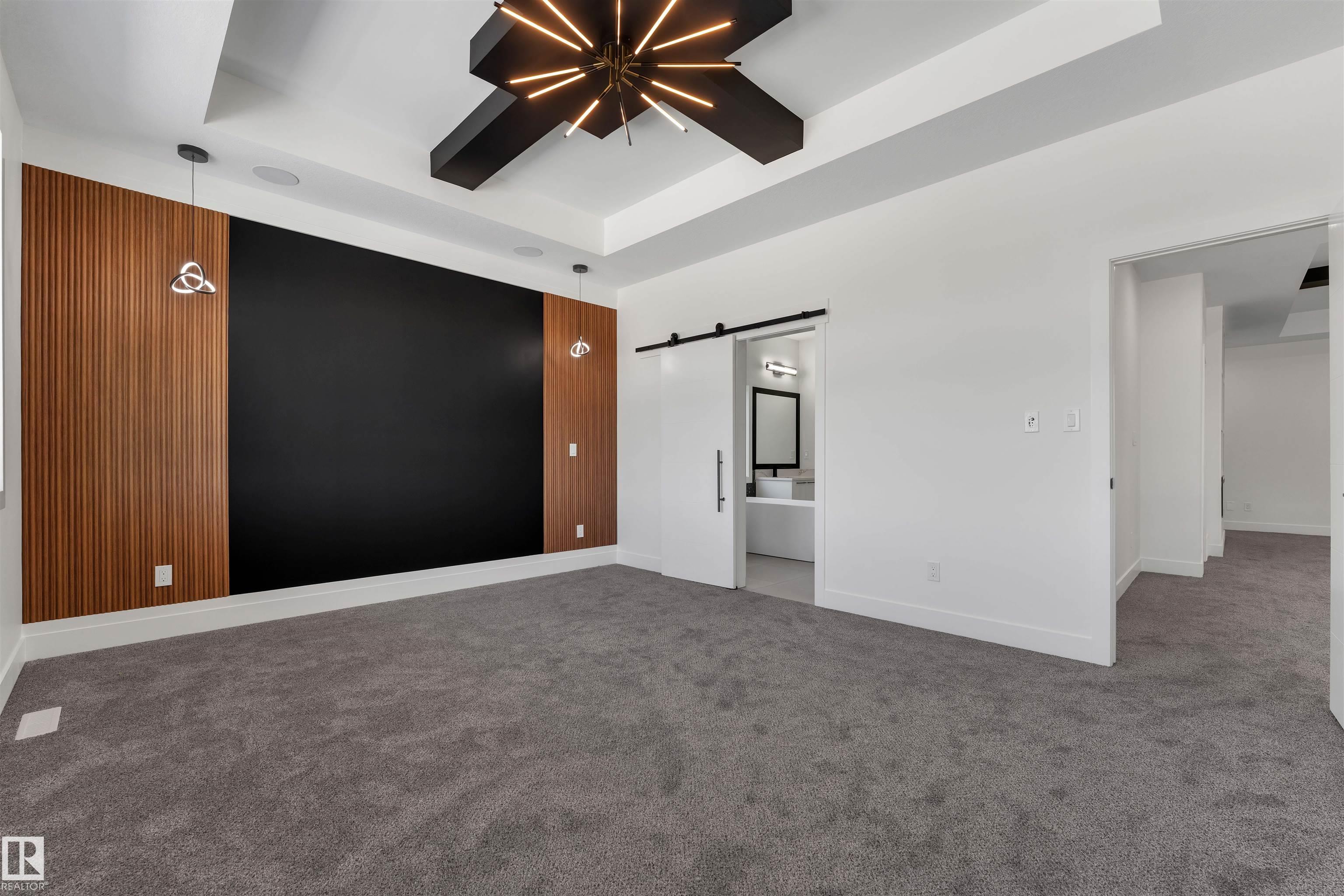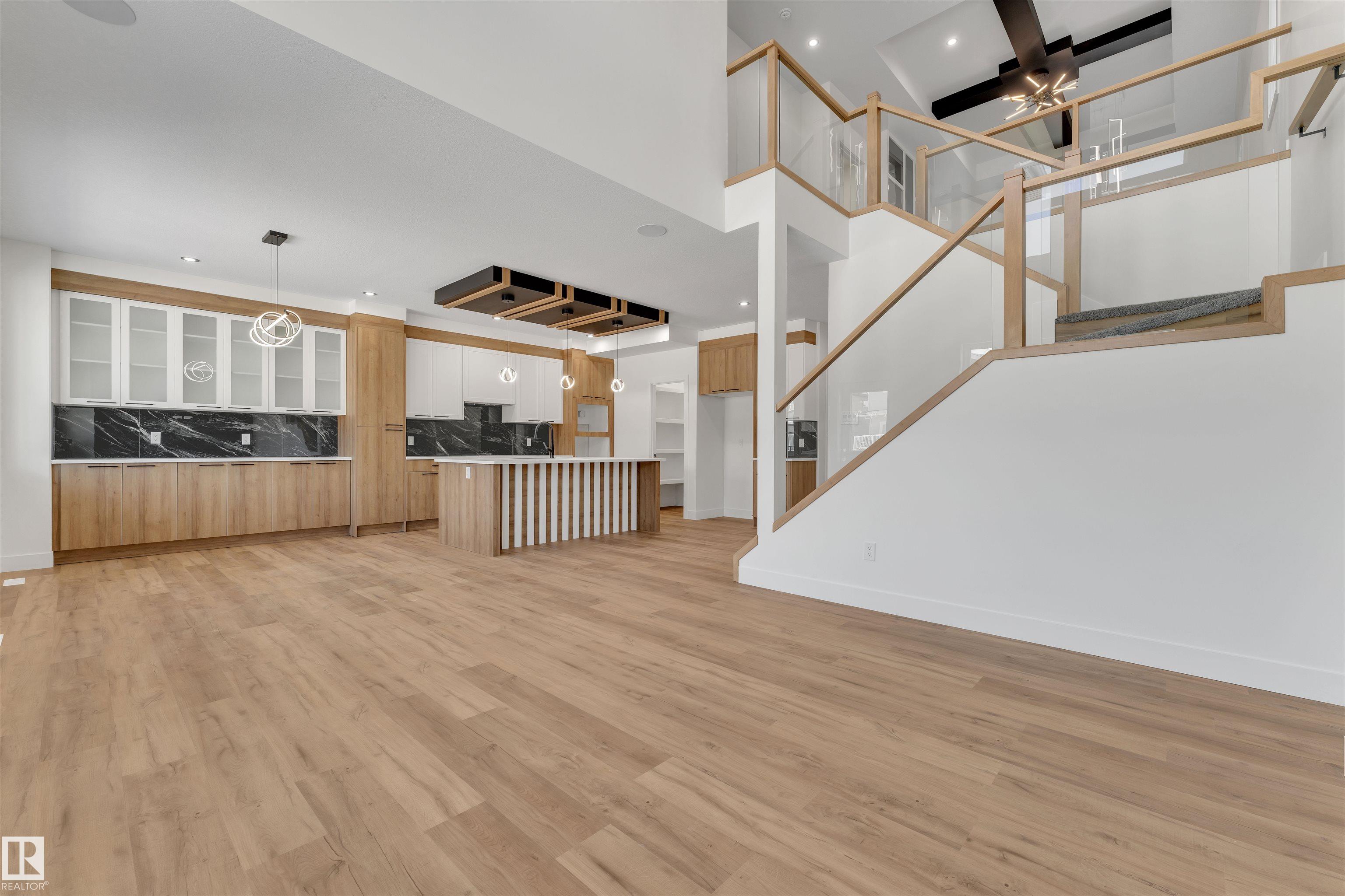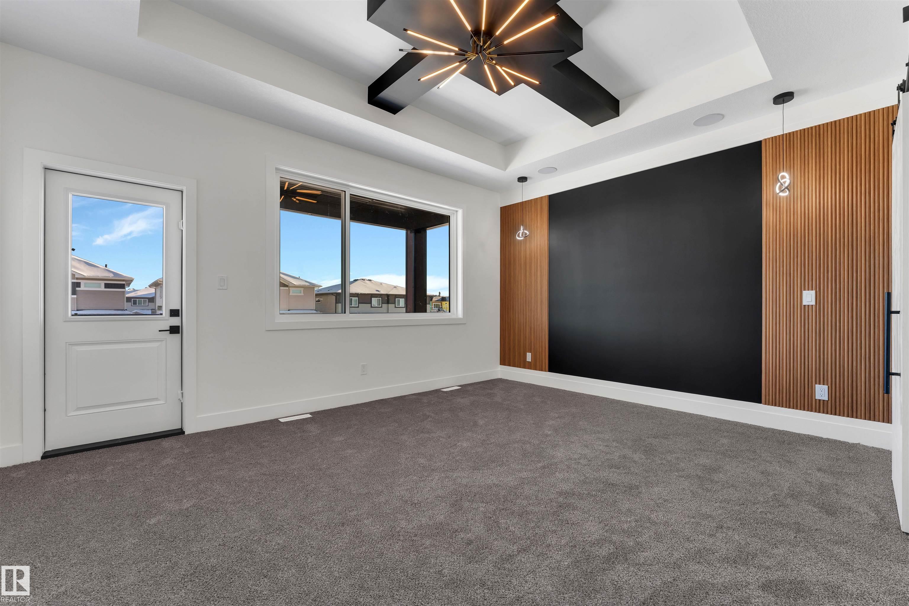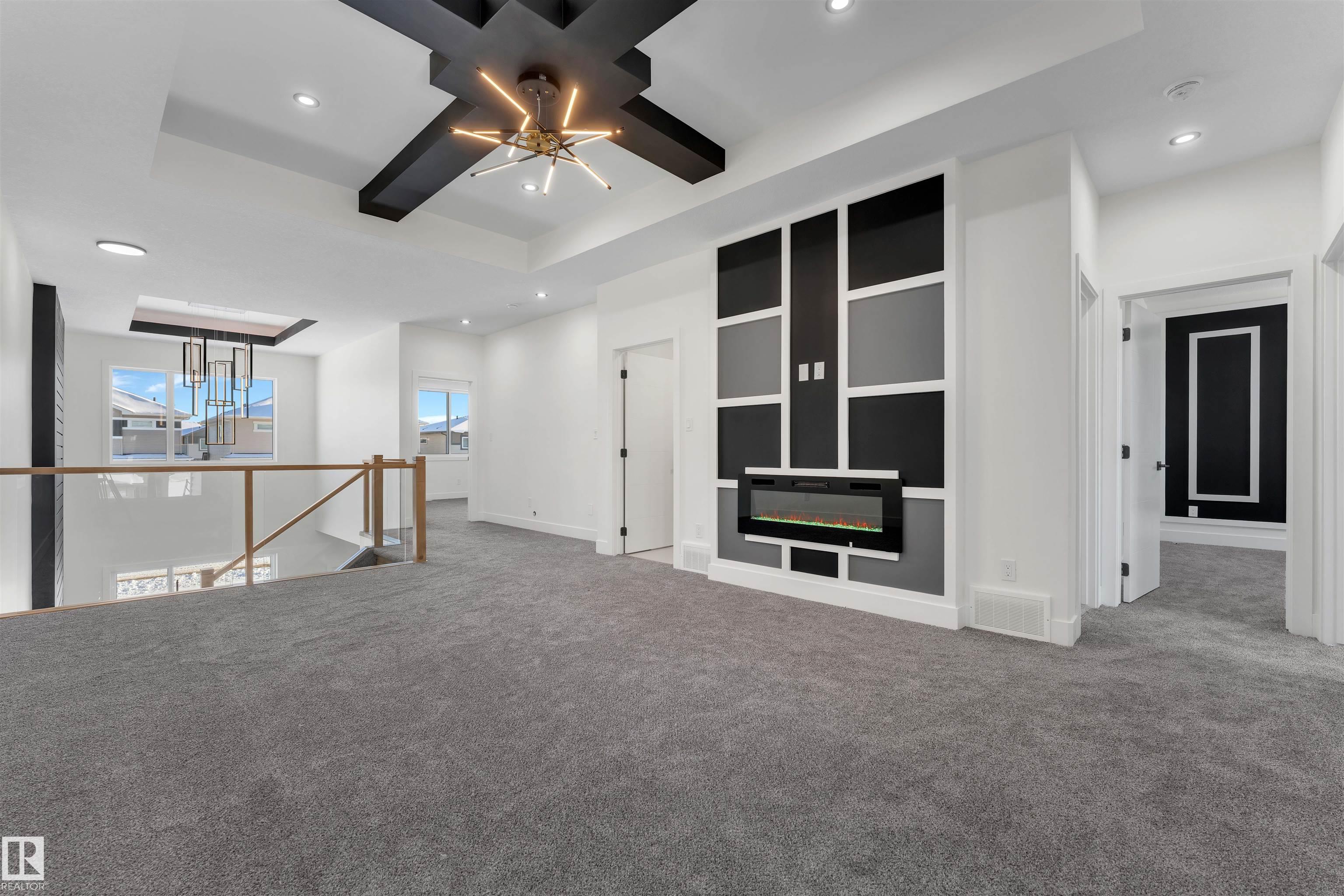 TRIPLE-CAR GARAGE | RV Parking | FULLY UPGRADED | Backing to walking trail | CUSTOM-BUILT SHOWSTOPPER. Step into a home that actually delivers. This stunning, fully upgraded custom residence features a versatile main-floor den/office that easily doubles as an extra bedroom, paired with a convenient half bath. The kitchen? Absolute art. A chef?s dream with premium finishes, a sleek design, and a walk-in pantry for serious storage. The living room features a custom statement wall that anchors the entire space, while the dining area opens directly onto the deck?perfect for hosting or just vibing on a calm evening.Head upstairs to a bright bonus room, ideal for family hangouts or a cozy entertainment zone. The primary bedroom is massive, highlighted by a designer feature wall, a truly luxurious 5-piece custom ensuite, and a walk-in closet made for someone who loves organization. Two additional generous bedrooms share a well-appointed full bath, and the second-floor laundry adds next-level convenience.