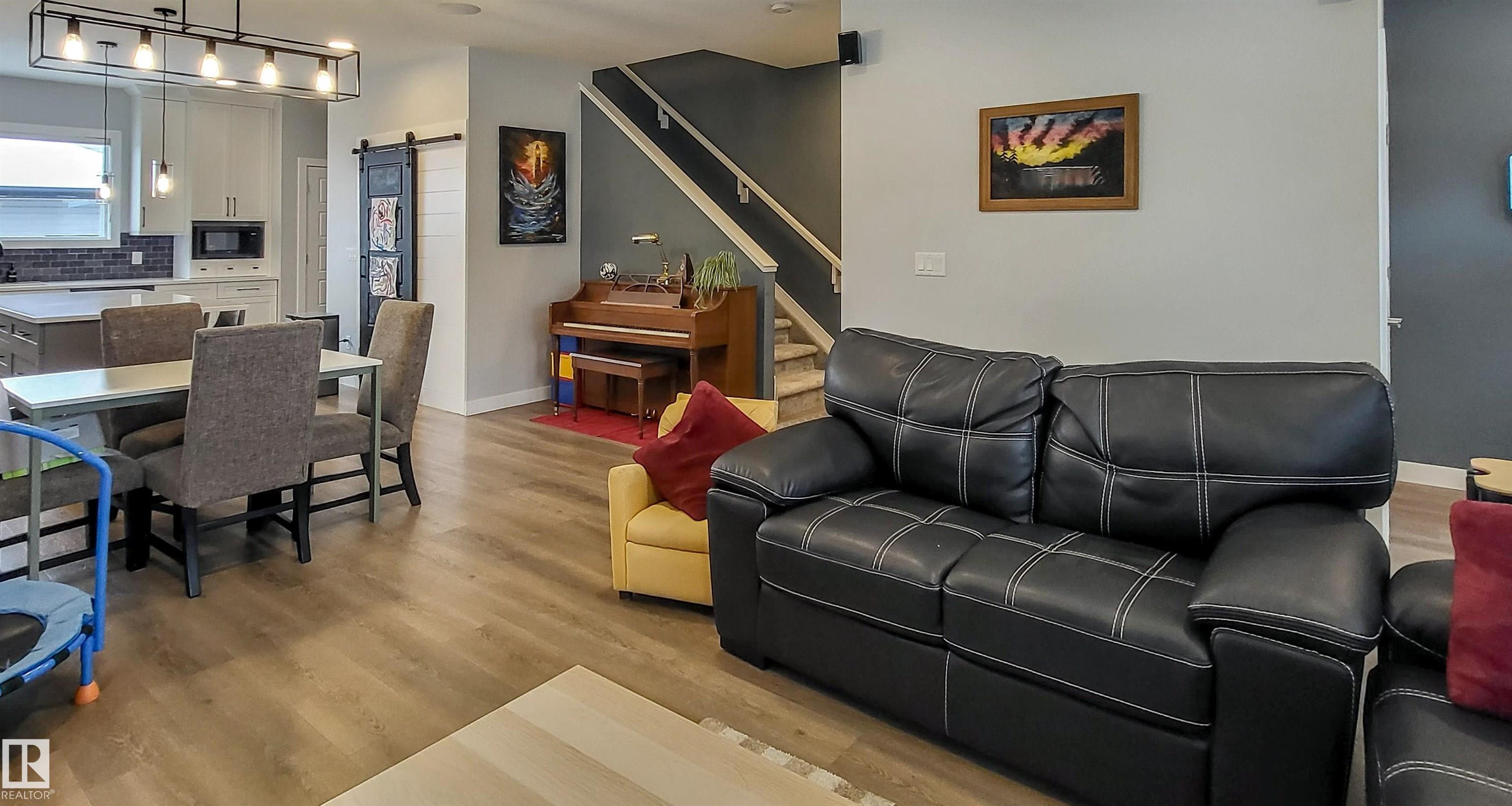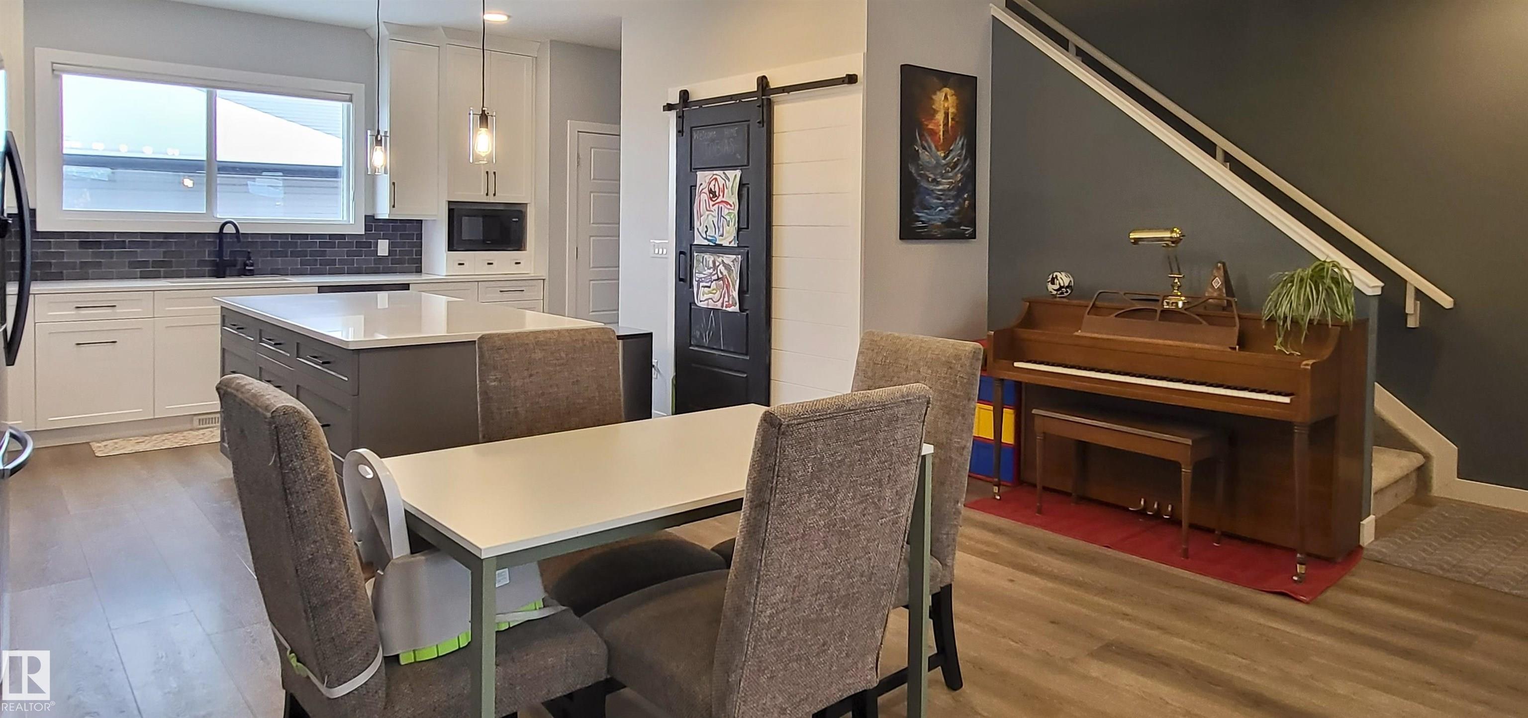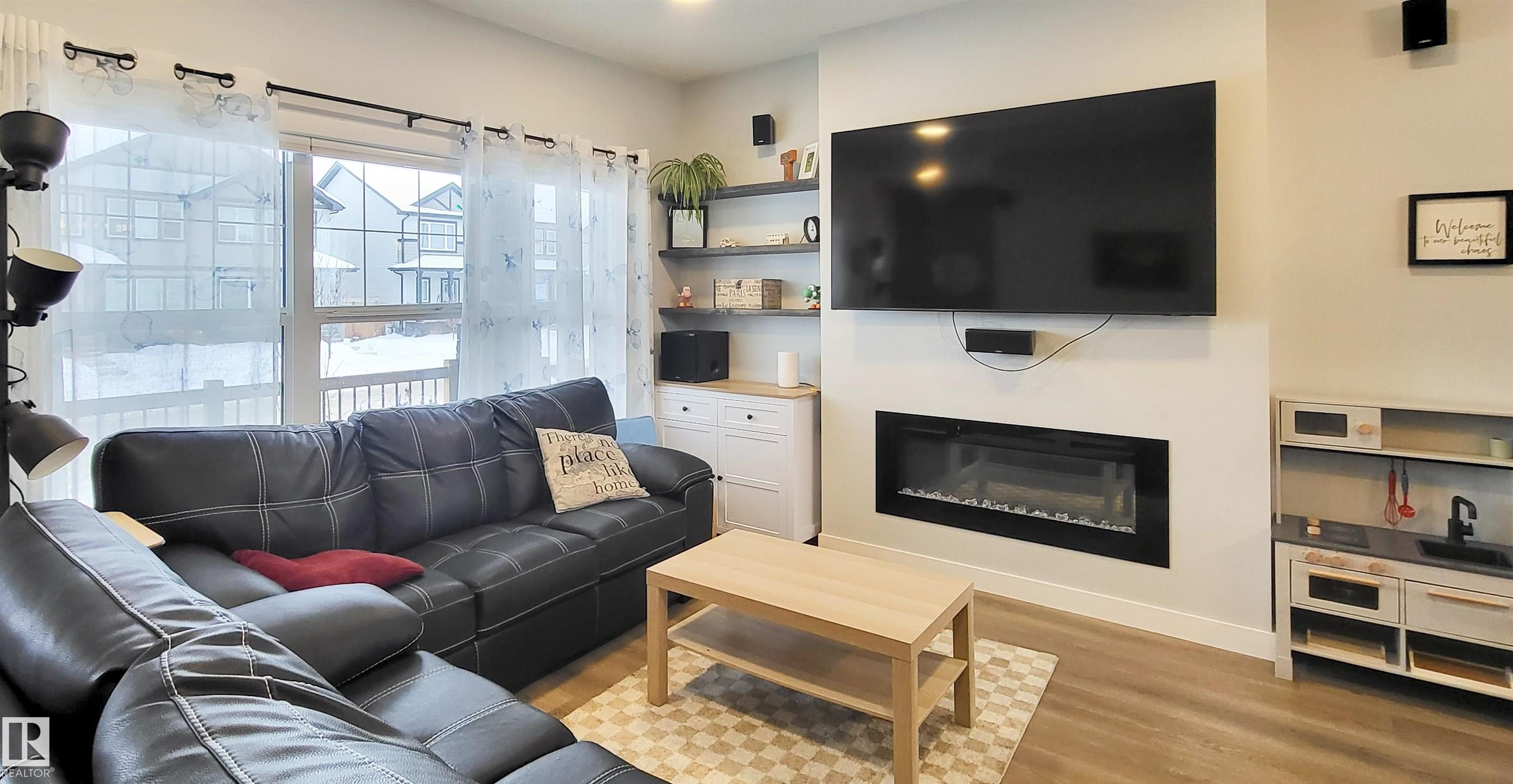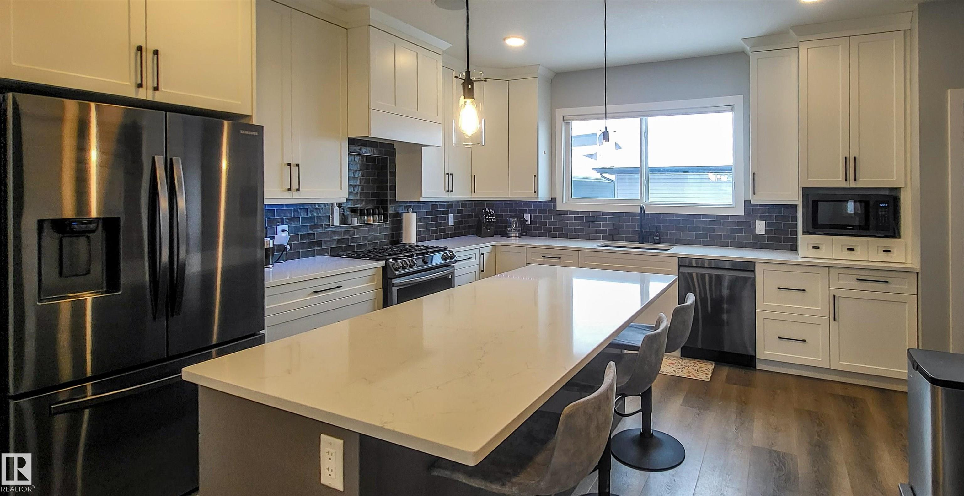 Lighted steps lead to a charming covered porch and into this bright and beautiful 2-storey with 1529 sqft above grade. Featuring 3 bedrooms and 2.5 bathrooms, this custom-built home offers stylish vinyl plank flooring and plush carpet. The stunning kitchen is a showstopper, with custom cabinetry to the ceiling, striking tile backsplash, covered range hood, stainless steel appliances including a gas stove, a large quartz island, and sliding barn door access to a spacious pantry. Enjoy two electric fireplaces?one in the living room and one in the primary bedroom?along with tall ceilings, ceiling speakers, central air conditioning, custom Hunter Douglas blinds. Upstairs, all bedrooms have blackout blinds and there is convenient upper-floor laundry. The primary suite offers a large shower, double sinks, and a huge walk-in closet with organizers. Back deck has bbq gas line, raised garden beds, and a double detached garage. It's family living in an ideal location, close to schools and all kinds of services!